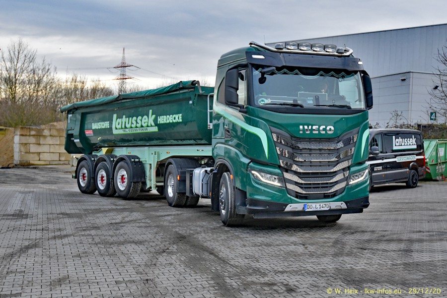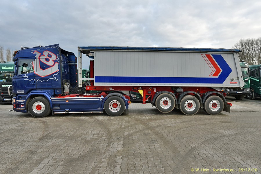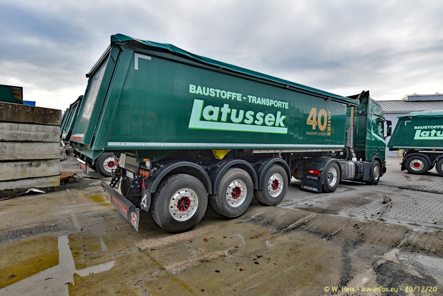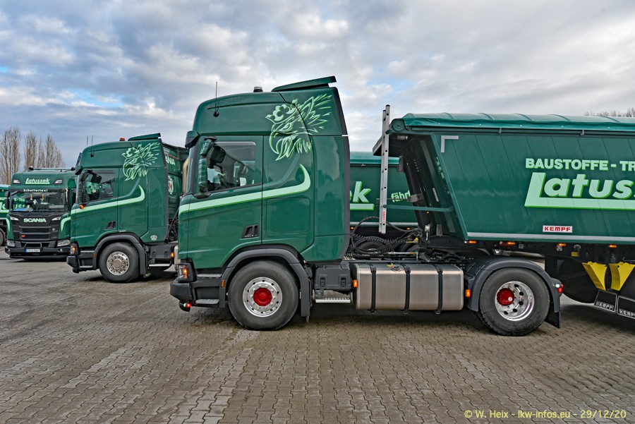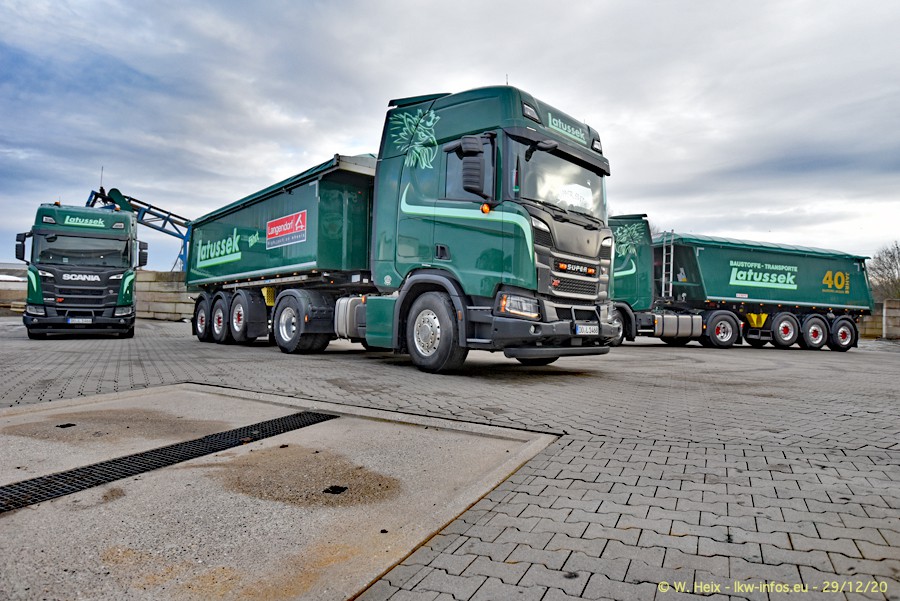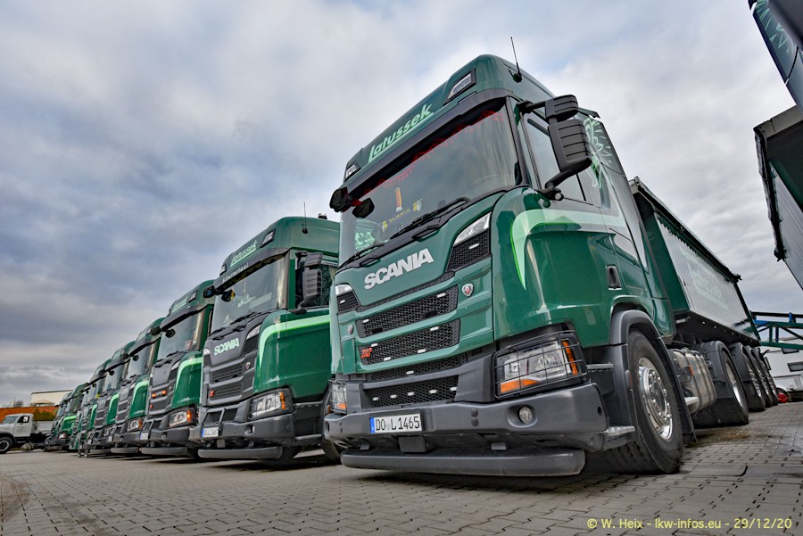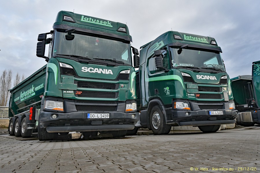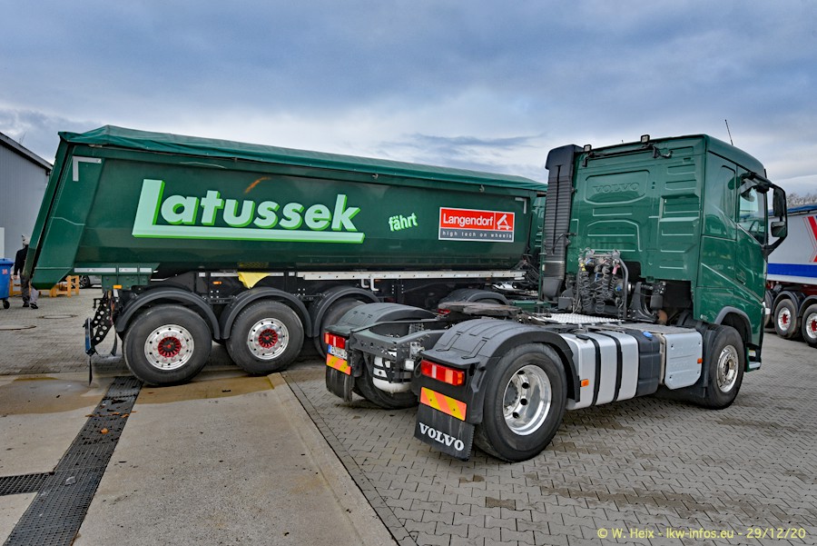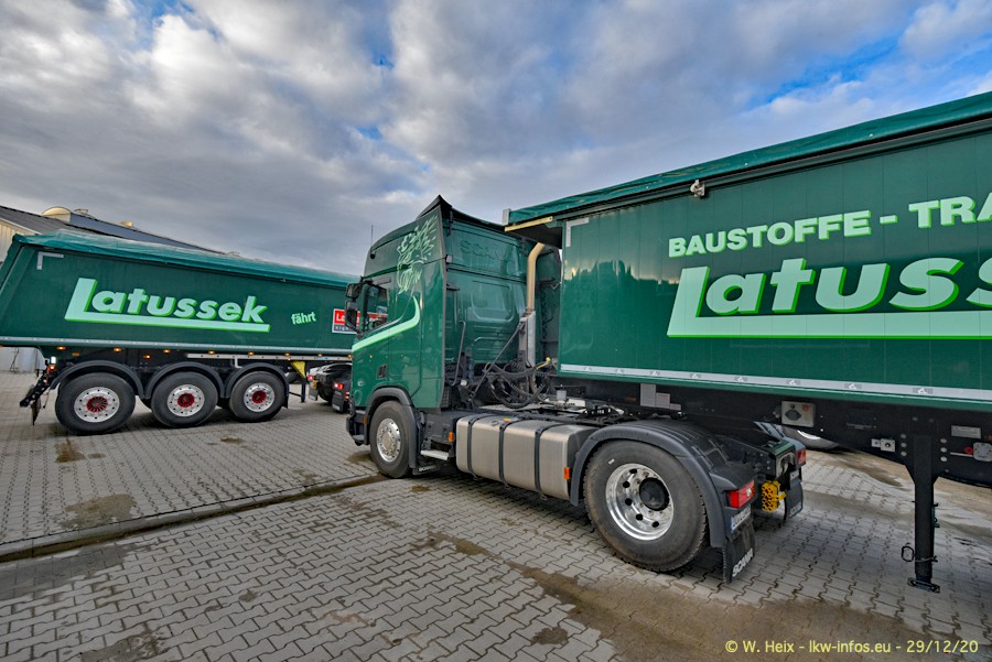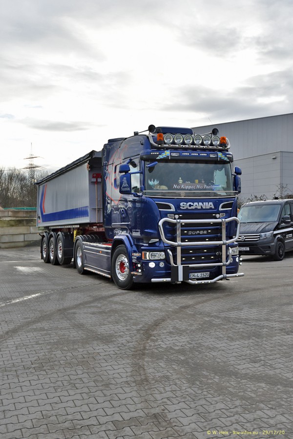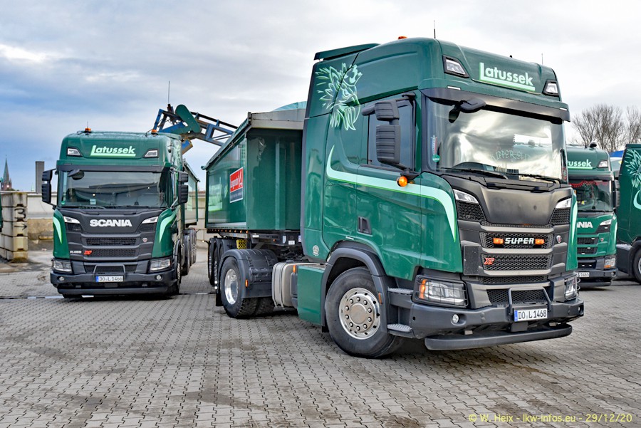 Dies war mein erster Besuch bei der Firma Latussek in Dortmund. Der Fuhrpark besteht aus ca. 30 LKW. Das sind IVECO, MAN, SCANIA und VOLVO, wobei der größte Teil Fahrzeuge von SCANIA ist. Der blaue SCANIA R 520 V8 Streamline gehört auch zum Fuhrpark und es gibt noch den schönen SCANIA L 110 Oldtimer, der für den Fotobesuch extra aus der Garage geholt wurde. Der LKW ist von 1973, hat 305 PS und ist in einem guten Zustand, die Restaurierung ist schon über 15 Jahre her. Bei Latussek ist es wie bei vielen Firmen: Nur Weihnachten bzw. zwischen den Feiertagen sind so gut wie alle LKW zuhause. Zwei fehlten, weil diese im Einsatz waren.