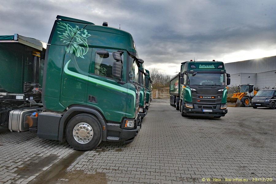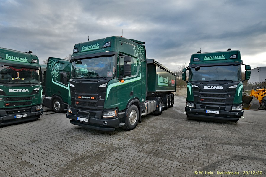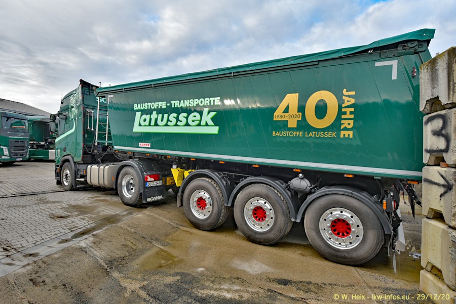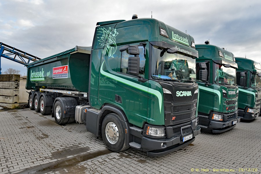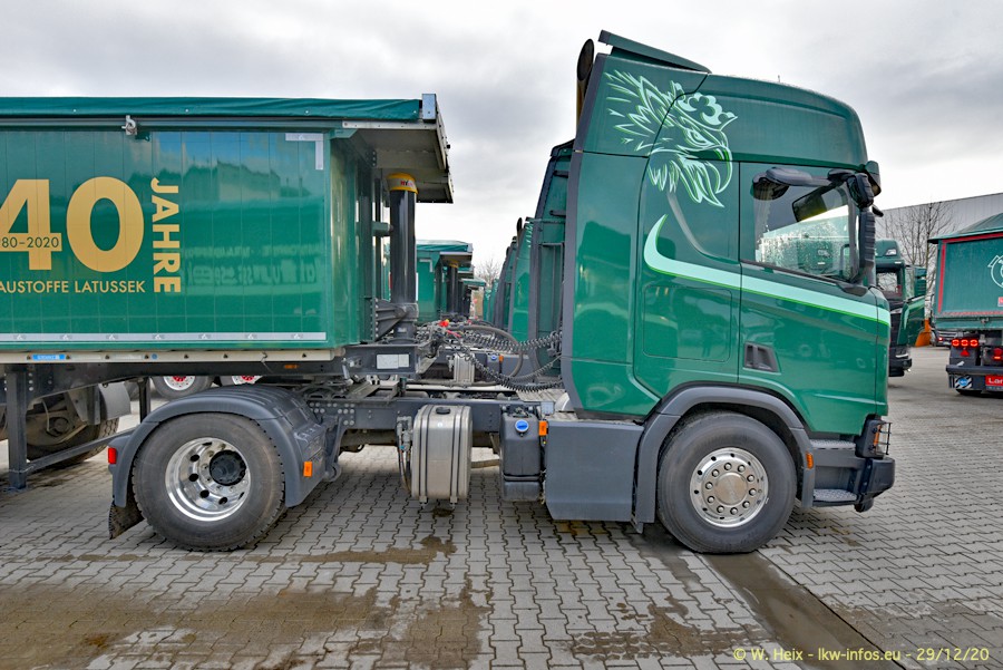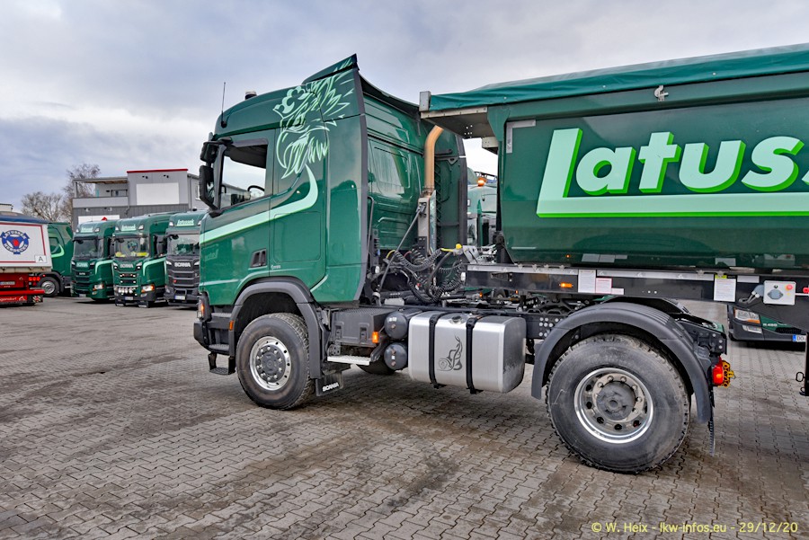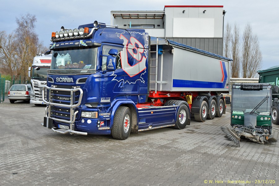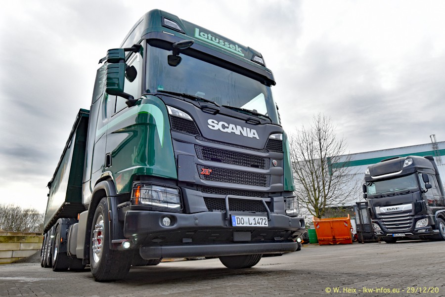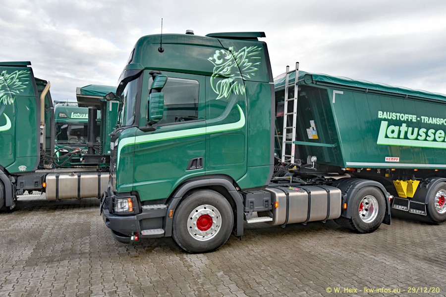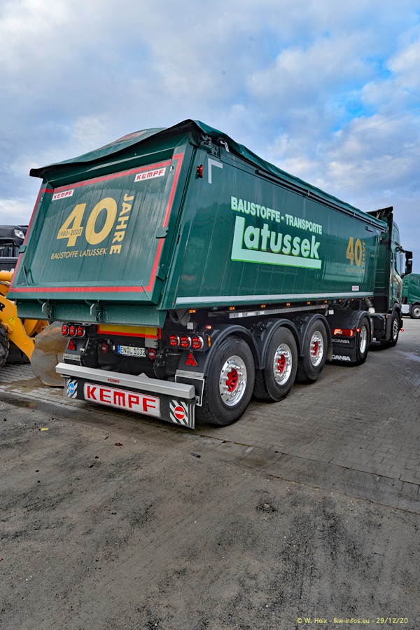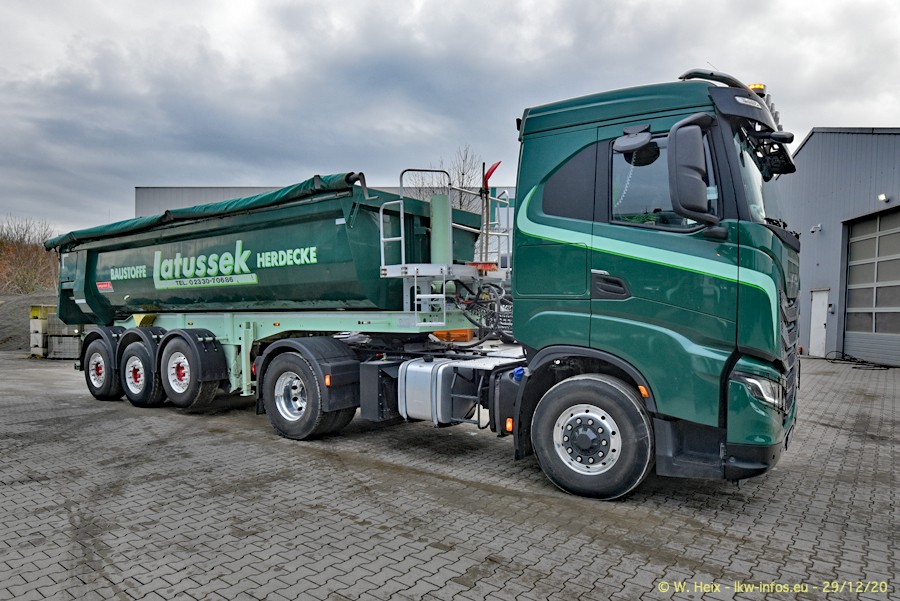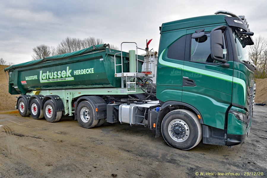 Dies war mein erster Besuch bei der Firma Latussek in Dortmund. Der Fuhrpark besteht aus ca. 30 LKW. Das sind IVECO, MAN, SCANIA und VOLVO, wobei der größte Teil Fahrzeuge von SCANIA ist. Der blaue SCANIA R 520 V8 Streamline gehört auch zum Fuhrpark und es gibt noch den schönen SCANIA L 110 Oldtimer, der für den Fotobesuch extra aus der Garage geholt wurde. Der LKW ist von 1973, hat 305 PS und ist in einem guten Zustand, die Restaurierung ist schon über 15 Jahre her. Bei Latussek ist es wie bei vielen Firmen: Nur Weihnachten bzw. zwischen den Feiertagen sind so gut wie alle LKW zuhause. Zwei fehlten, weil diese im Einsatz waren.