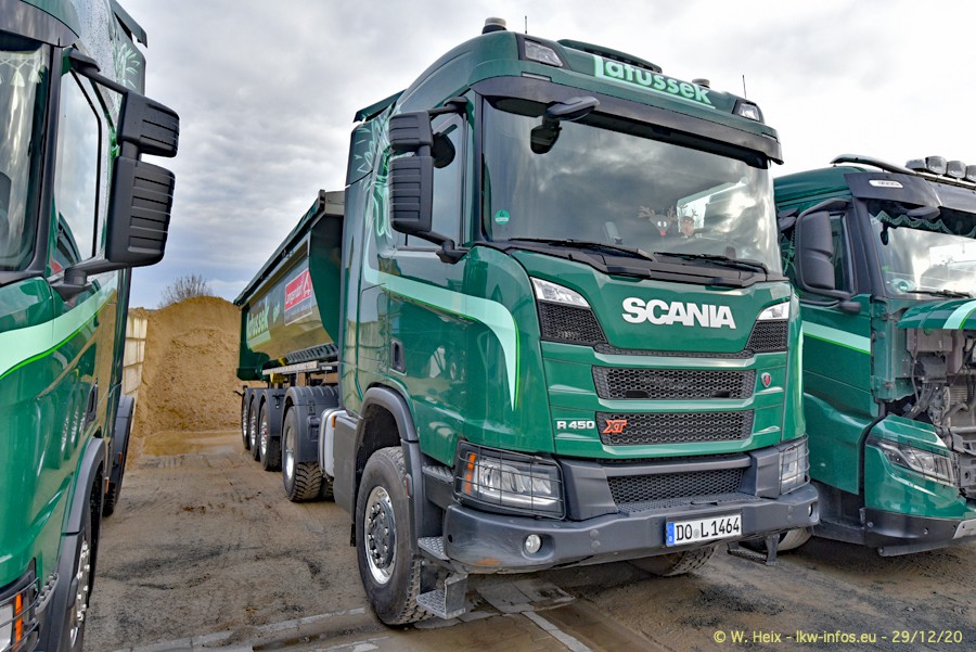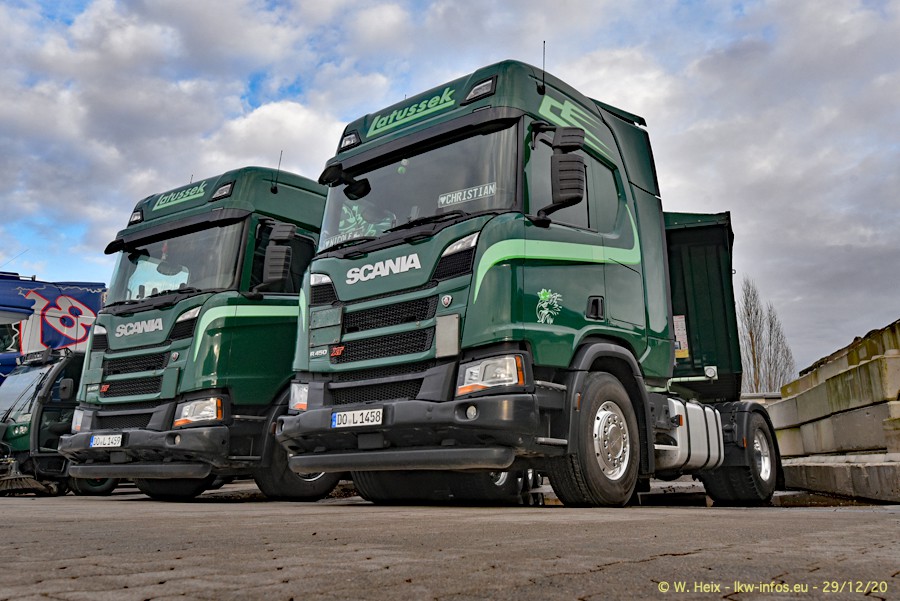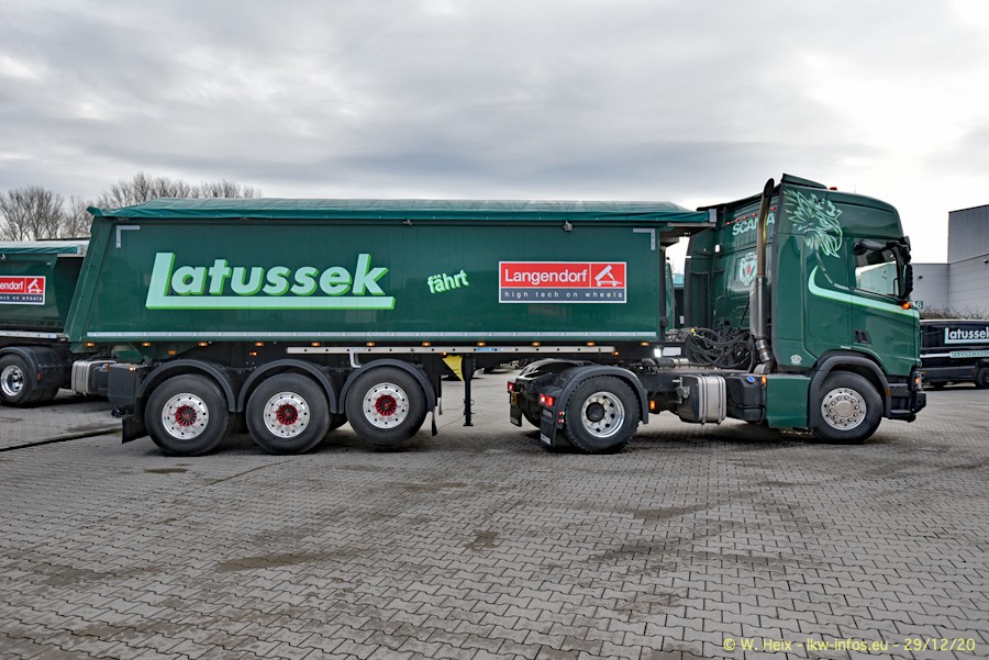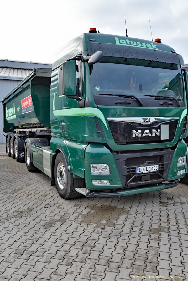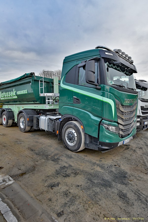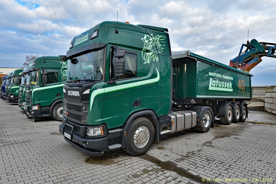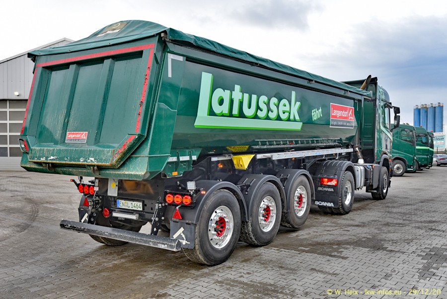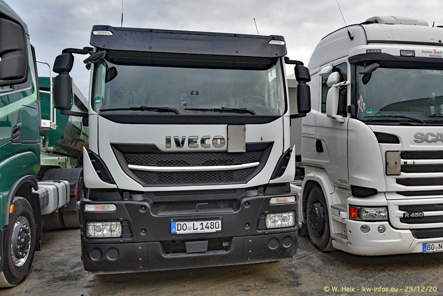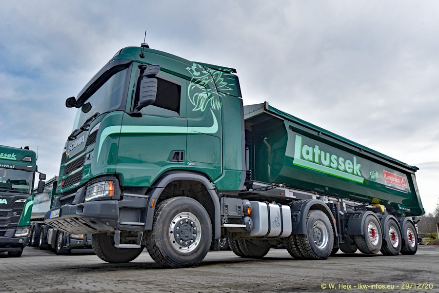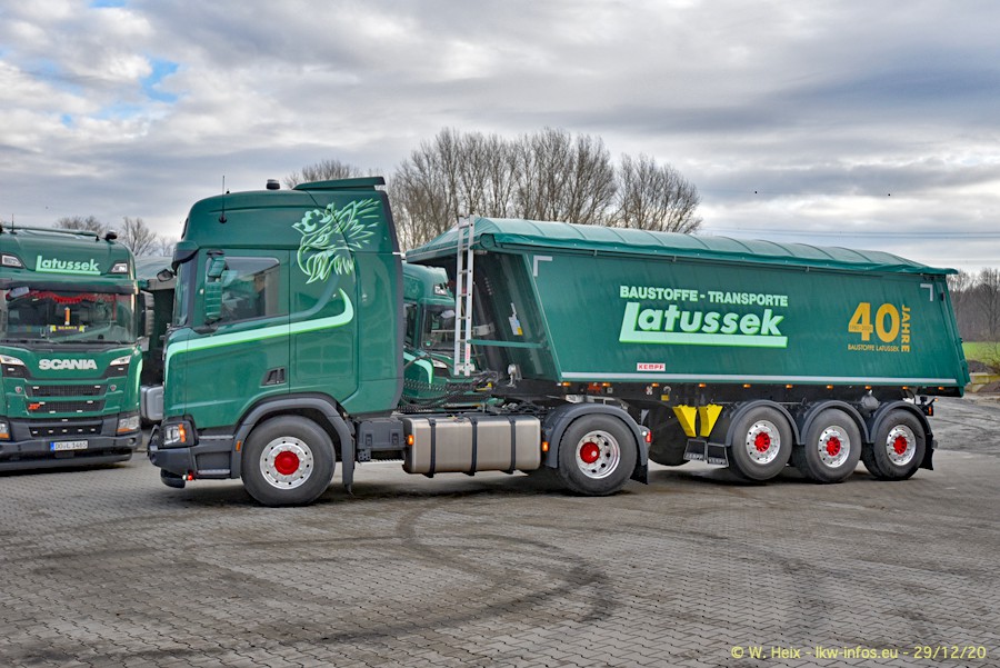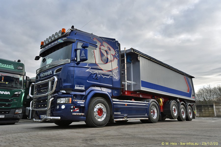 Dies war mein erster Besuch bei der Firma Latussek in Dortmund. Der Fuhrpark besteht aus ca. 30 LKW. Das sind IVECO, MAN, SCANIA und VOLVO, wobei der größte Teil Fahrzeuge von SCANIA ist. Der blaue SCANIA R 520 V8 Streamline gehört auch zum Fuhrpark und es gibt noch den schönen SCANIA L 110 Oldtimer, der für den Fotobesuch extra aus der Garage geholt wurde. Der LKW ist von 1973, hat 305 PS und ist in einem guten Zustand, die Restaurierung ist schon über 15 Jahre her. Bei Latussek ist es wie bei vielen Firmen: Nur Weihnachten bzw. zwischen den Feiertagen sind so gut wie alle LKW zuhause. Zwei fehlten, weil diese im Einsatz waren.