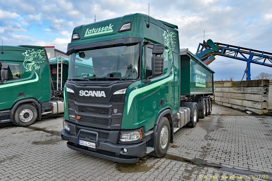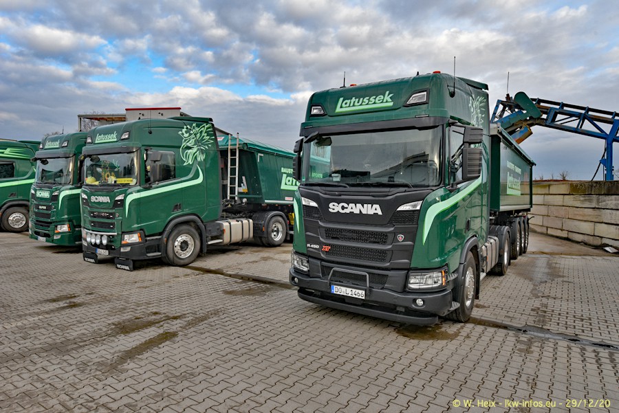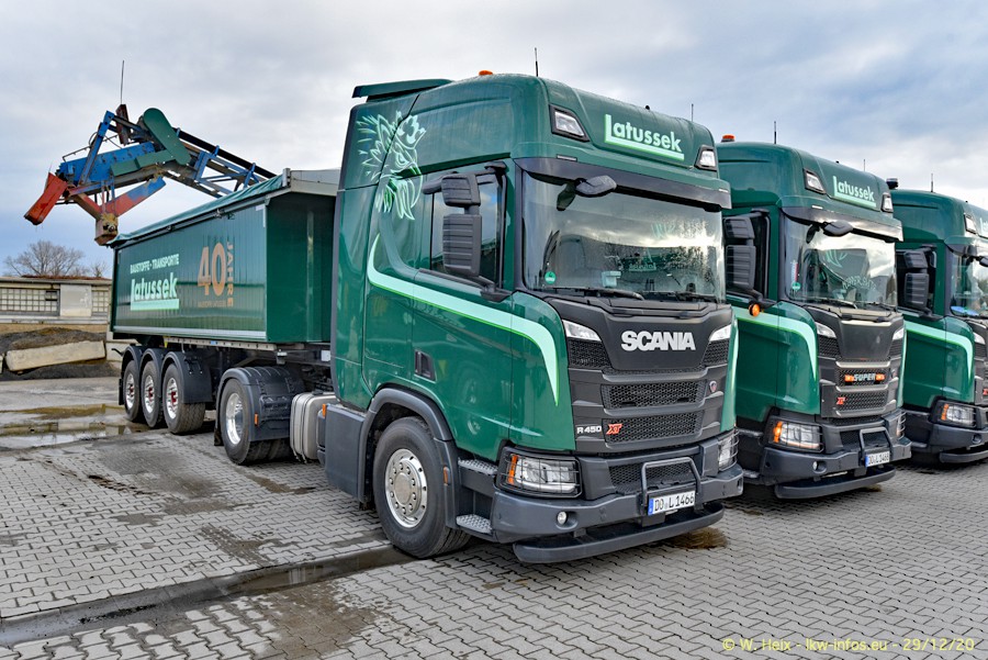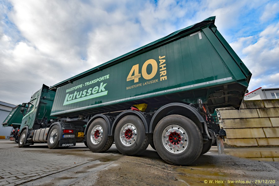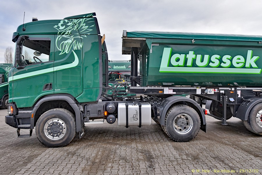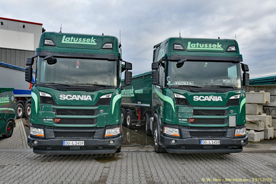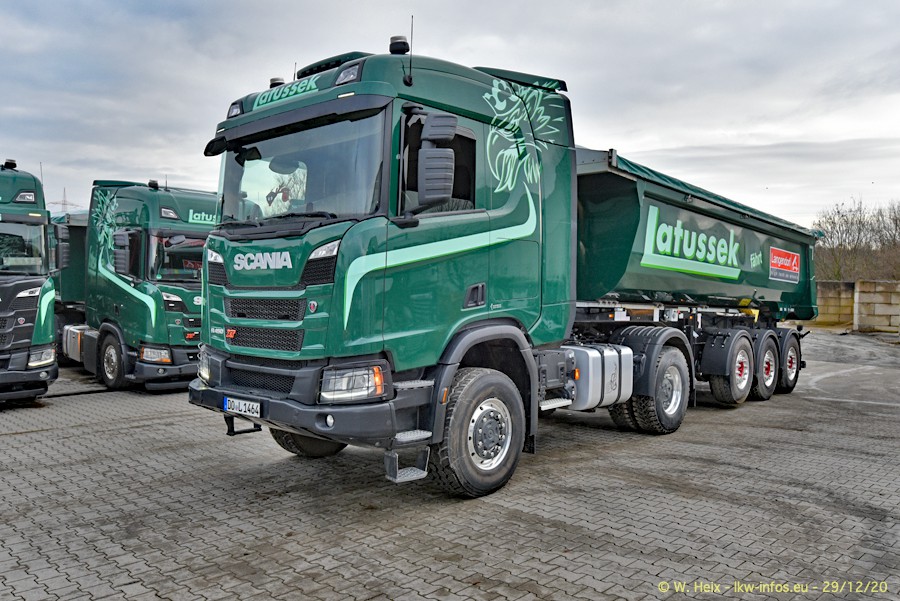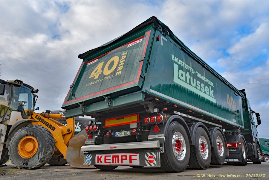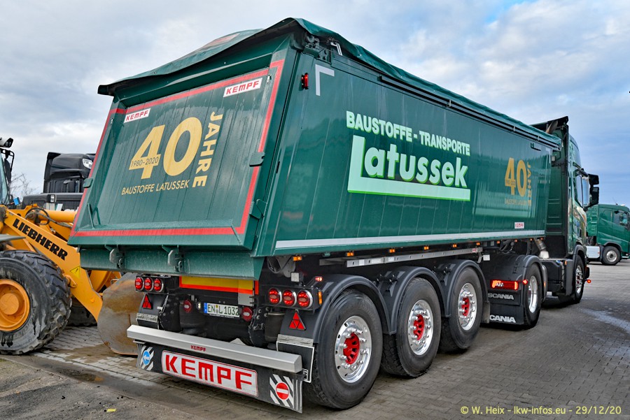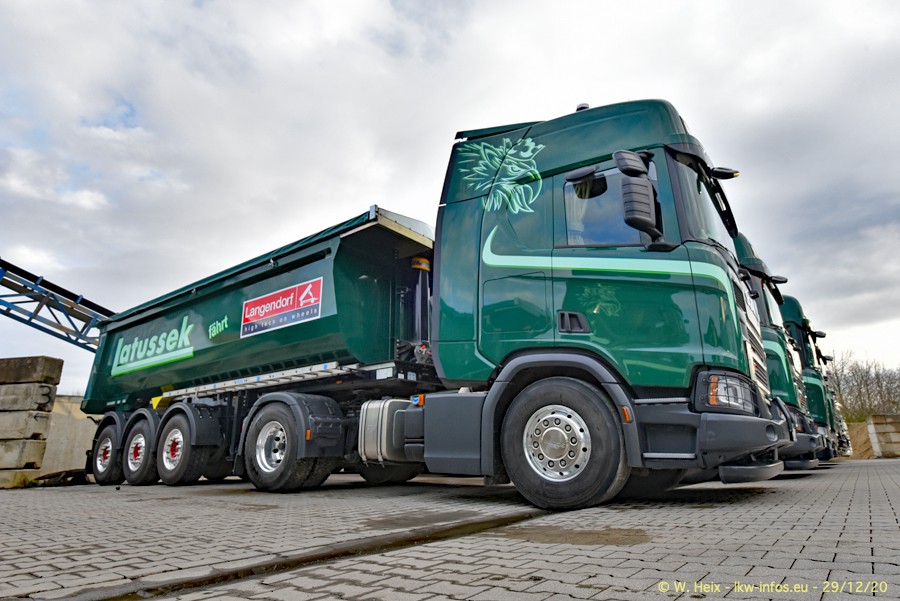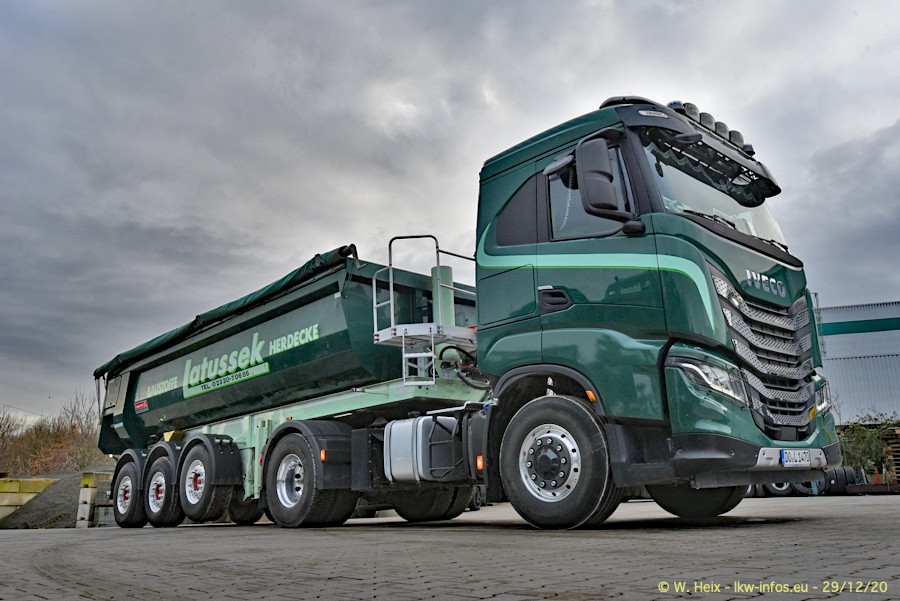 Dies war mein erster Besuch bei der Firma Latussek in Dortmund. Der Fuhrpark besteht aus ca. 30 LKW. Das sind IVECO, MAN, SCANIA und VOLVO, wobei der größte Teil Fahrzeuge von SCANIA ist. Der blaue SCANIA R 520 V8 Streamline gehört auch zum Fuhrpark und es gibt noch den schönen SCANIA L 110 Oldtimer, der für den Fotobesuch extra aus der Garage geholt wurde. Der LKW ist von 1973, hat 305 PS und ist in einem guten Zustand, die Restaurierung ist schon über 15 Jahre her. Bei Latussek ist es wie bei vielen Firmen: Nur Weihnachten bzw. zwischen den Feiertagen sind so gut wie alle LKW zuhause. Zwei fehlten, weil diese im Einsatz waren.