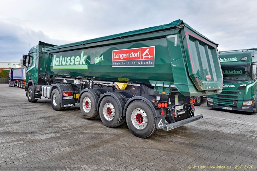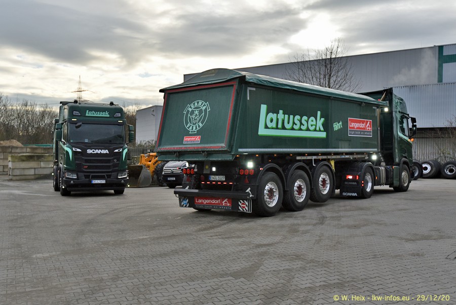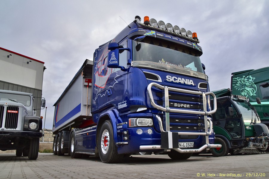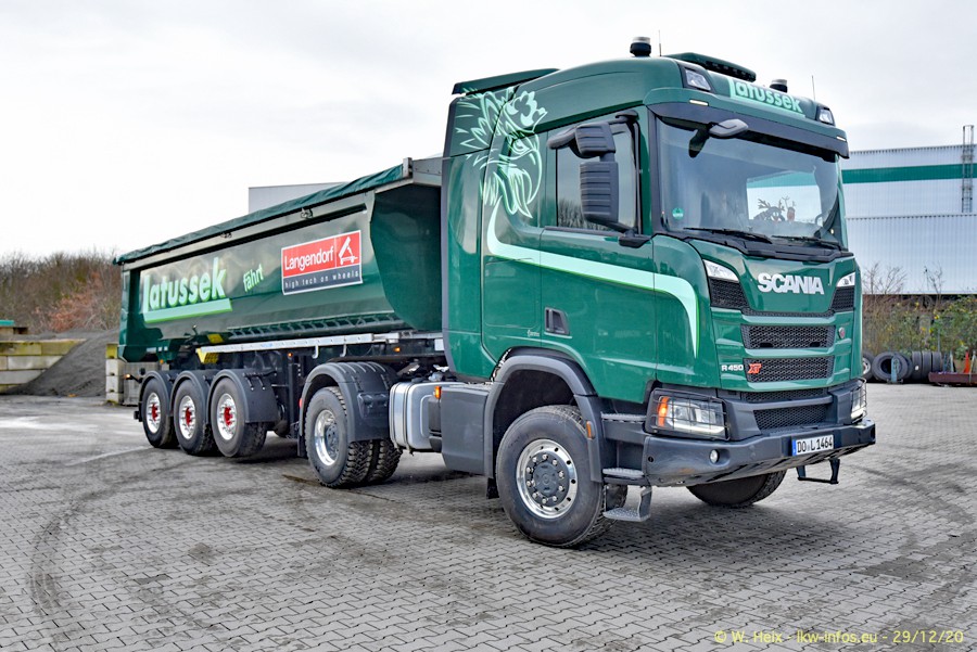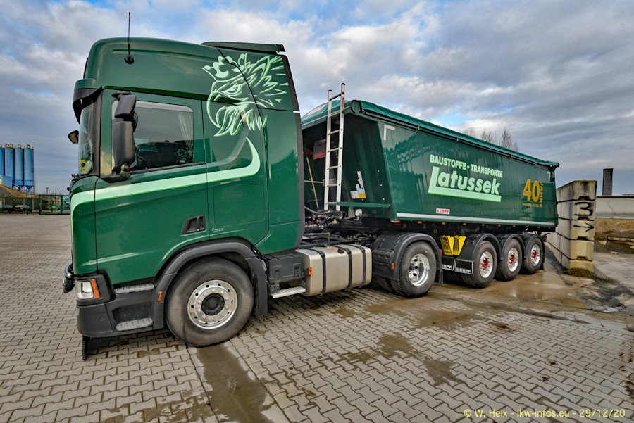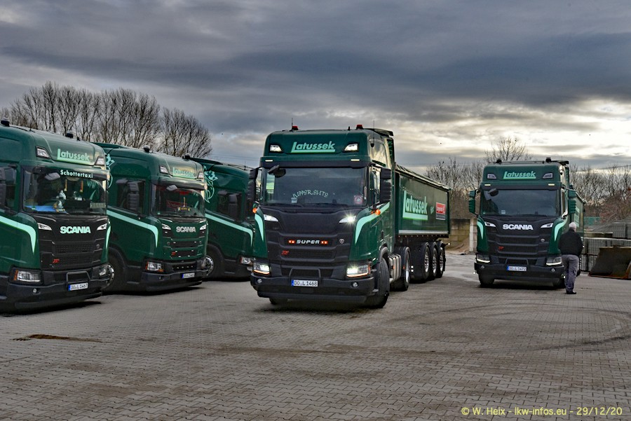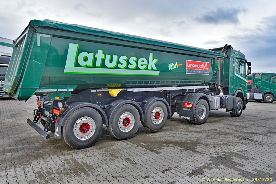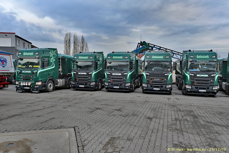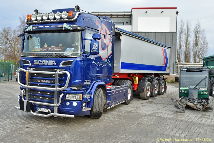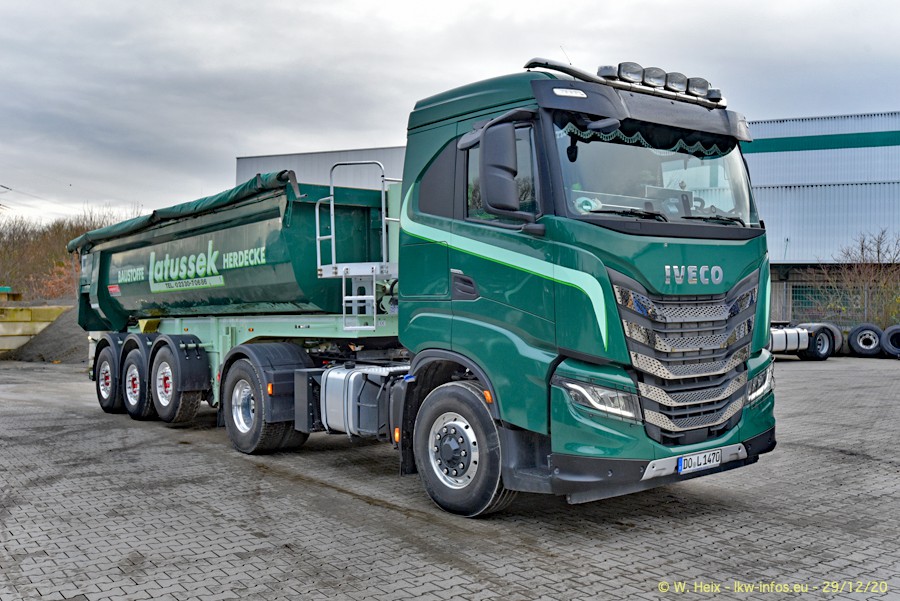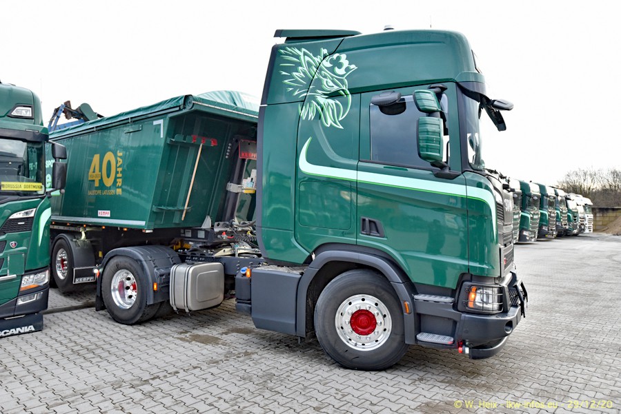 Dies war mein erster Besuch bei der Firma Latussek in Dortmund. Der Fuhrpark besteht aus ca. 30 LKW. Das sind IVECO, MAN, SCANIA und VOLVO, wobei der größte Teil Fahrzeuge von SCANIA ist. Der blaue SCANIA R 520 V8 Streamline gehört auch zum Fuhrpark und es gibt noch den schönen SCANIA L 110 Oldtimer, der für den Fotobesuch extra aus der Garage geholt wurde. Der LKW ist von 1973, hat 305 PS und ist in einem guten Zustand, die Restaurierung ist schon über 15 Jahre her. Bei Latussek ist es wie bei vielen Firmen: Nur Weihnachten bzw. zwischen den Feiertagen sind so gut wie alle LKW zuhause. Zwei fehlten, weil diese im Einsatz waren.
