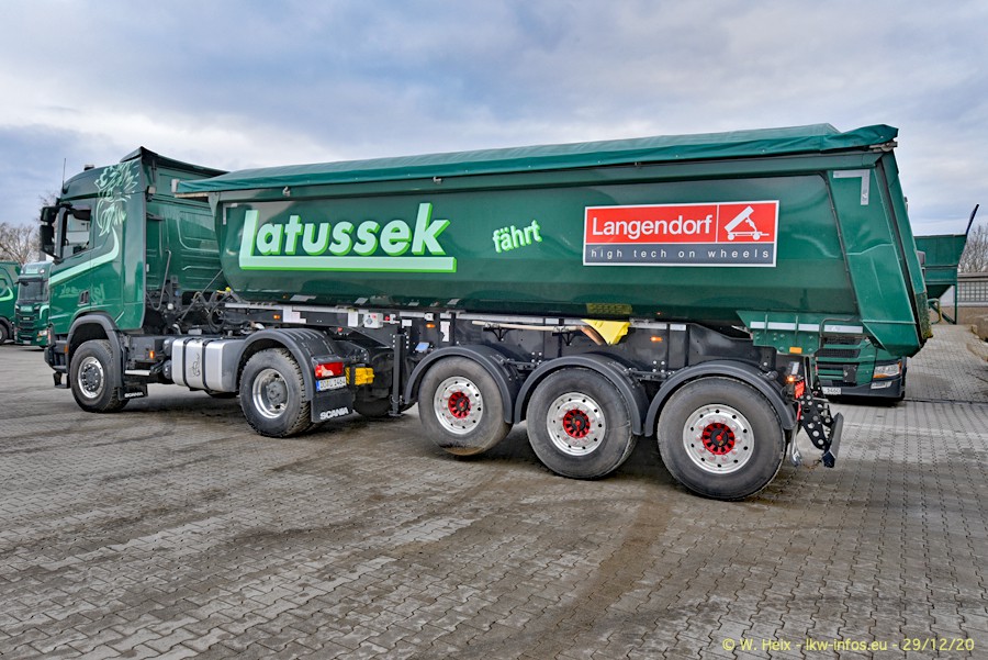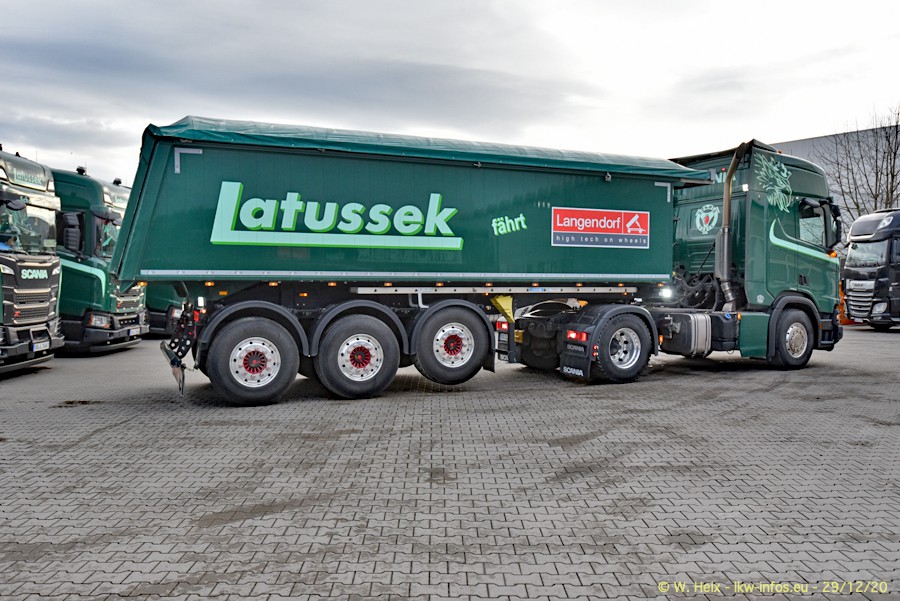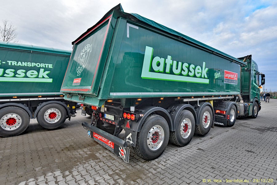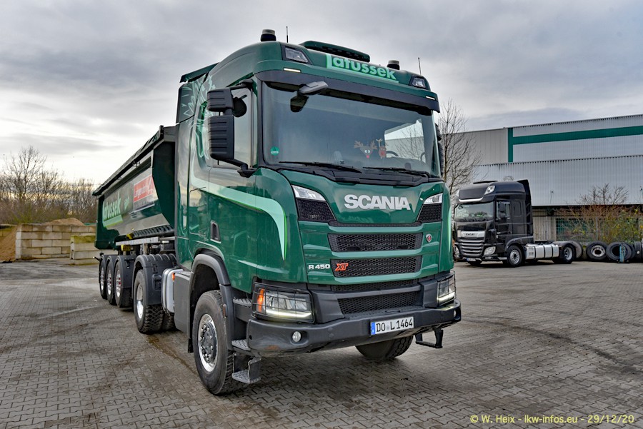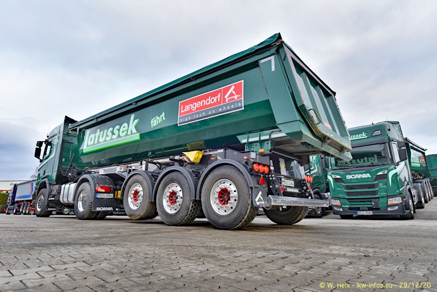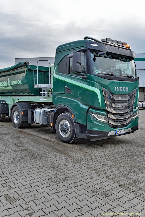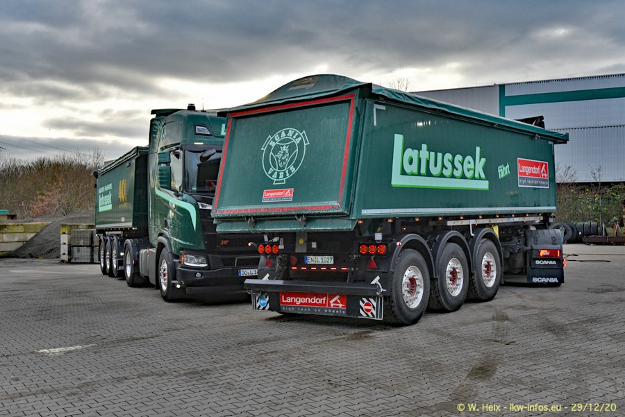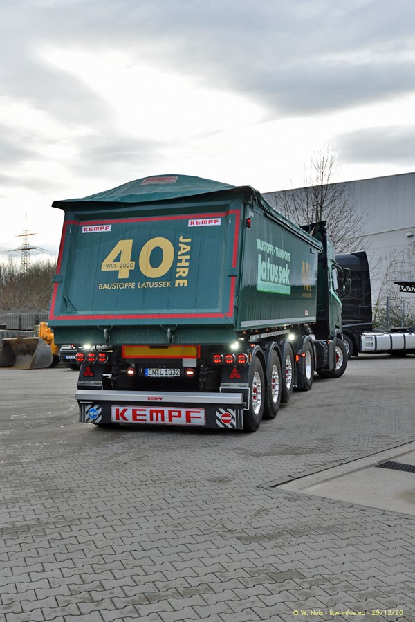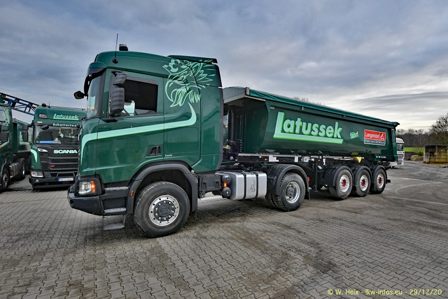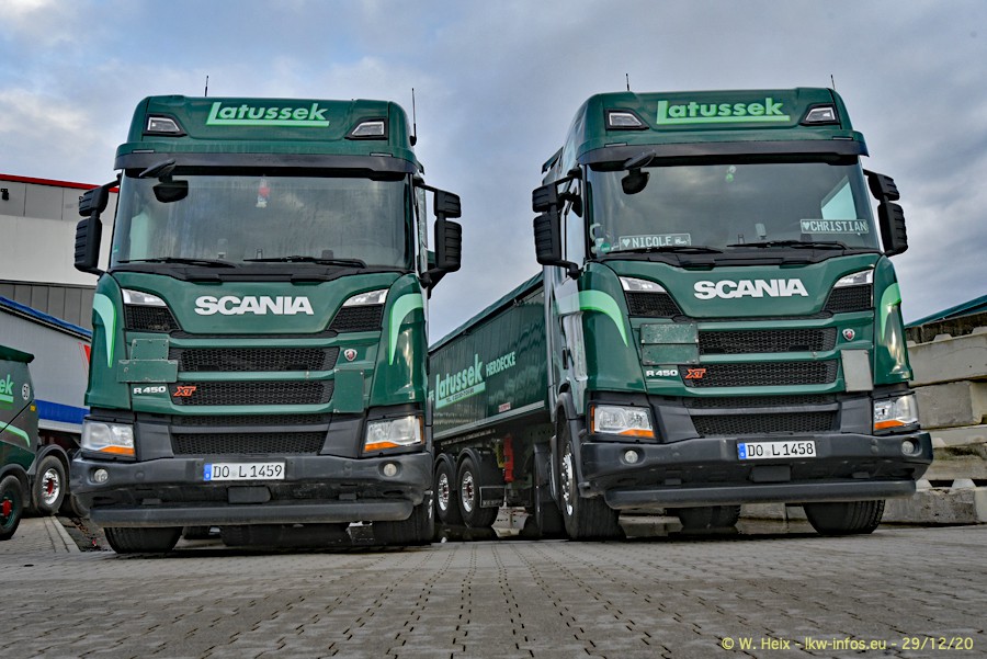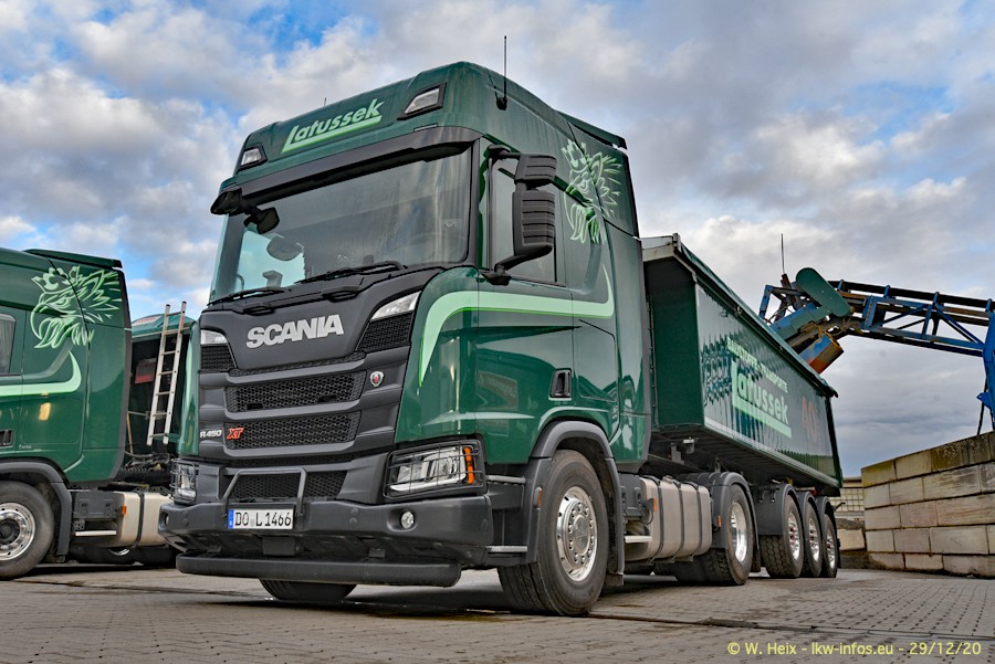 Dies war mein erster Besuch bei der Firma Latussek in Dortmund. Der Fuhrpark besteht aus ca. 30 LKW. Das sind IVECO, MAN, SCANIA und VOLVO, wobei der größte Teil Fahrzeuge von SCANIA ist. Der blaue SCANIA R 520 V8 Streamline gehört auch zum Fuhrpark und es gibt noch den schönen SCANIA L 110 Oldtimer, der für den Fotobesuch extra aus der Garage geholt wurde. Der LKW ist von 1973, hat 305 PS und ist in einem guten Zustand, die Restaurierung ist schon über 15 Jahre her. Bei Latussek ist es wie bei vielen Firmen: Nur Weihnachten bzw. zwischen den Feiertagen sind so gut wie alle LKW zuhause. Zwei fehlten, weil diese im Einsatz waren.