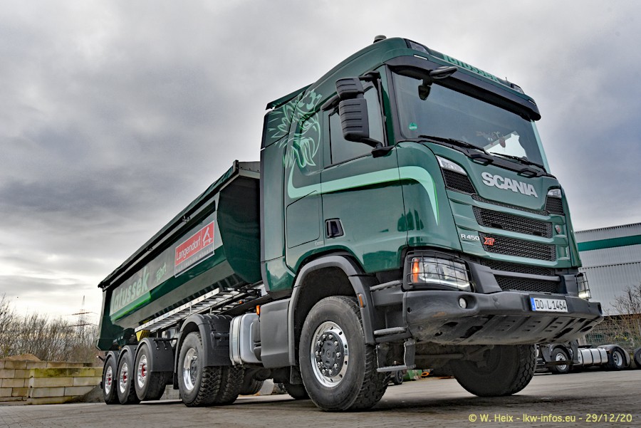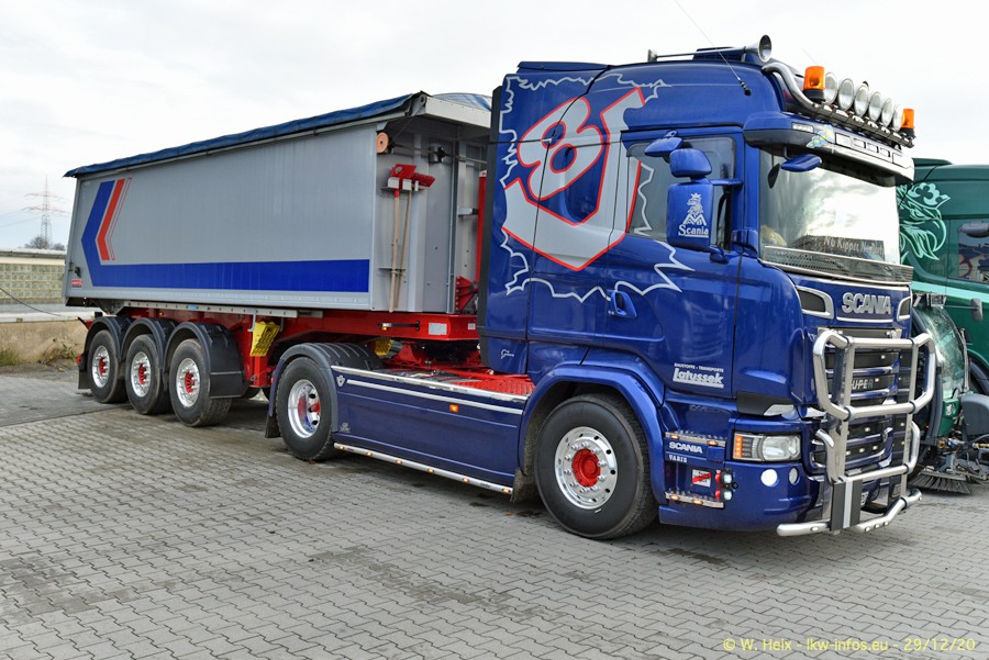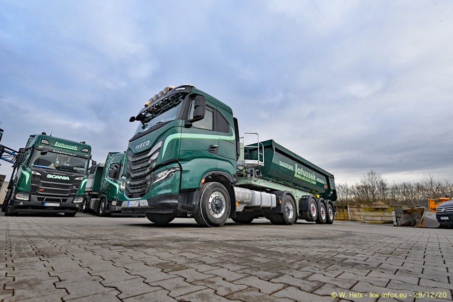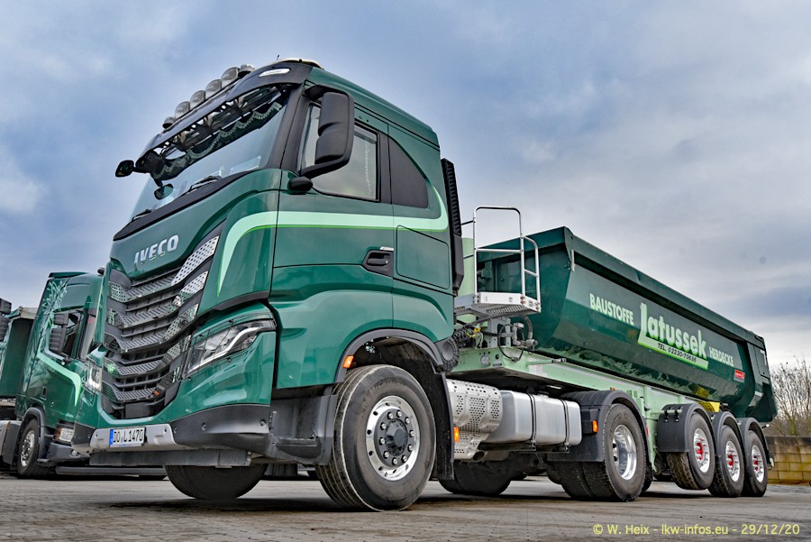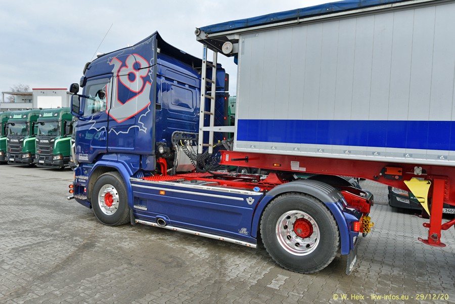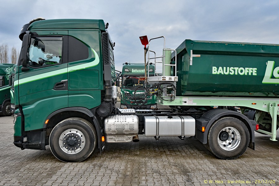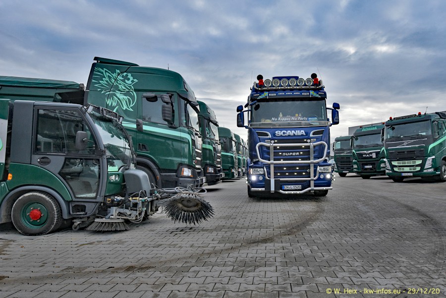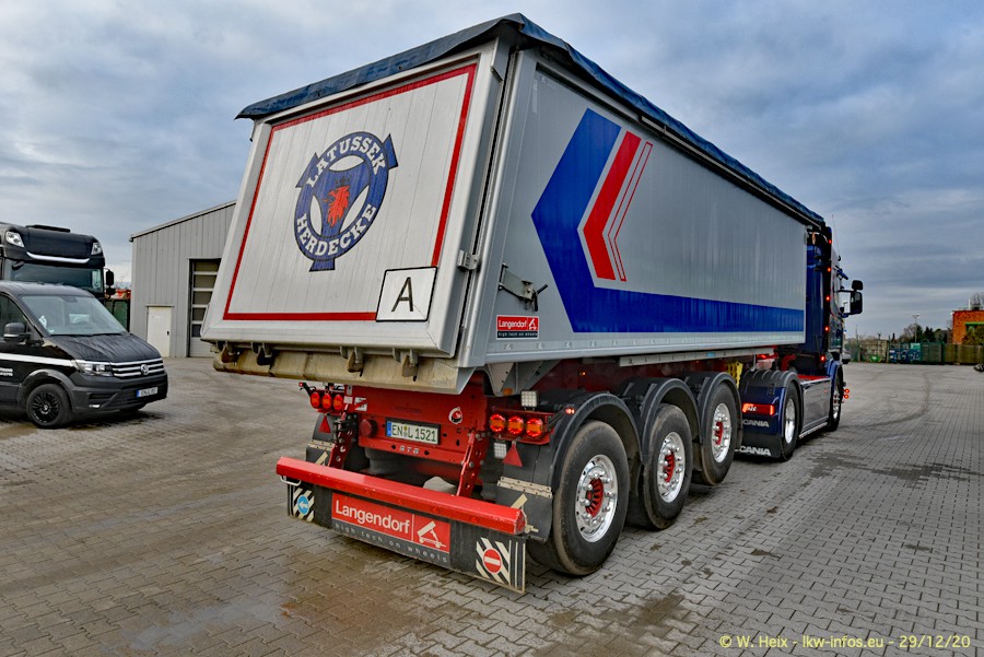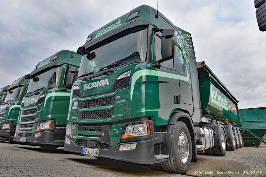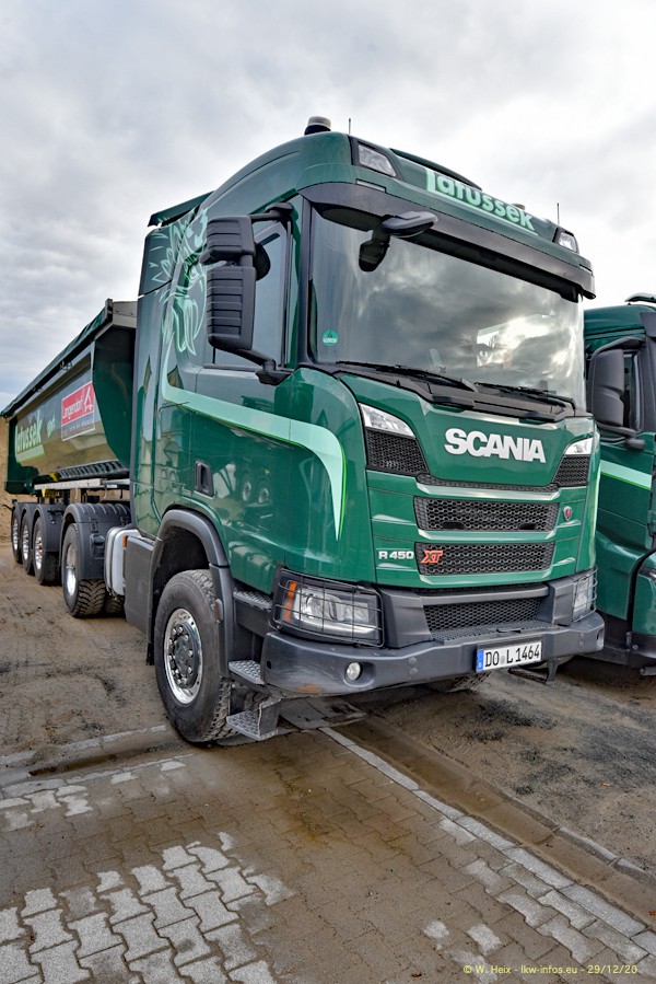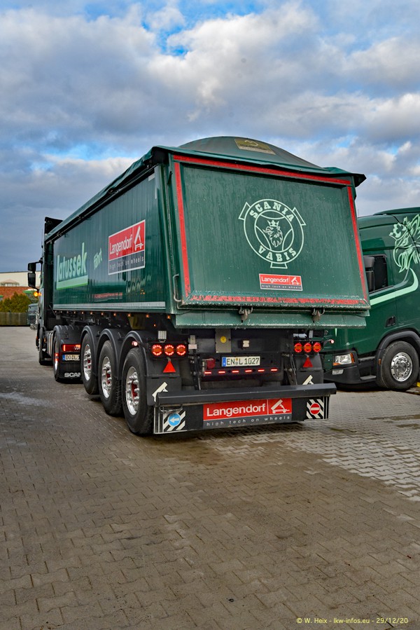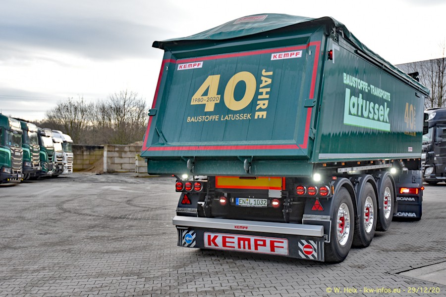 Dies war mein erster Besuch bei der Firma Latussek in Dortmund. Der Fuhrpark besteht aus ca. 30 LKW. Das sind IVECO, MAN, SCANIA und VOLVO, wobei der größte Teil Fahrzeuge von SCANIA ist. Der blaue SCANIA R 520 V8 Streamline gehört auch zum Fuhrpark und es gibt noch den schönen SCANIA L 110 Oldtimer, der für den Fotobesuch extra aus der Garage geholt wurde. Der LKW ist von 1973, hat 305 PS und ist in einem guten Zustand, die Restaurierung ist schon über 15 Jahre her. Bei Latussek ist es wie bei vielen Firmen: Nur Weihnachten bzw. zwischen den Feiertagen sind so gut wie alle LKW zuhause. Zwei fehlten, weil diese im Einsatz waren.