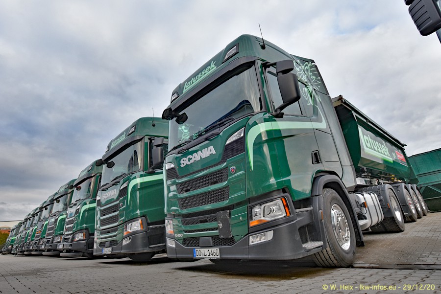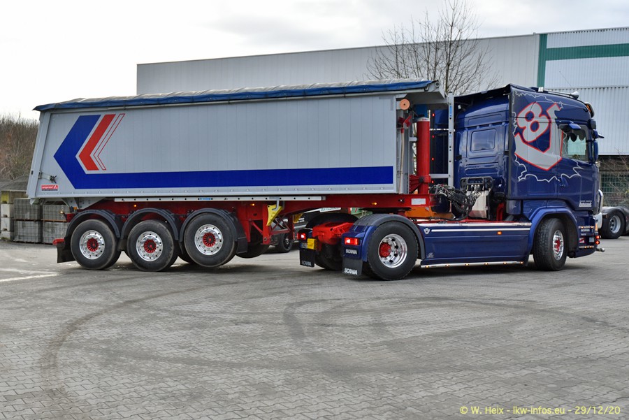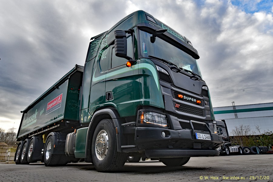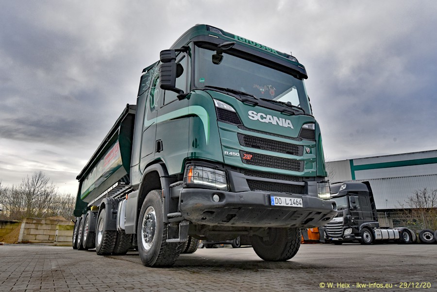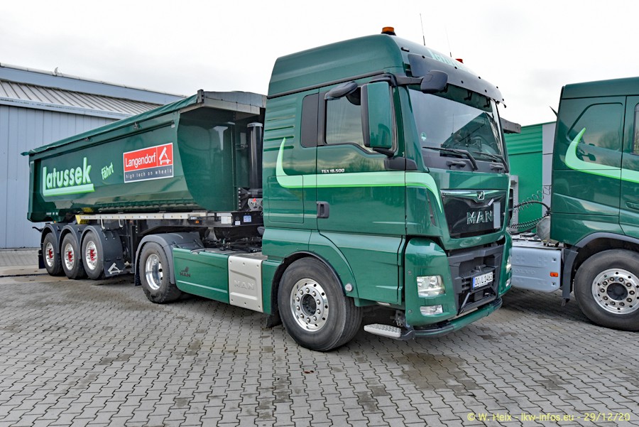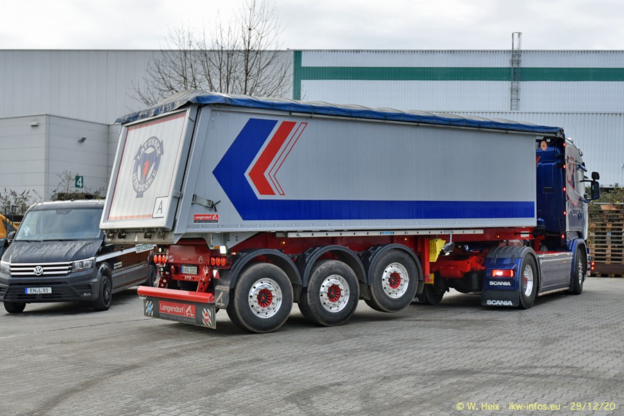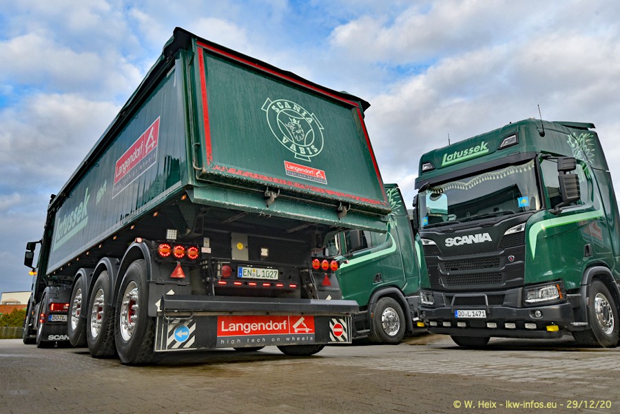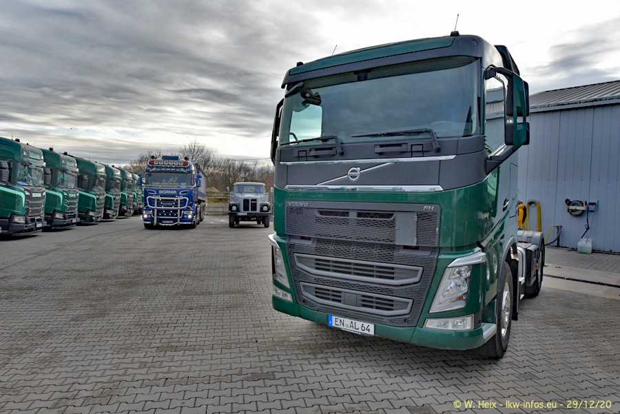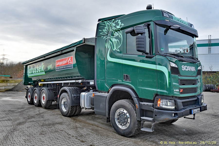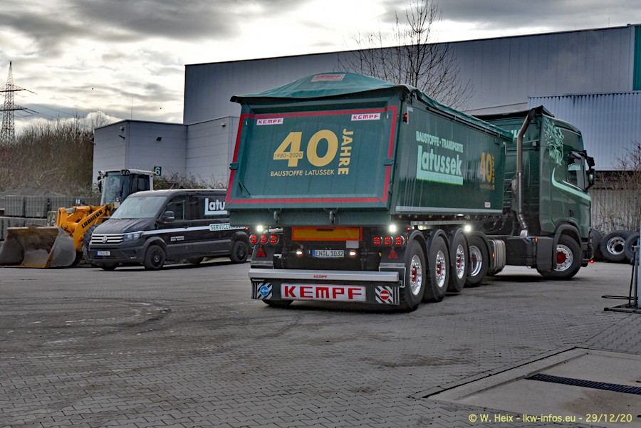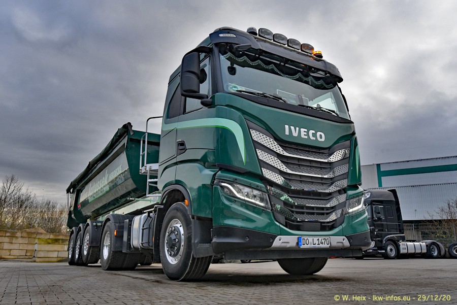 Dies war mein erster Besuch bei der Firma Latussek in Dortmund. Der Fuhrpark besteht aus ca. 30 LKW. Das sind IVECO, MAN, SCANIA und VOLVO, wobei der größte Teil Fahrzeuge von SCANIA ist. Der blaue SCANIA R 520 V8 Streamline gehört auch zum Fuhrpark und es gibt noch den schönen SCANIA L 110 Oldtimer, der für den Fotobesuch extra aus der Garage geholt wurde. Der LKW ist von 1973, hat 305 PS und ist in einem guten Zustand, die Restaurierung ist schon über 15 Jahre her. Bei Latussek ist es wie bei vielen Firmen: Nur Weihnachten bzw. zwischen den Feiertagen sind so gut wie alle LKW zuhause. Zwei fehlten, weil diese im Einsatz waren.