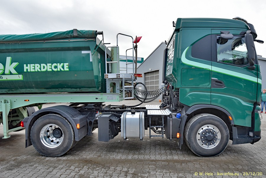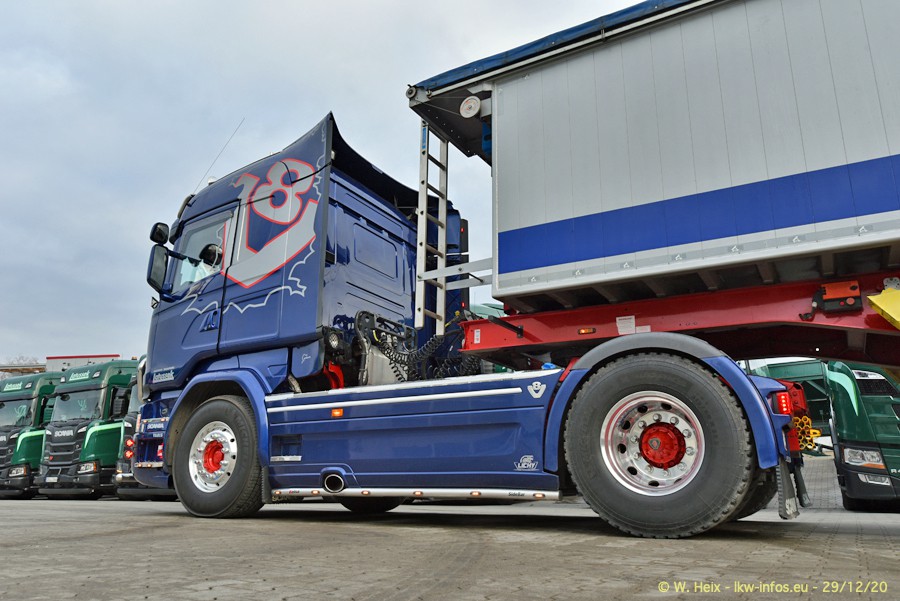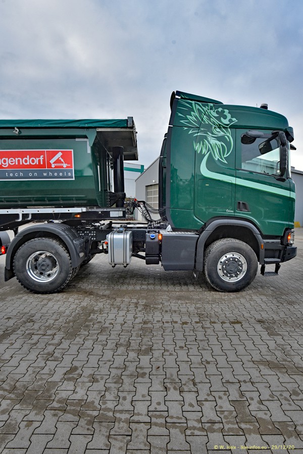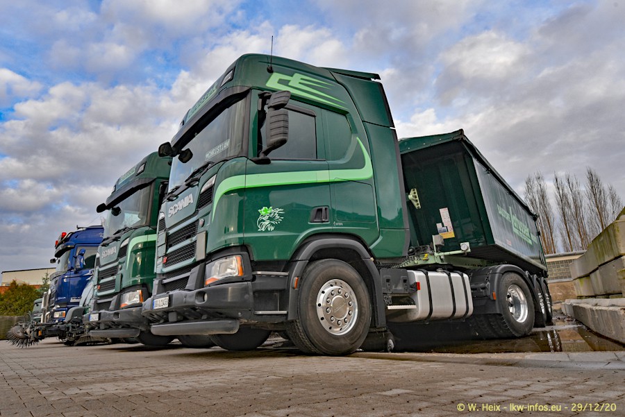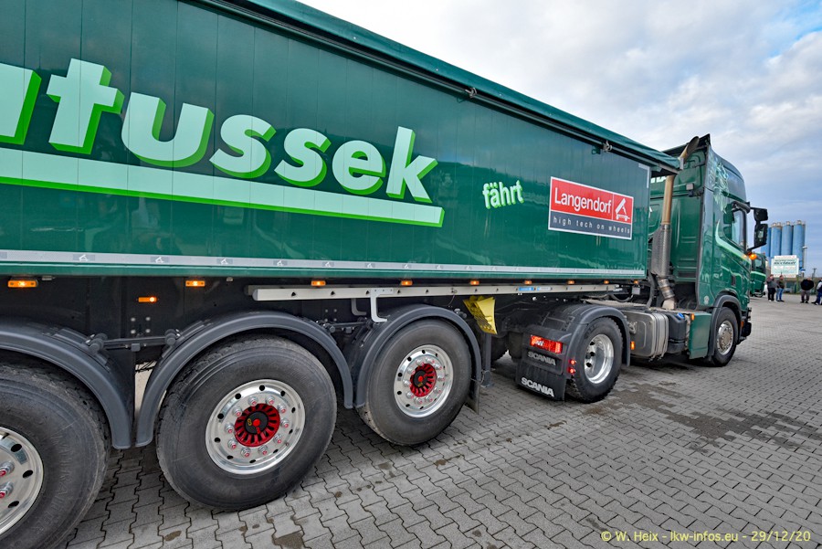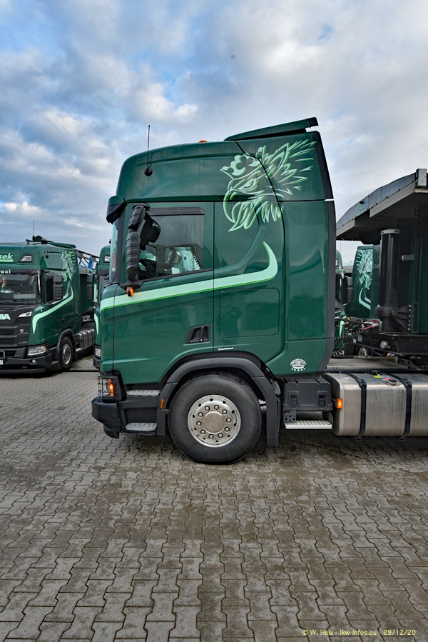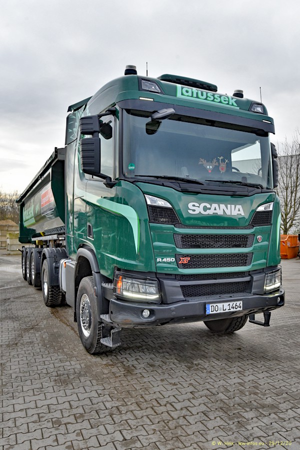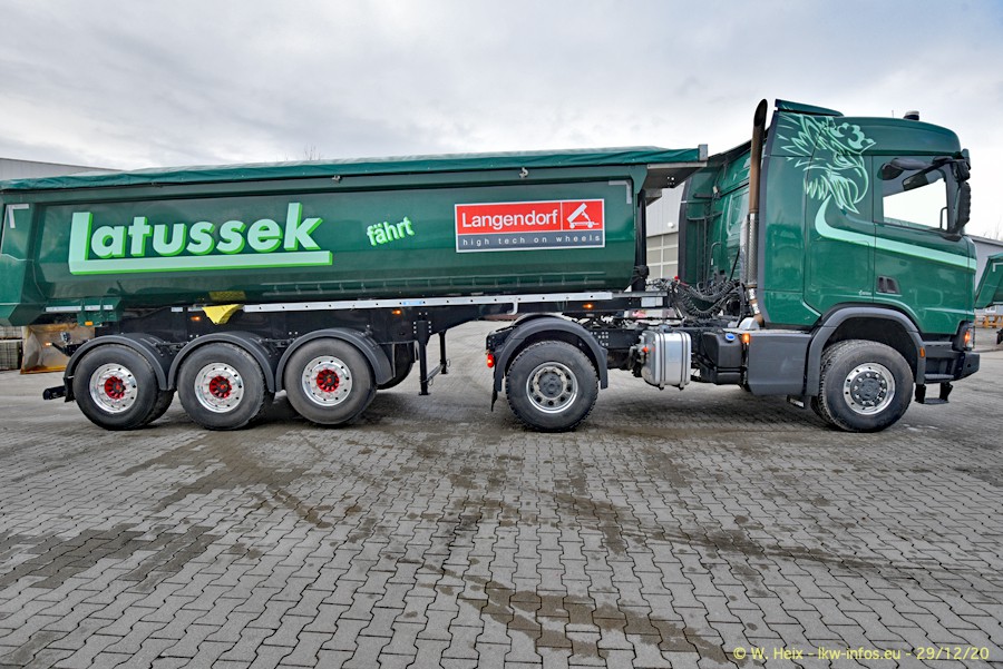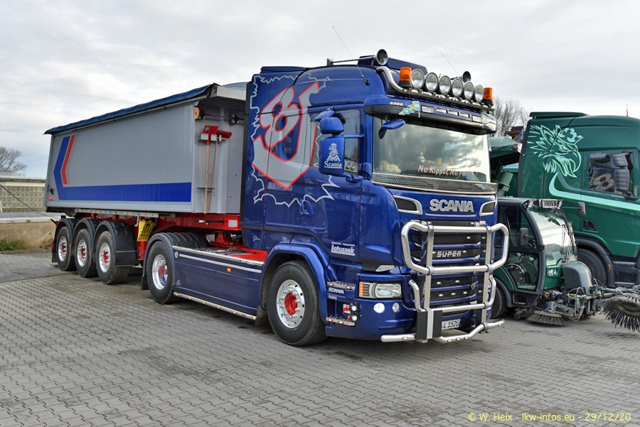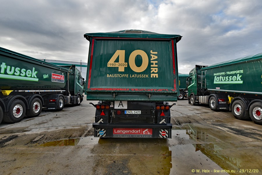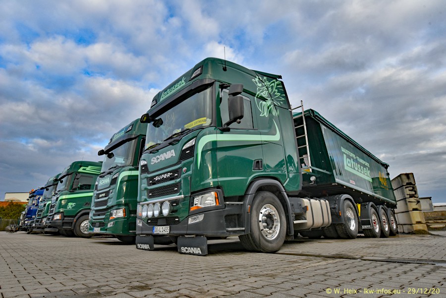 Dies war mein erster Besuch bei der Firma Latussek in Dortmund. Der Fuhrpark besteht aus ca. 30 LKW. Das sind IVECO, MAN, SCANIA und VOLVO, wobei der größte Teil Fahrzeuge von SCANIA ist. Der blaue SCANIA R 520 V8 Streamline gehört auch zum Fuhrpark und es gibt noch den schönen SCANIA L 110 Oldtimer, der für den Fotobesuch extra aus der Garage geholt wurde. Der LKW ist von 1973, hat 305 PS und ist in einem guten Zustand, die Restaurierung ist schon über 15 Jahre her. Bei Latussek ist es wie bei vielen Firmen: Nur Weihnachten bzw. zwischen den Feiertagen sind so gut wie alle LKW zuhause. Zwei fehlten, weil diese im Einsatz waren.