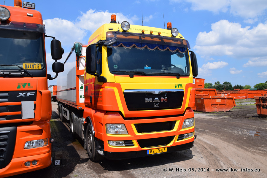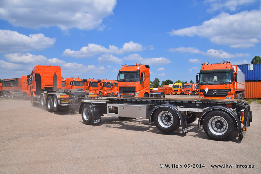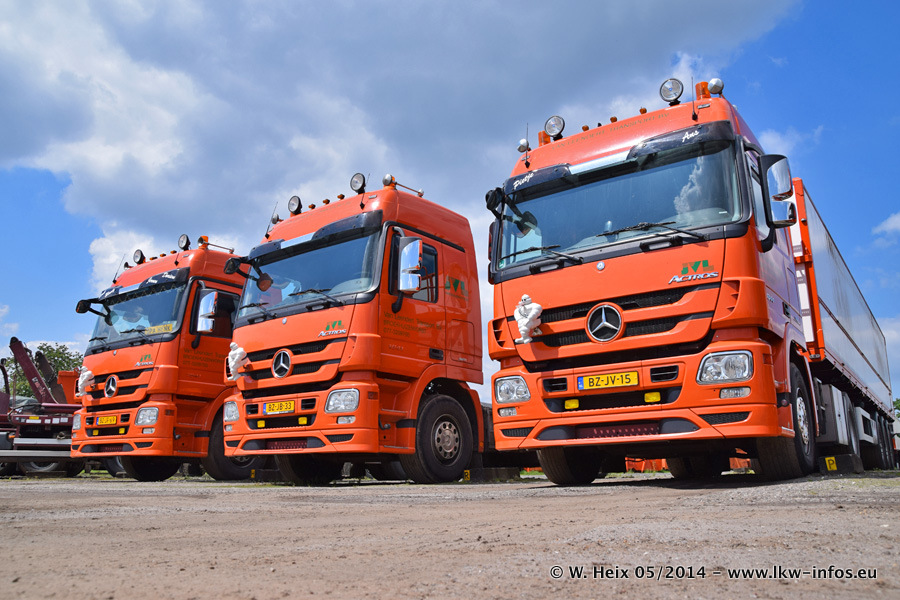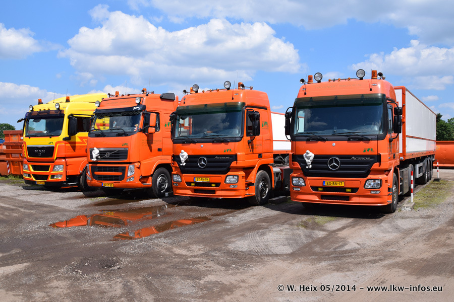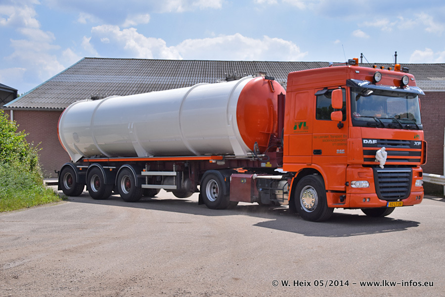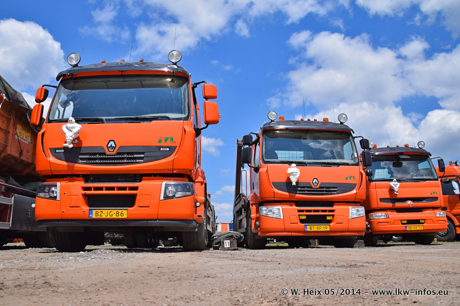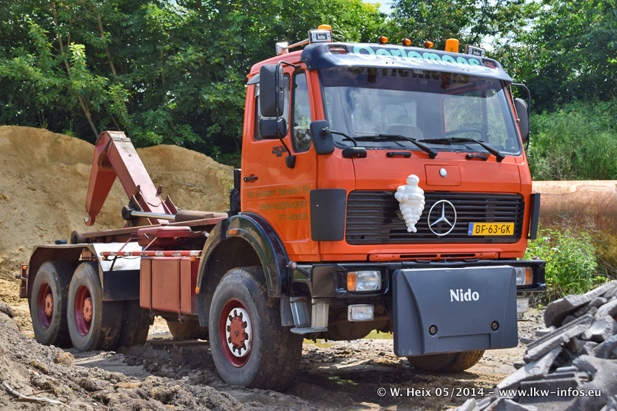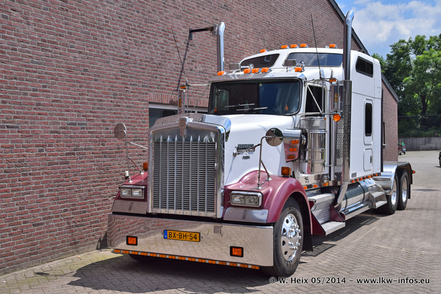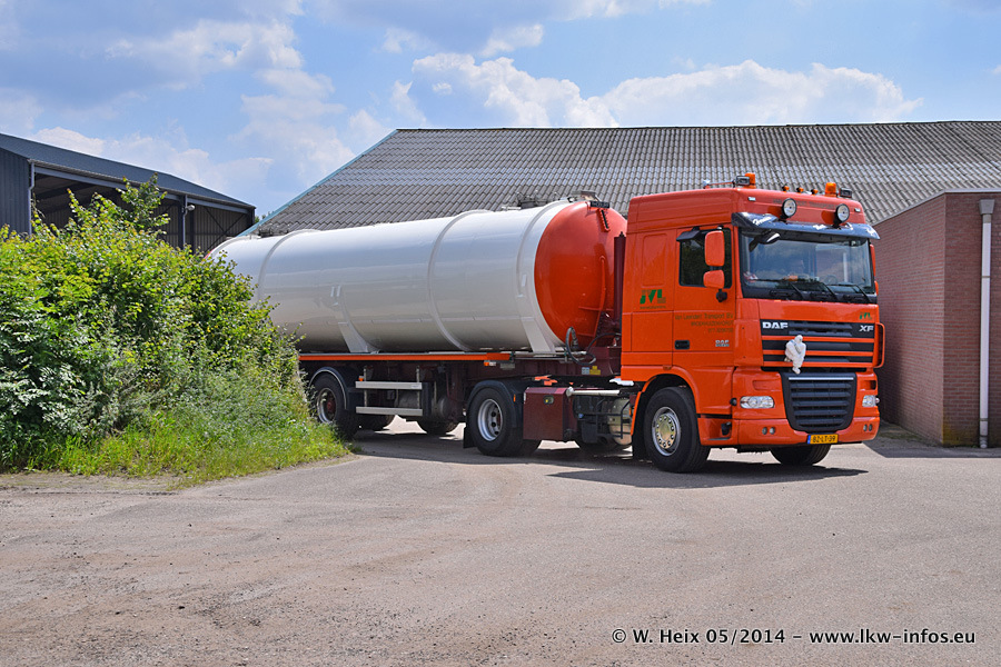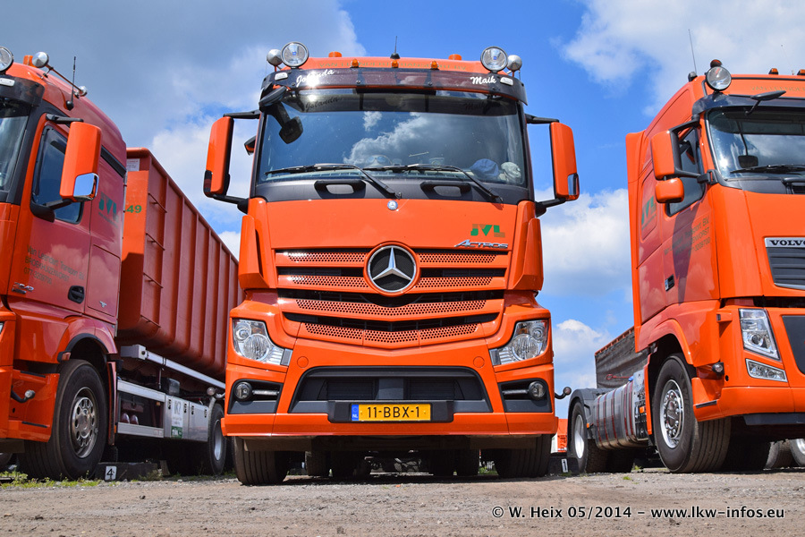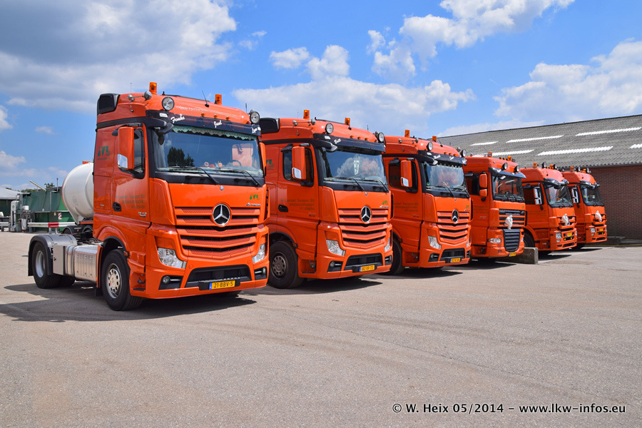 Der Fuhrpark besteht zur Zeit (Ende Mai 2014) aus 42 LKW der Hersteller MAN, Mercedes-Benz, Renault und Volvo. In der Woche vor meinem Besuch hat van Leendert zwei neue Volvo FH Euro 6 bekommen. Es gibt auch einen "Oldtimer", das ist ein Mercedes-Benz NG 2632 6x6. Dies war der erste LKW, den Erik van Leendert nach der Übernahme der Firma von seinem Vater im Jahr 1982 neu gekauft hat. Dieser LKW wird niemals verkauft und wird sogar im Nahverkehr und zum Umsetzen von Containern auf dem Hof verwendet. Der Kenworth W 900 ist Baujahr 2000 und wird nicht im normalen Tagesgeschäft eingesetzt. Nur für diverse Veranstaltungen wie z. B. den jährlichen Truckrun in Horst kommt der US-Truck zum Einsatz.