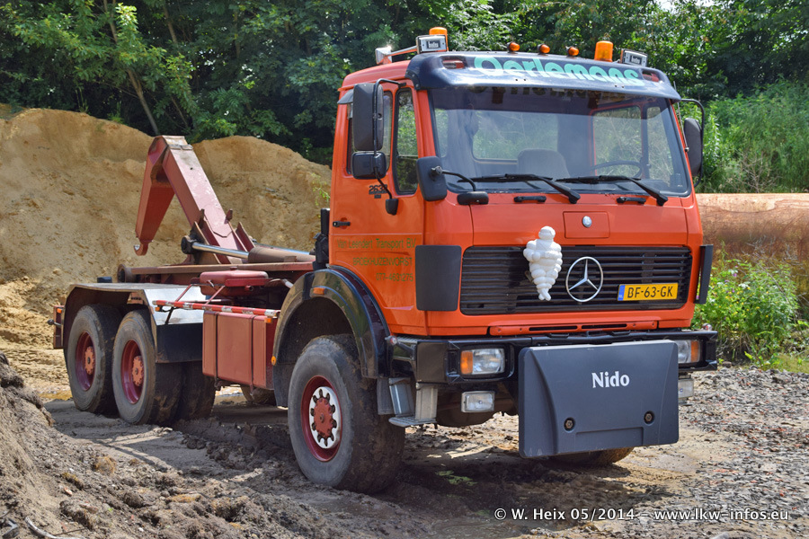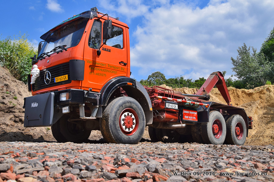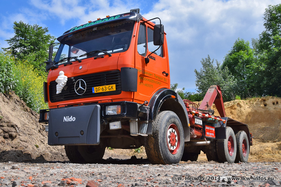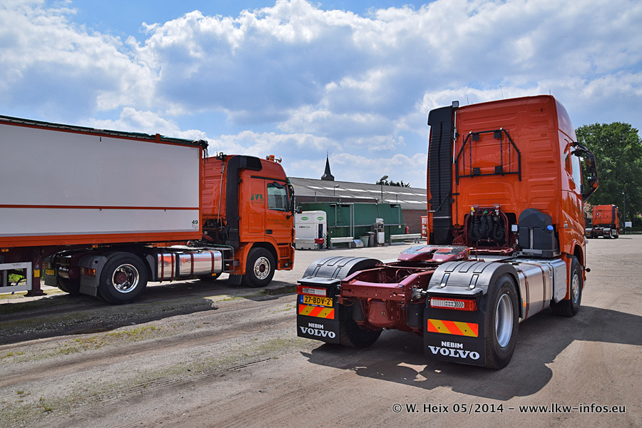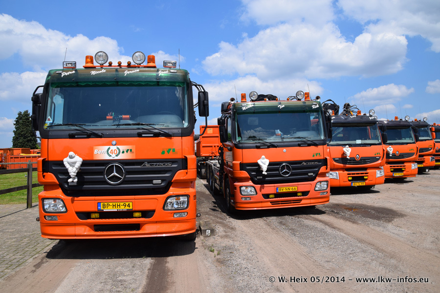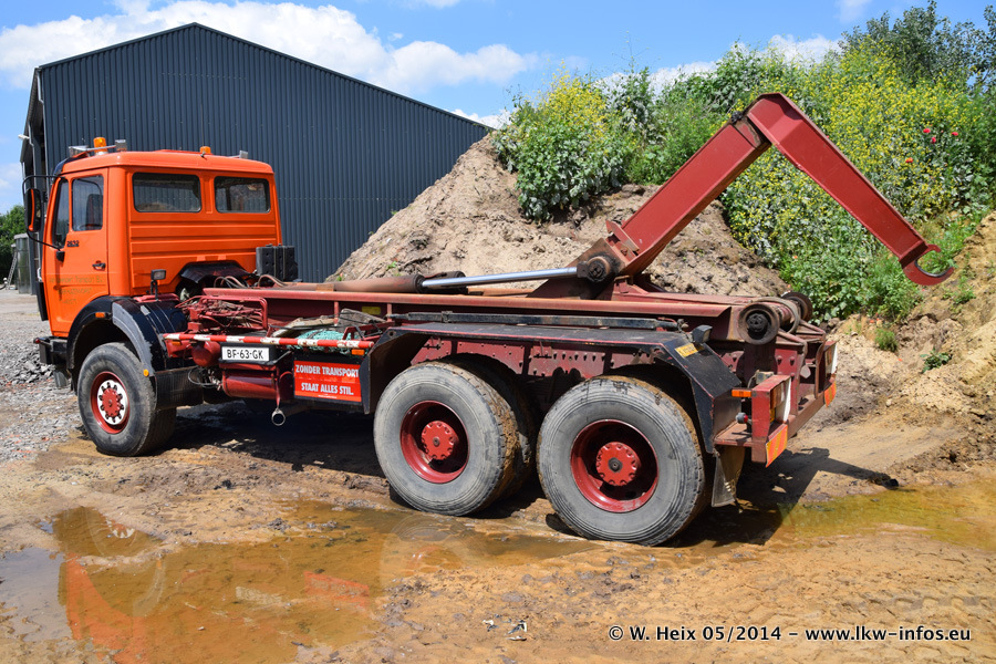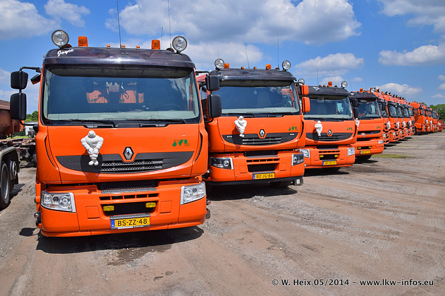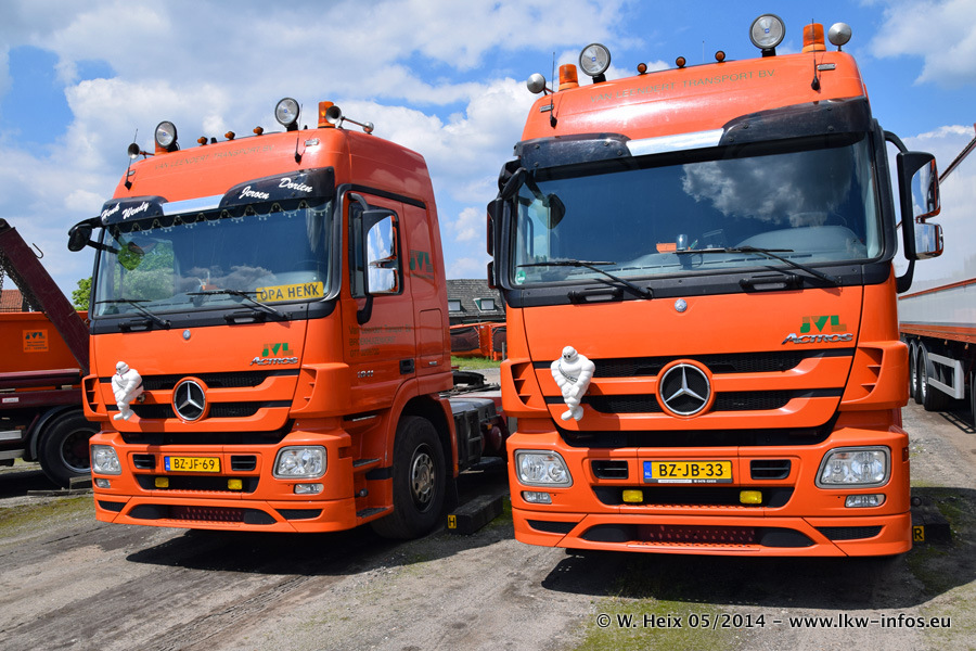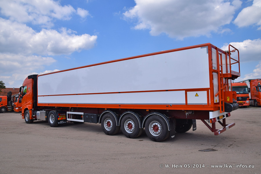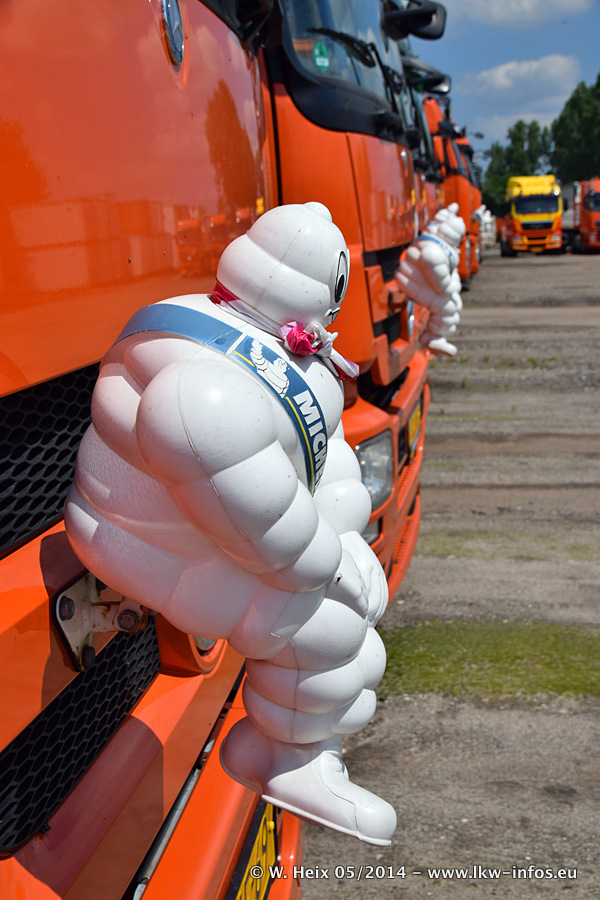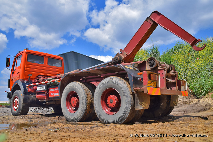 Der Fuhrpark besteht zur Zeit (Ende Mai 2014) aus 42 LKW der Hersteller MAN, Mercedes-Benz, Renault und Volvo. In der Woche vor meinem Besuch hat van Leendert zwei neue Volvo FH Euro 6 bekommen. Es gibt auch einen "Oldtimer", das ist ein Mercedes-Benz NG 2632 6x6. Dies war der erste LKW, den Erik van Leendert nach der Übernahme der Firma von seinem Vater im Jahr 1982 neu gekauft hat. Dieser LKW wird niemals verkauft und wird sogar im Nahverkehr und zum Umsetzen von Containern auf dem Hof verwendet. Der Kenworth W 900 ist Baujahr 2000 und wird nicht im normalen Tagesgeschäft eingesetzt. Nur für diverse Veranstaltungen wie z. B. den jährlichen Truckrun in Horst kommt der US-Truck zum Einsatz.