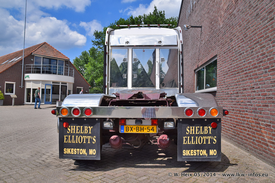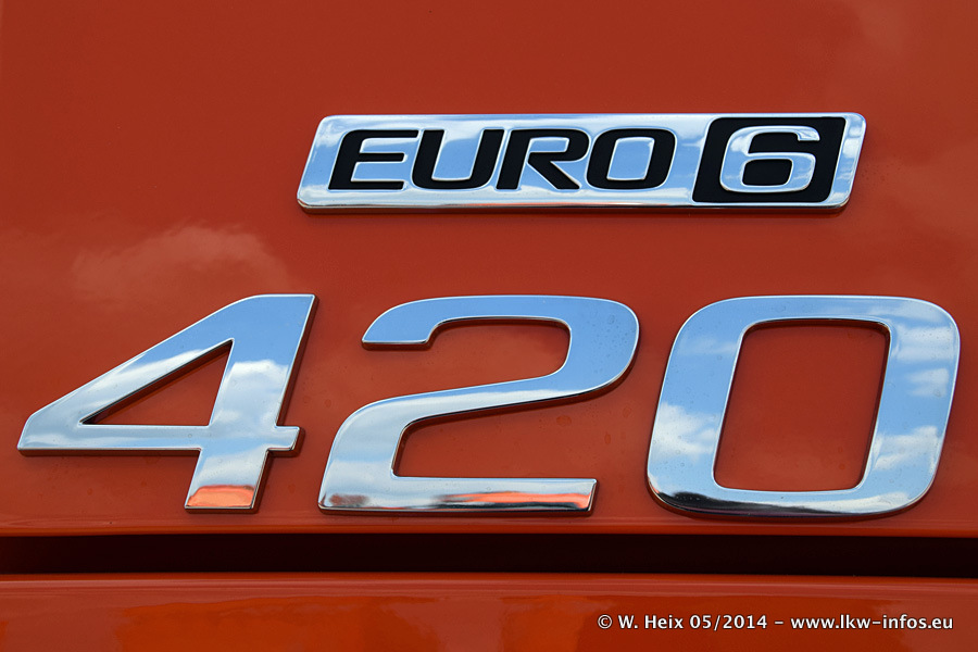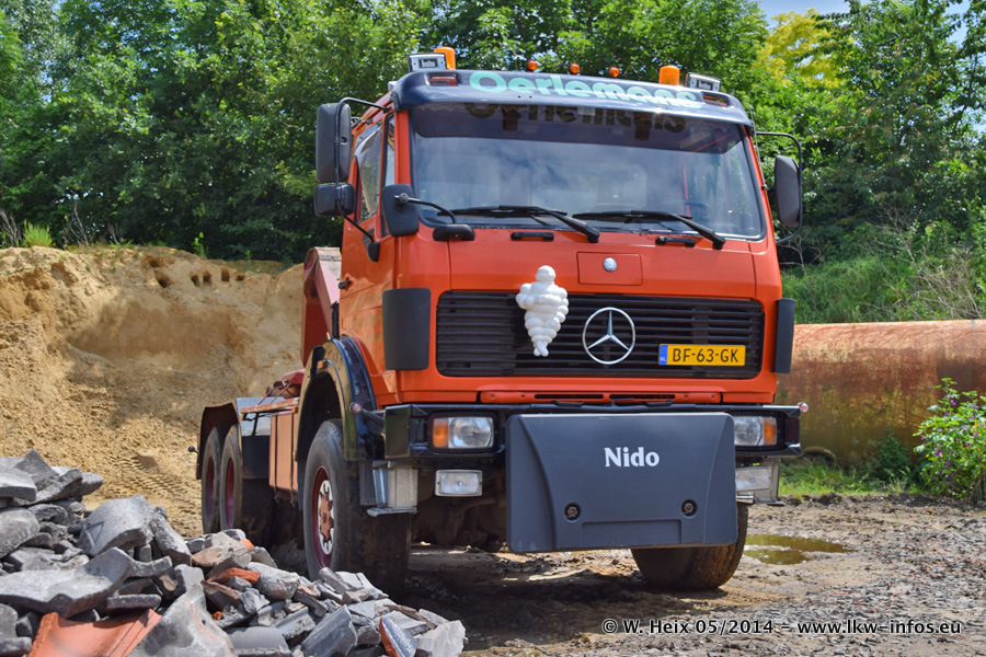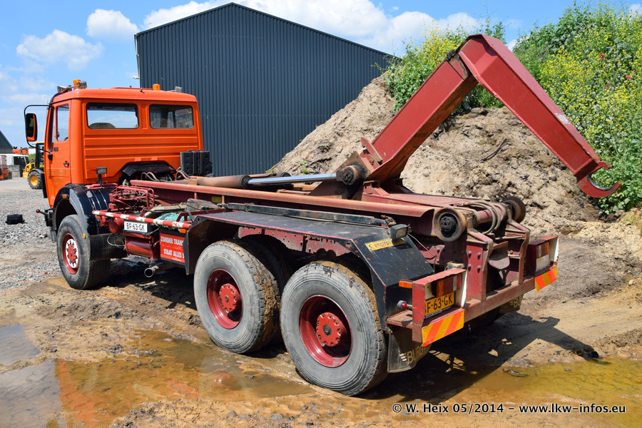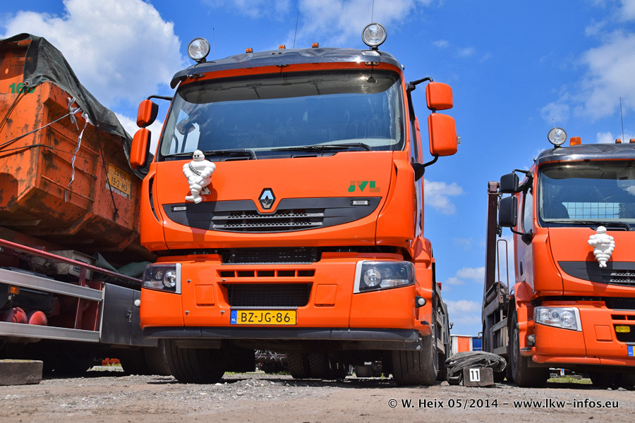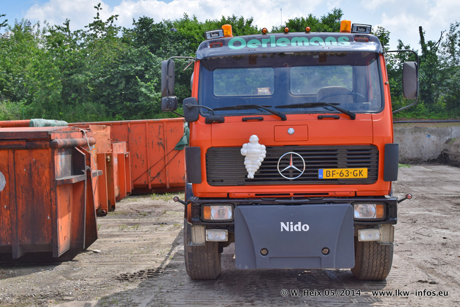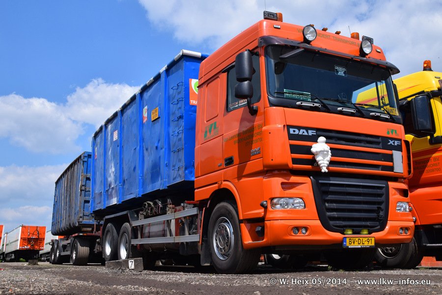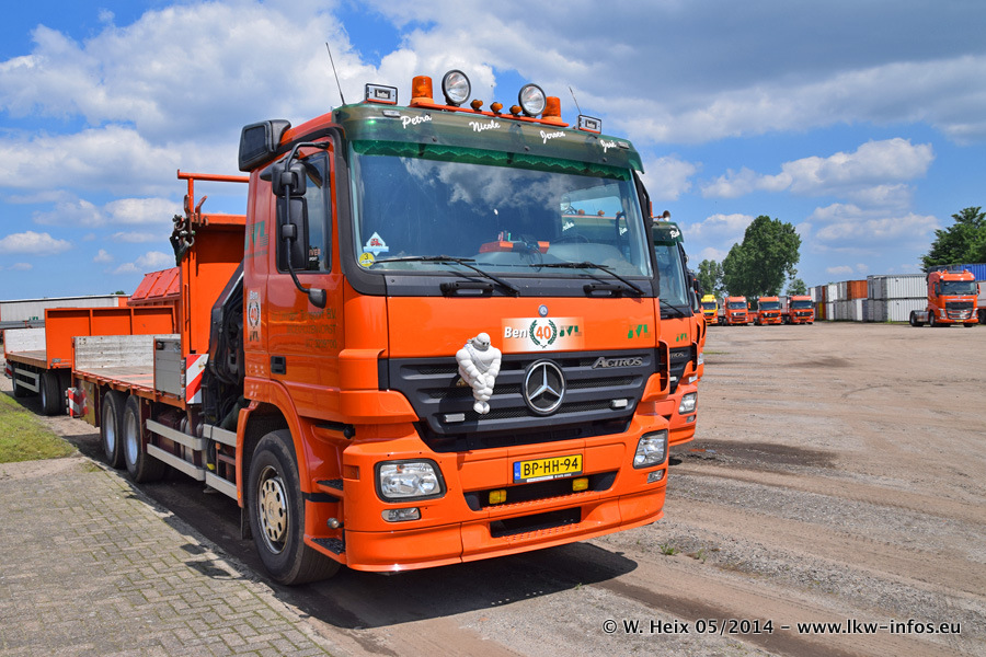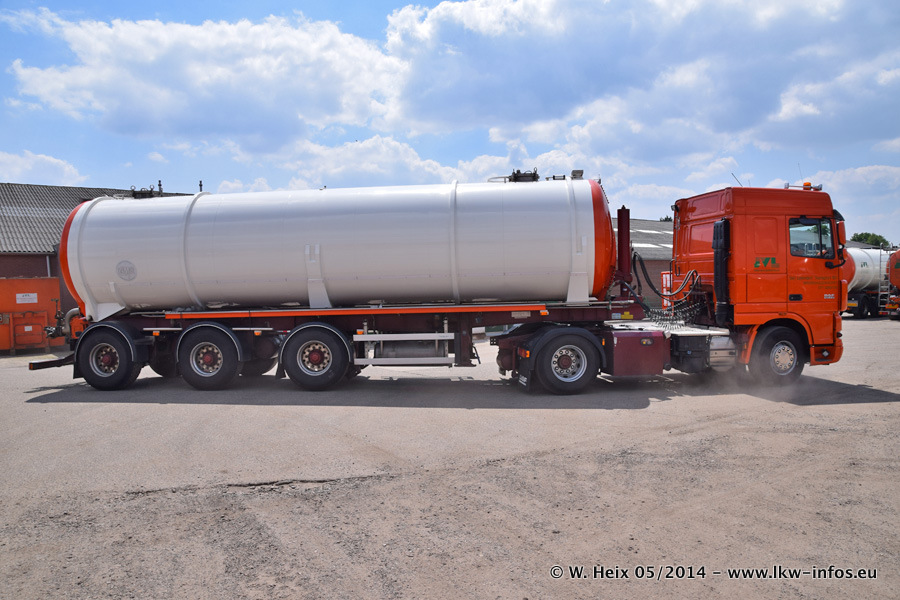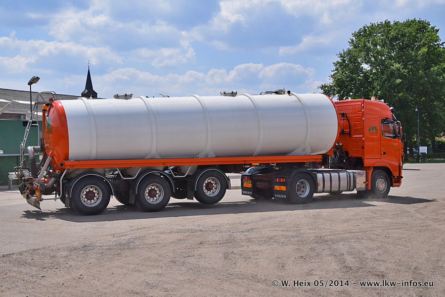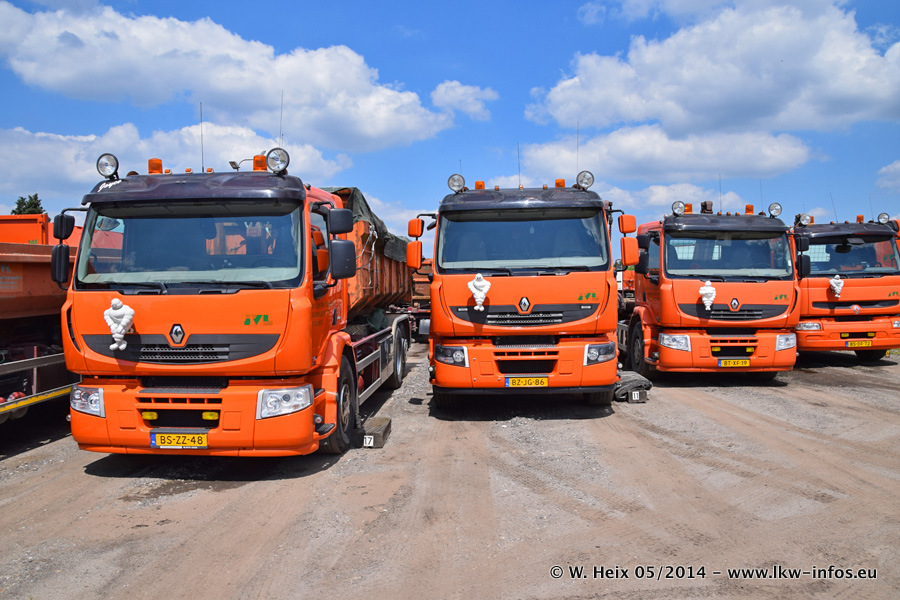 Der Fuhrpark besteht zur Zeit (Ende Mai 2014) aus 42 LKW der Hersteller MAN, Mercedes-Benz, Renault und Volvo. In der Woche vor meinem Besuch hat van Leendert zwei neue Volvo FH Euro 6 bekommen. Es gibt auch einen "Oldtimer", das ist ein Mercedes-Benz NG 2632 6x6. Dies war der erste LKW, den Erik van Leendert nach der Übernahme der Firma von seinem Vater im Jahr 1982 neu gekauft hat. Dieser LKW wird niemals verkauft und wird sogar im Nahverkehr und zum Umsetzen von Containern auf dem Hof verwendet. Der Kenworth W 900 ist Baujahr 2000 und wird nicht im normalen Tagesgeschäft eingesetzt. Nur für diverse Veranstaltungen wie z. B. den jährlichen Truckrun in Horst kommt der US-Truck zum Einsatz.