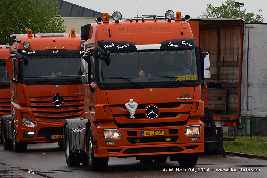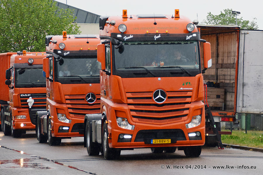 Neu bei van Leendert sind die beiden Mercedes-Benz Actros 4 Euro 6. Die anderen Fahrzeuge sind von meinem Besuch am 31.05.2014 bekannt. Die Galerie zeigt die LKW bei den Truckruns in Horst und Boxmeer.