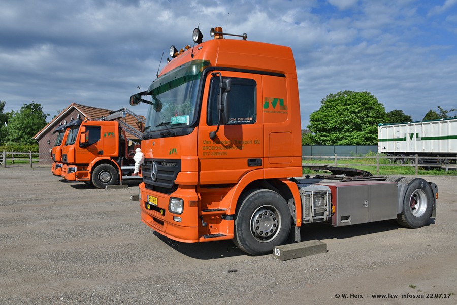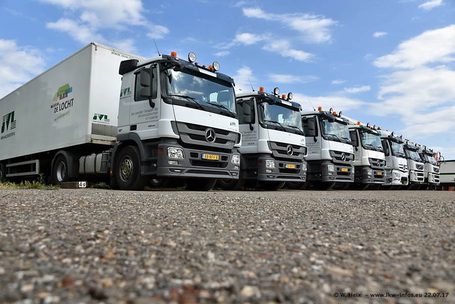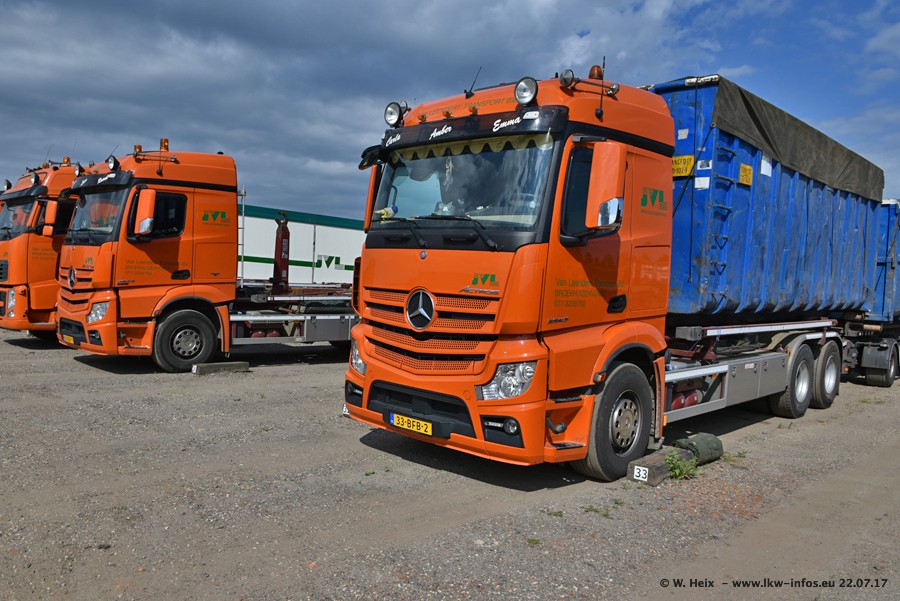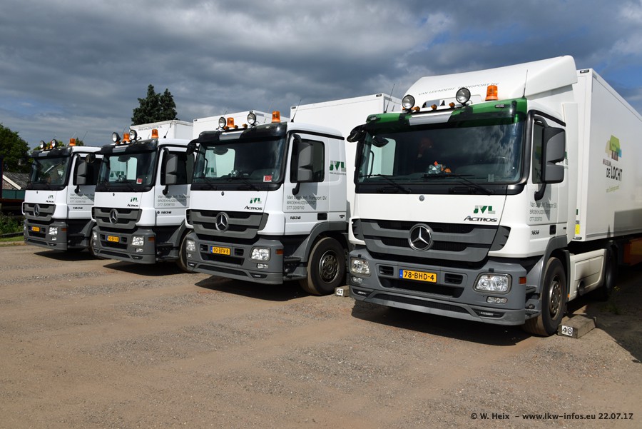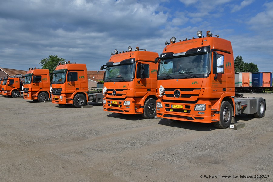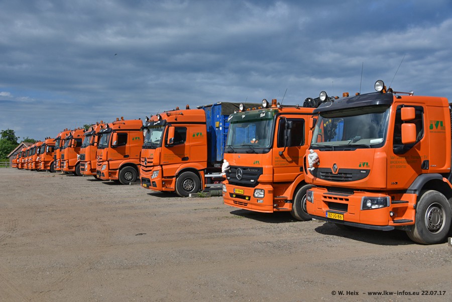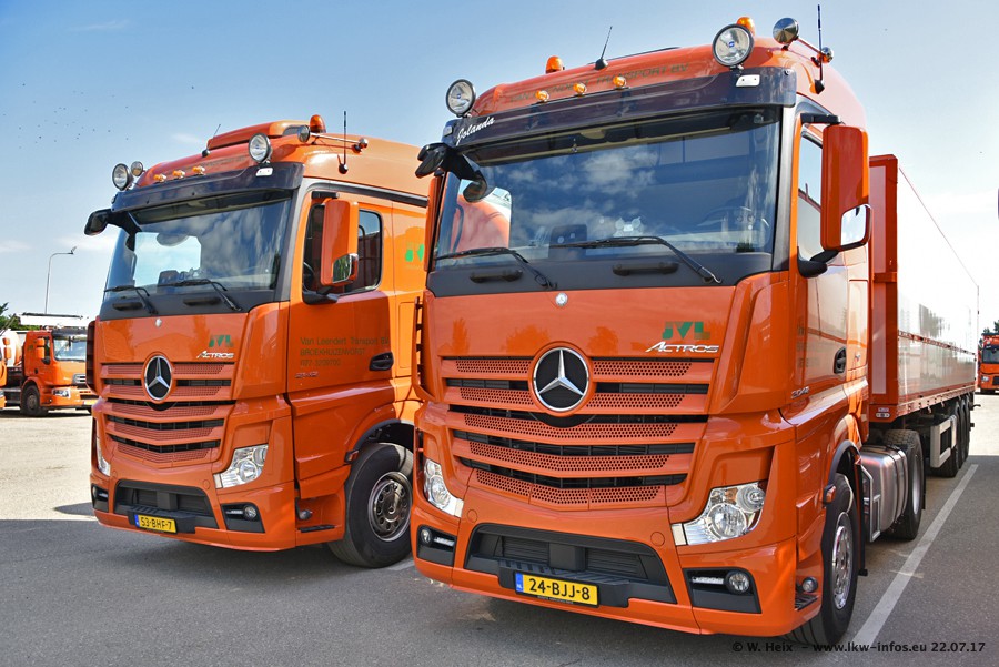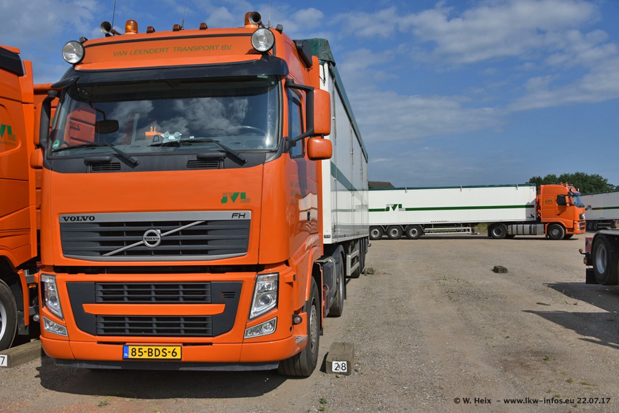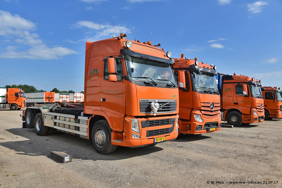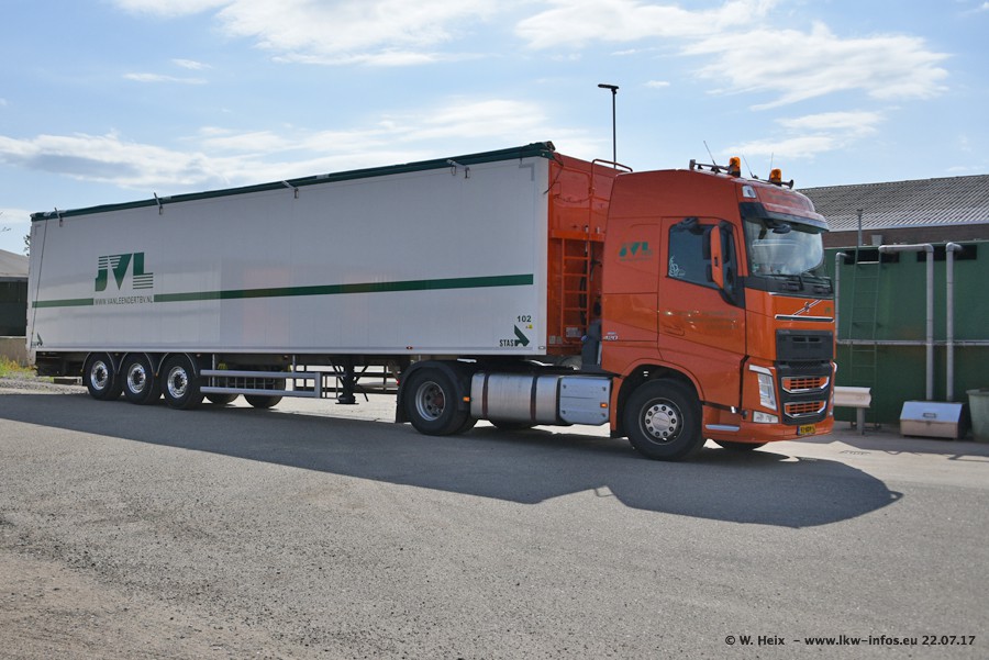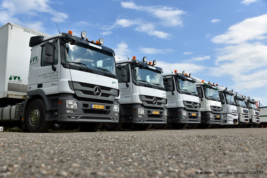 Seit meinem letzten Besuch bei JVL im Oktober 2016 sind einige neue Fahrzeuge in den Fuhrpark gekommen. Das sind: 3 Mercedes-Benz Actros 4 (Nr. 3 ist auf den letzten 2 Bildern zu sehen), 1 Volvo FH 04, 1 DAF XF Euro 6 (war nicht da), 1 Renault D und mehrere Auflieger. Es waren nicht alle LKW zuhause, aber das schöne Sommerwetter hat mir viele gute Bilder ermöglicht.