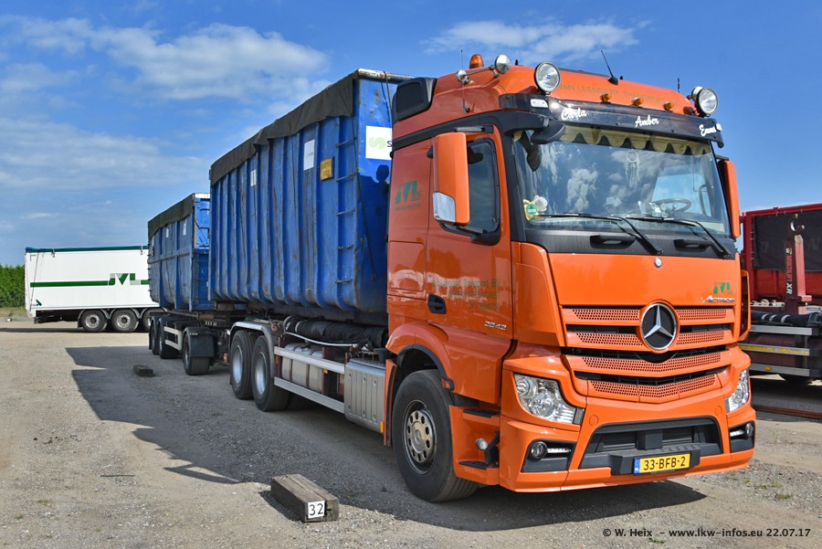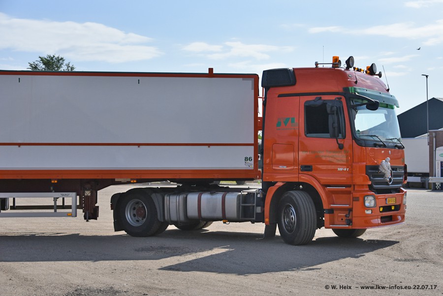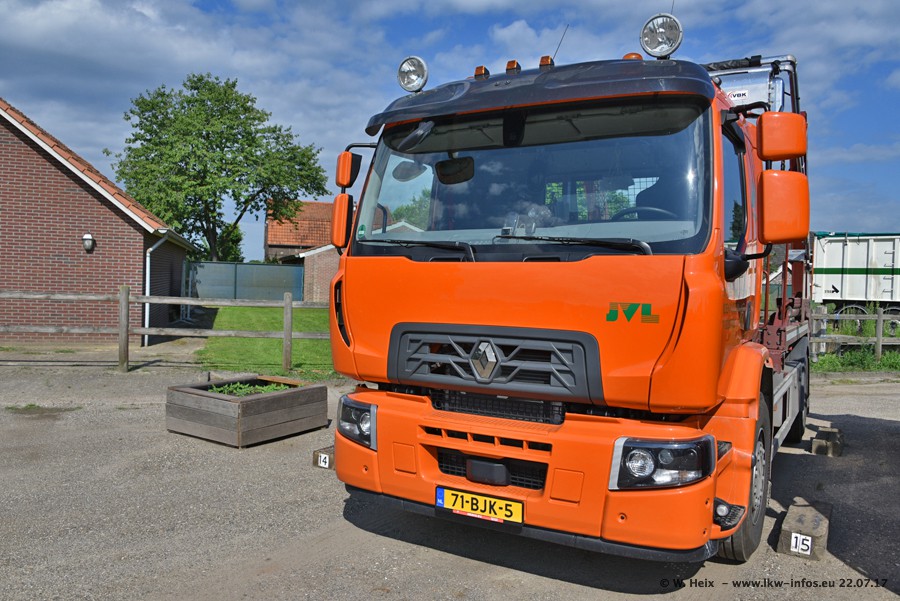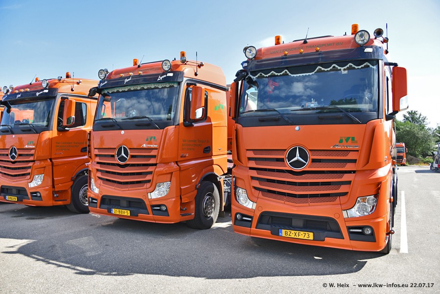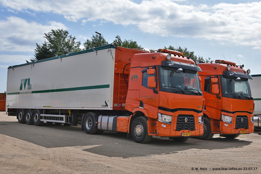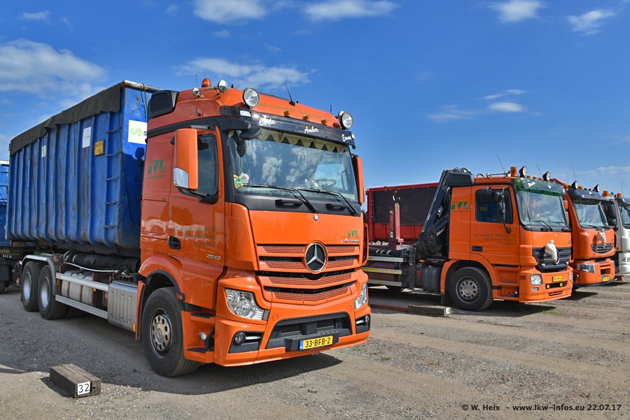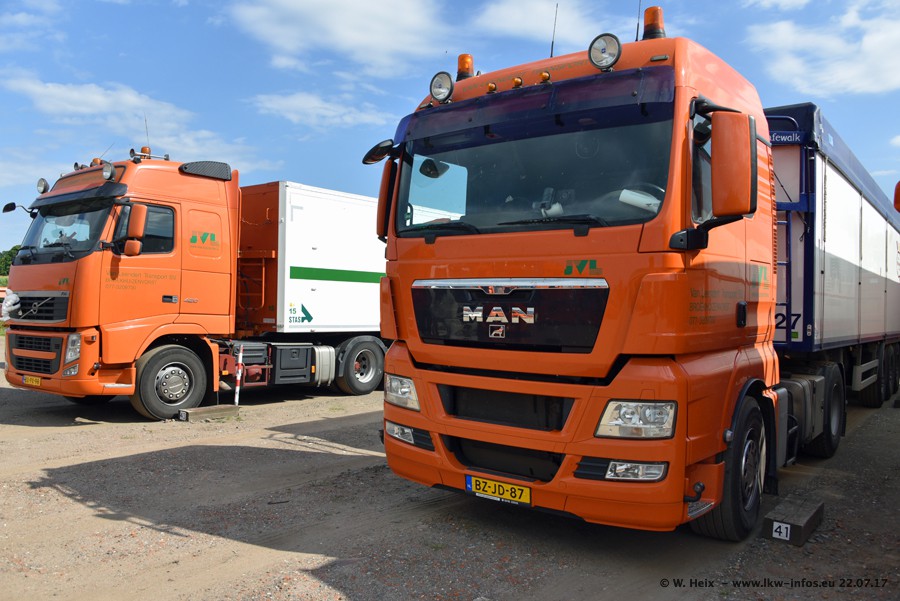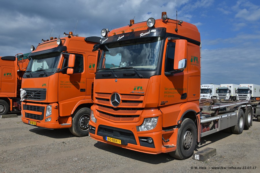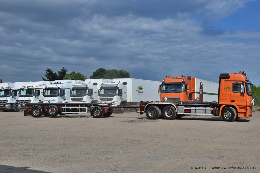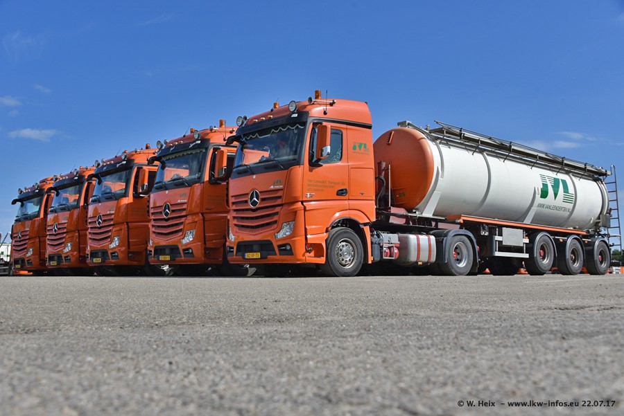 Seit meinem letzten Besuch bei JVL im Oktober 2016 sind einige neue Fahrzeuge in den Fuhrpark gekommen. Das sind: 3 Mercedes-Benz Actros 4 (Nr. 3 ist auf den letzten 2 Bildern zu sehen), 1 Volvo FH 04, 1 DAF XF Euro 6 (war nicht da), 1 Renault D und mehrere Auflieger. Es waren nicht alle LKW zuhause, aber das schöne Sommerwetter hat mir viele gute Bilder ermöglicht.