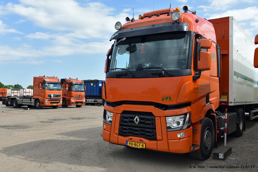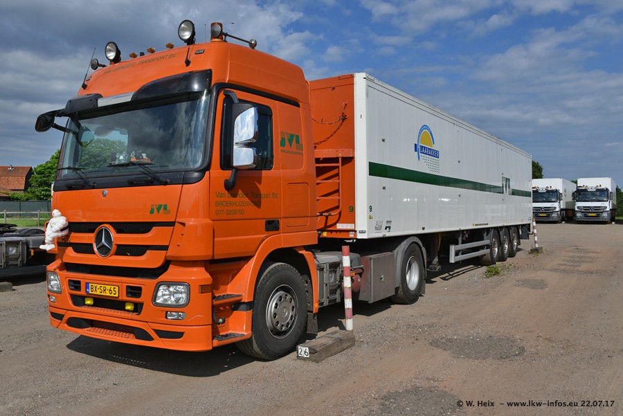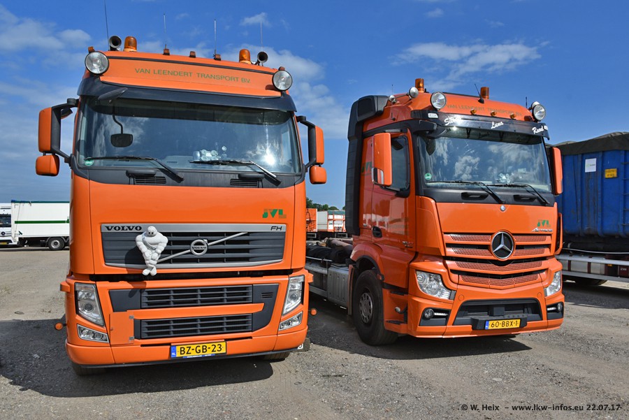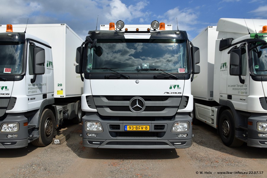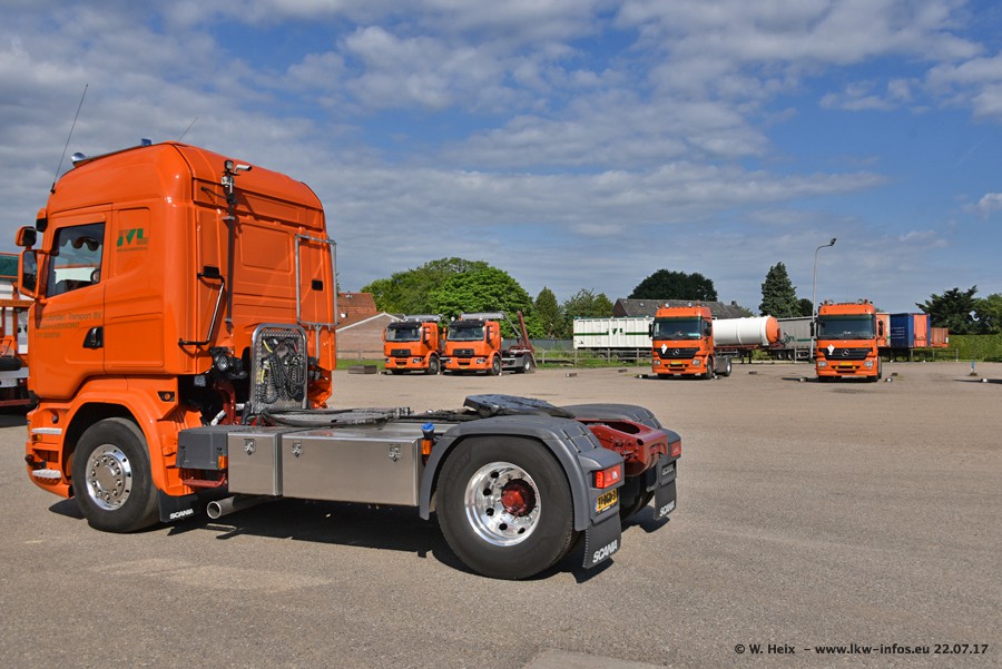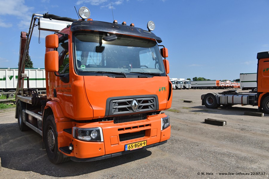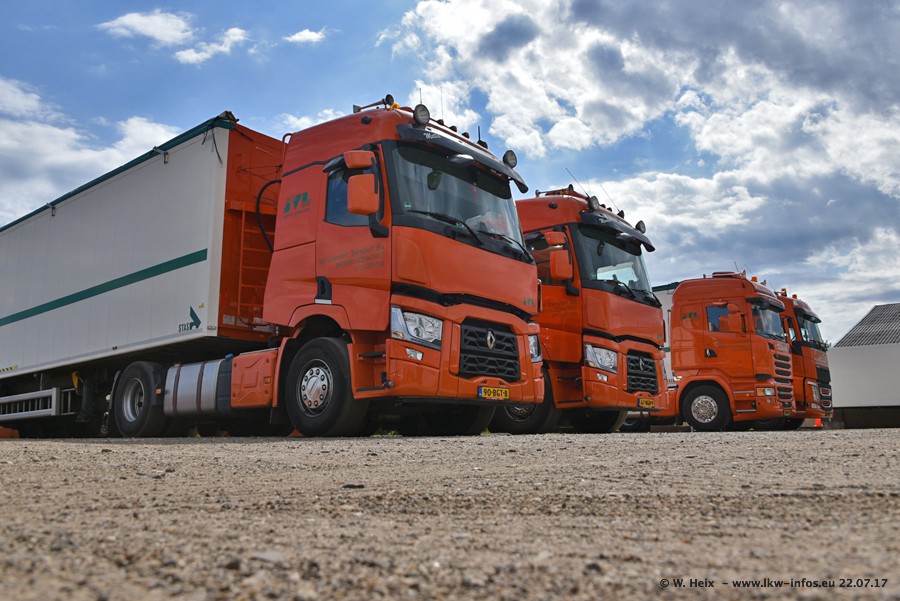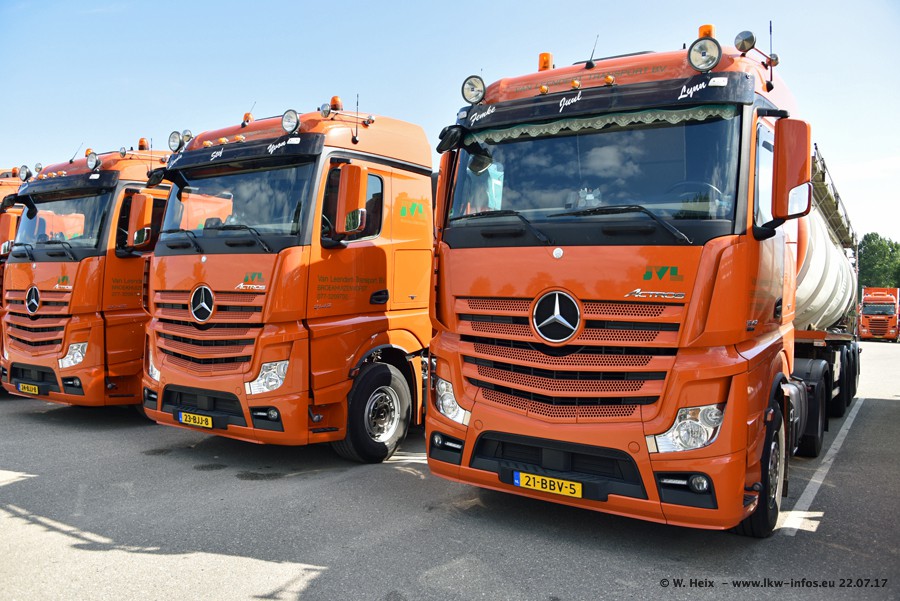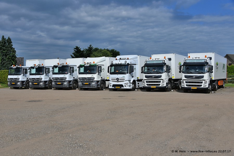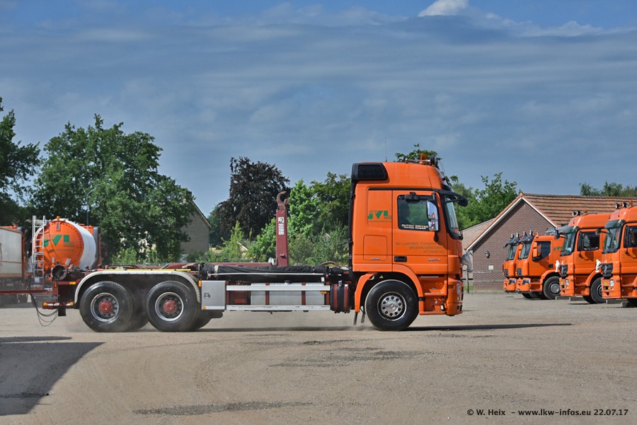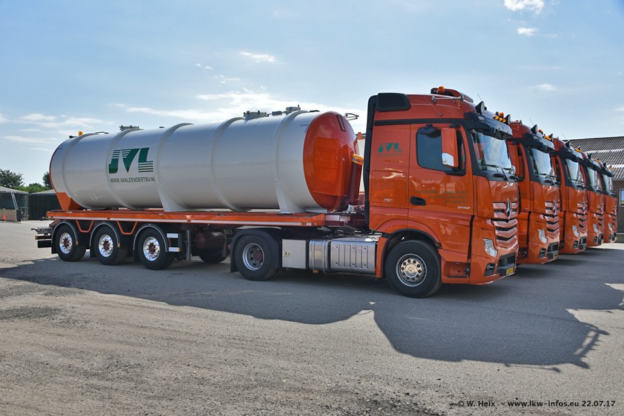 Seit meinem letzten Besuch bei JVL im Oktober 2016 sind einige neue Fahrzeuge in den Fuhrpark gekommen. Das sind: 3 Mercedes-Benz Actros 4 (Nr. 3 ist auf den letzten 2 Bildern zu sehen), 1 Volvo FH 04, 1 DAF XF Euro 6 (war nicht da), 1 Renault D und mehrere Auflieger. Es waren nicht alle LKW zuhause, aber das schöne Sommerwetter hat mir viele gute Bilder ermöglicht.