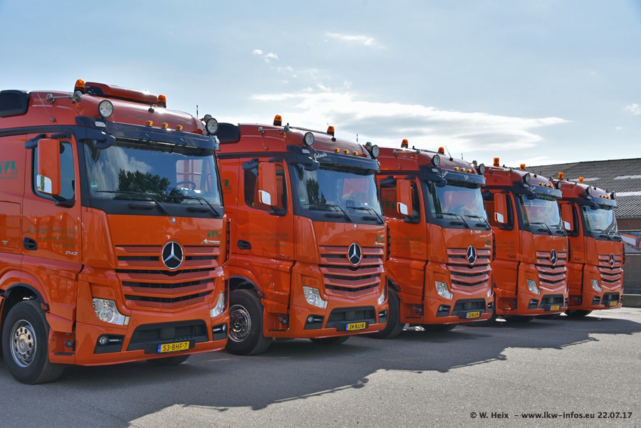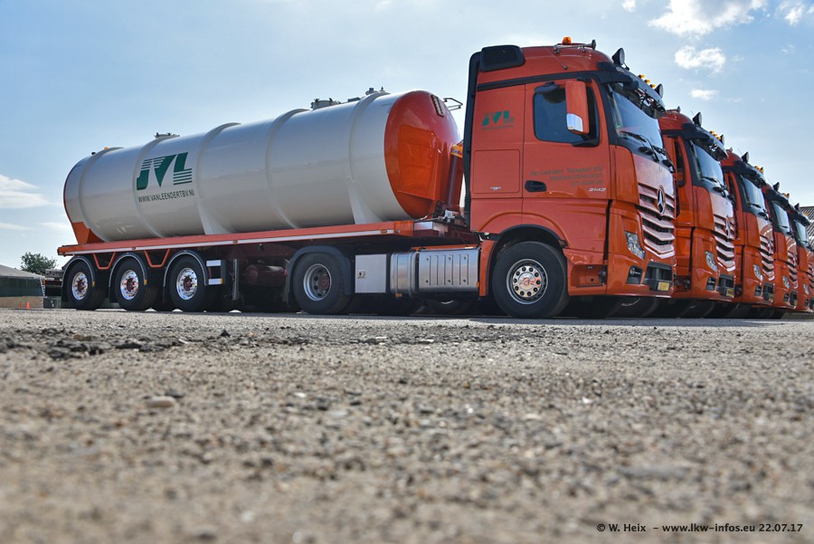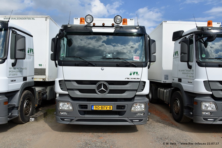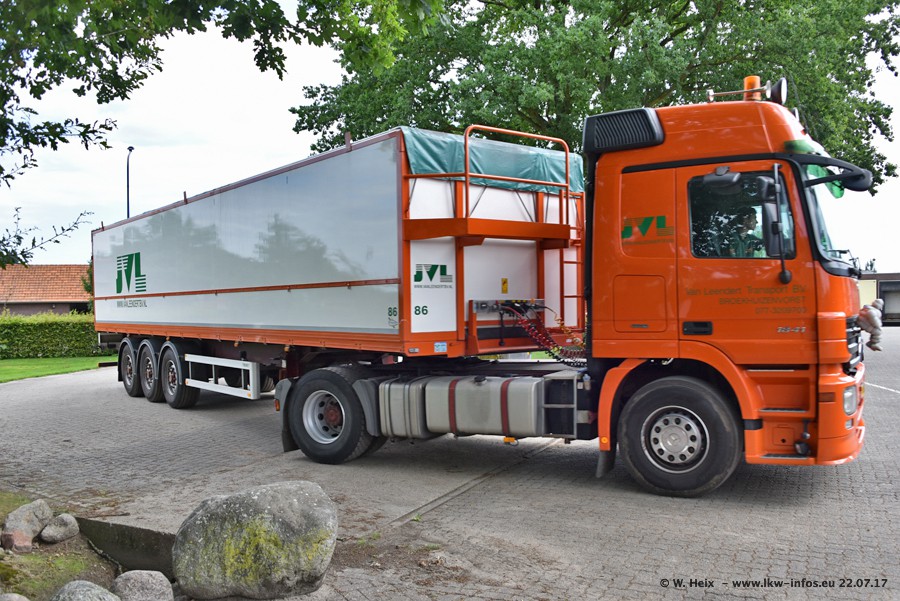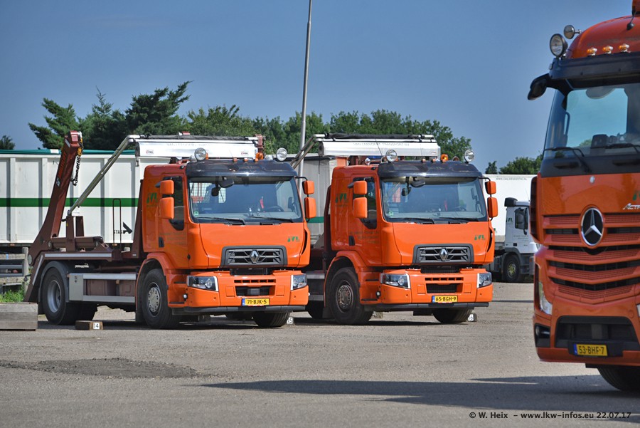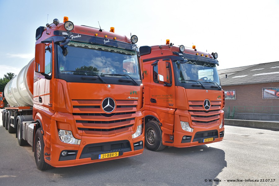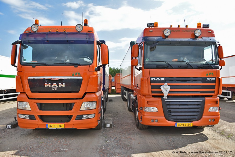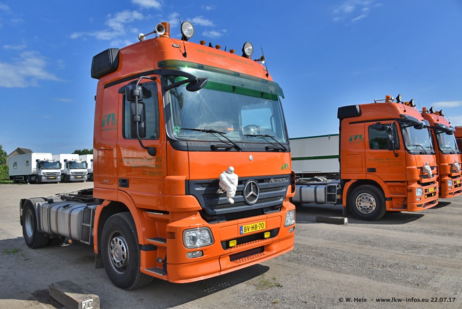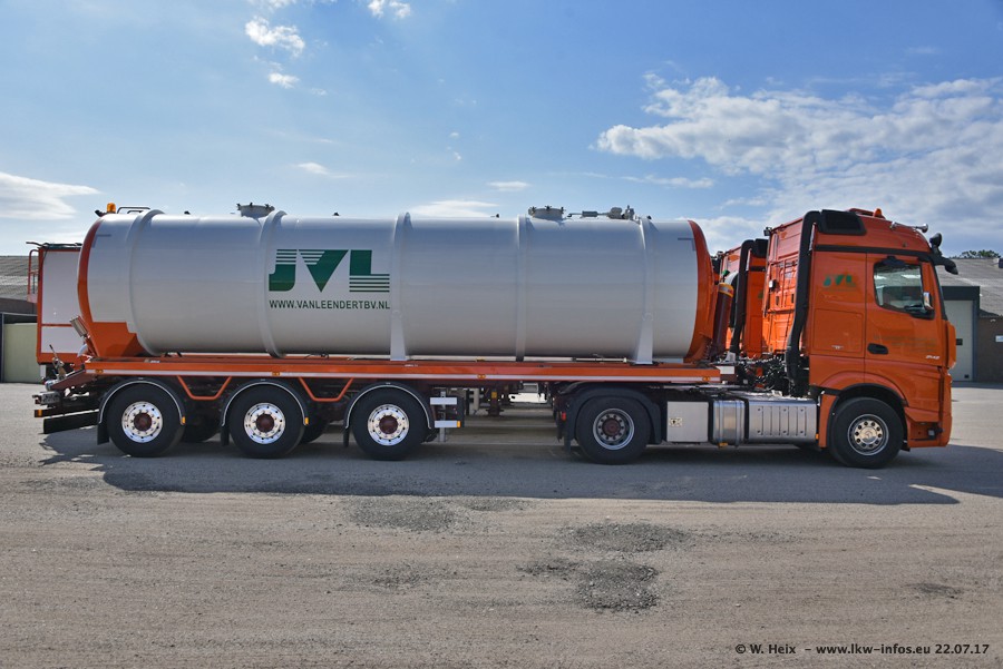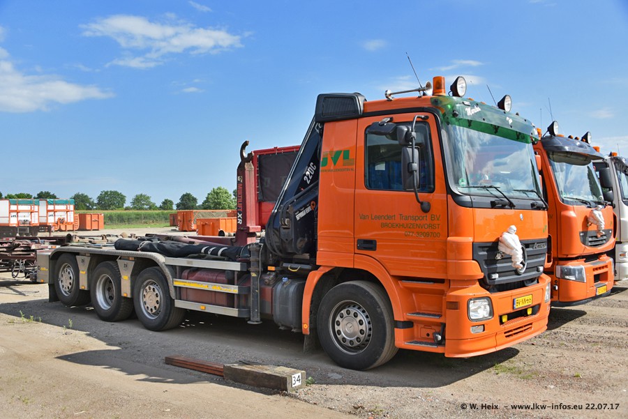 Seit meinem letzten Besuch bei JVL im Oktober 2016 sind einige neue Fahrzeuge in den Fuhrpark gekommen. Das sind: 3 Mercedes-Benz Actros 4 (Nr. 3 ist auf den letzten 2 Bildern zu sehen), 1 Volvo FH 04, 1 DAF XF Euro 6 (war nicht da), 1 Renault D und mehrere Auflieger. Es waren nicht alle LKW zuhause, aber das schöne Sommerwetter hat mir viele gute Bilder ermöglicht.