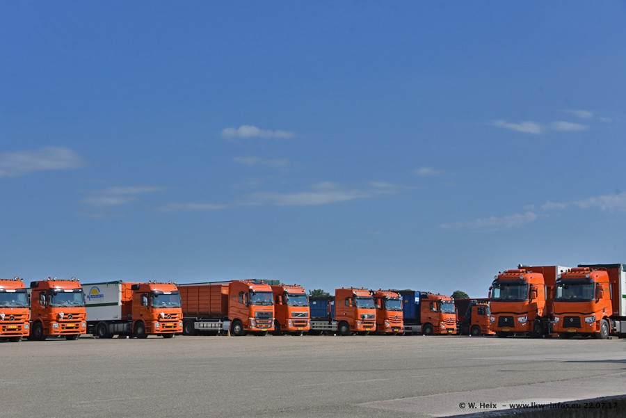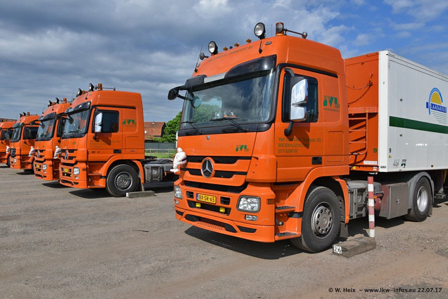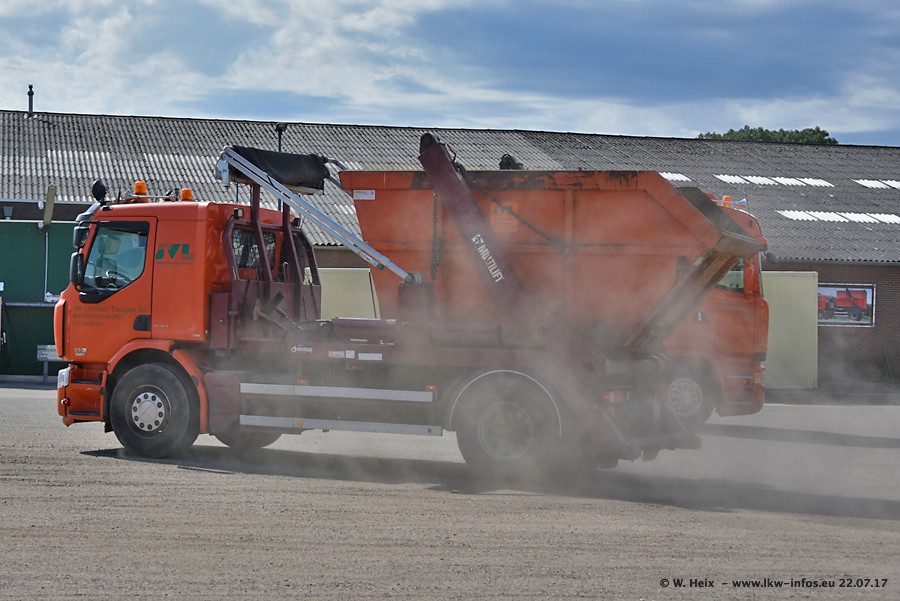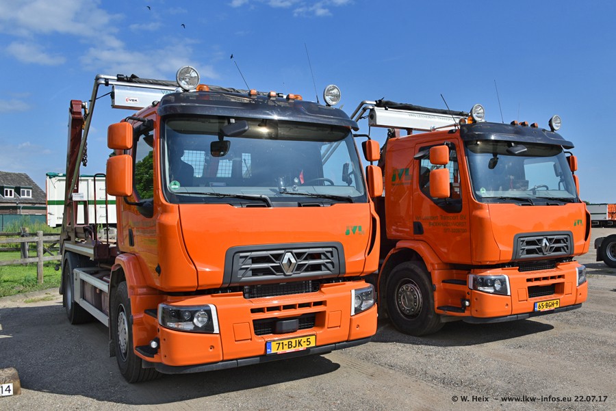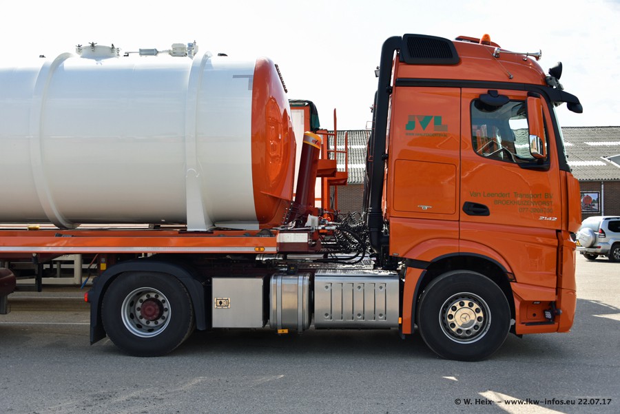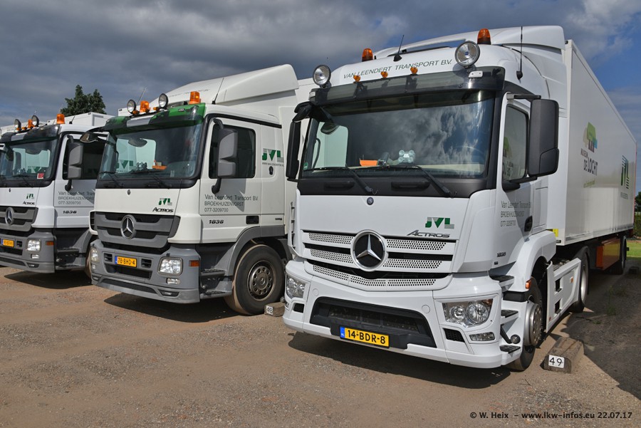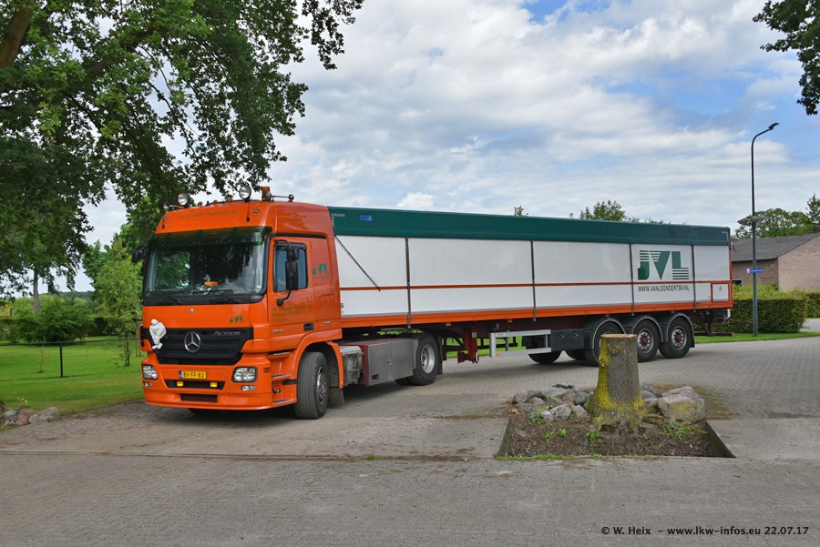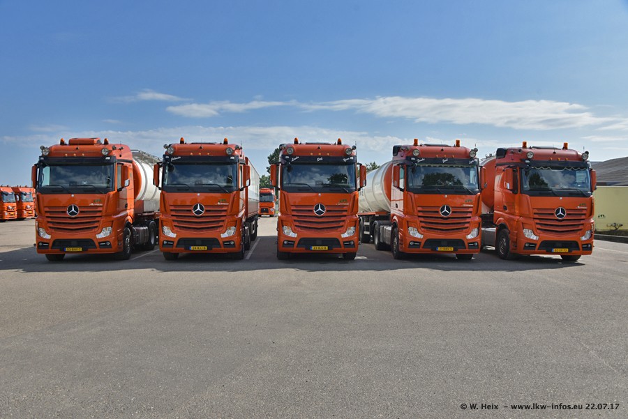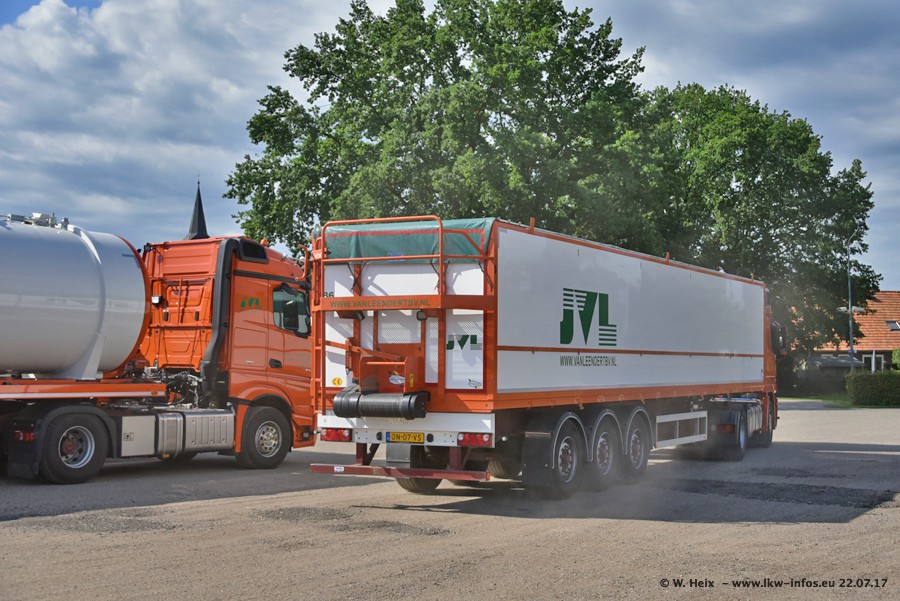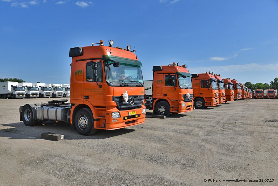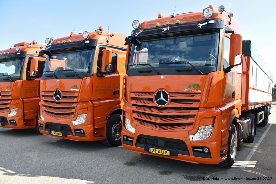 Seit meinem letzten Besuch bei JVL im Oktober 2016 sind einige neue Fahrzeuge in den Fuhrpark gekommen. Das sind: 3 Mercedes-Benz Actros 4 (Nr. 3 ist auf den letzten 2 Bildern zu sehen), 1 Volvo FH 04, 1 DAF XF Euro 6 (war nicht da), 1 Renault D und mehrere Auflieger. Es waren nicht alle LKW zuhause, aber das schöne Sommerwetter hat mir viele gute Bilder ermöglicht.