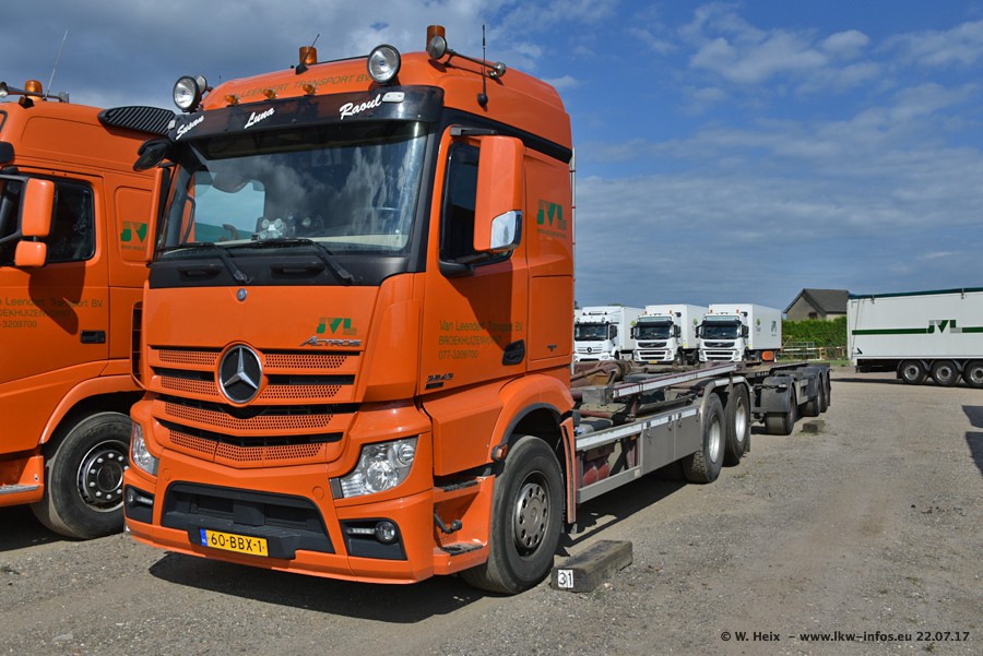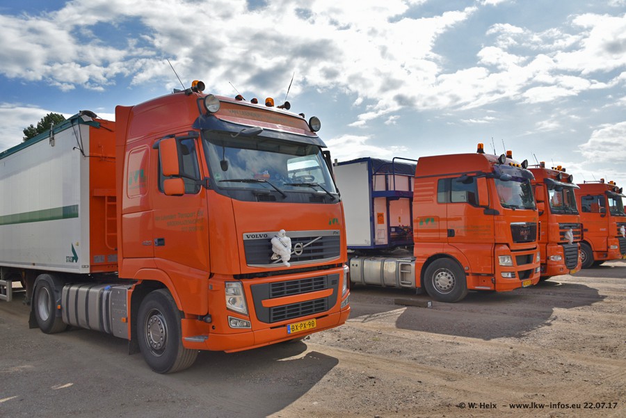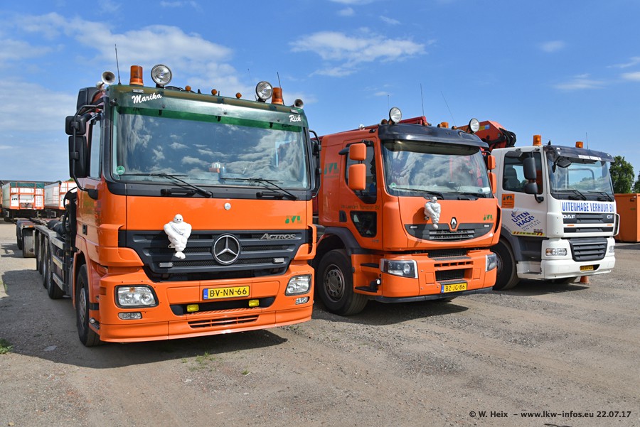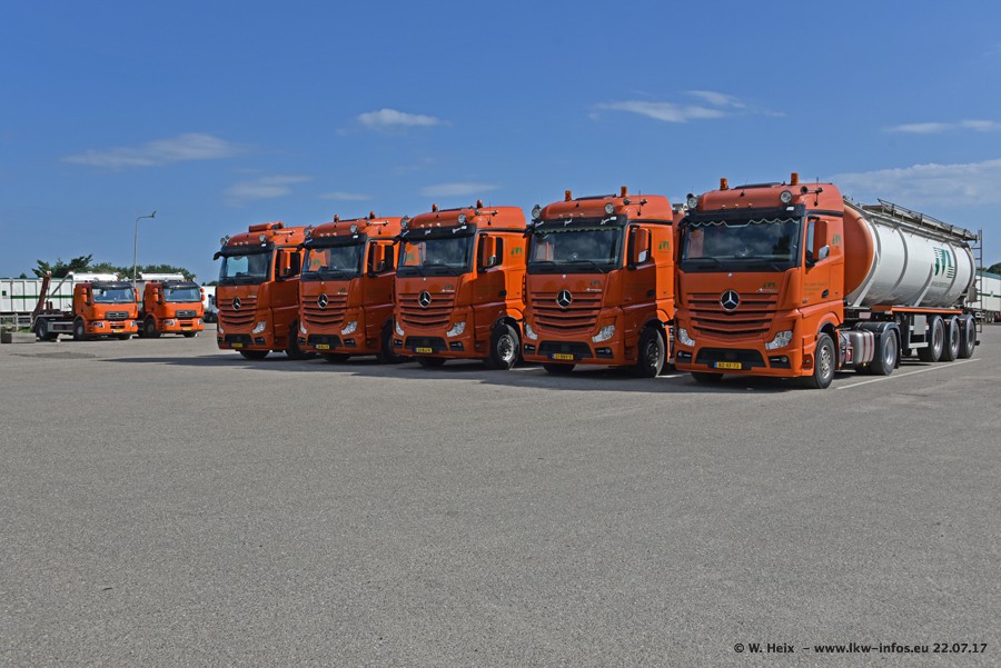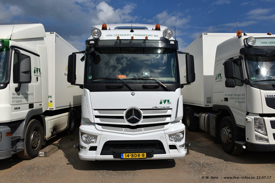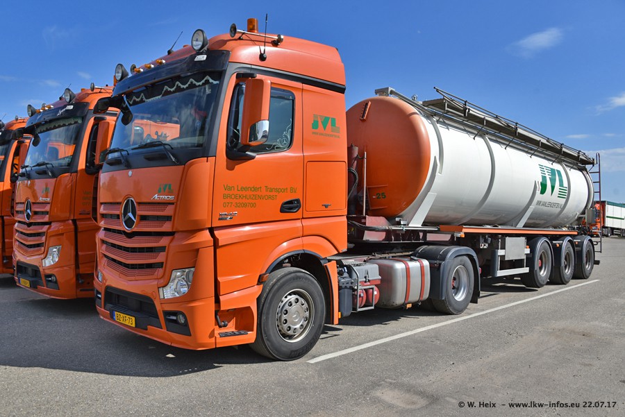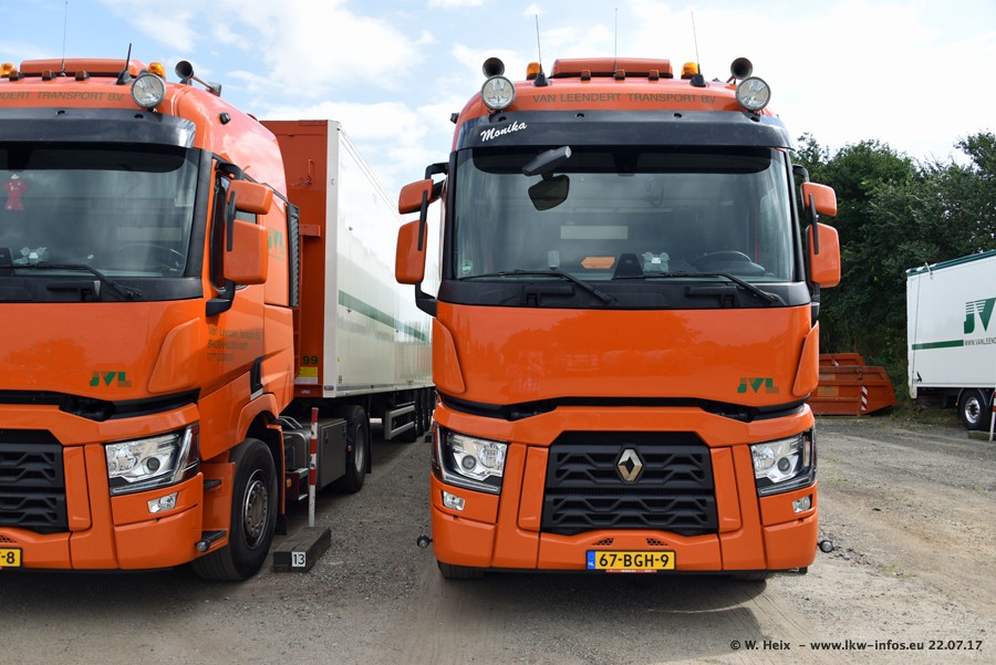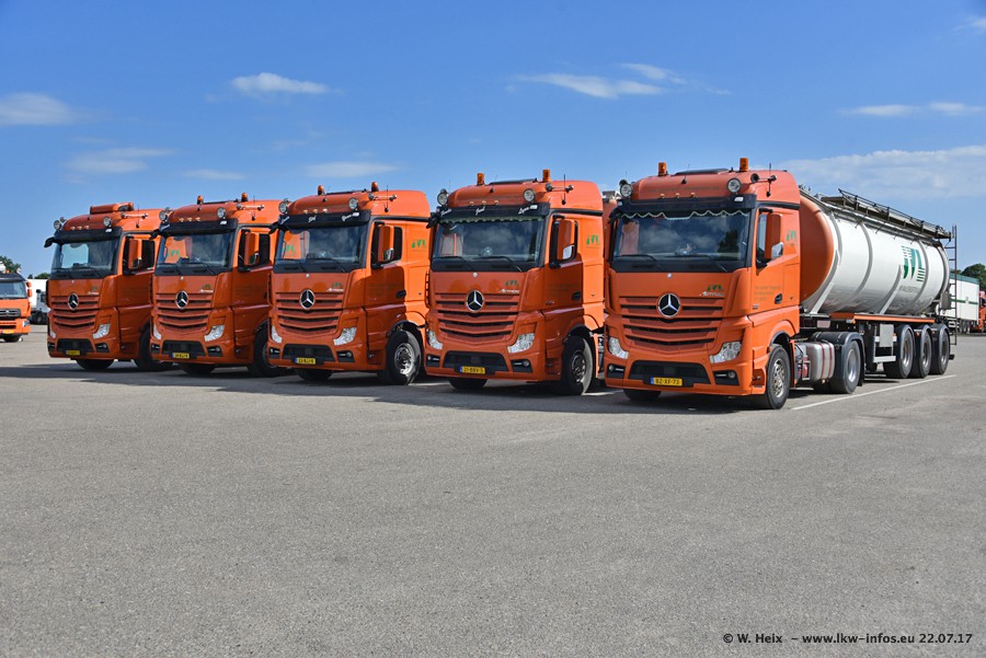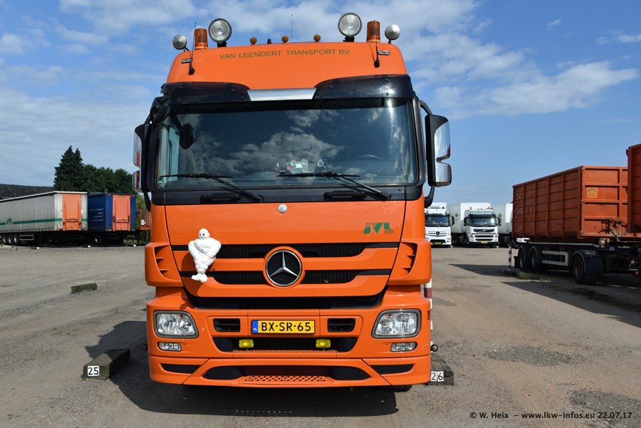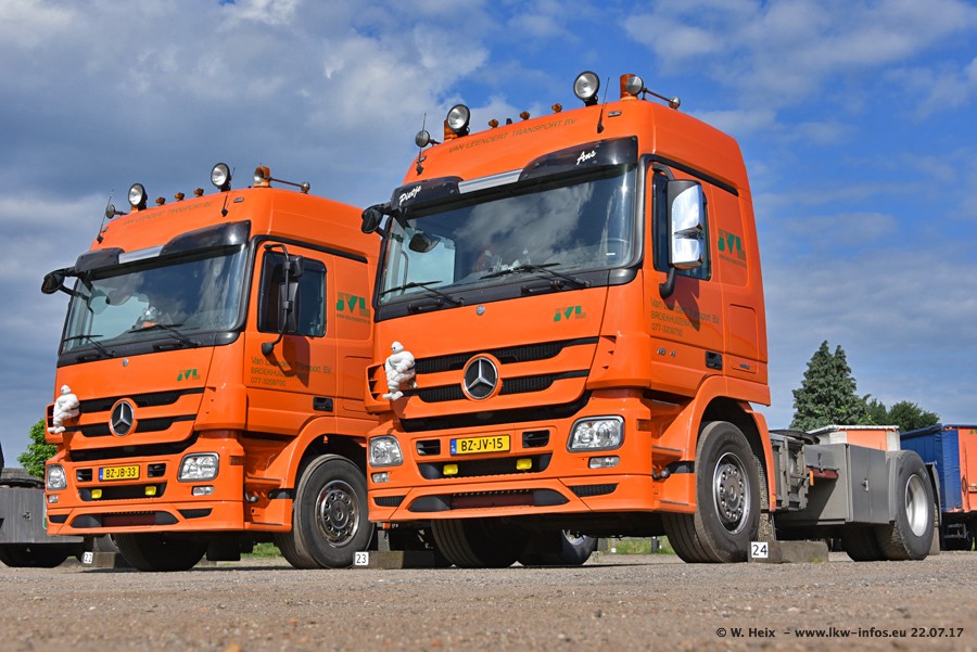 Seit meinem letzten Besuch bei JVL im Oktober 2016 sind einige neue Fahrzeuge in den Fuhrpark gekommen. Das sind: 3 Mercedes-Benz Actros 4 (Nr. 3 ist auf den letzten 2 Bildern zu sehen), 1 Volvo FH 04, 1 DAF XF Euro 6 (war nicht da), 1 Renault D und mehrere Auflieger. Es waren nicht alle LKW zuhause, aber das schöne Sommerwetter hat mir viele gute Bilder ermöglicht.