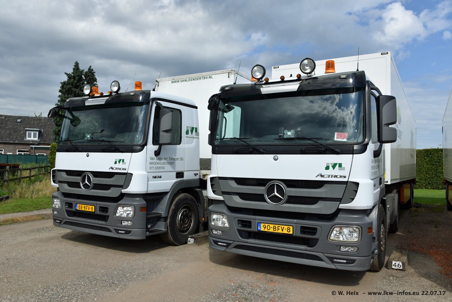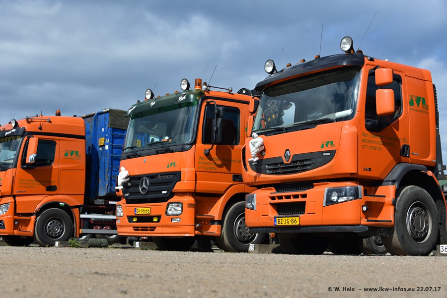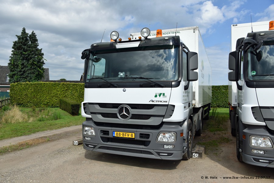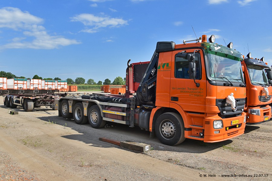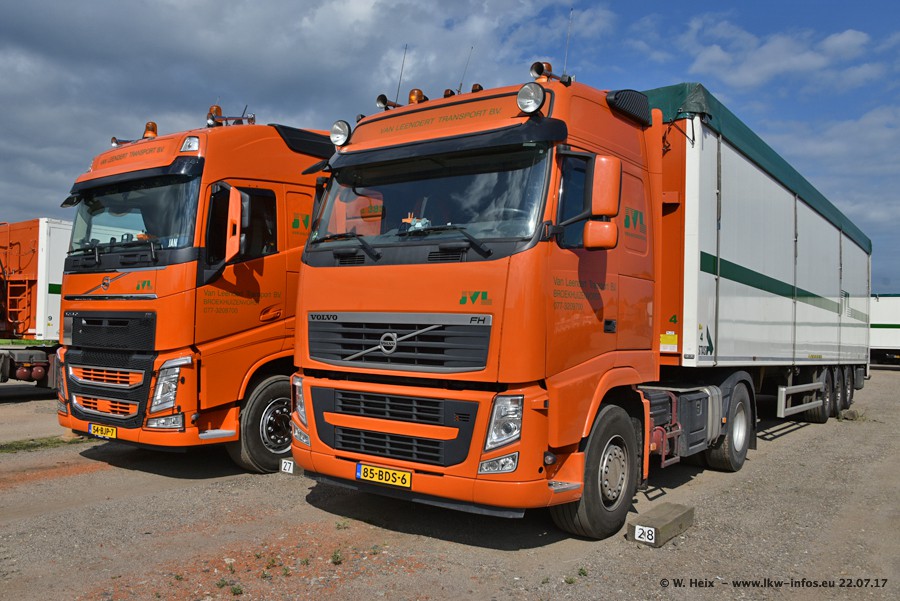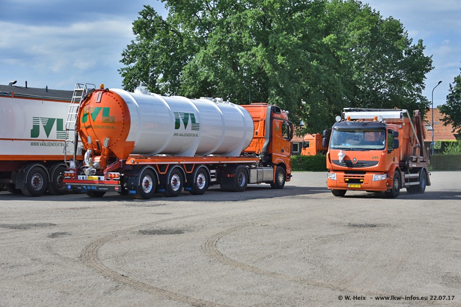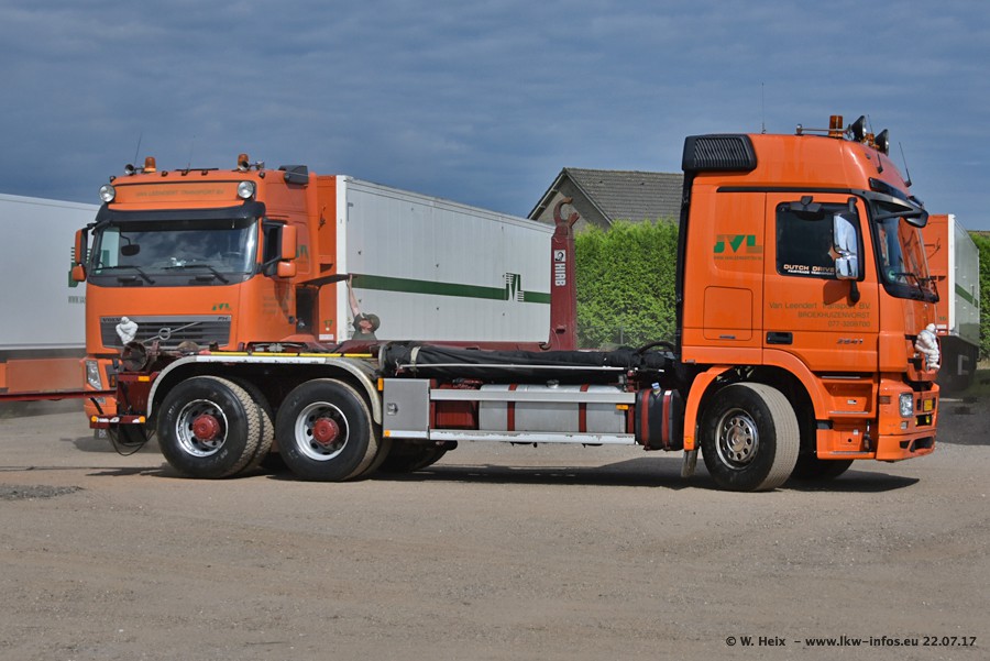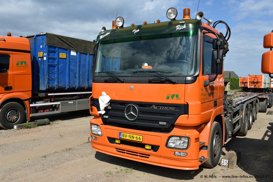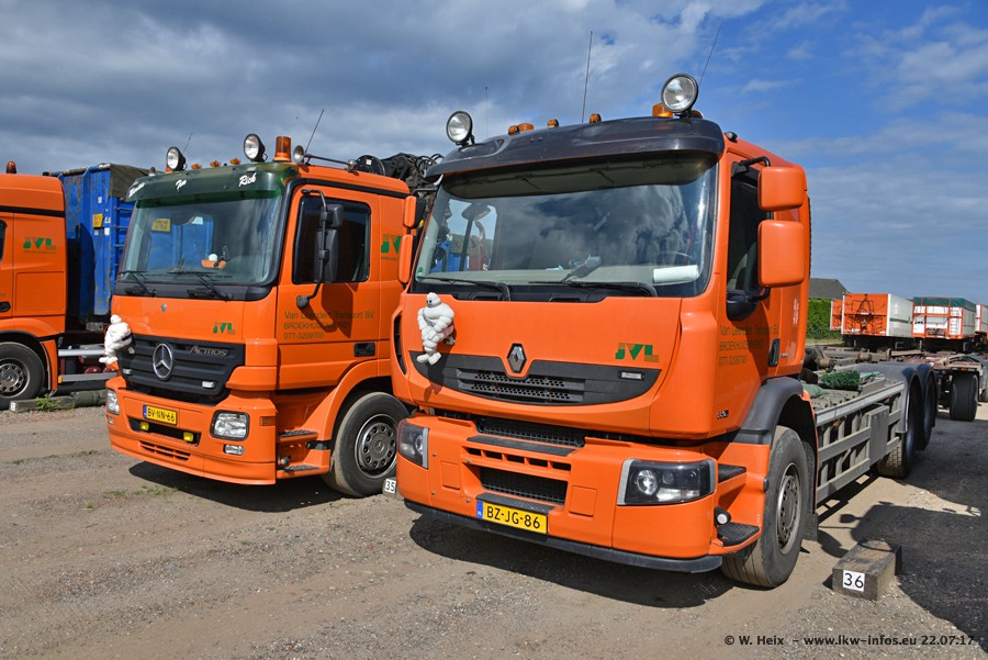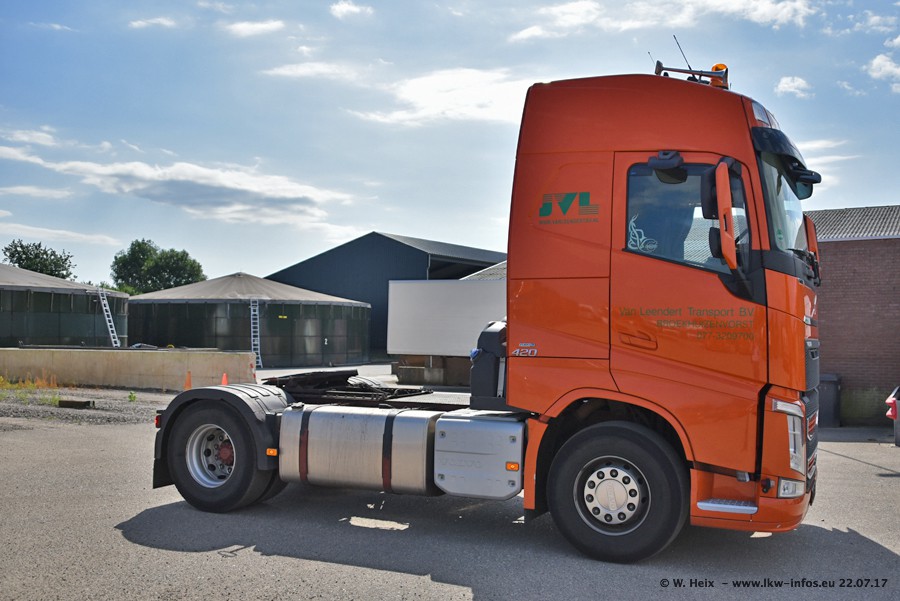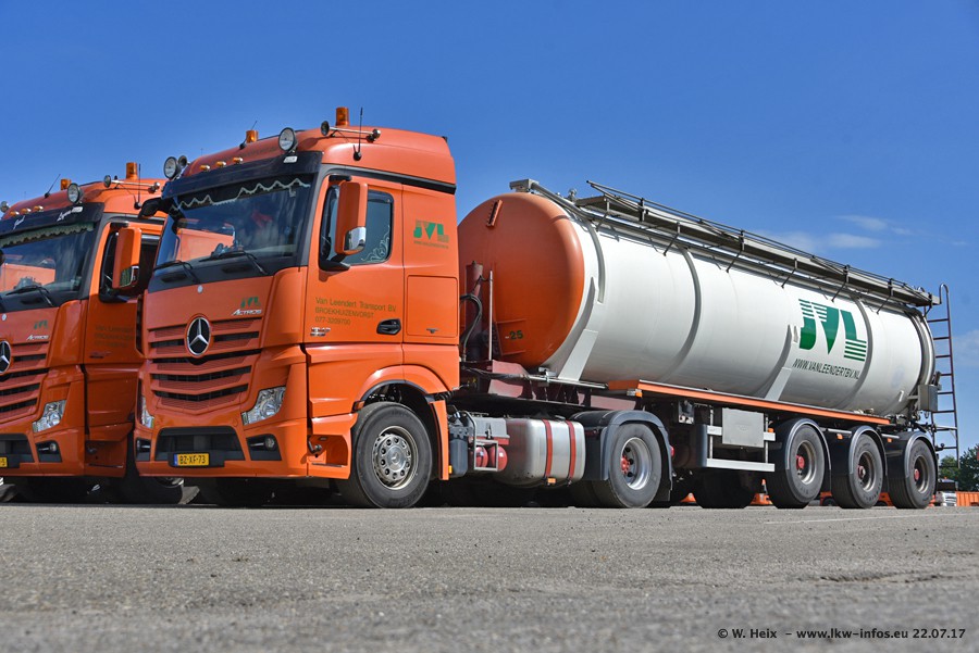 Seit meinem letzten Besuch bei JVL im Oktober 2016 sind einige neue Fahrzeuge in den Fuhrpark gekommen. Das sind: 3 Mercedes-Benz Actros 4 (Nr. 3 ist auf den letzten 2 Bildern zu sehen), 1 Volvo FH 04, 1 DAF XF Euro 6 (war nicht da), 1 Renault D und mehrere Auflieger. Es waren nicht alle LKW zuhause, aber das schöne Sommerwetter hat mir viele gute Bilder ermöglicht.