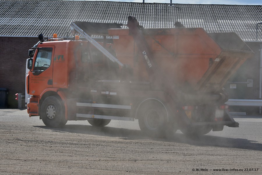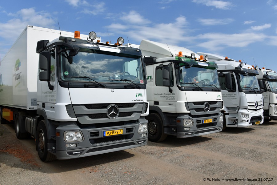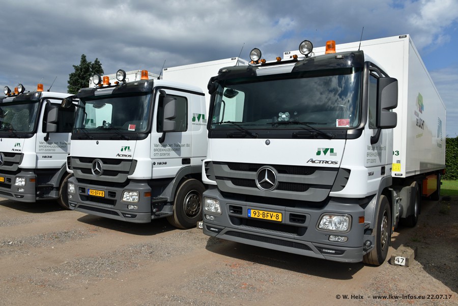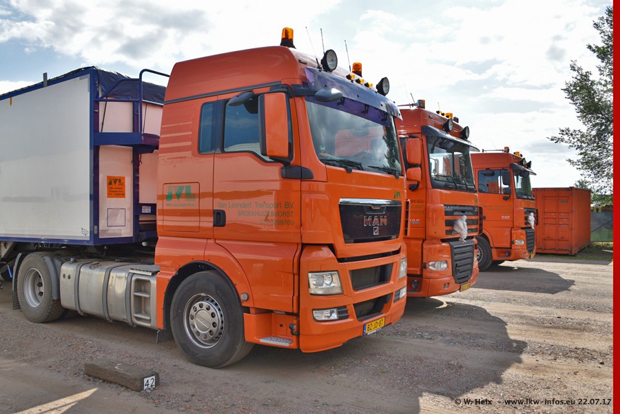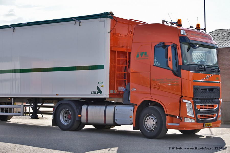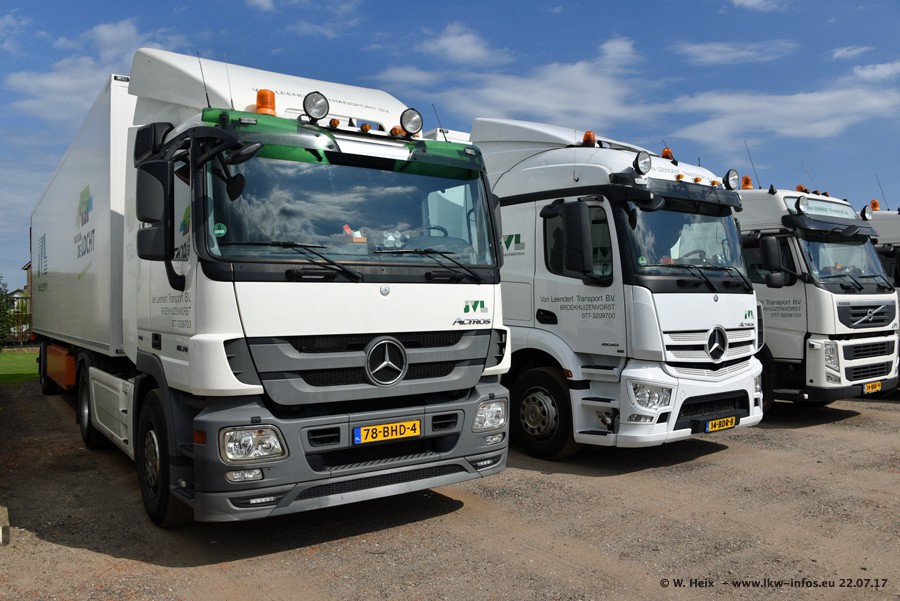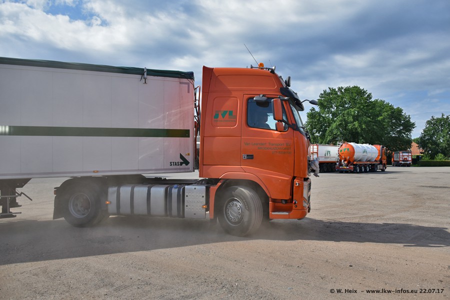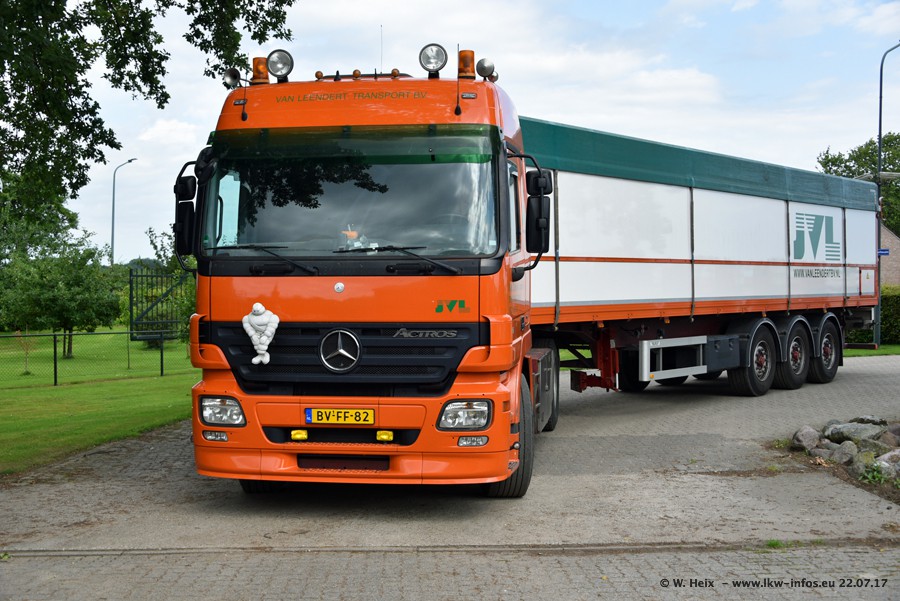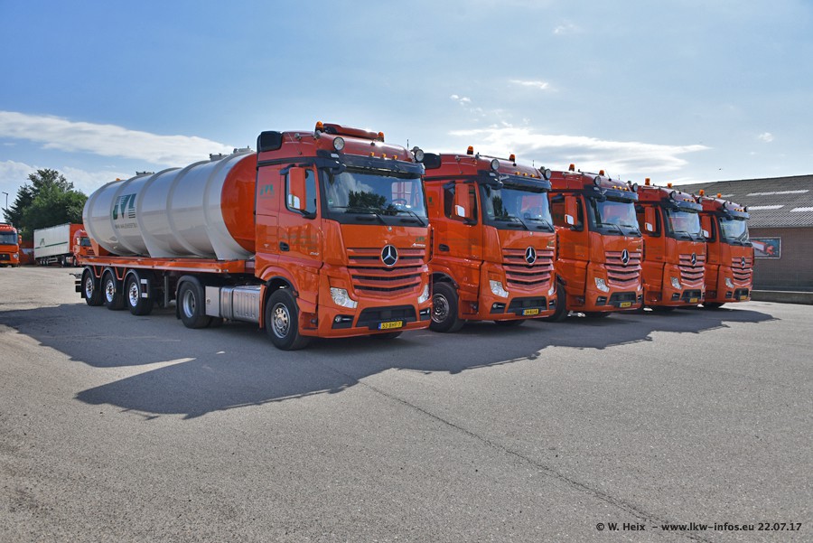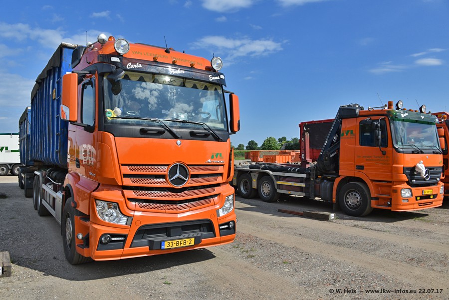Seit meinem letzten Besuch bei JVL im Oktober 2016 sind einige neue Fahrzeuge in den Fuhrpark gekommen. Das sind: 3 Mercedes-Benz Actros 4 (Nr. 3 ist auf den letzten 2 Bildern zu sehen), 1 Volvo FH 04, 1 DAF XF Euro 6 (war nicht da), 1 Renault D und mehrere Auflieger. Es waren nicht alle LKW zuhause, aber das schöne Sommerwetter hat mir viele gute Bilder ermöglicht.