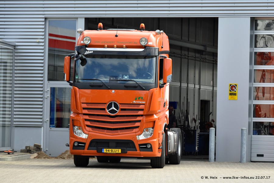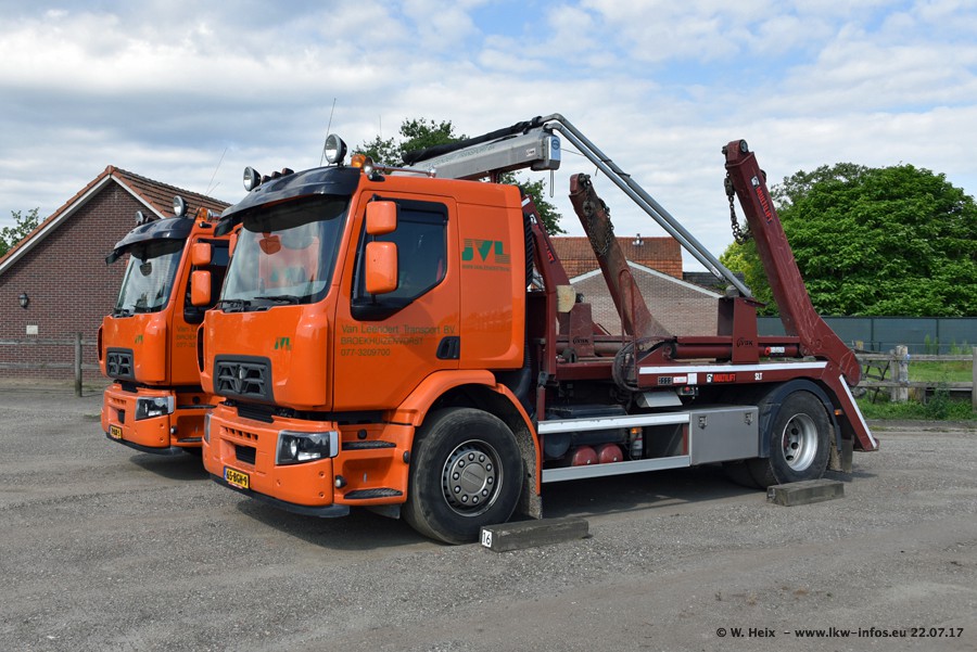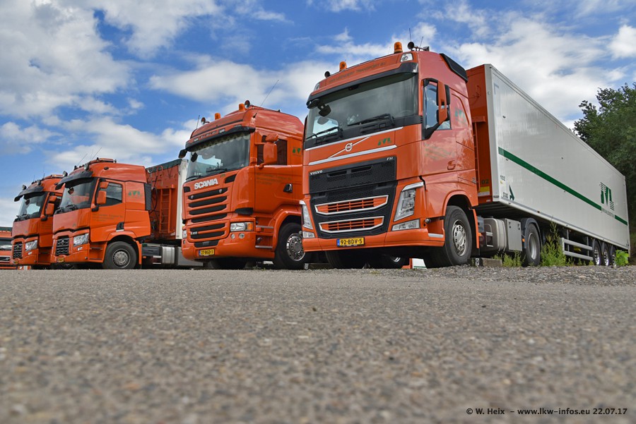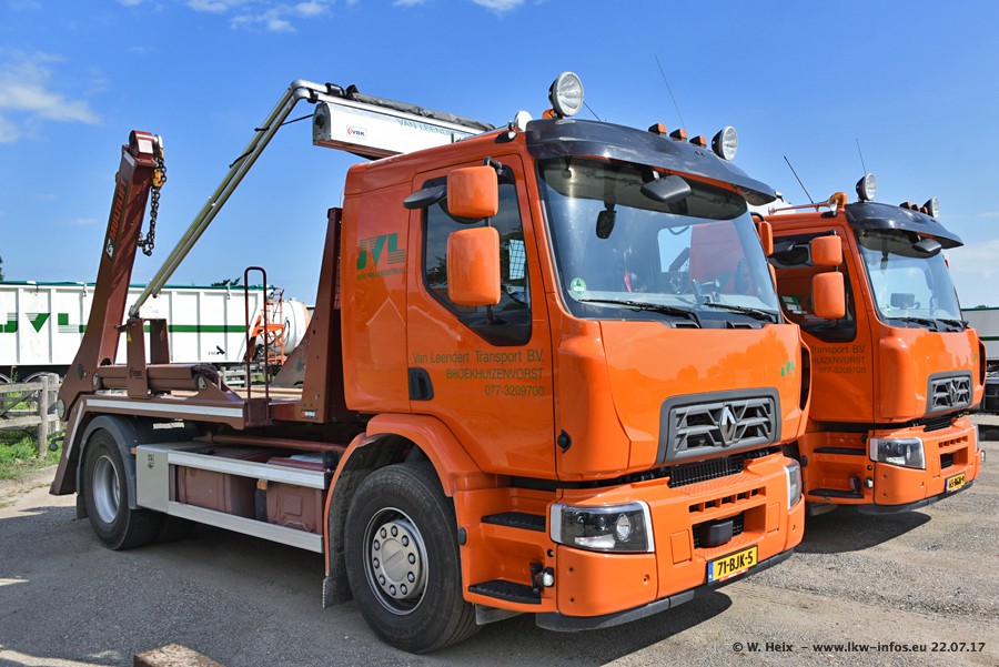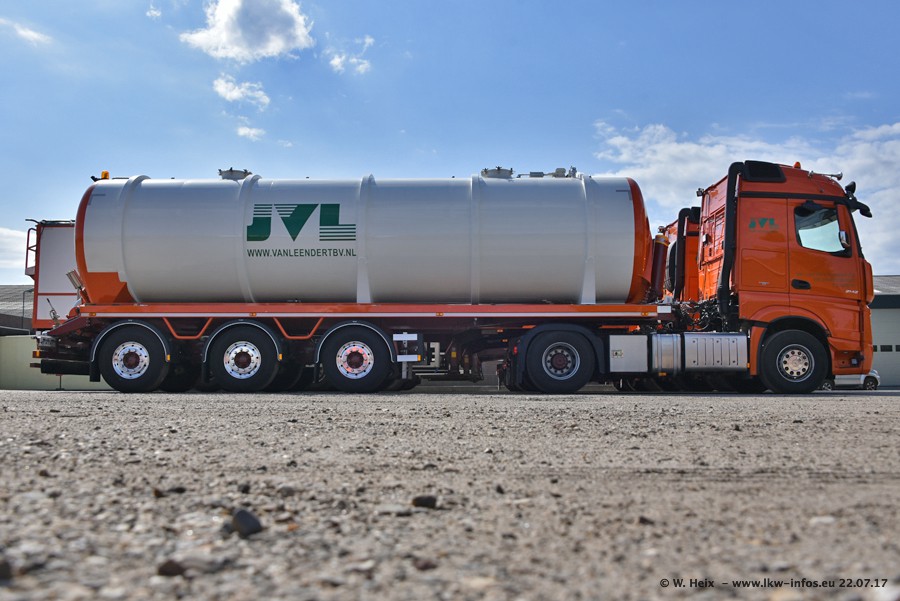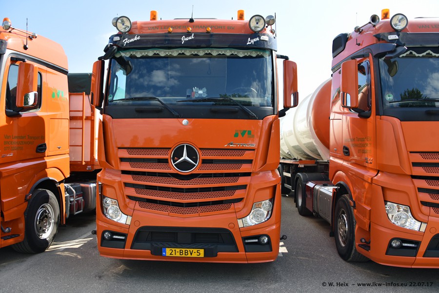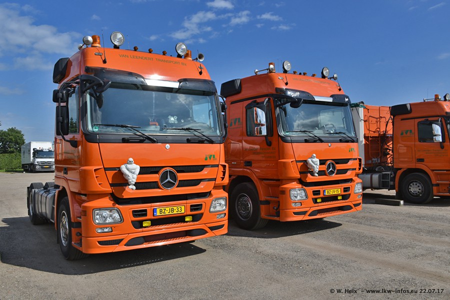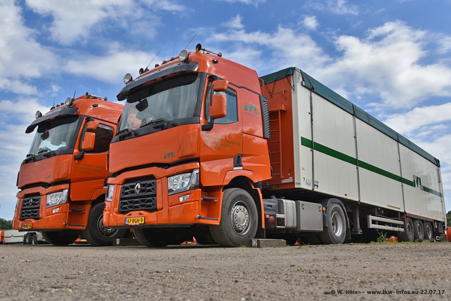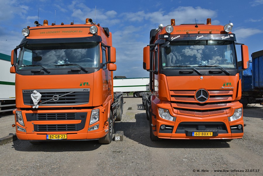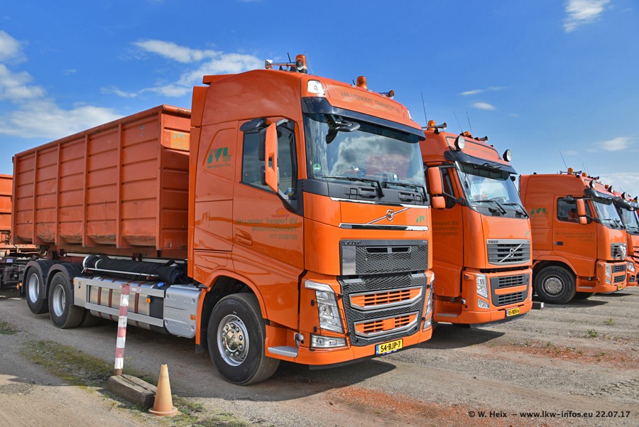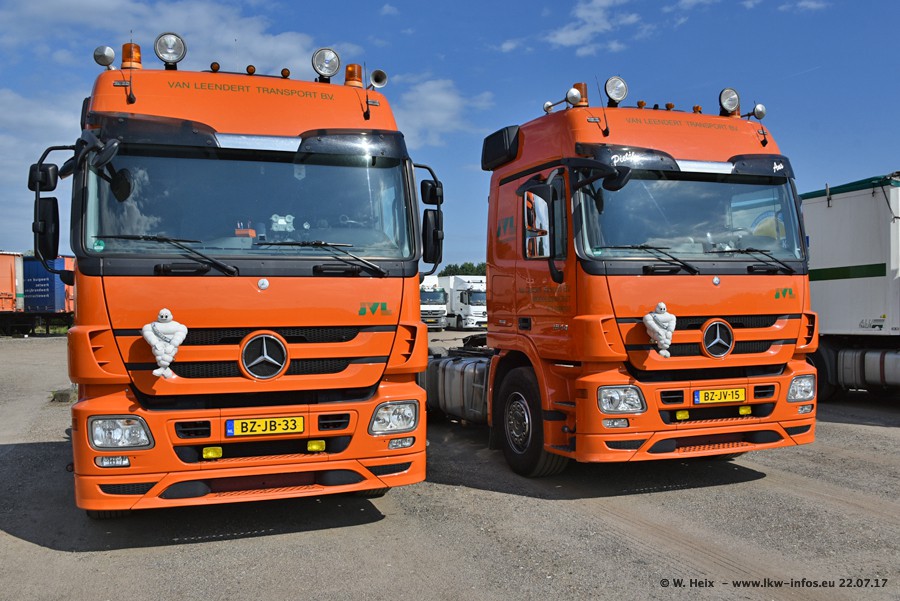 Seit meinem letzten Besuch bei JVL im Oktober 2016 sind einige neue Fahrzeuge in den Fuhrpark gekommen. Das sind: 3 Mercedes-Benz Actros 4 (Nr. 3 ist auf den letzten 2 Bildern zu sehen), 1 Volvo FH 04, 1 DAF XF Euro 6 (war nicht da), 1 Renault D und mehrere Auflieger. Es waren nicht alle LKW zuhause, aber das schöne Sommerwetter hat mir viele gute Bilder ermöglicht.