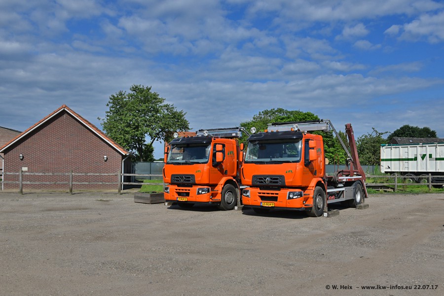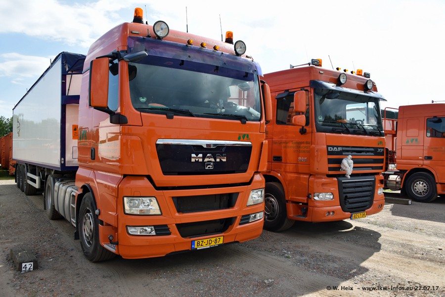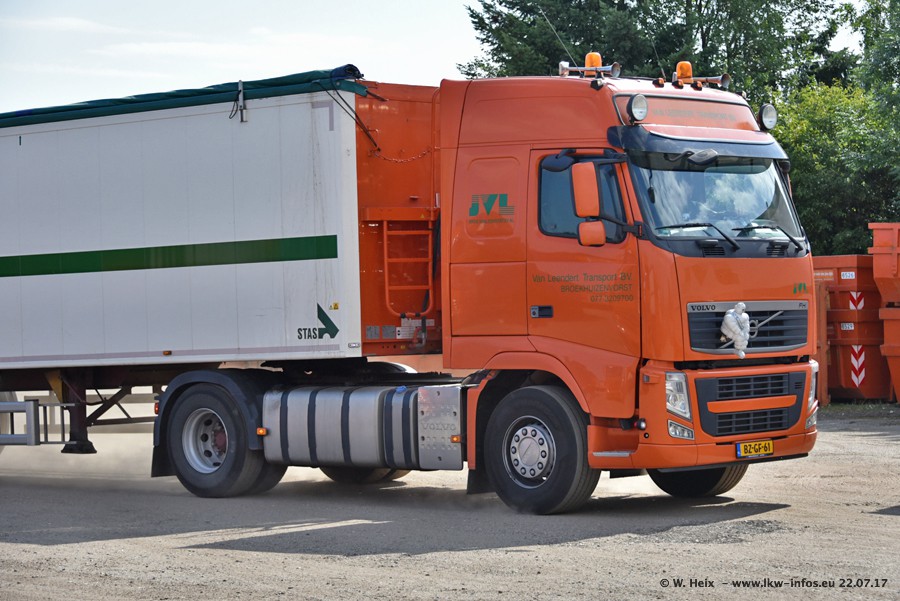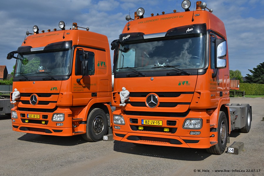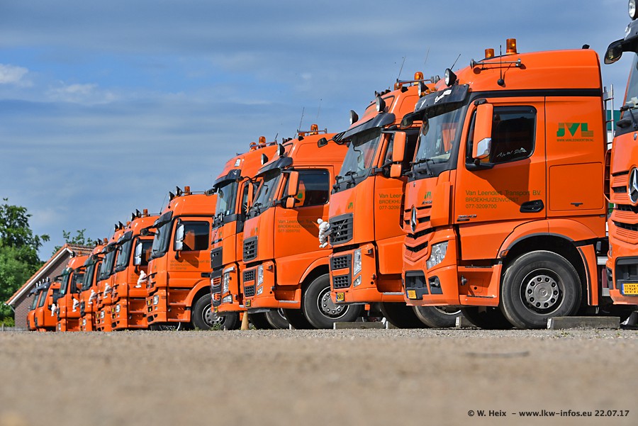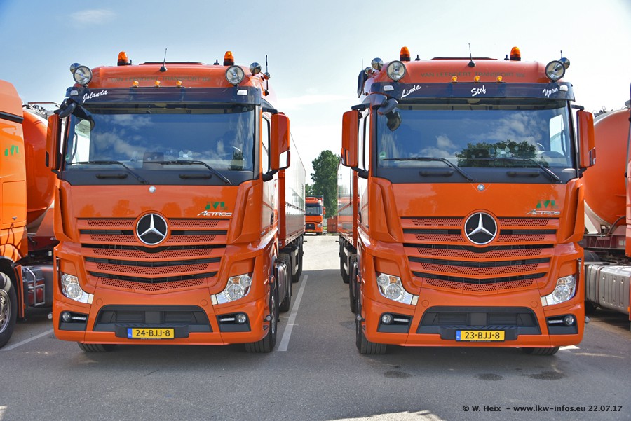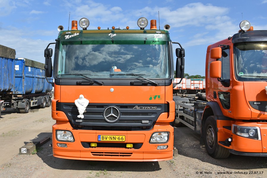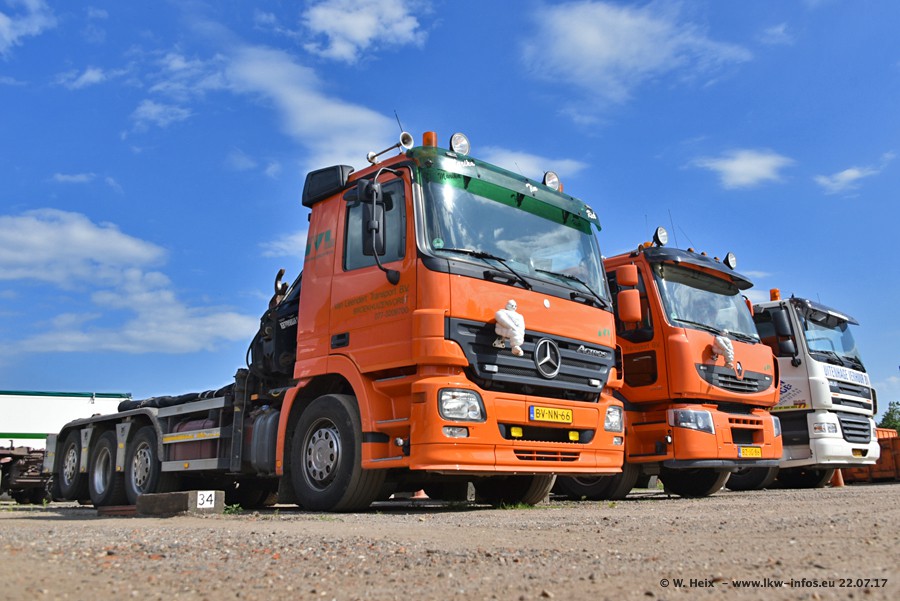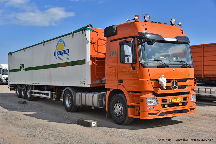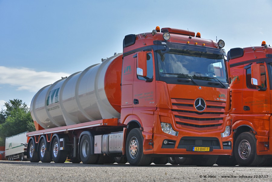 Seit meinem letzten Besuch bei JVL im Oktober 2016 sind einige neue Fahrzeuge in den Fuhrpark gekommen. Das sind: 3 Mercedes-Benz Actros 4 (Nr. 3 ist auf den letzten 2 Bildern zu sehen), 1 Volvo FH 04, 1 DAF XF Euro 6 (war nicht da), 1 Renault D und mehrere Auflieger. Es waren nicht alle LKW zuhause, aber das schöne Sommerwetter hat mir viele gute Bilder ermöglicht.