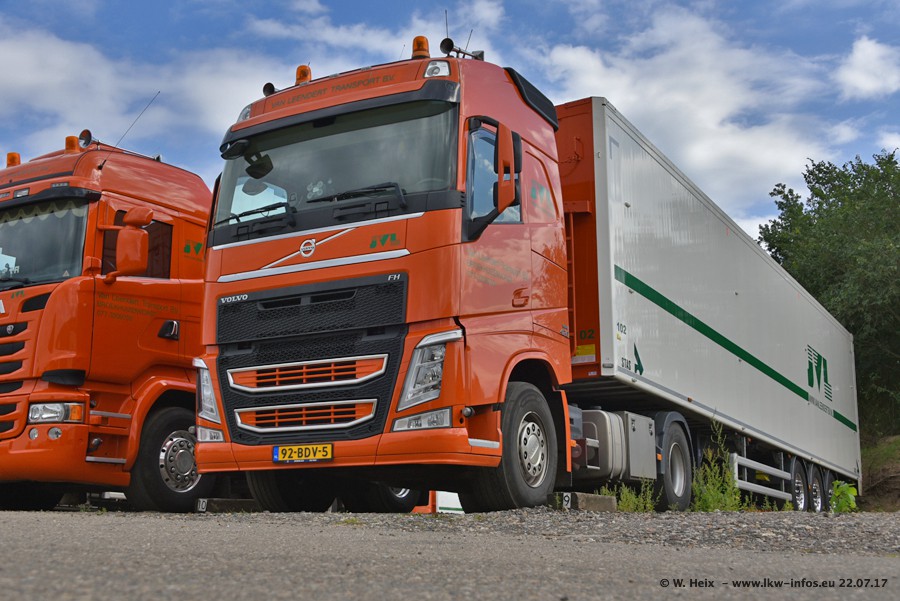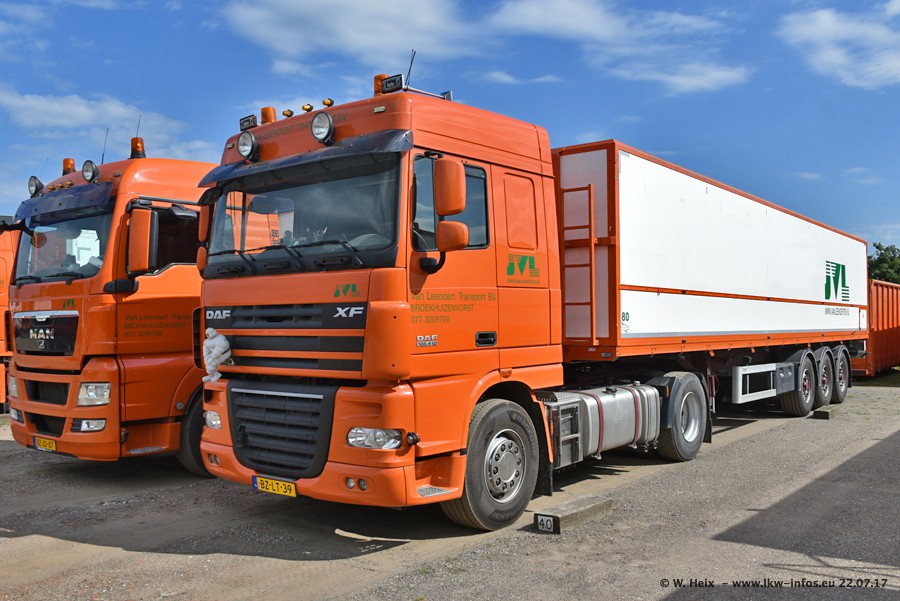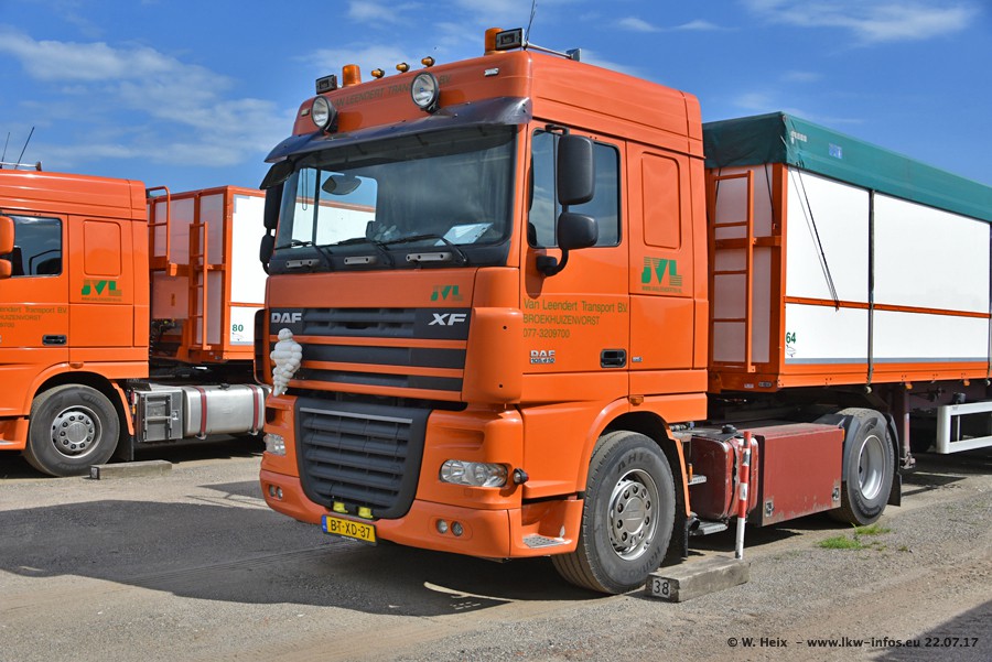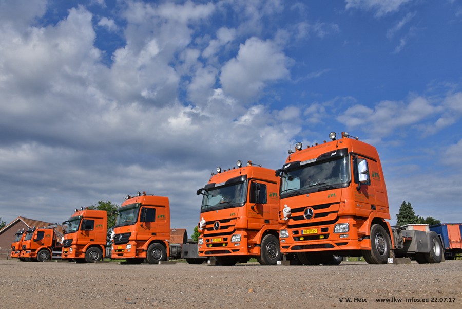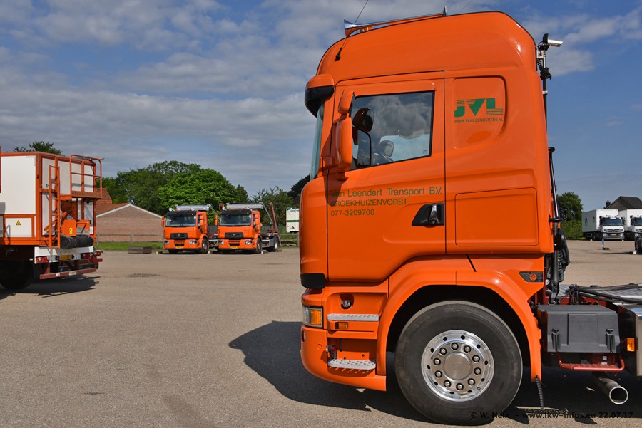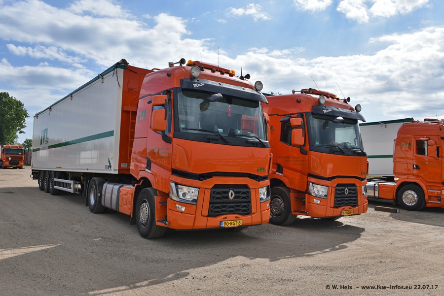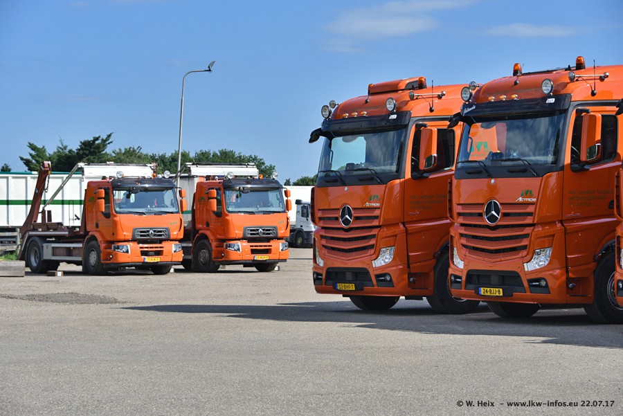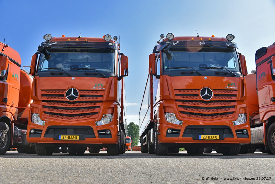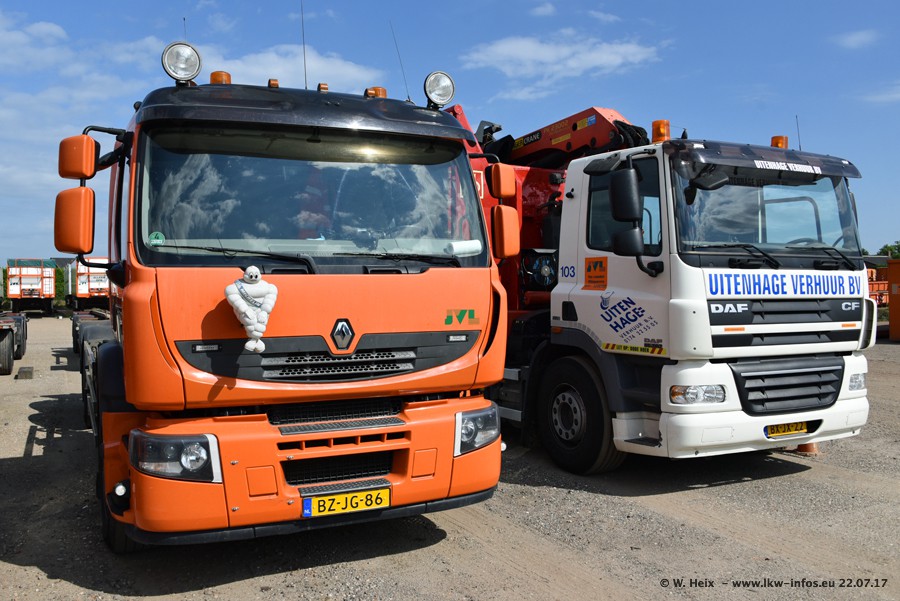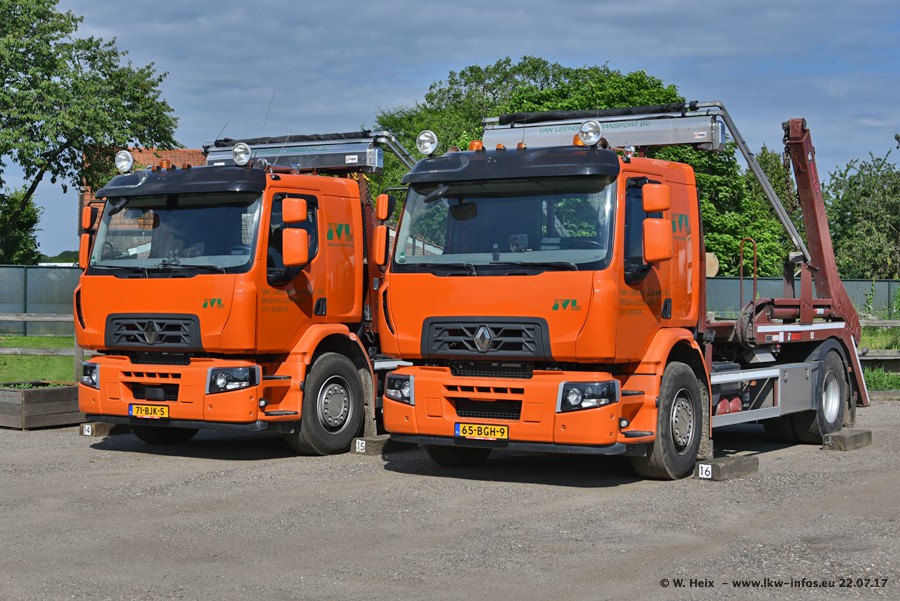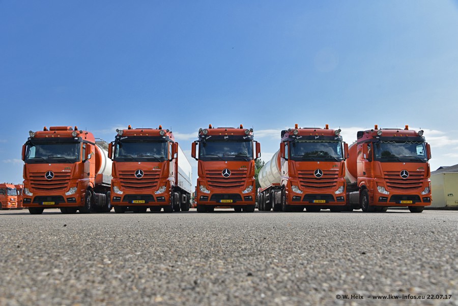Seit meinem letzten Besuch bei JVL im Oktober 2016 sind einige neue Fahrzeuge in den Fuhrpark gekommen. Das sind: 3 Mercedes-Benz Actros 4 (Nr. 3 ist auf den letzten 2 Bildern zu sehen), 1 Volvo FH 04, 1 DAF XF Euro 6 (war nicht da), 1 Renault D und mehrere Auflieger. Es waren nicht alle LKW zuhause, aber das schöne Sommerwetter hat mir viele gute Bilder ermöglicht.