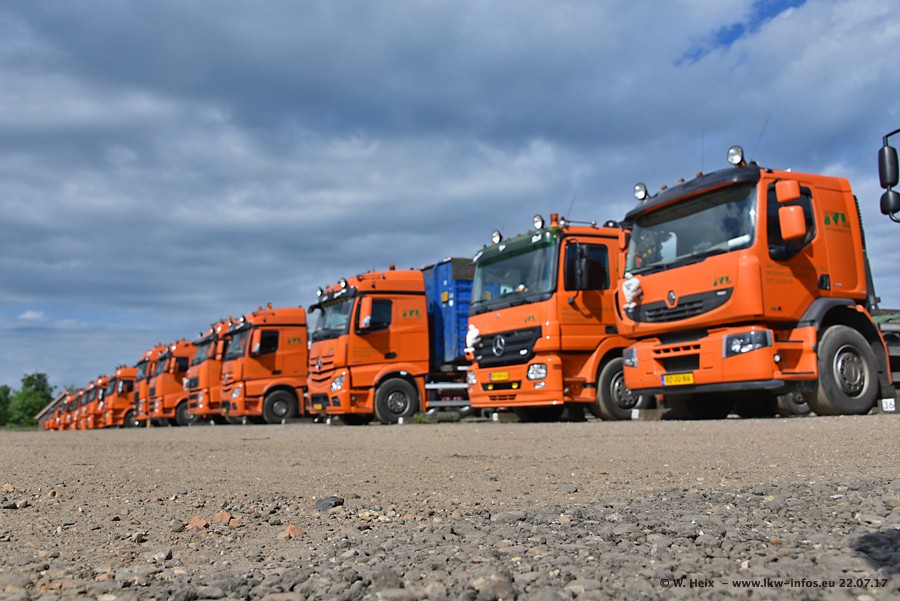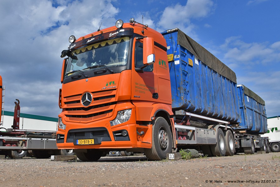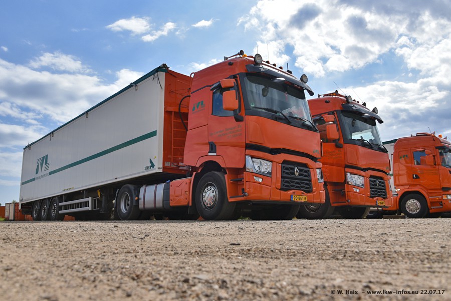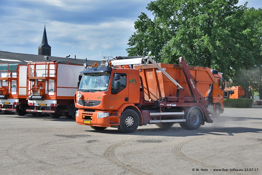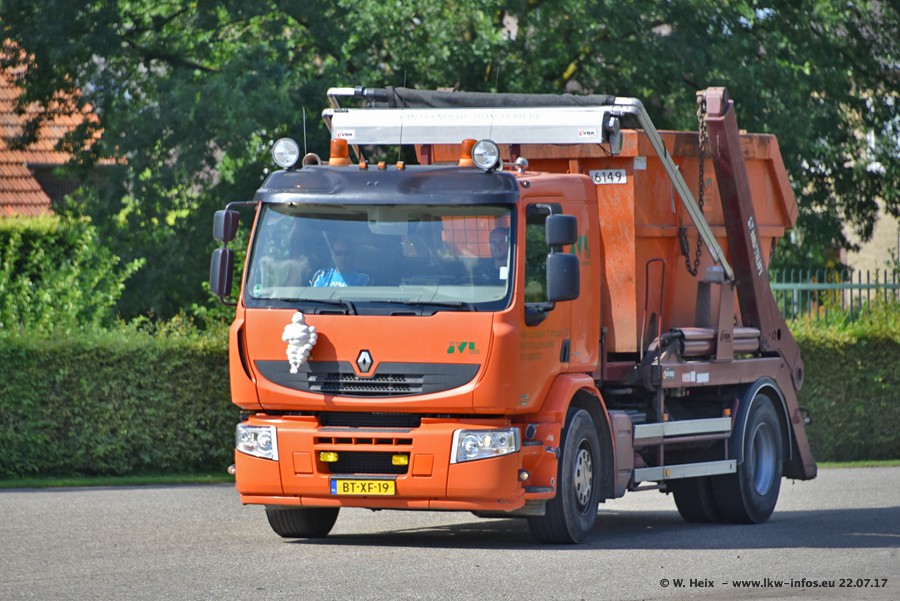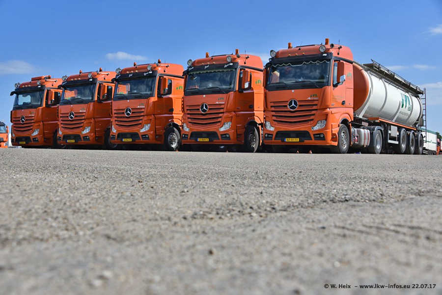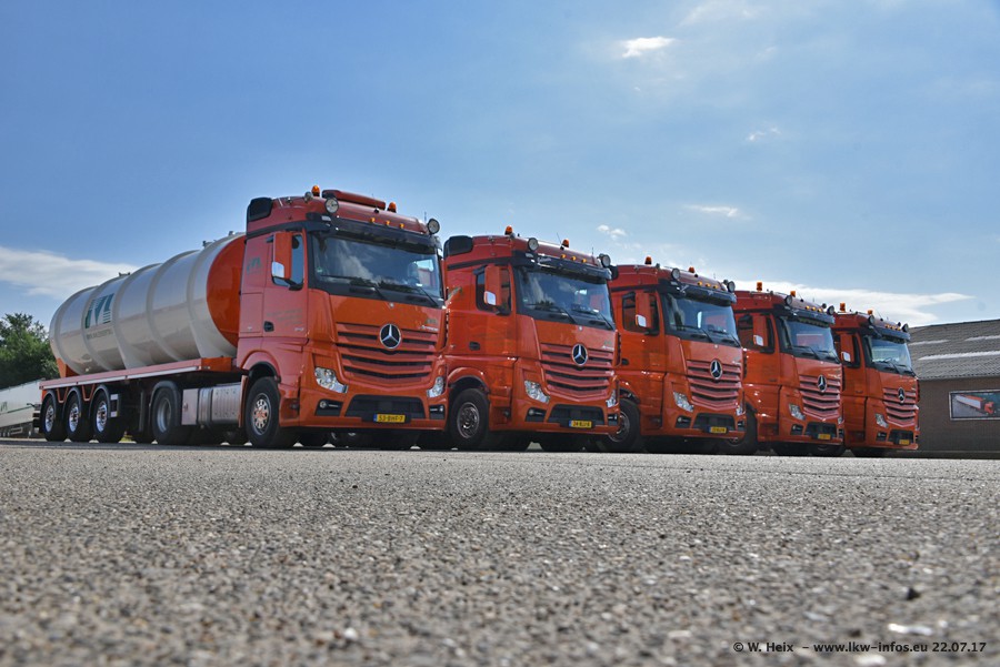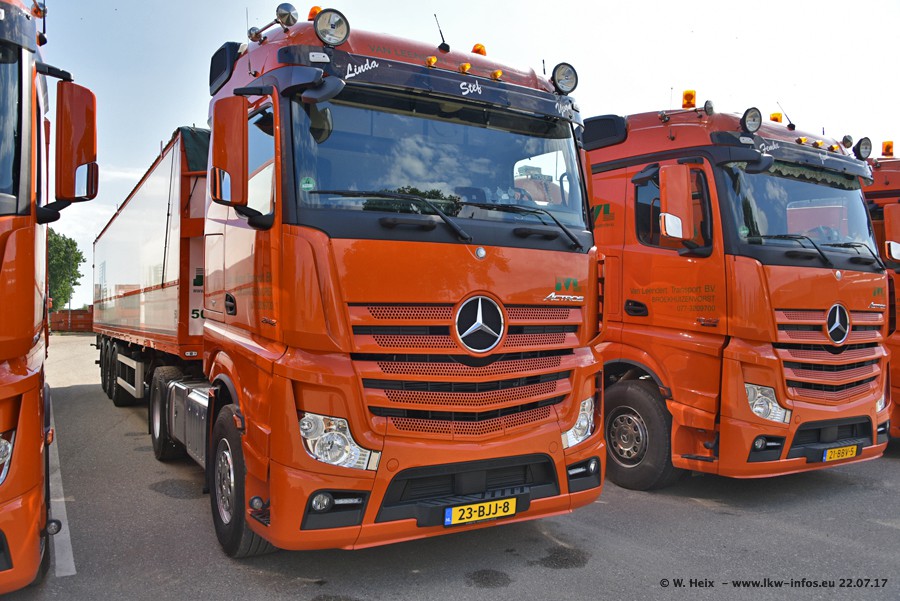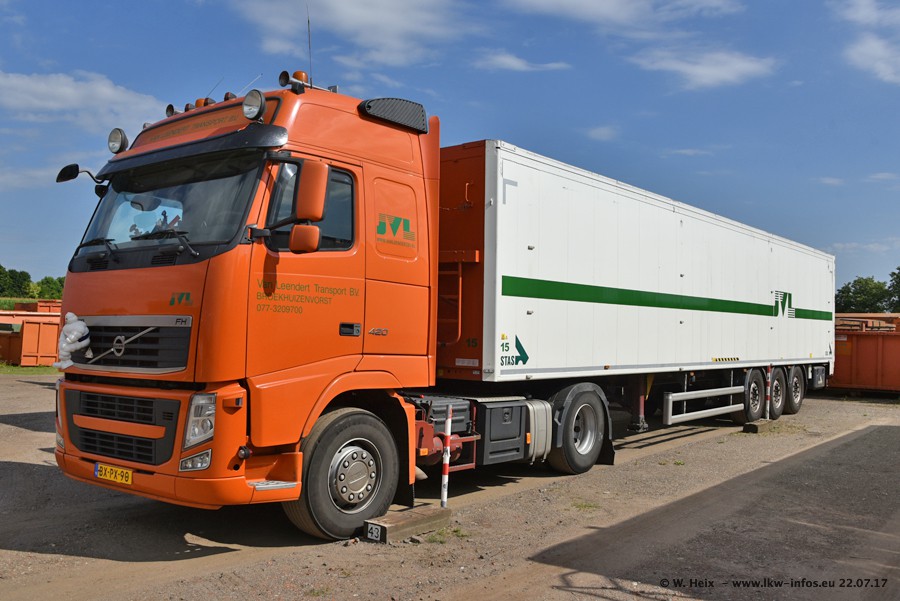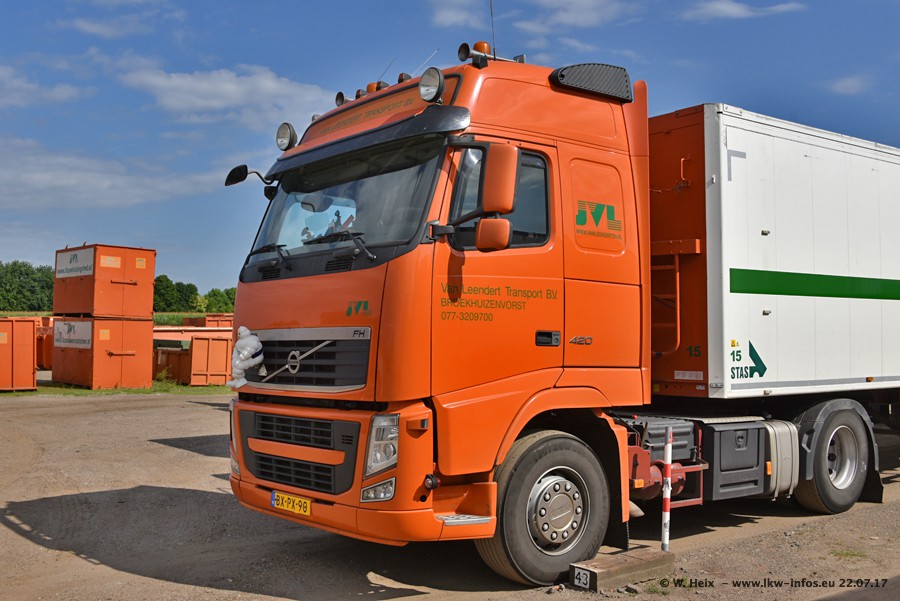 Seit meinem letzten Besuch bei JVL im Oktober 2016 sind einige neue Fahrzeuge in den Fuhrpark gekommen. Das sind: 3 Mercedes-Benz Actros 4 (Nr. 3 ist auf den letzten 2 Bildern zu sehen), 1 Volvo FH 04, 1 DAF XF Euro 6 (war nicht da), 1 Renault D und mehrere Auflieger. Es waren nicht alle LKW zuhause, aber das schöne Sommerwetter hat mir viele gute Bilder ermöglicht.