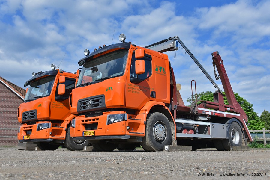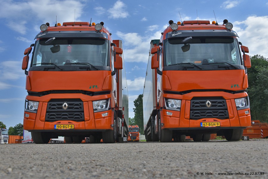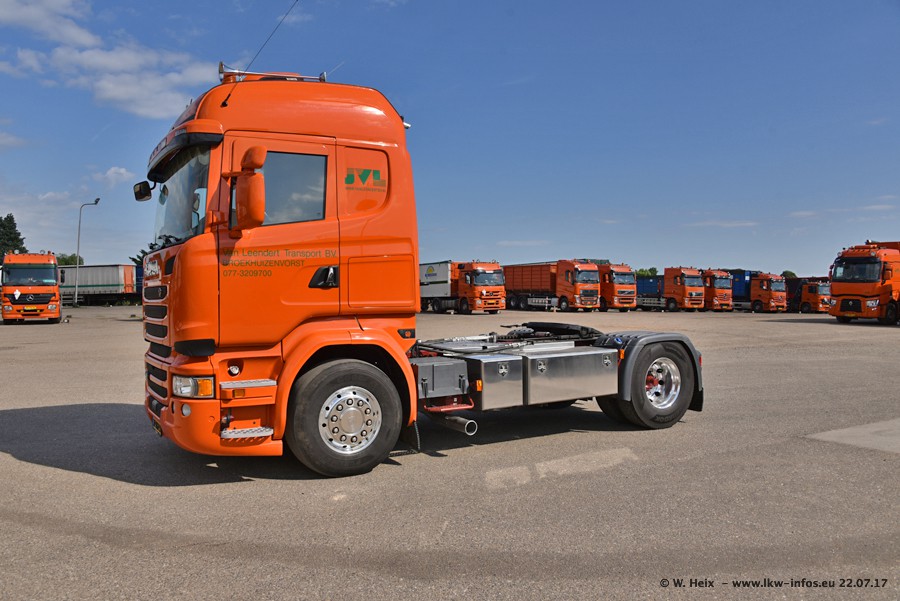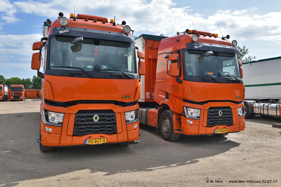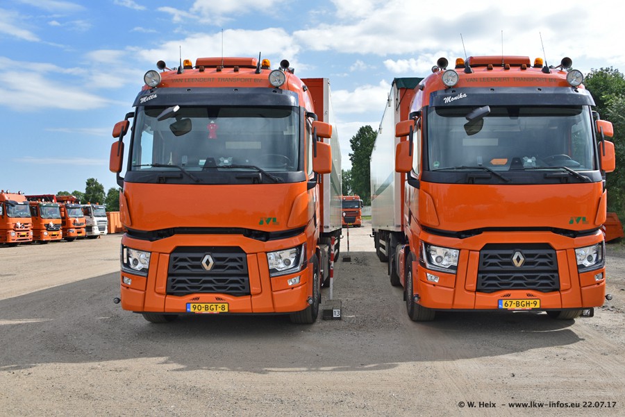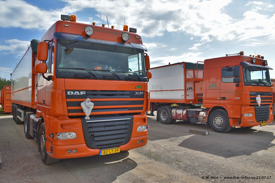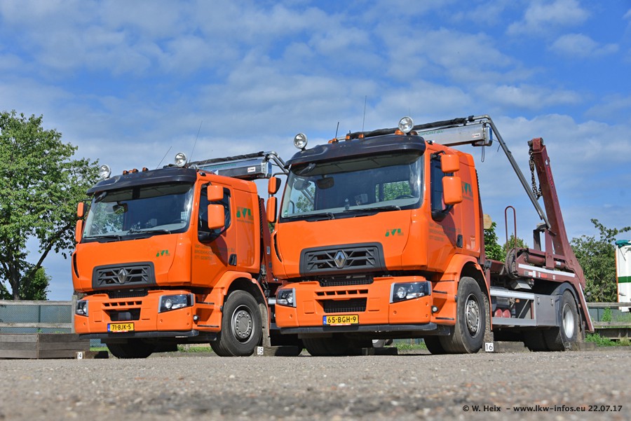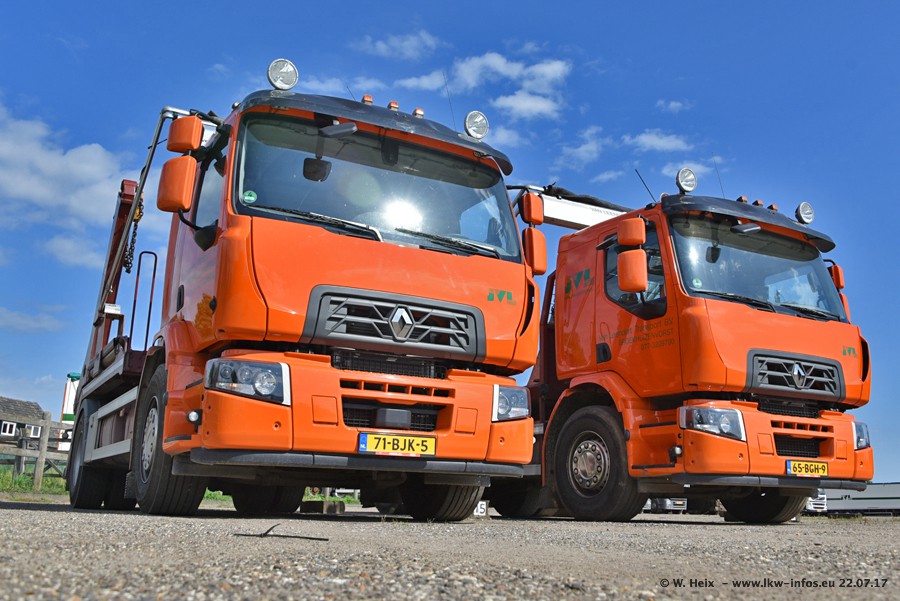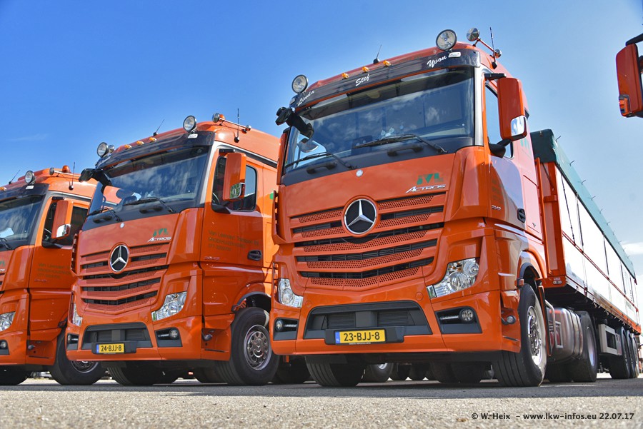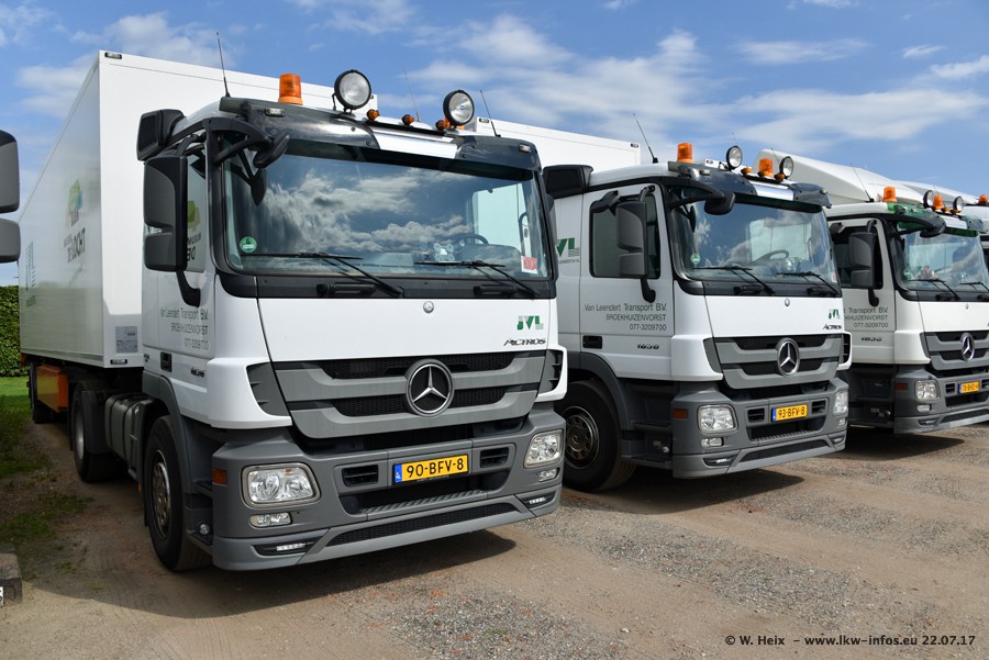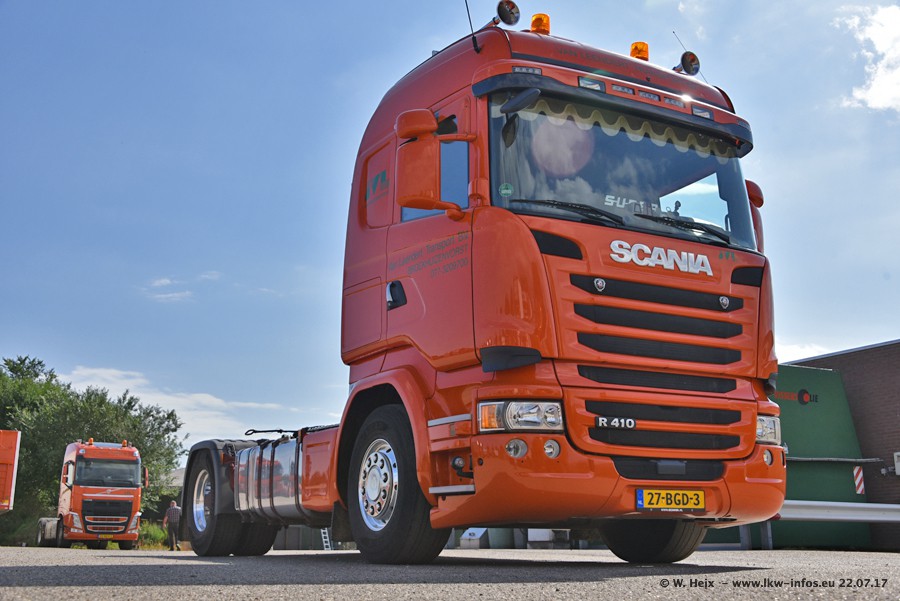 Seit meinem letzten Besuch bei JVL im Oktober 2016 sind einige neue Fahrzeuge in den Fuhrpark gekommen. Das sind: 3 Mercedes-Benz Actros 4 (Nr. 3 ist auf den letzten 2 Bildern zu sehen), 1 Volvo FH 04, 1 DAF XF Euro 6 (war nicht da), 1 Renault D und mehrere Auflieger. Es waren nicht alle LKW zuhause, aber das schöne Sommerwetter hat mir viele gute Bilder ermöglicht.