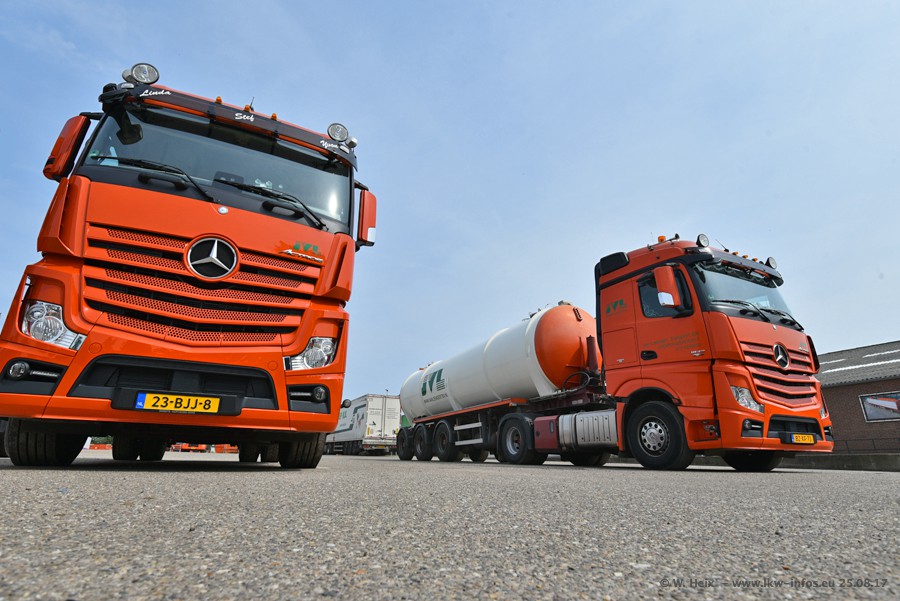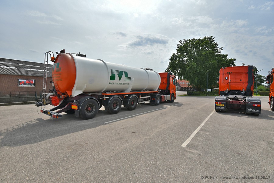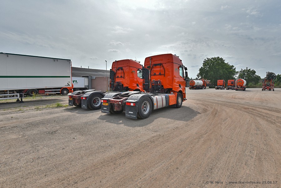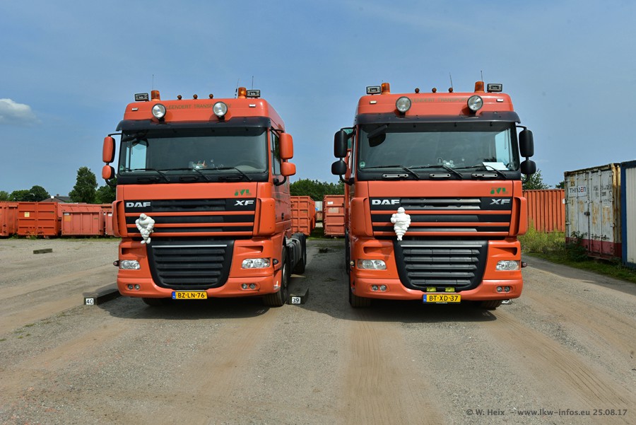 Da dieser Besuch während der Woche war, standen natürlich nur einige wenige Fahrzeuge auf dem Hof. Der Grund des Besuchs war diesmal aber auch ein anderer. Ein wenig Glück hatte ich dennoch, denn der neue DAF XF 410 Euro 6 stand auf dem Hof. Der war beim Besuch vor einigen Wochen nicht da. Dies ist der erste "neue" DAF bei van Leendert.