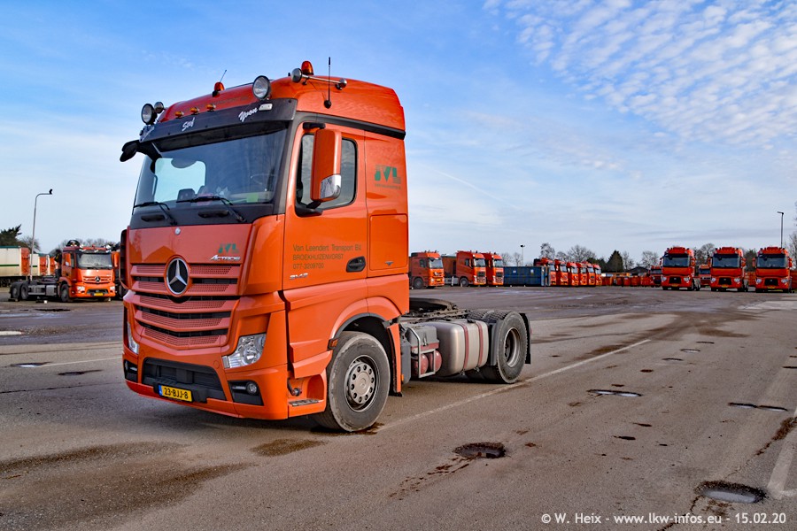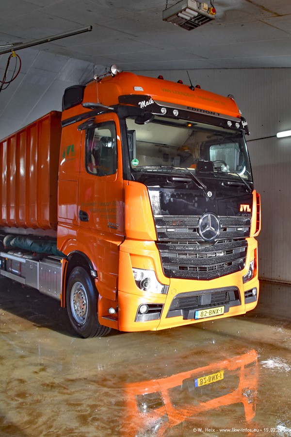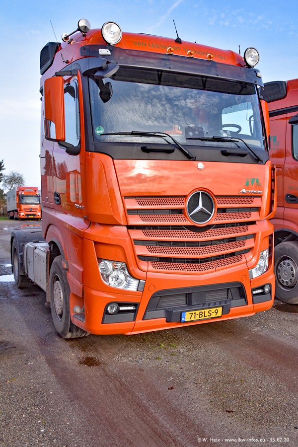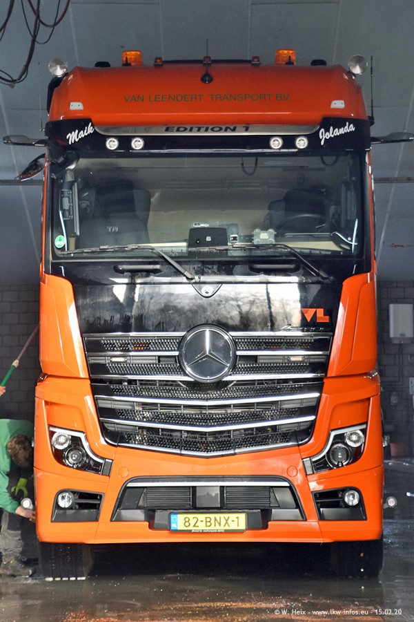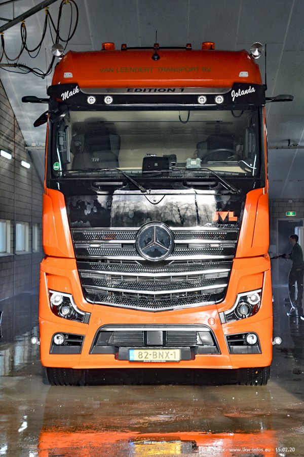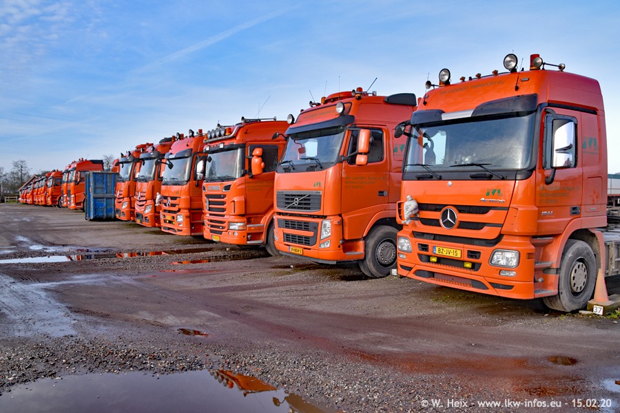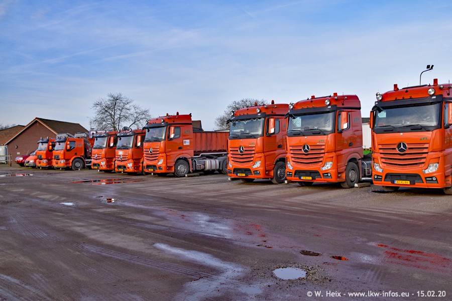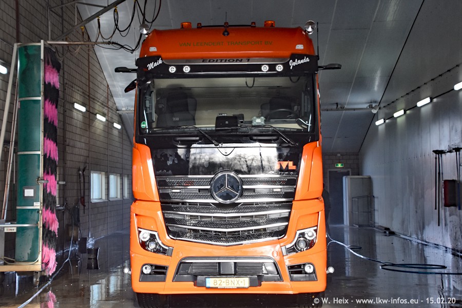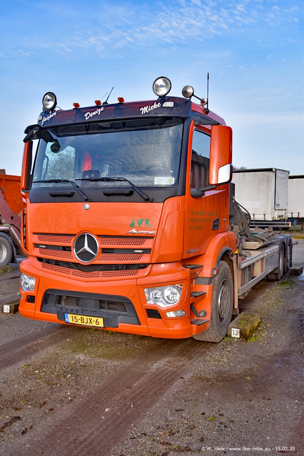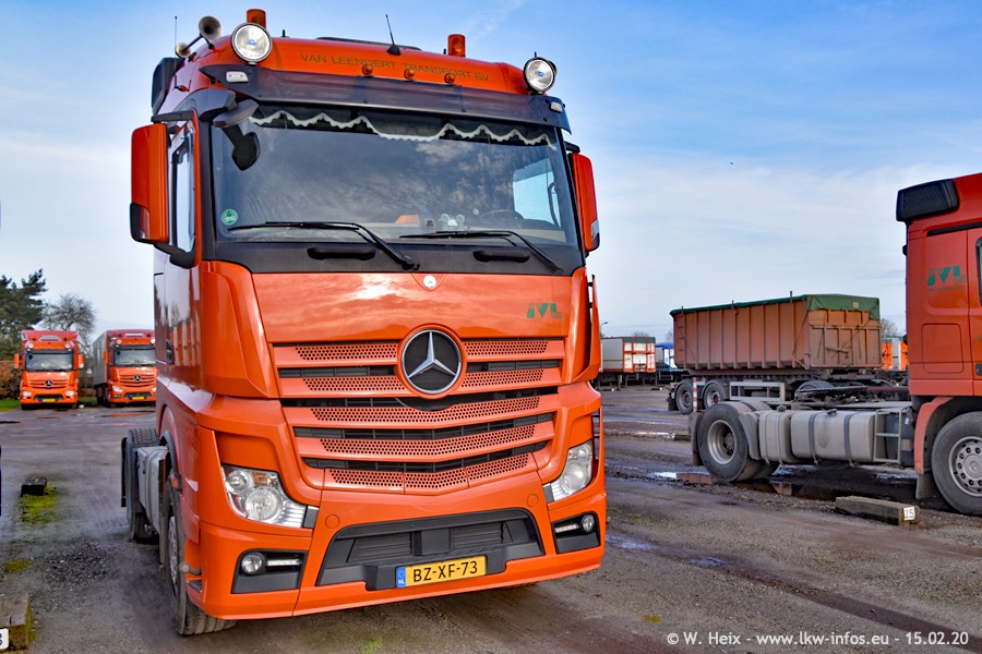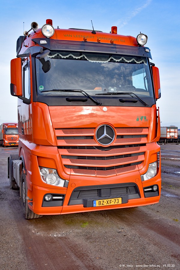 Die Nachricht kam 3 Tage vor meinem Besuch: van Leendert hat einen großen Teil des Fuhrparks an die Firma AB Texel verkauft - zum 01.03.2020. Das bedeutet, dass rund 30 Fahrzeuge verkauft sind. Der Bereich Umweltservice bleibt bestehen und wird mit 18 LKW fortgeführt. Es gibt also zum letzten Mal so gut wie alle LKW auf dem Hof zu sehen. Neu sind zwei Mercedes-Benz New Actros 4 2136, die auf den ersten Fotos zu sehen sind. Zwei weitere werden demnächst folgen. Welche LKW genau bleiben, weiß ich im Moment nicht. Auf jeden Fall der Mercedes-Benz New Actros 4 "Edition 1", den JVL sich zum 40-jährigen Firmenjubiläim im September 2019 gegönnt hat. Siehe Bildergalerie Teil 12!