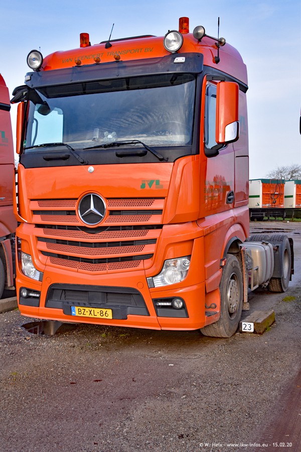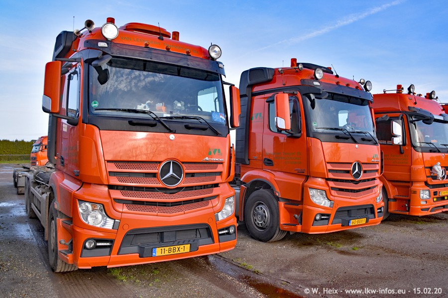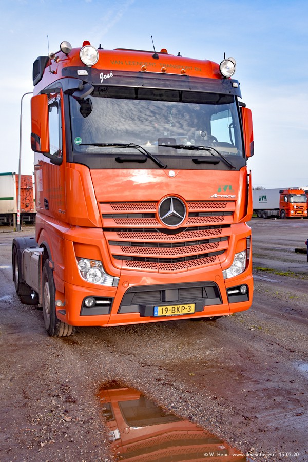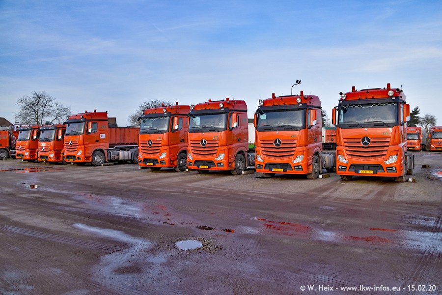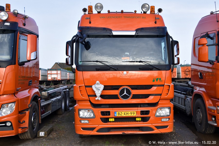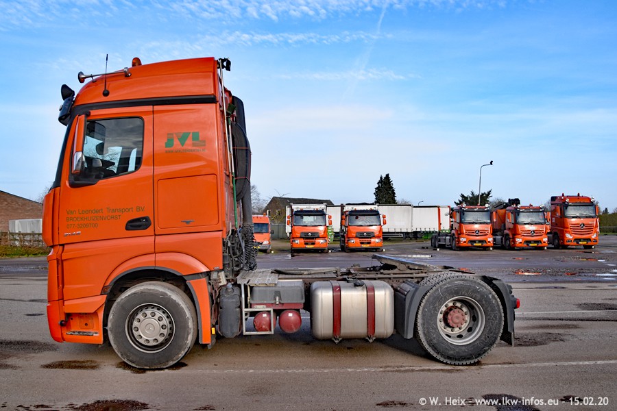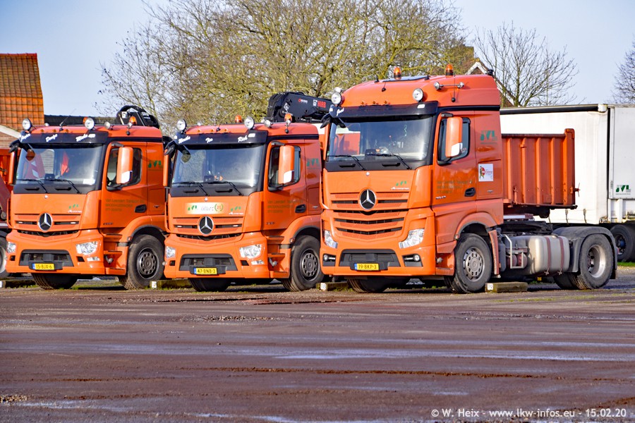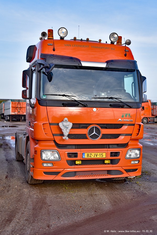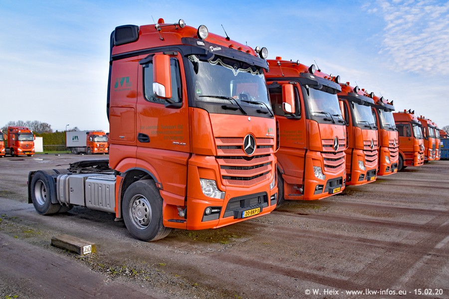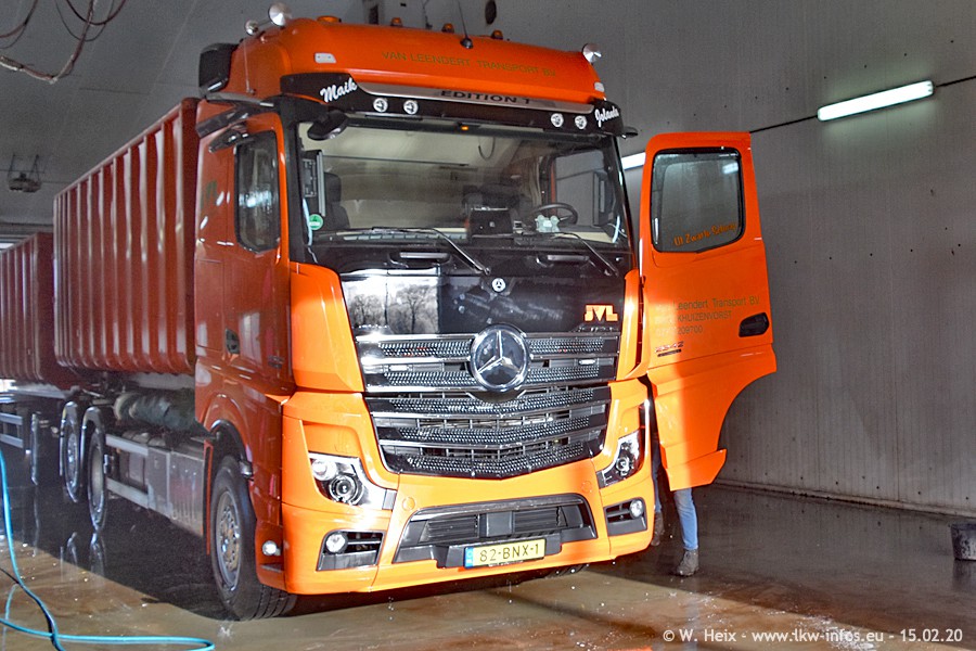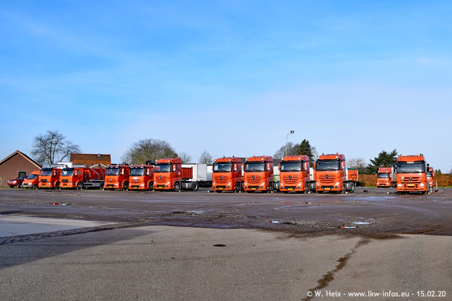 Die Nachricht kam 3 Tage vor meinem Besuch: van Leendert hat einen großen Teil des Fuhrparks an die Firma AB Texel verkauft - zum 01.03.2020. Das bedeutet, dass rund 30 Fahrzeuge verkauft sind. Der Bereich Umweltservice bleibt bestehen und wird mit 18 LKW fortgeführt. Es gibt also zum letzten Mal so gut wie alle LKW auf dem Hof zu sehen. Neu sind zwei Mercedes-Benz New Actros 4 2136, die auf den ersten Fotos zu sehen sind. Zwei weitere werden demnächst folgen. Welche LKW genau bleiben, weiß ich im Moment nicht. Auf jeden Fall der Mercedes-Benz New Actros 4 "Edition 1", den JVL sich zum 40-jährigen Firmenjubiläim im September 2019 gegönnt hat. Siehe Bildergalerie Teil 12!
