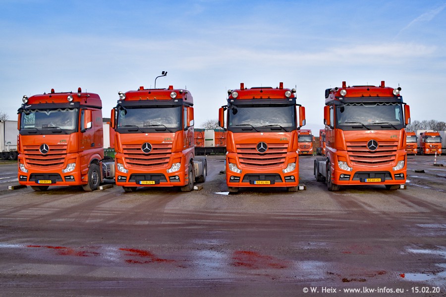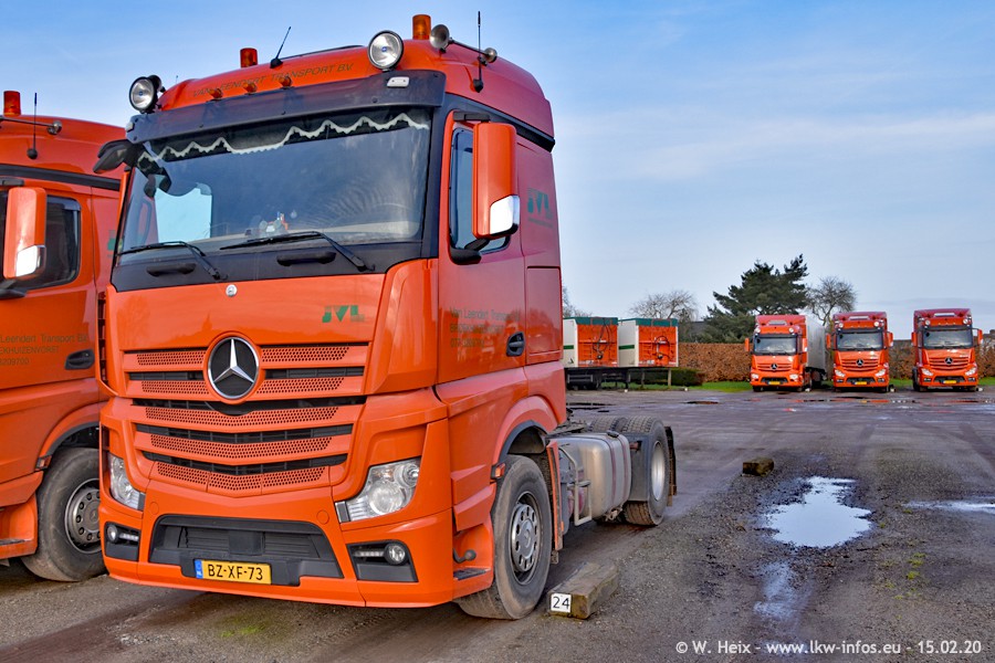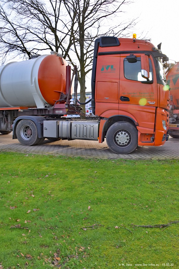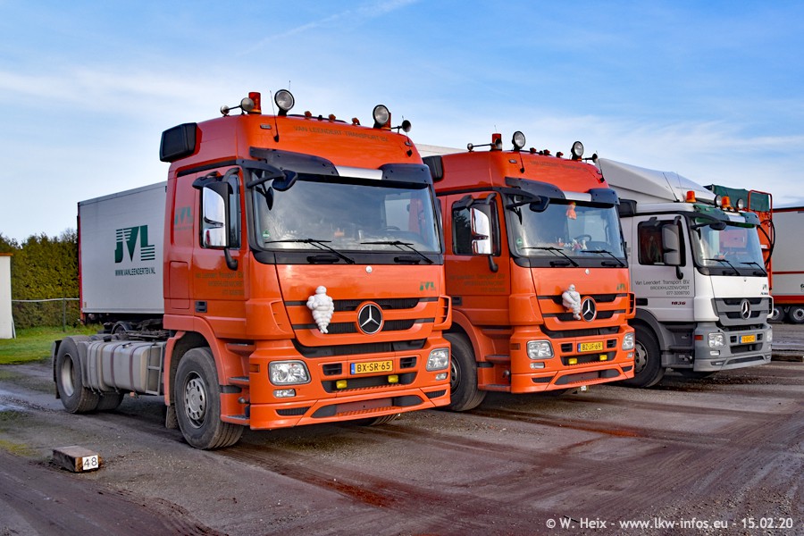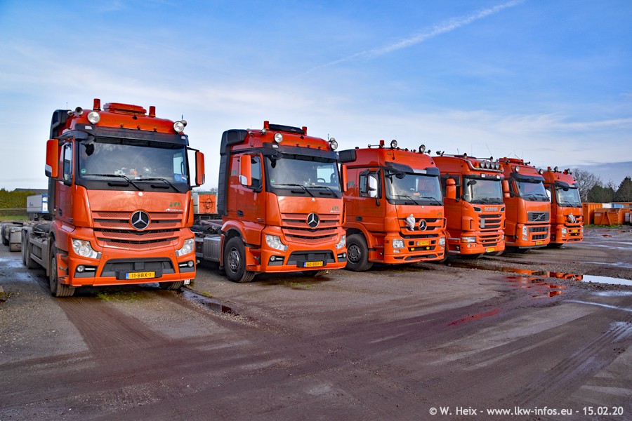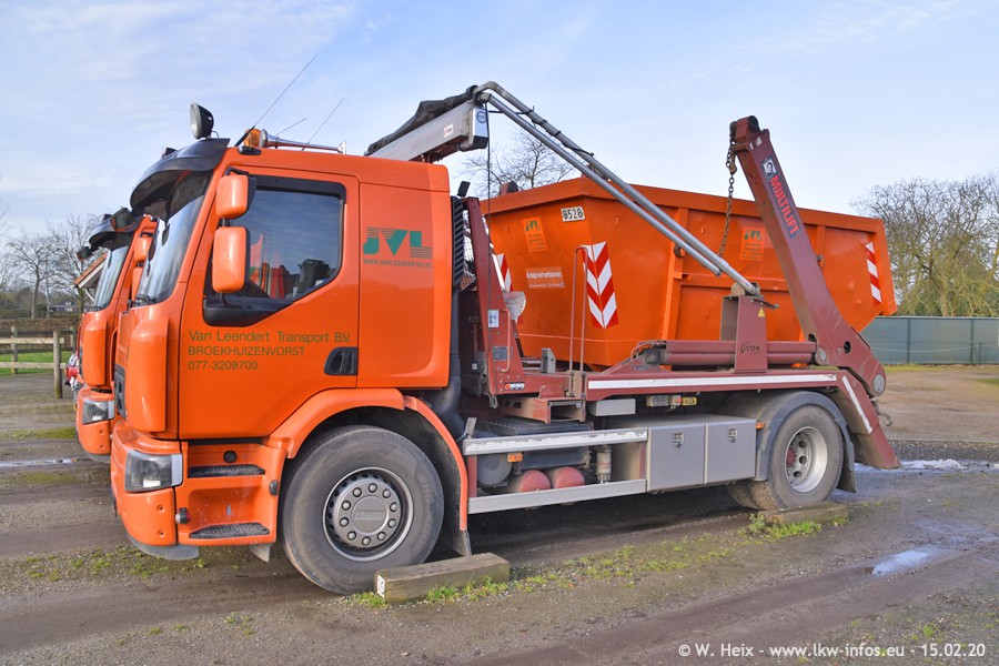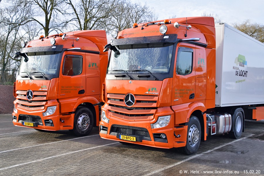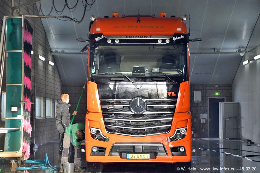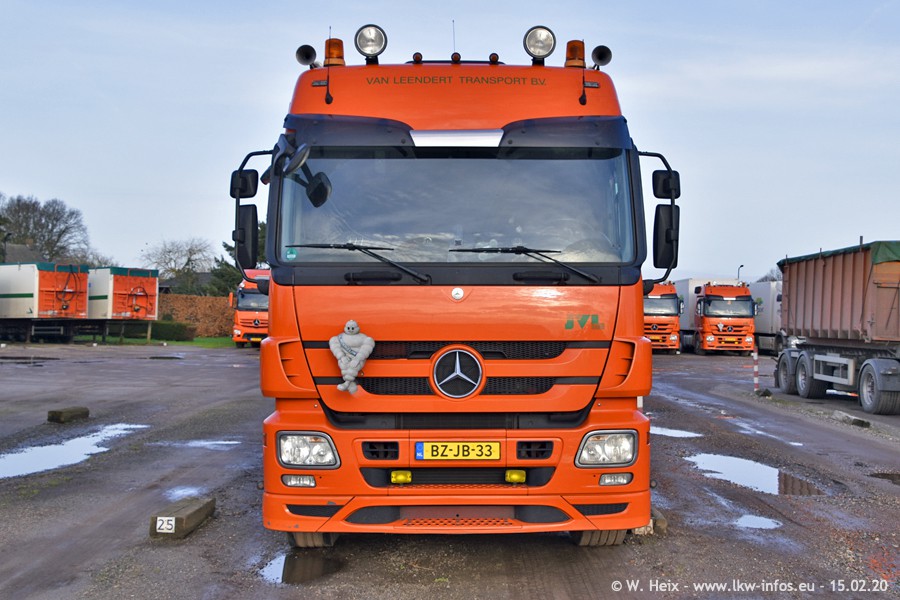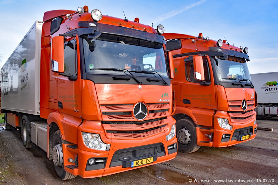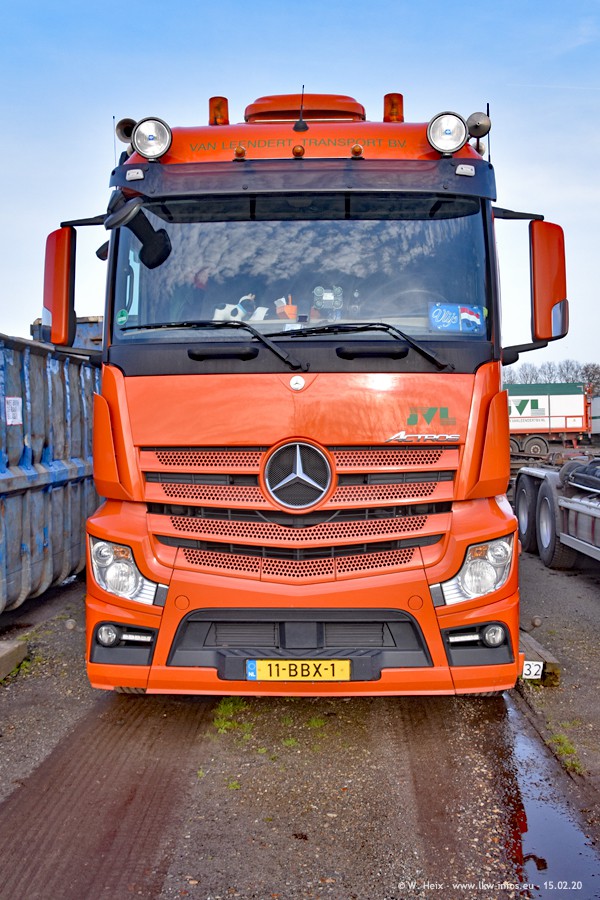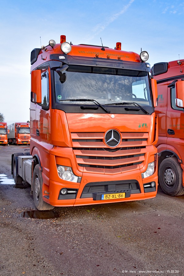 Die Nachricht kam 3 Tage vor meinem Besuch: van Leendert hat einen großen Teil des Fuhrparks an die Firma AB Texel verkauft - zum 01.03.2020. Das bedeutet, dass rund 30 Fahrzeuge verkauft sind. Der Bereich Umweltservice bleibt bestehen und wird mit 18 LKW fortgeführt. Es gibt also zum letzten Mal so gut wie alle LKW auf dem Hof zu sehen. Neu sind zwei Mercedes-Benz New Actros 4 2136, die auf den ersten Fotos zu sehen sind. Zwei weitere werden demnächst folgen. Welche LKW genau bleiben, weiß ich im Moment nicht. Auf jeden Fall der Mercedes-Benz New Actros 4 "Edition 1", den JVL sich zum 40-jährigen Firmenjubiläim im September 2019 gegönnt hat. Siehe Bildergalerie Teil 12!