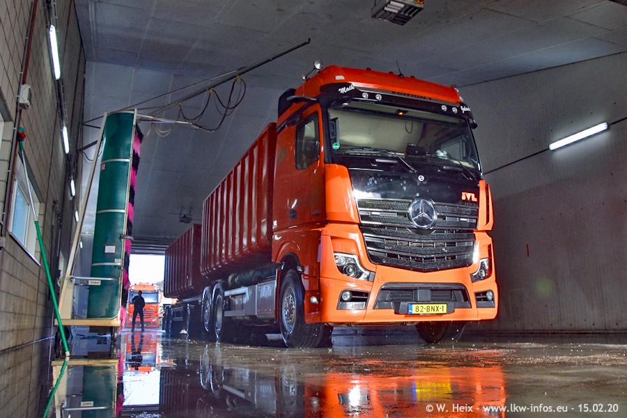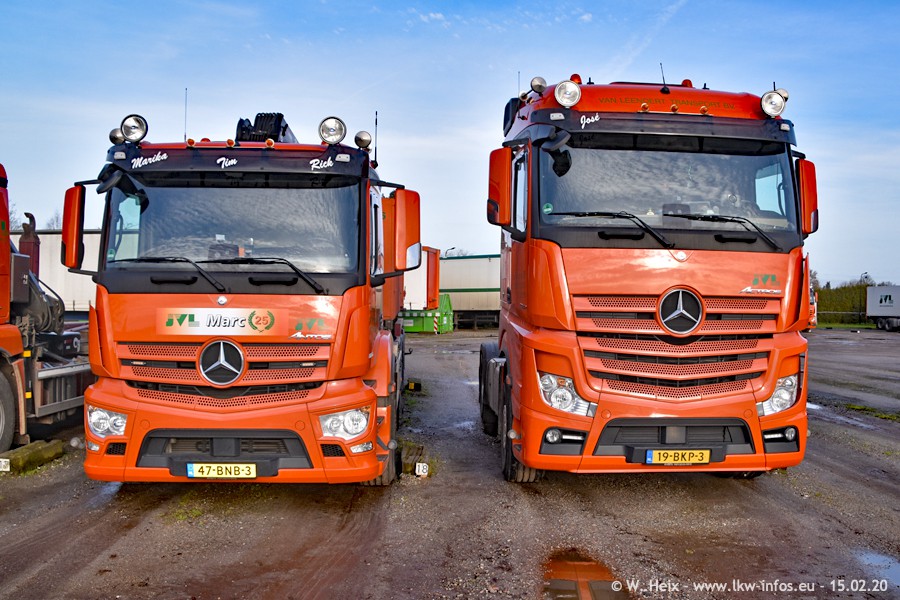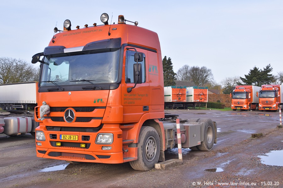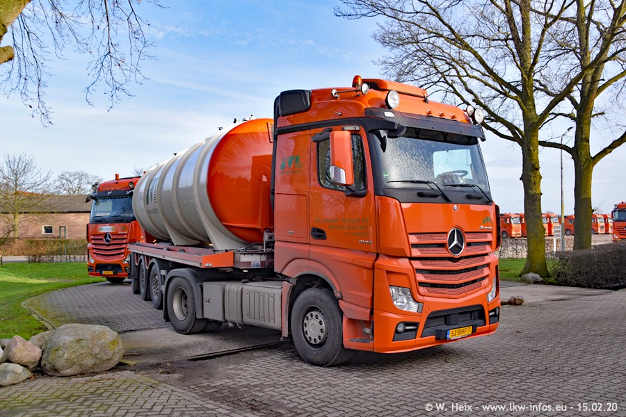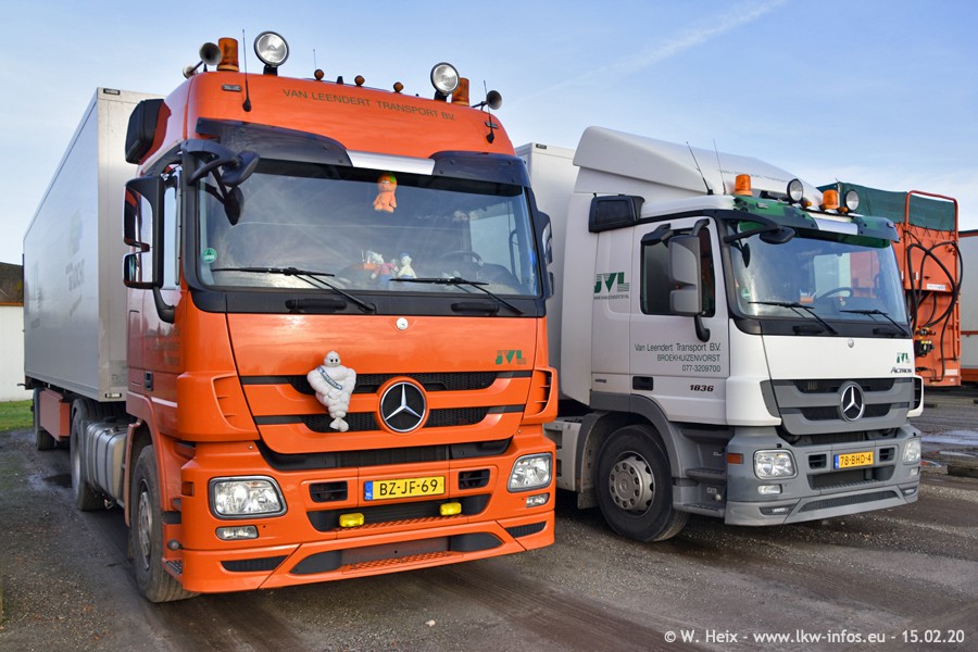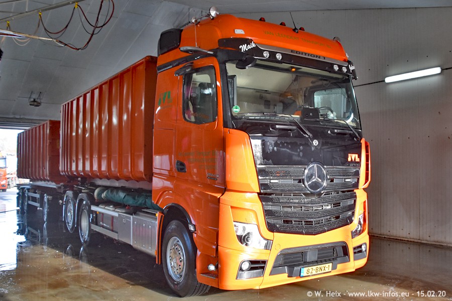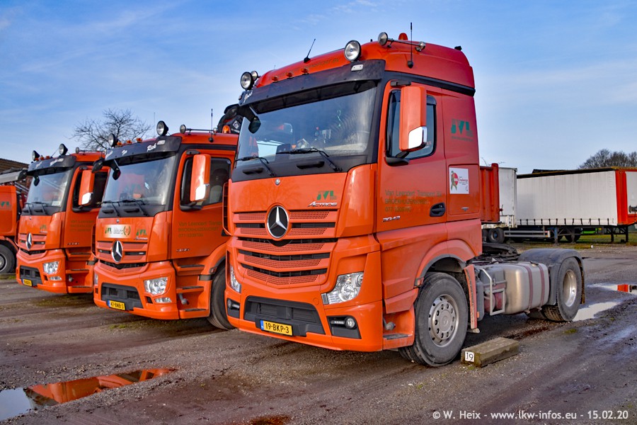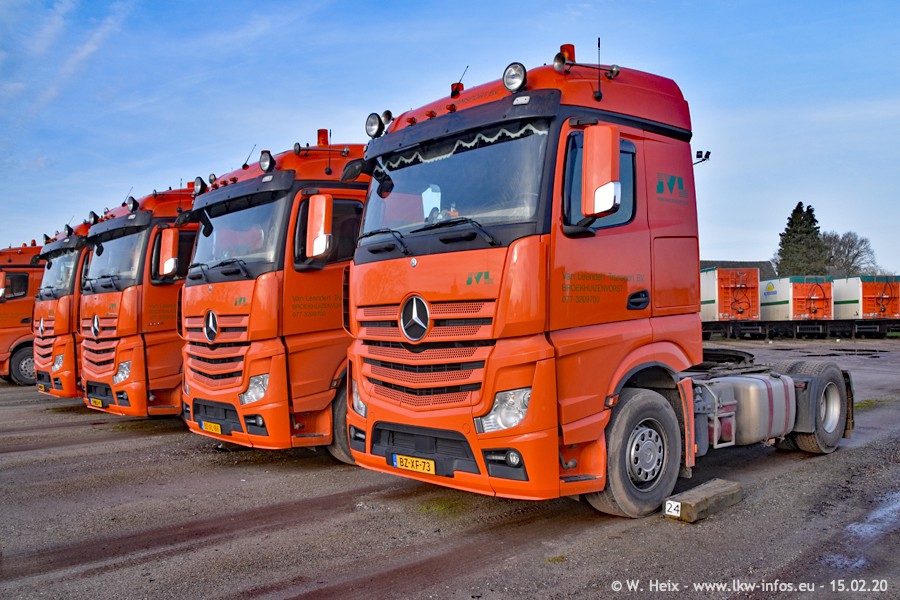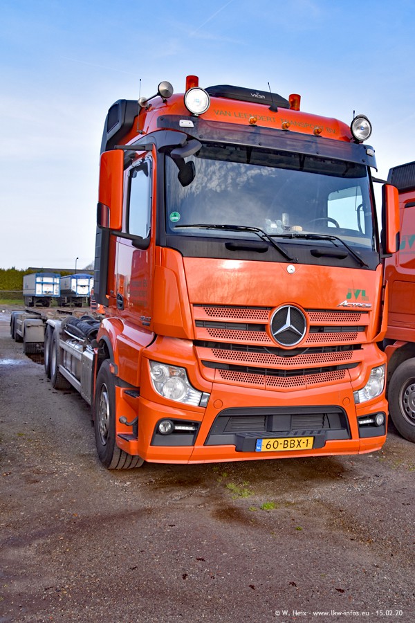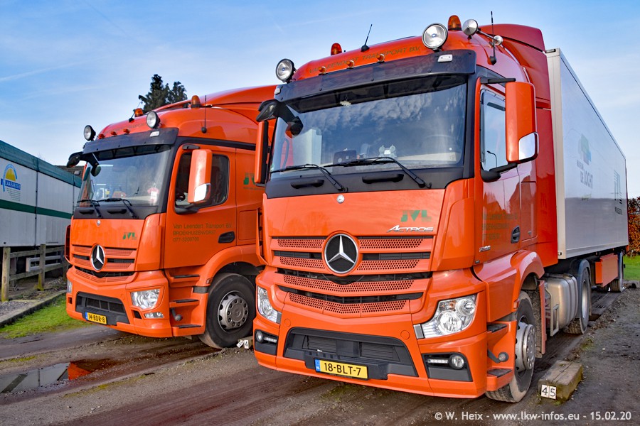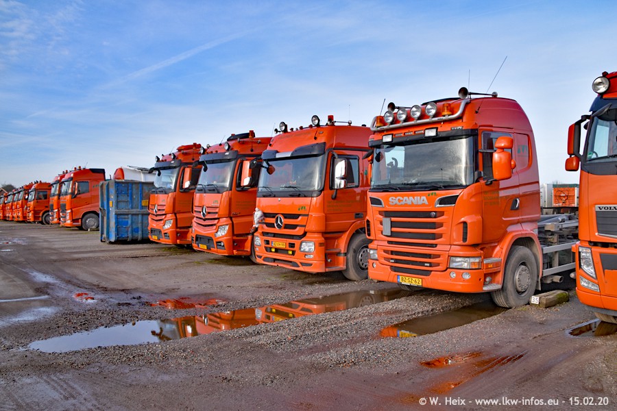 Die Nachricht kam 3 Tage vor meinem Besuch: van Leendert hat einen großen Teil des Fuhrparks an die Firma AB Texel verkauft - zum 01.03.2020. Das bedeutet, dass rund 30 Fahrzeuge verkauft sind. Der Bereich Umweltservice bleibt bestehen und wird mit 18 LKW fortgeführt. Es gibt also zum letzten Mal so gut wie alle LKW auf dem Hof zu sehen. Neu sind zwei Mercedes-Benz New Actros 4 2136, die auf den ersten Fotos zu sehen sind. Zwei weitere werden demnächst folgen. Welche LKW genau bleiben, weiß ich im Moment nicht. Auf jeden Fall der Mercedes-Benz New Actros 4 "Edition 1", den JVL sich zum 40-jährigen Firmenjubiläim im September 2019 gegönnt hat. Siehe Bildergalerie Teil 12!