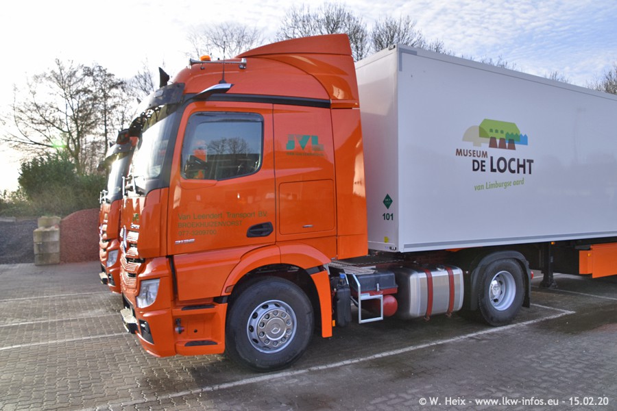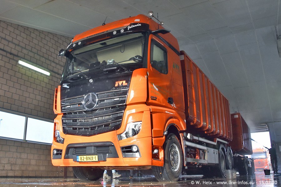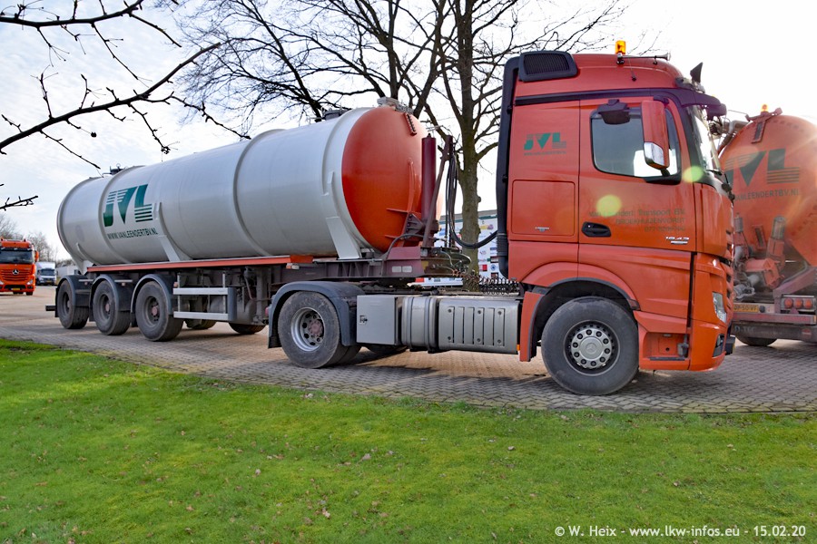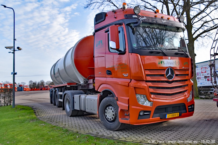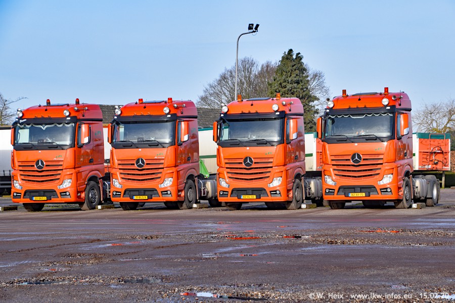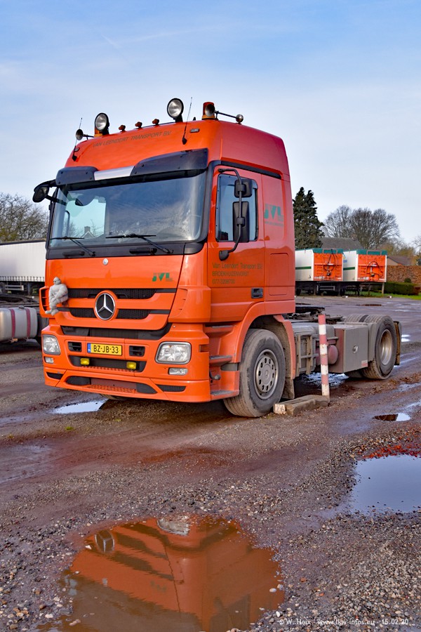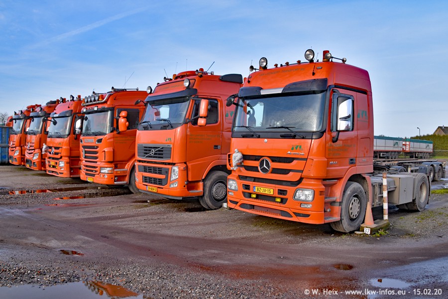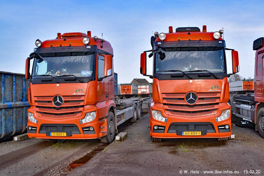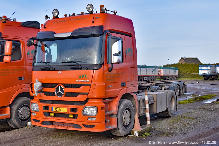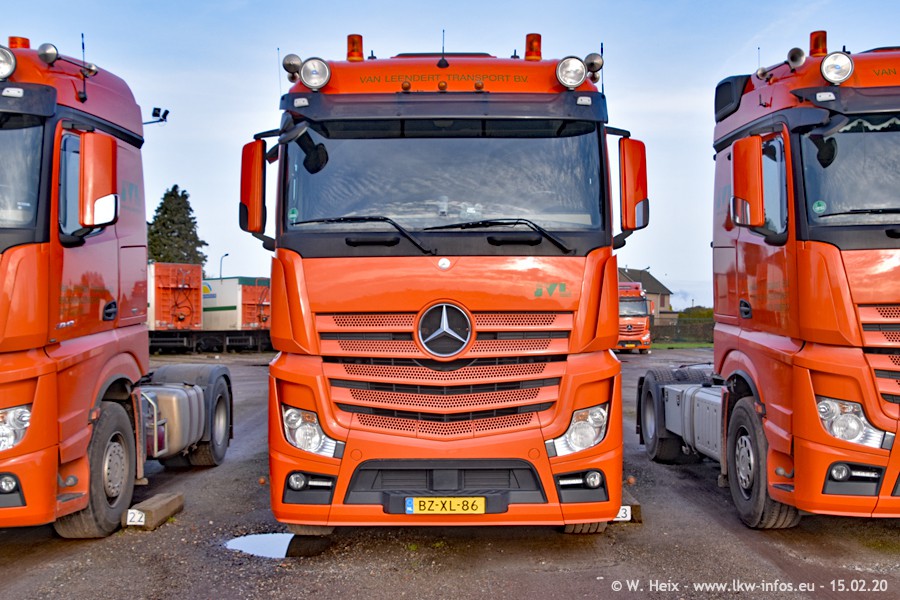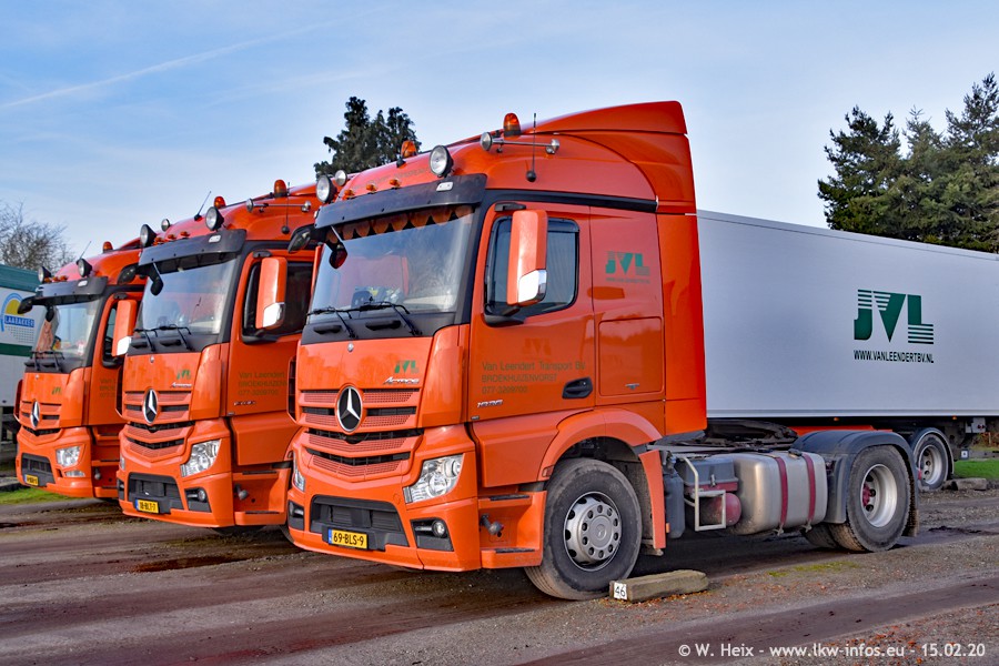 Die Nachricht kam 3 Tage vor meinem Besuch: van Leendert hat einen großen Teil des Fuhrparks an die Firma AB Texel verkauft - zum 01.03.2020. Das bedeutet, dass rund 30 Fahrzeuge verkauft sind. Der Bereich Umweltservice bleibt bestehen und wird mit 18 LKW fortgeführt. Es gibt also zum letzten Mal so gut wie alle LKW auf dem Hof zu sehen. Neu sind zwei Mercedes-Benz New Actros 4 2136, die auf den ersten Fotos zu sehen sind. Zwei weitere werden demnächst folgen. Welche LKW genau bleiben, weiß ich im Moment nicht. Auf jeden Fall der Mercedes-Benz New Actros 4 "Edition 1", den JVL sich zum 40-jährigen Firmenjubiläim im September 2019 gegönnt hat. Siehe Bildergalerie Teil 12!