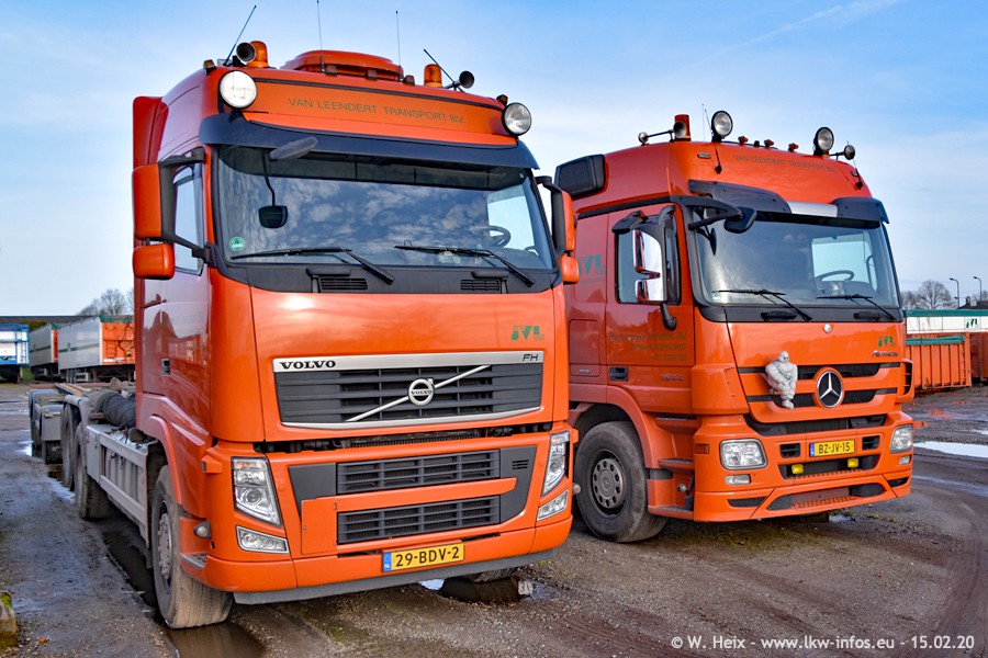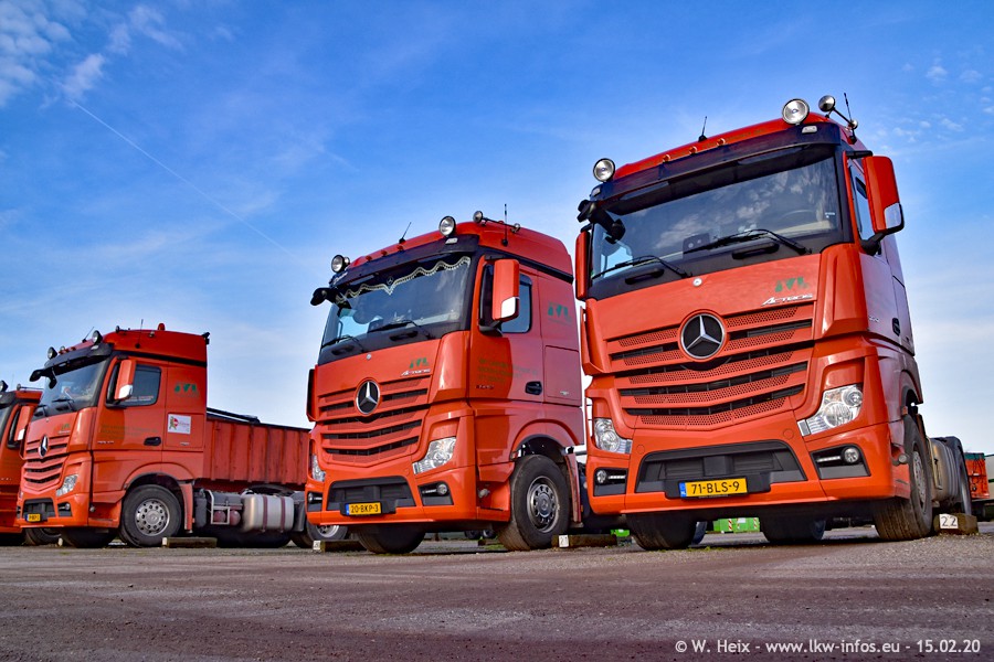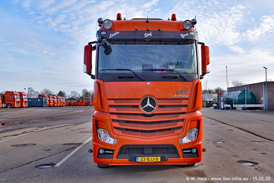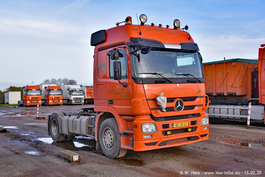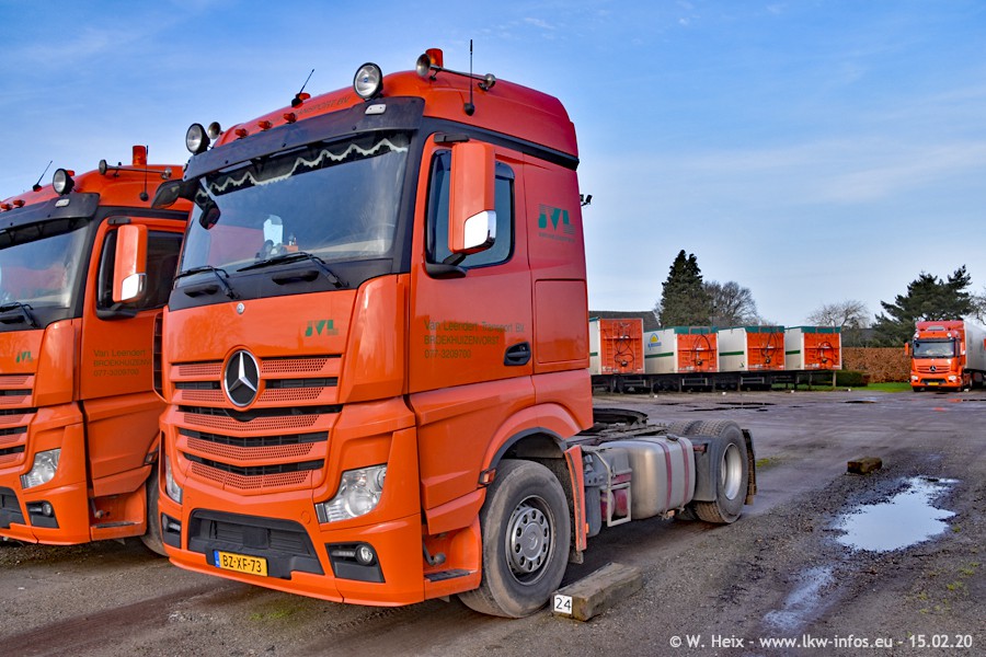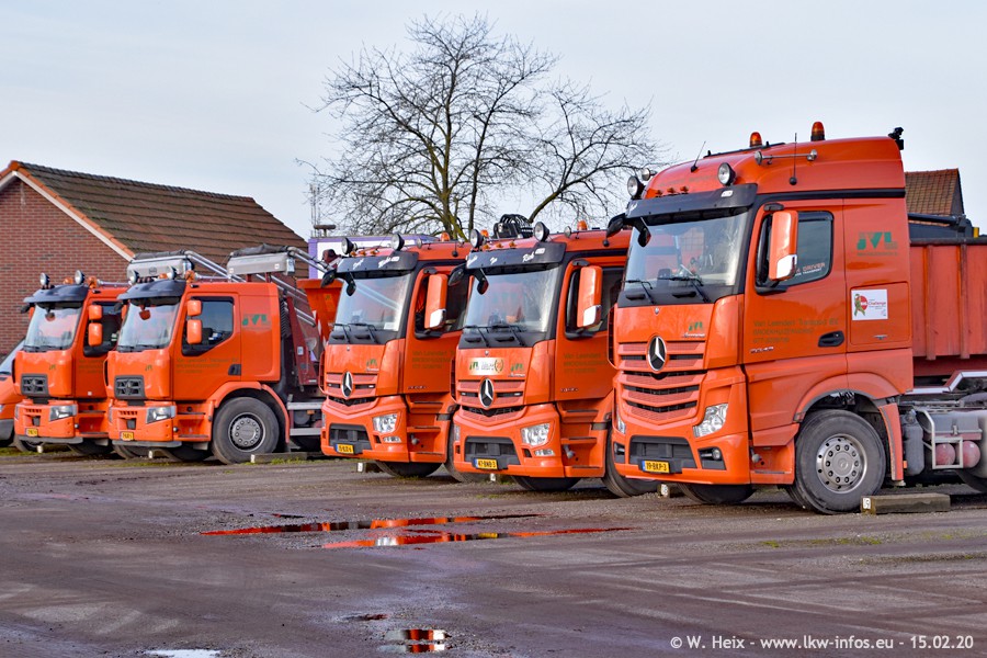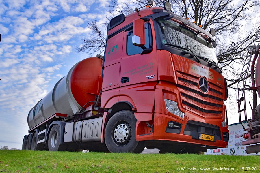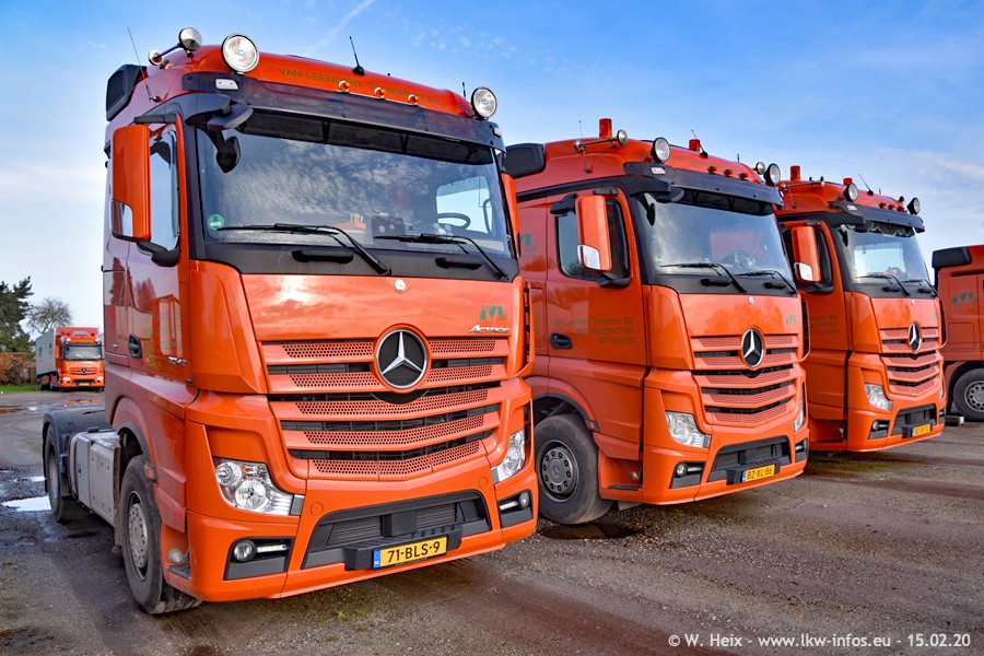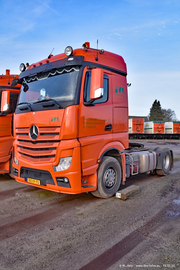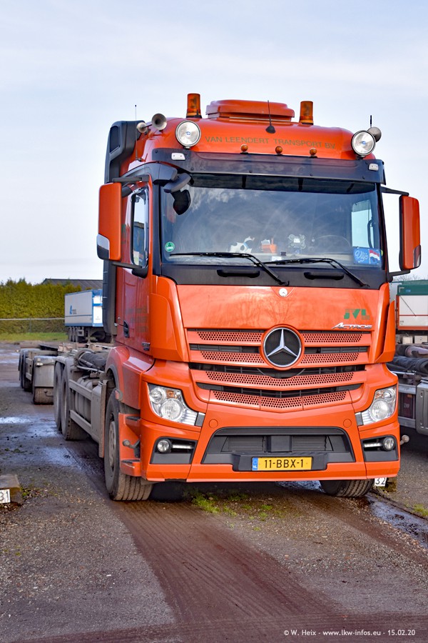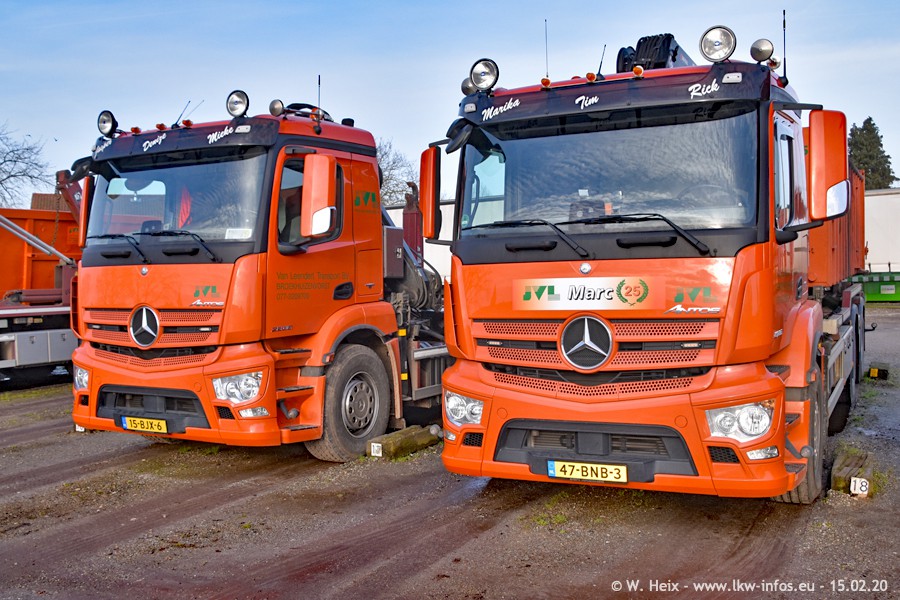 Die Nachricht kam 3 Tage vor meinem Besuch: van Leendert hat einen großen Teil des Fuhrparks an die Firma AB Texel verkauft - zum 01.03.2020. Das bedeutet, dass rund 30 Fahrzeuge verkauft sind. Der Bereich Umweltservice bleibt bestehen und wird mit 18 LKW fortgeführt. Es gibt also zum letzten Mal so gut wie alle LKW auf dem Hof zu sehen. Neu sind zwei Mercedes-Benz New Actros 4 2136, die auf den ersten Fotos zu sehen sind. Zwei weitere werden demnächst folgen. Welche LKW genau bleiben, weiß ich im Moment nicht. Auf jeden Fall der Mercedes-Benz New Actros 4 "Edition 1", den JVL sich zum 40-jährigen Firmenjubiläim im September 2019 gegönnt hat. Siehe Bildergalerie Teil 12!