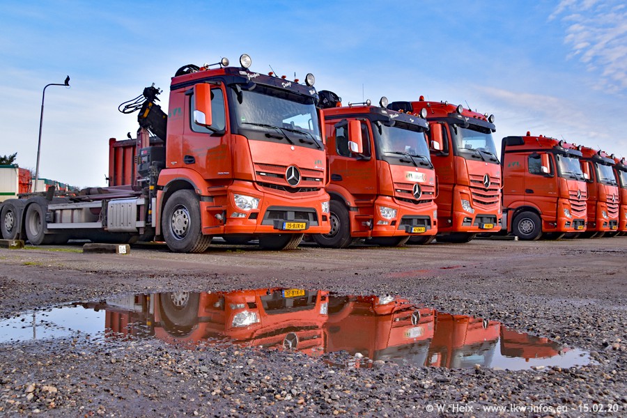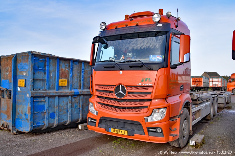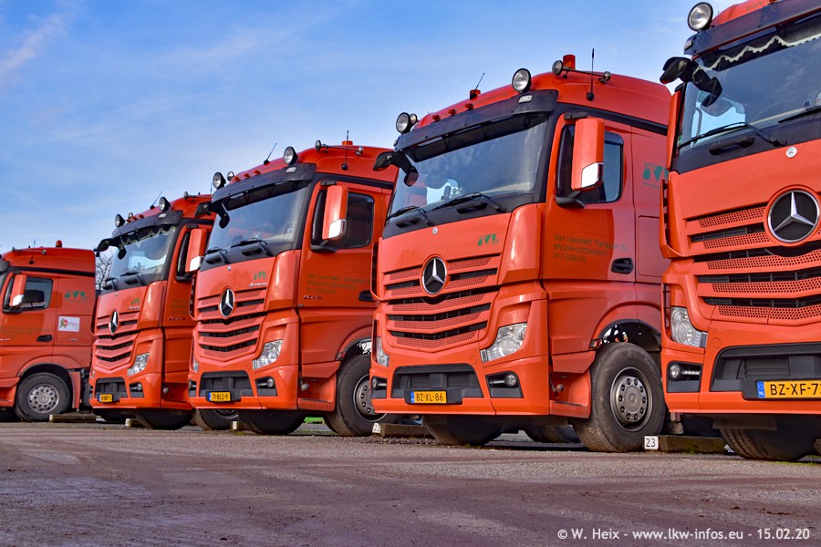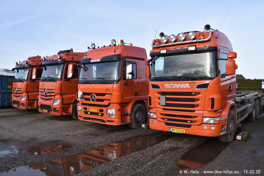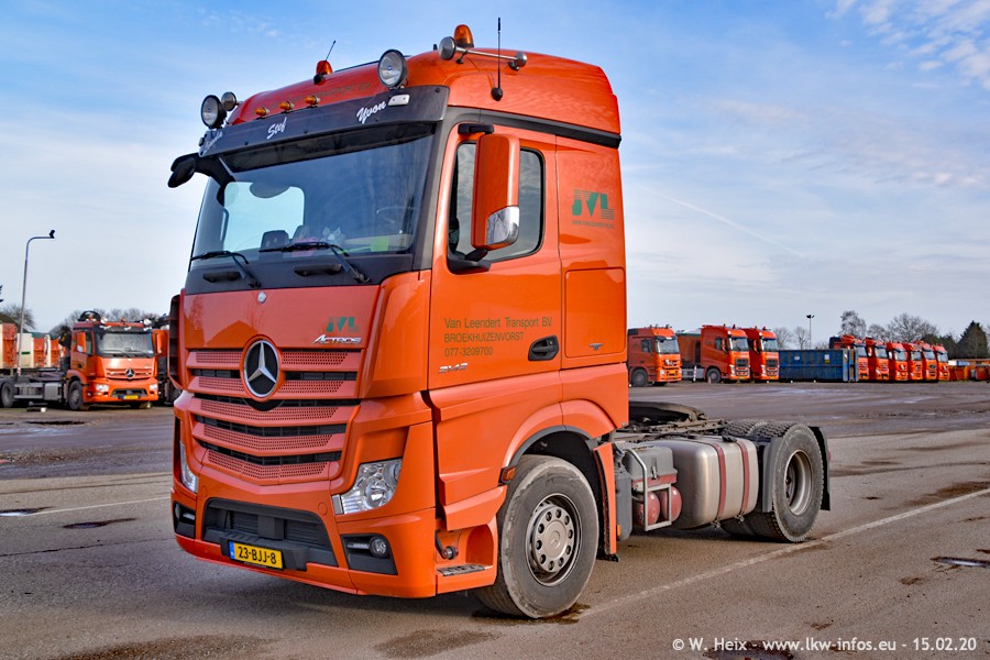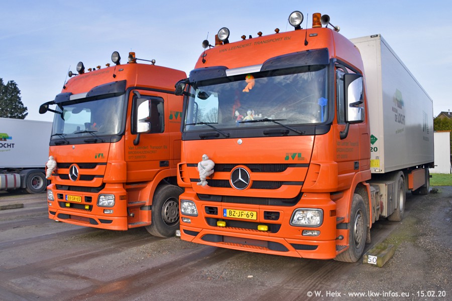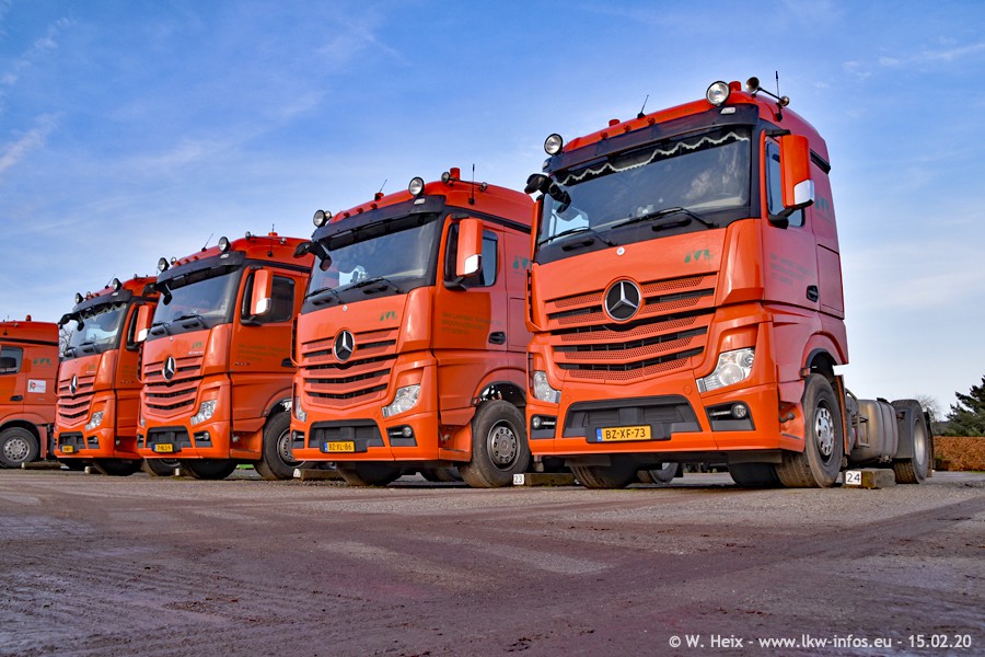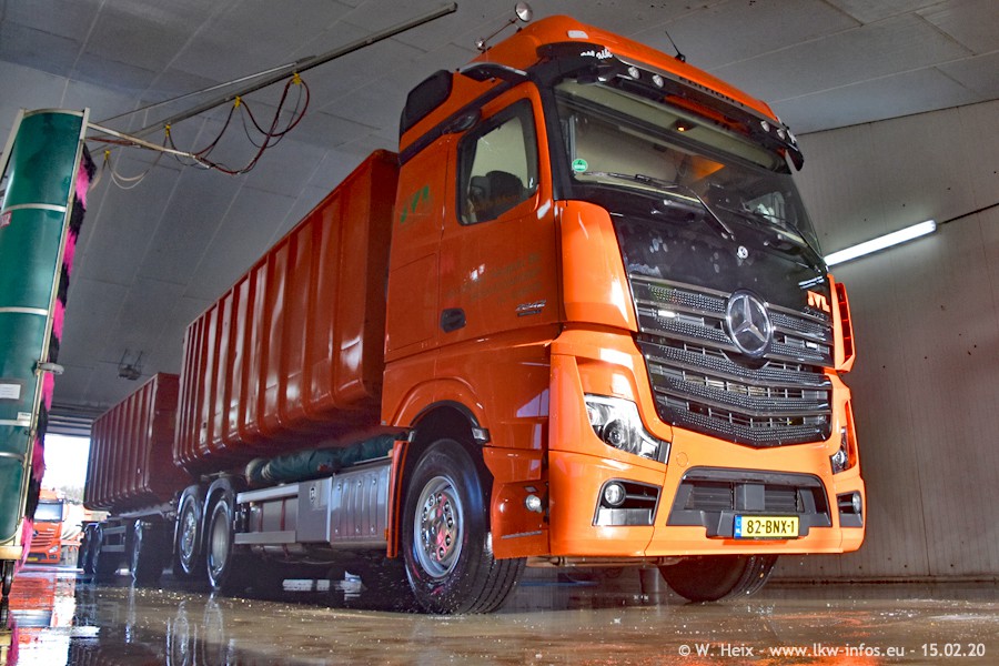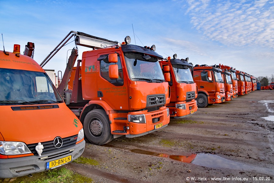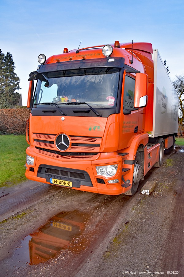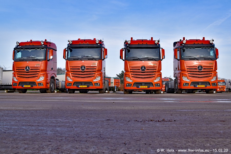 Die Nachricht kam 3 Tage vor meinem Besuch: van Leendert hat einen großen Teil des Fuhrparks an die Firma AB Texel verkauft - zum 01.03.2020. Das bedeutet, dass rund 30 Fahrzeuge verkauft sind. Der Bereich Umweltservice bleibt bestehen und wird mit 18 LKW fortgeführt. Es gibt also zum letzten Mal so gut wie alle LKW auf dem Hof zu sehen. Neu sind zwei Mercedes-Benz New Actros 4 2136, die auf den ersten Fotos zu sehen sind. Zwei weitere werden demnächst folgen. Welche LKW genau bleiben, weiß ich im Moment nicht. Auf jeden Fall der Mercedes-Benz New Actros 4 "Edition 1", den JVL sich zum 40-jährigen Firmenjubiläim im September 2019 gegönnt hat. Siehe Bildergalerie Teil 12!