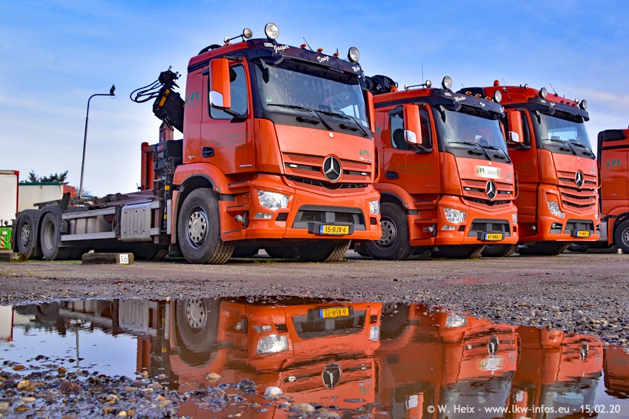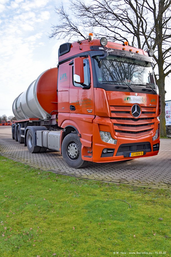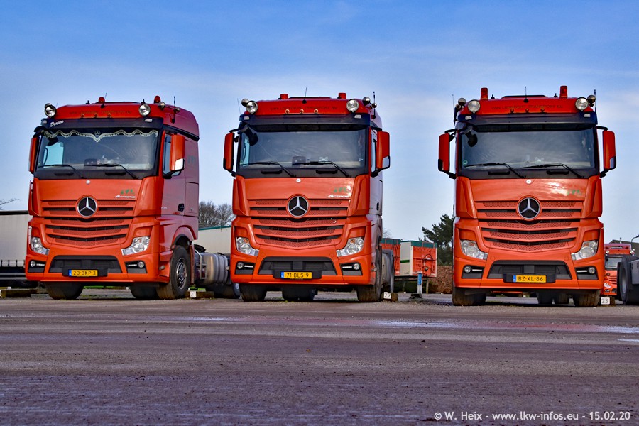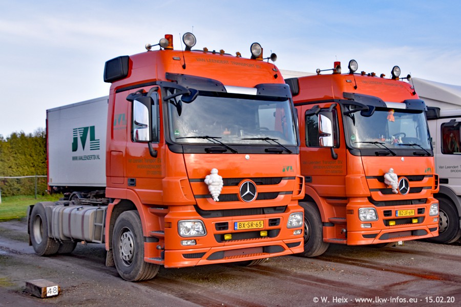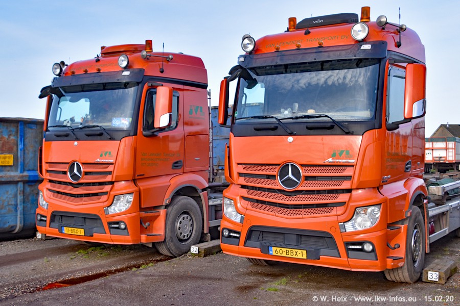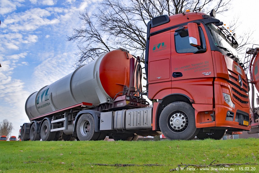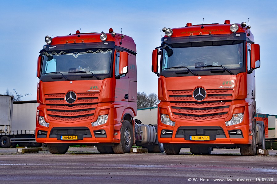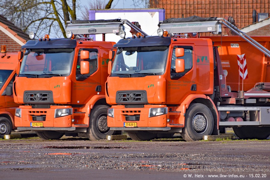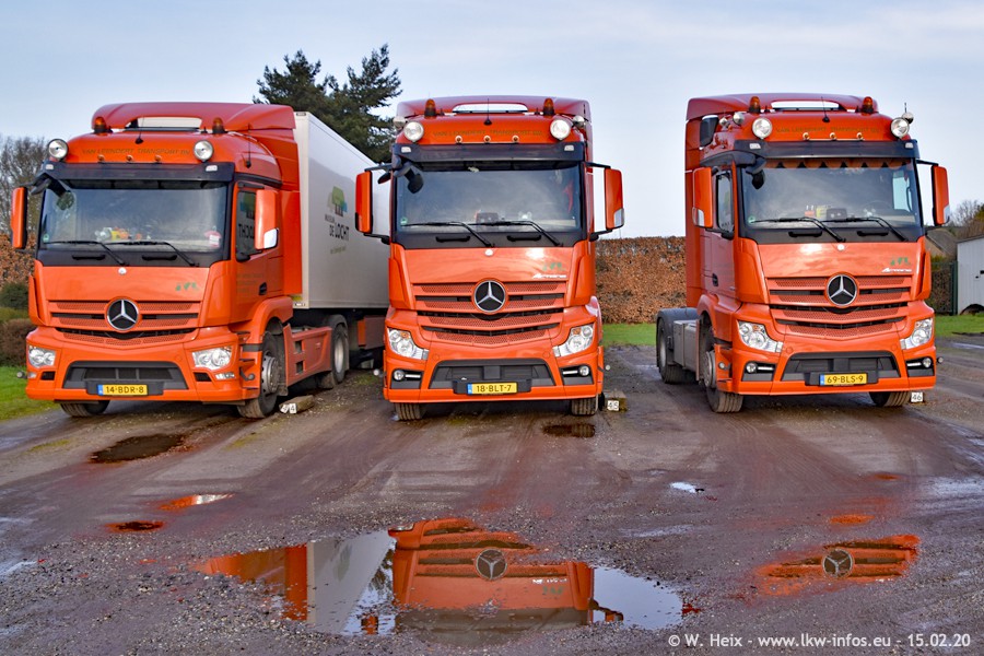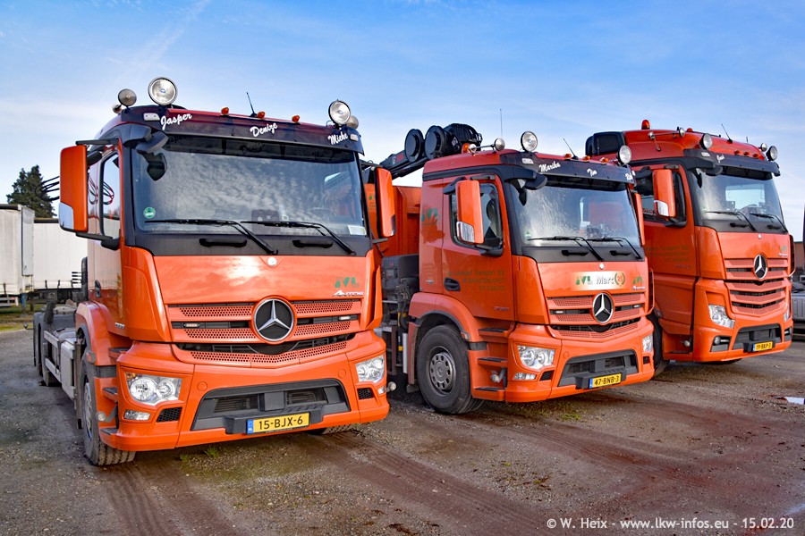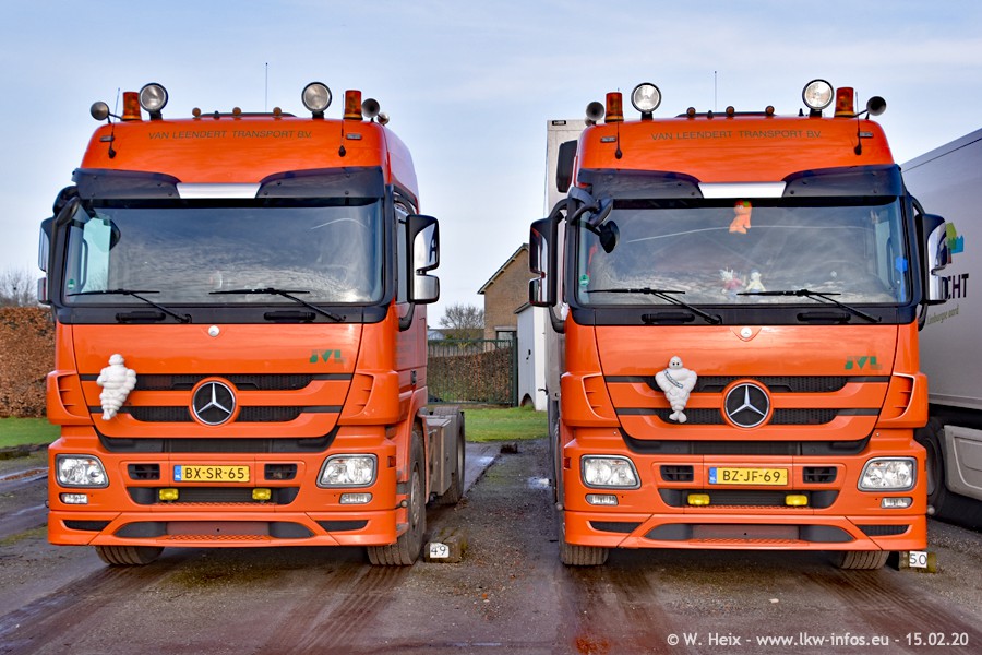 Die Nachricht kam 3 Tage vor meinem Besuch: van Leendert hat einen großen Teil des Fuhrparks an die Firma AB Texel verkauft - zum 01.03.2020. Das bedeutet, dass rund 30 Fahrzeuge verkauft sind. Der Bereich Umweltservice bleibt bestehen und wird mit 18 LKW fortgeführt. Es gibt also zum letzten Mal so gut wie alle LKW auf dem Hof zu sehen. Neu sind zwei Mercedes-Benz New Actros 4 2136, die auf den ersten Fotos zu sehen sind. Zwei weitere werden demnächst folgen. Welche LKW genau bleiben, weiß ich im Moment nicht. Auf jeden Fall der Mercedes-Benz New Actros 4 "Edition 1", den JVL sich zum 40-jährigen Firmenjubiläim im September 2019 gegönnt hat. Siehe Bildergalerie Teil 12!