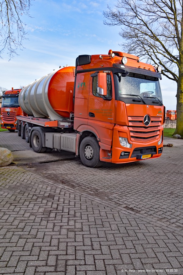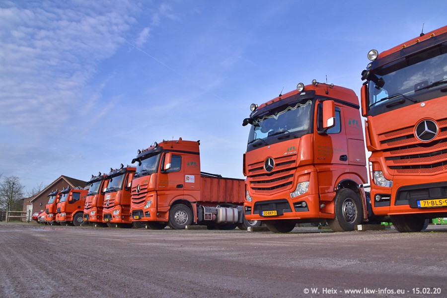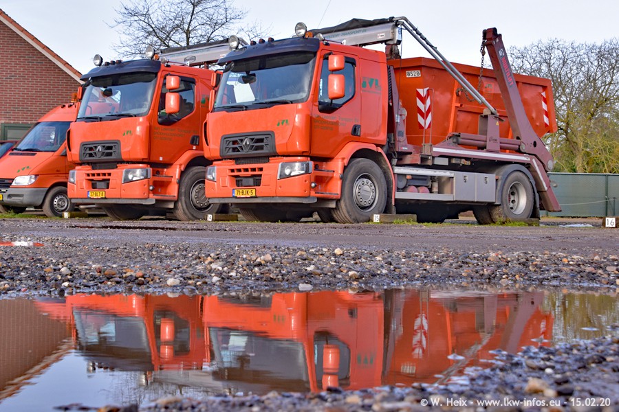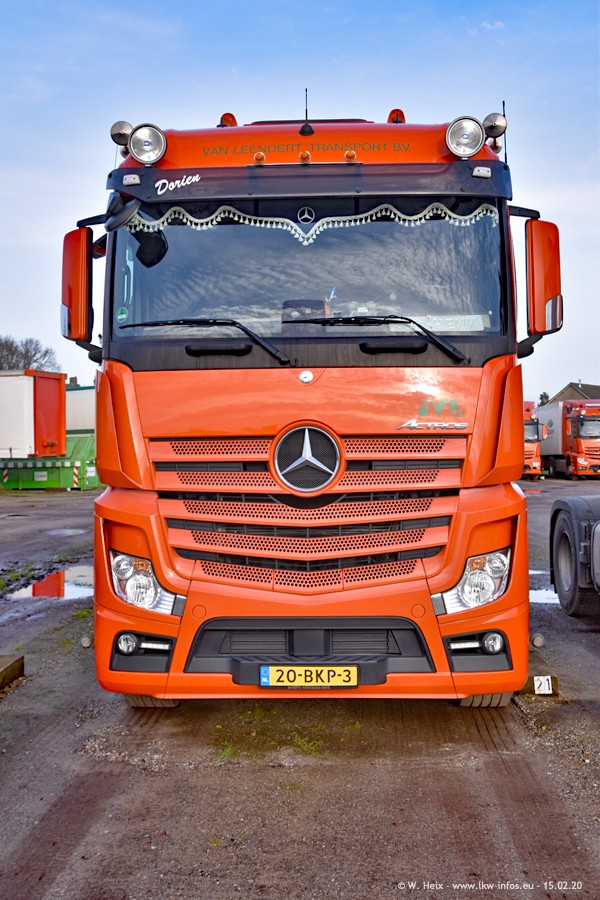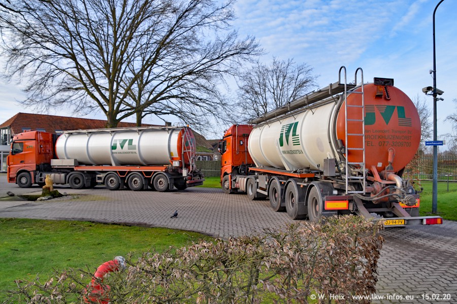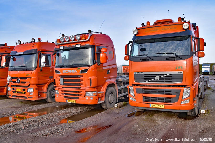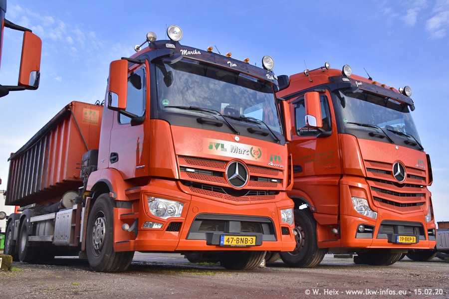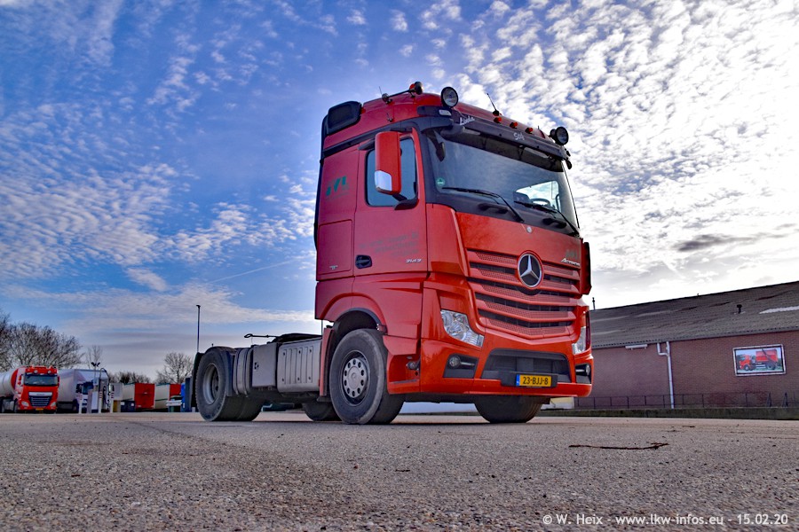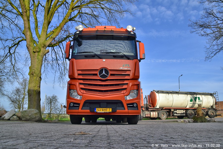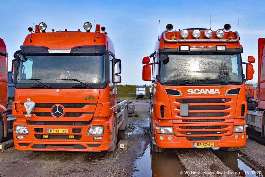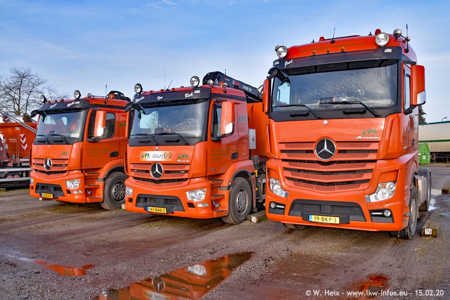 Die Nachricht kam 3 Tage vor meinem Besuch: van Leendert hat einen großen Teil des Fuhrparks an die Firma AB Texel verkauft - zum 01.03.2020. Das bedeutet, dass rund 30 Fahrzeuge verkauft sind. Der Bereich Umweltservice bleibt bestehen und wird mit 18 LKW fortgeführt. Es gibt also zum letzten Mal so gut wie alle LKW auf dem Hof zu sehen. Neu sind zwei Mercedes-Benz New Actros 4 2136, die auf den ersten Fotos zu sehen sind. Zwei weitere werden demnächst folgen. Welche LKW genau bleiben, weiß ich im Moment nicht. Auf jeden Fall der Mercedes-Benz New Actros 4 "Edition 1", den JVL sich zum 40-jährigen Firmenjubiläim im September 2019 gegönnt hat. Siehe Bildergalerie Teil 12!