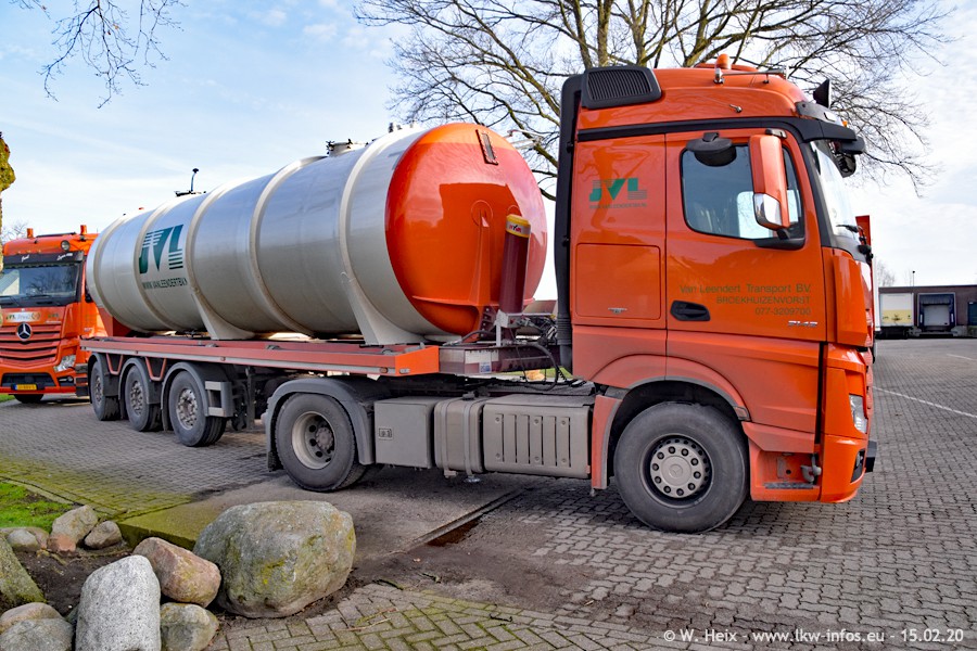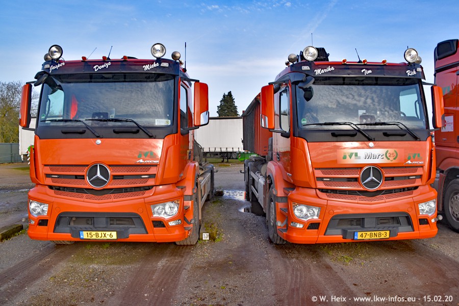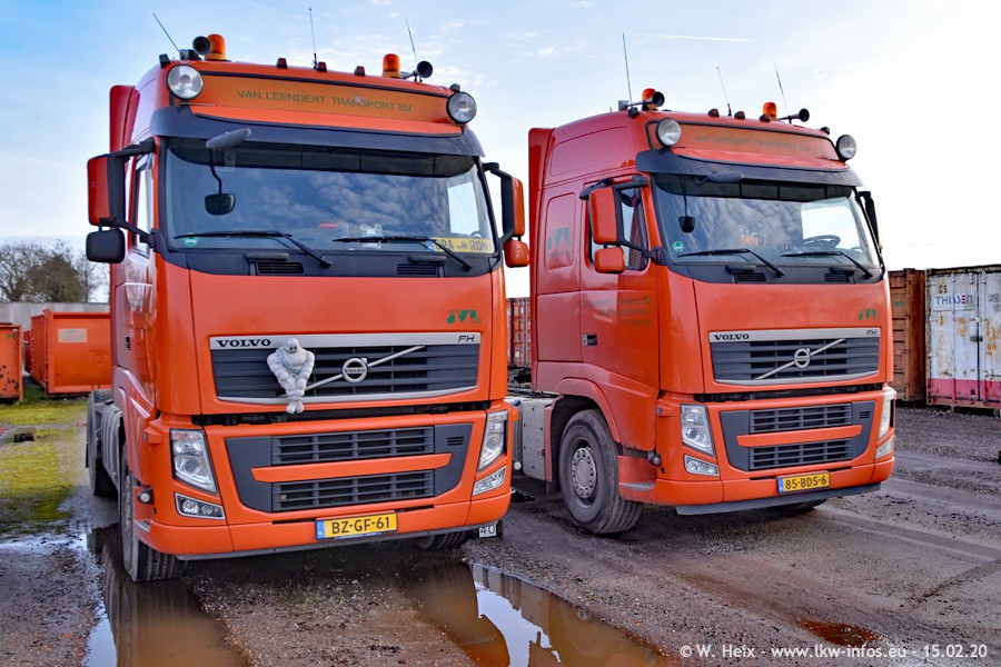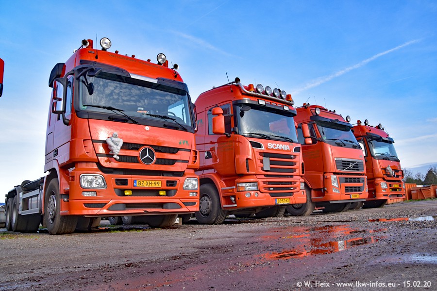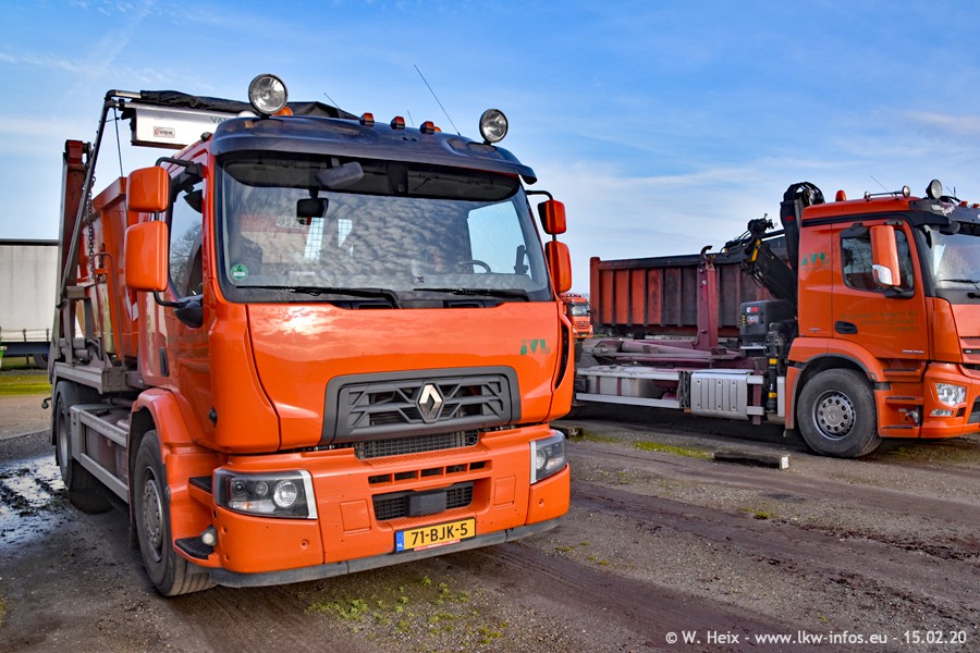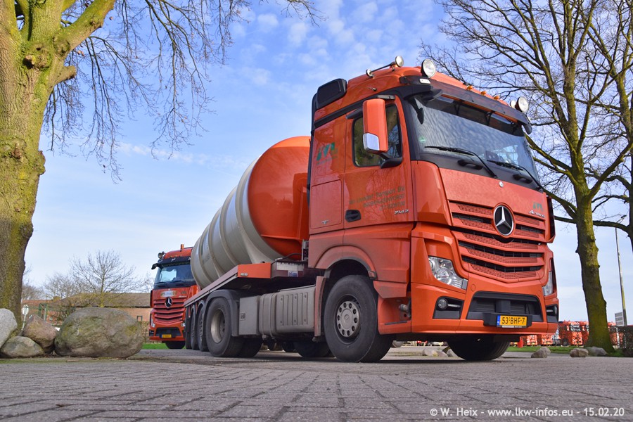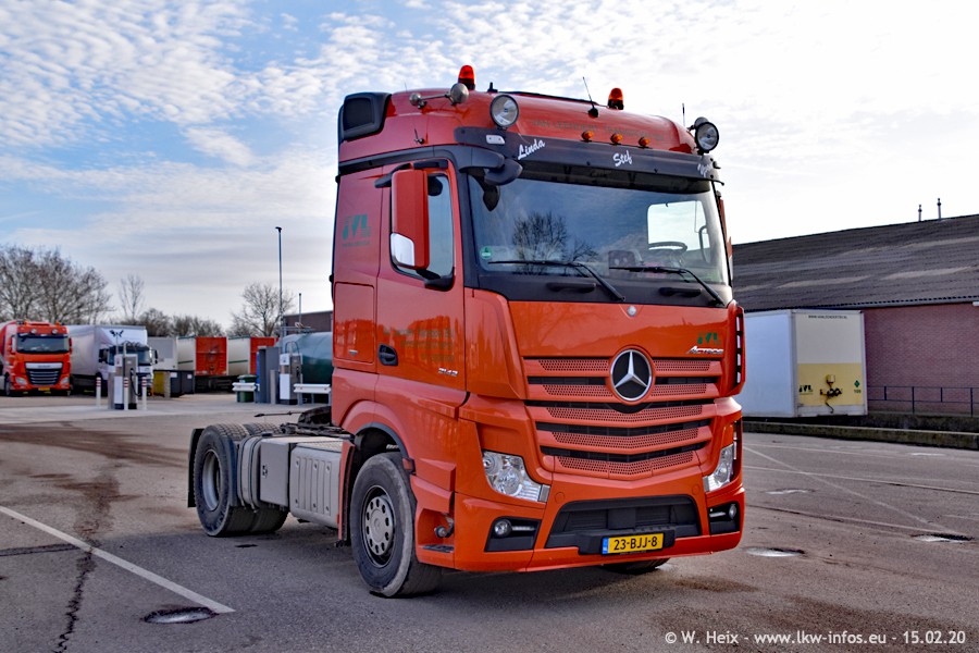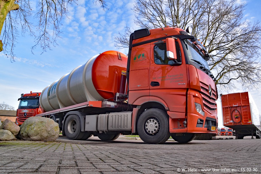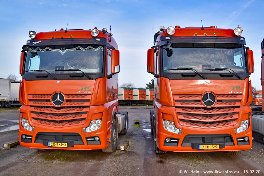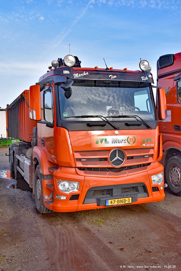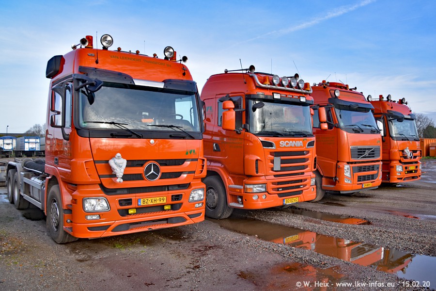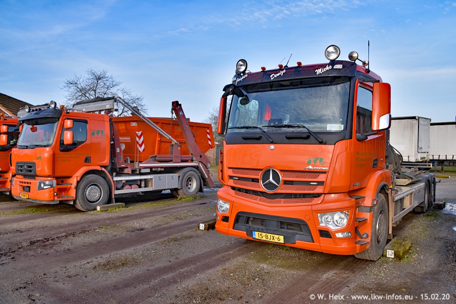 Die Nachricht kam 3 Tage vor meinem Besuch: van Leendert hat einen großen Teil des Fuhrparks an die Firma AB Texel verkauft - zum 01.03.2020. Das bedeutet, dass rund 30 Fahrzeuge verkauft sind. Der Bereich Umweltservice bleibt bestehen und wird mit 18 LKW fortgeführt. Es gibt also zum letzten Mal so gut wie alle LKW auf dem Hof zu sehen. Neu sind zwei Mercedes-Benz New Actros 4 2136, die auf den ersten Fotos zu sehen sind. Zwei weitere werden demnächst folgen. Welche LKW genau bleiben, weiß ich im Moment nicht. Auf jeden Fall der Mercedes-Benz New Actros 4 "Edition 1", den JVL sich zum 40-jährigen Firmenjubiläim im September 2019 gegönnt hat. Siehe Bildergalerie Teil 12!