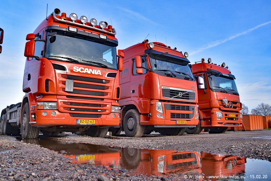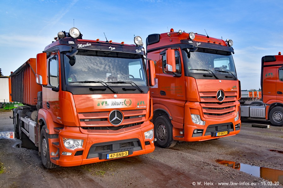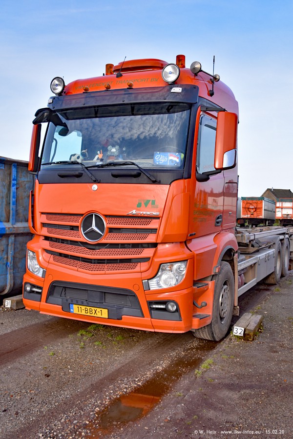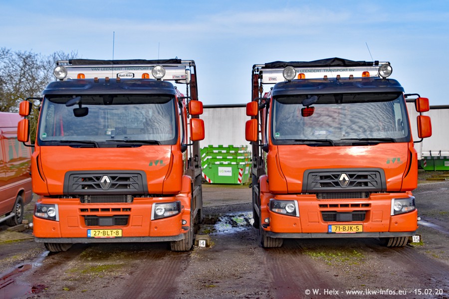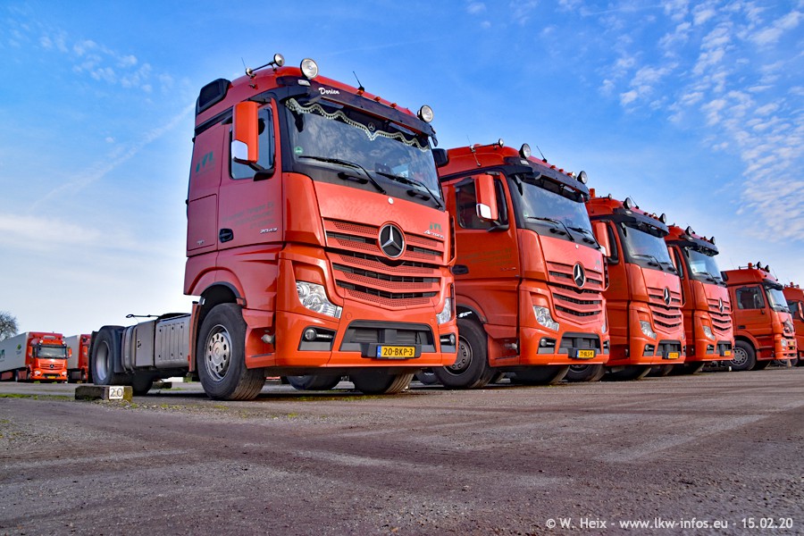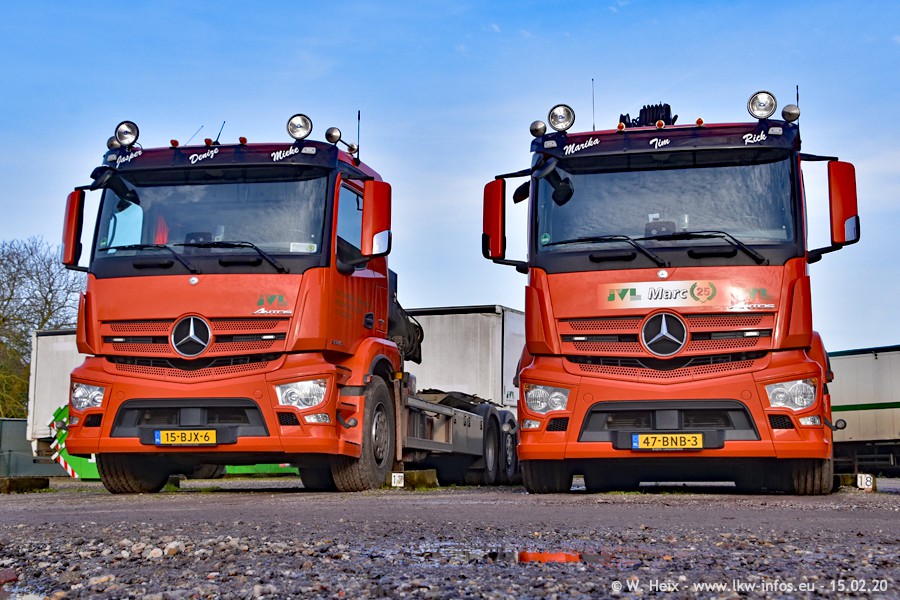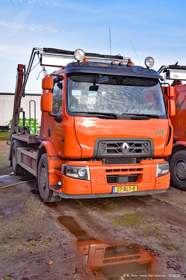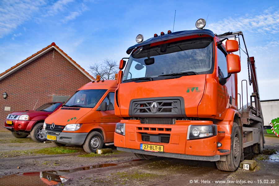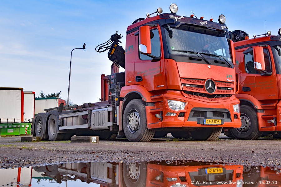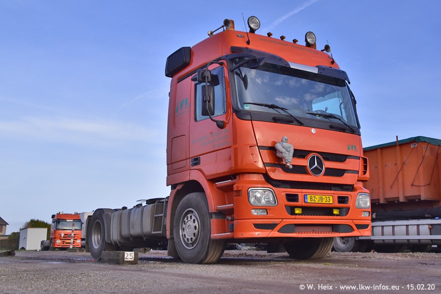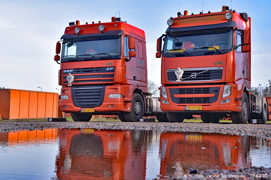 Die Nachricht kam 3 Tage vor meinem Besuch: van Leendert hat einen großen Teil des Fuhrparks an die Firma AB Texel verkauft - zum 01.03.2020. Das bedeutet, dass rund 30 Fahrzeuge verkauft sind. Der Bereich Umweltservice bleibt bestehen und wird mit 18 LKW fortgeführt. Es gibt also zum letzten Mal so gut wie alle LKW auf dem Hof zu sehen. Neu sind zwei Mercedes-Benz New Actros 4 2136, die auf den ersten Fotos zu sehen sind. Zwei weitere werden demnächst folgen. Welche LKW genau bleiben, weiß ich im Moment nicht. Auf jeden Fall der Mercedes-Benz New Actros 4 "Edition 1", den JVL sich zum 40-jährigen Firmenjubiläim im September 2019 gegönnt hat. Siehe Bildergalerie Teil 12!