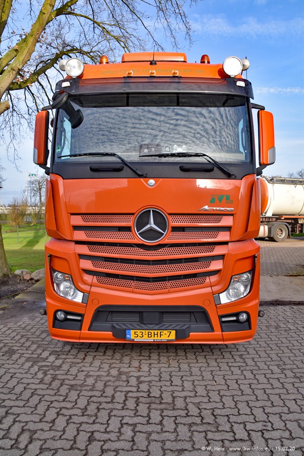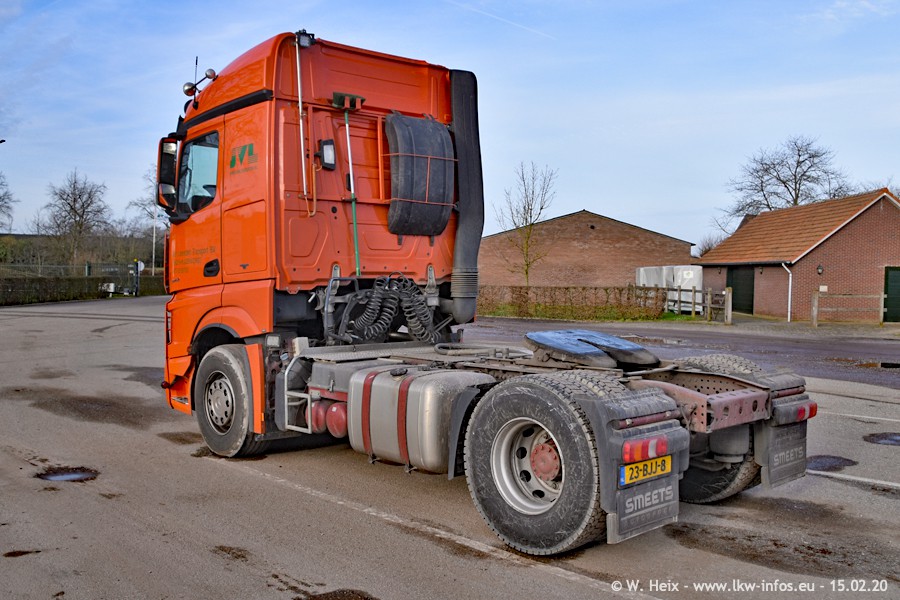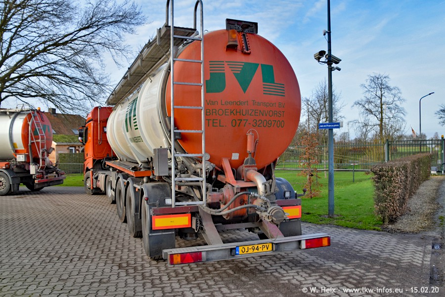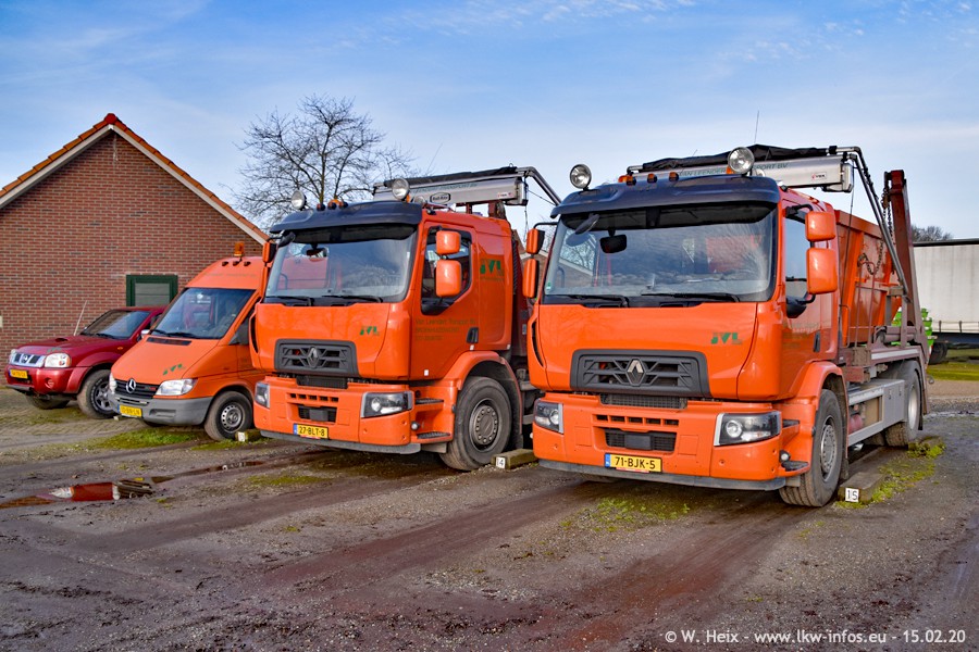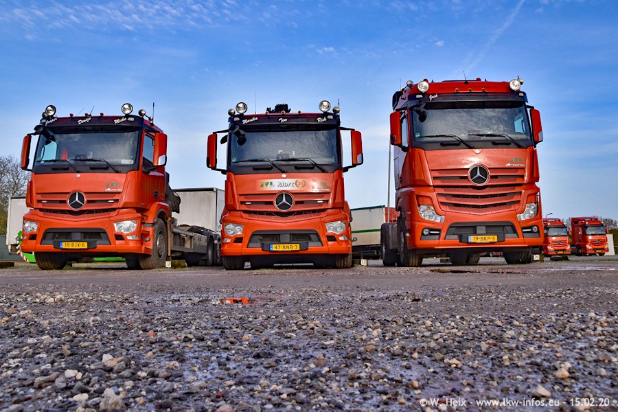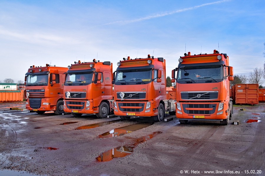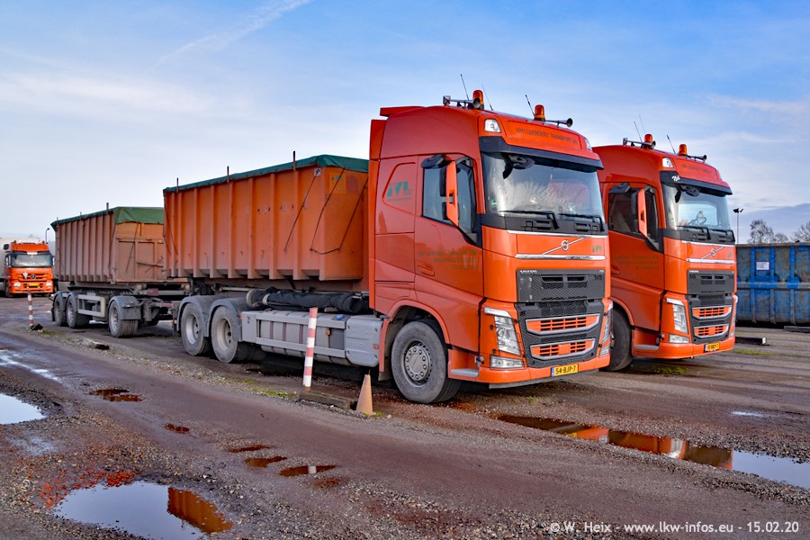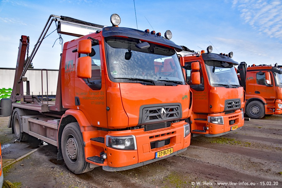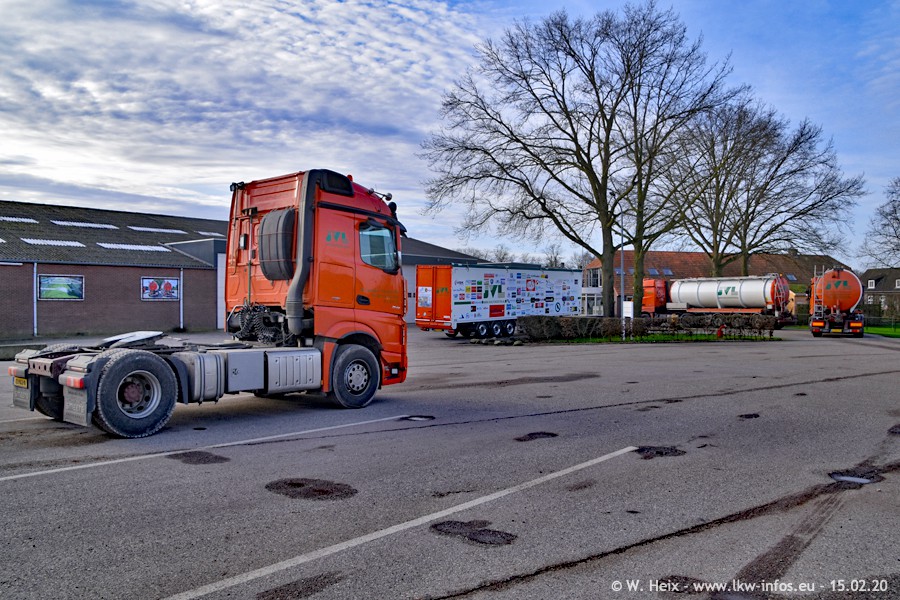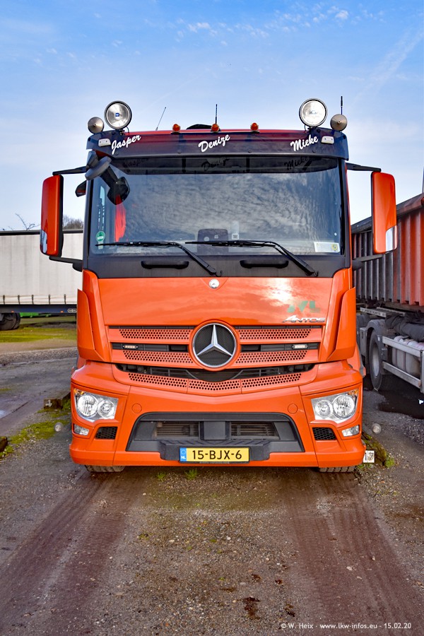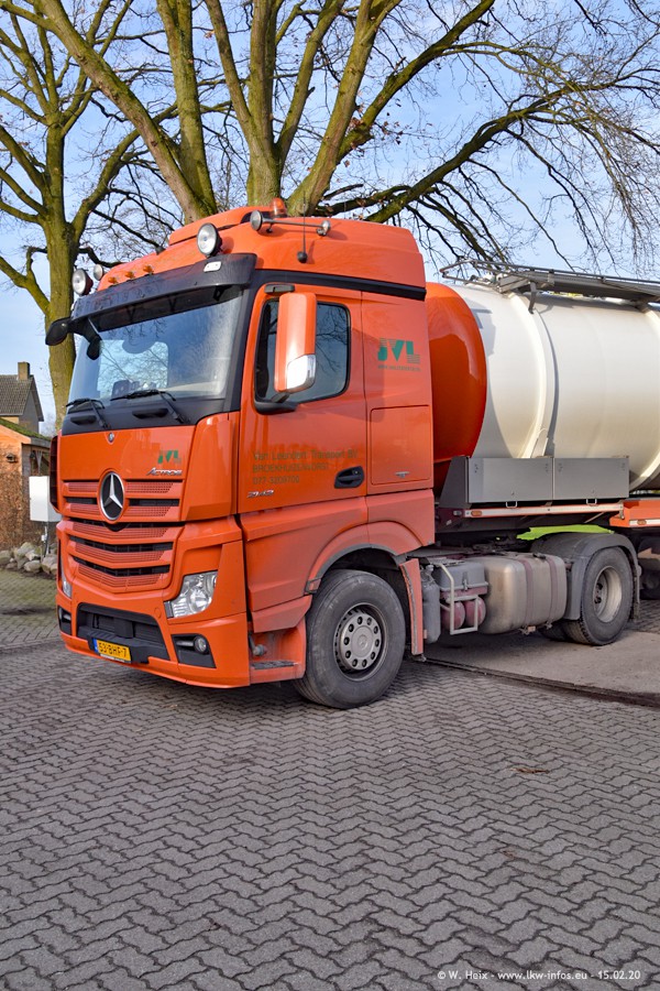 Die Nachricht kam 3 Tage vor meinem Besuch: van Leendert hat einen großen Teil des Fuhrparks an die Firma AB Texel verkauft - zum 01.03.2020. Das bedeutet, dass rund 30 Fahrzeuge verkauft sind. Der Bereich Umweltservice bleibt bestehen und wird mit 18 LKW fortgeführt. Es gibt also zum letzten Mal so gut wie alle LKW auf dem Hof zu sehen. Neu sind zwei Mercedes-Benz New Actros 4 2136, die auf den ersten Fotos zu sehen sind. Zwei weitere werden demnächst folgen. Welche LKW genau bleiben, weiß ich im Moment nicht. Auf jeden Fall der Mercedes-Benz New Actros 4 "Edition 1", den JVL sich zum 40-jährigen Firmenjubiläim im September 2019 gegönnt hat. Siehe Bildergalerie Teil 12!