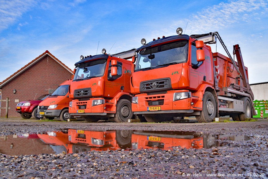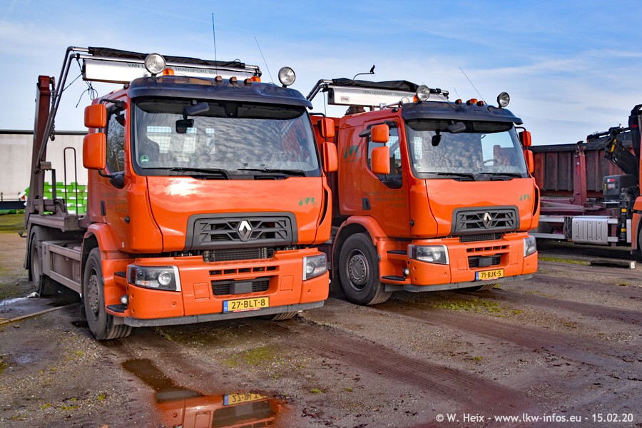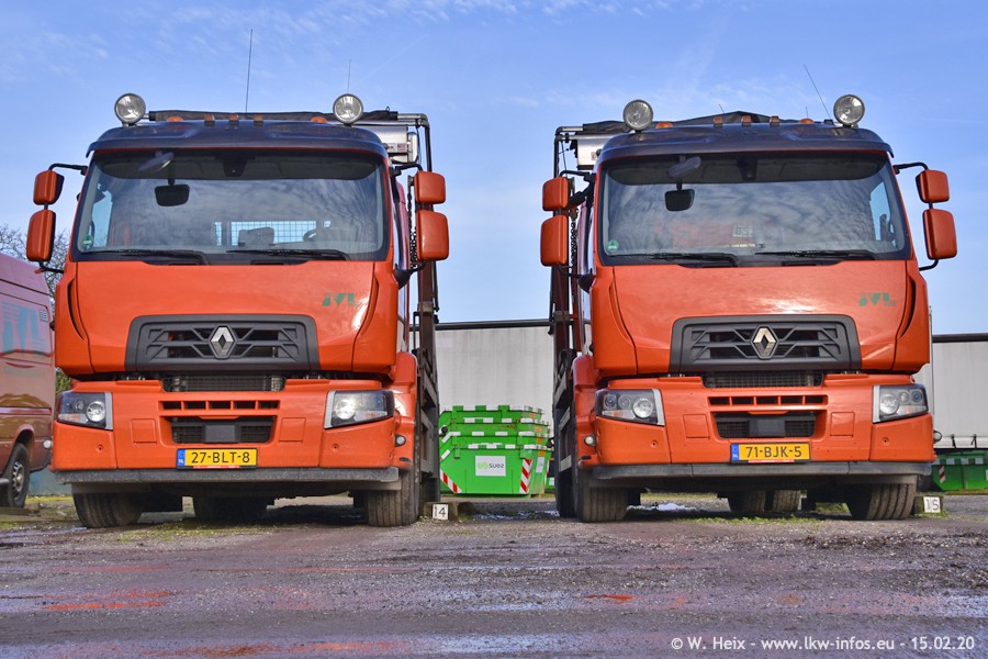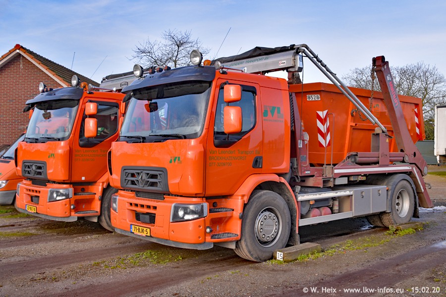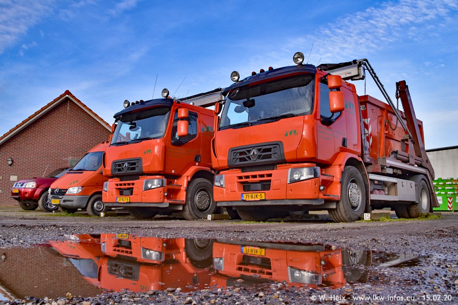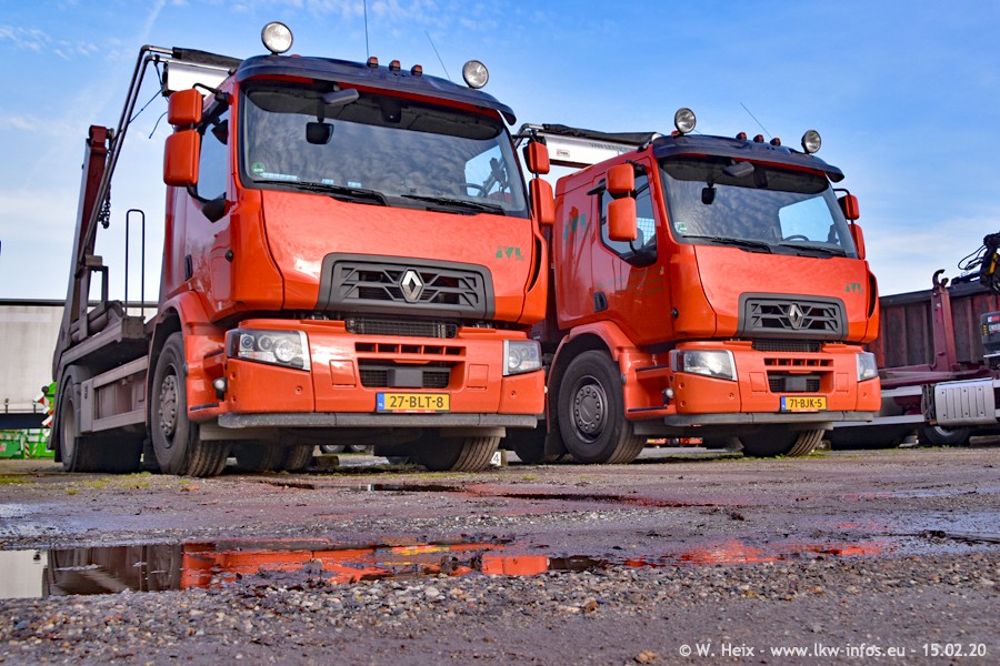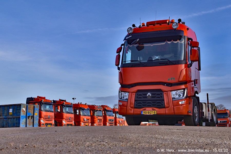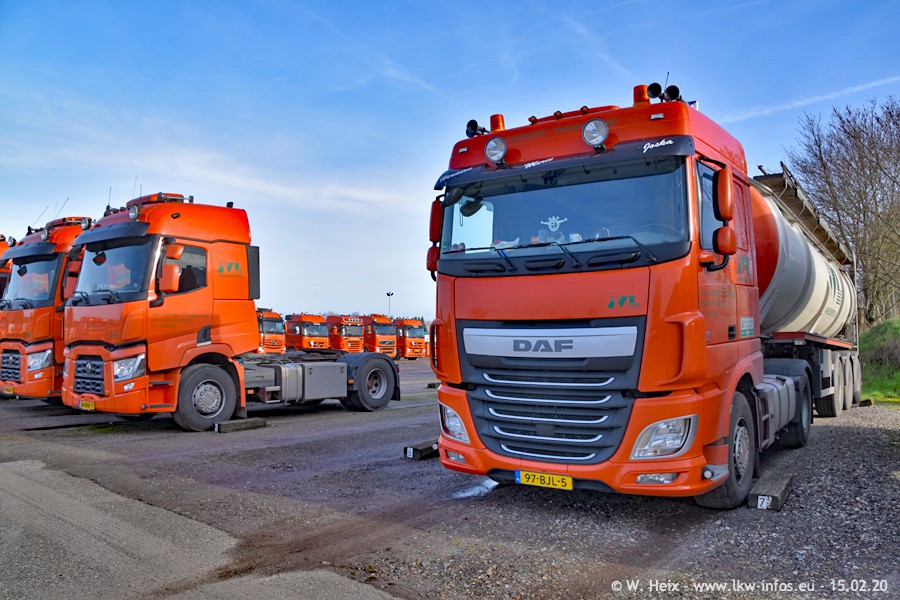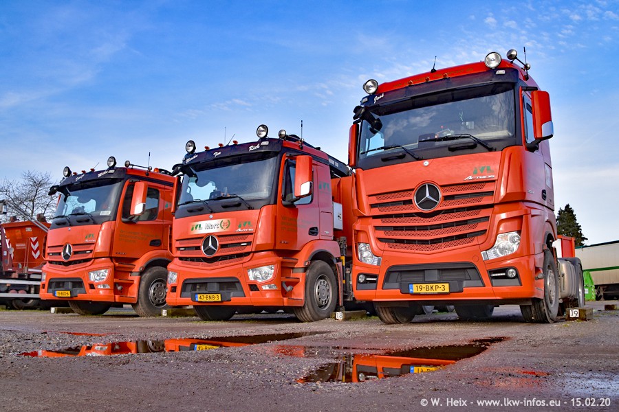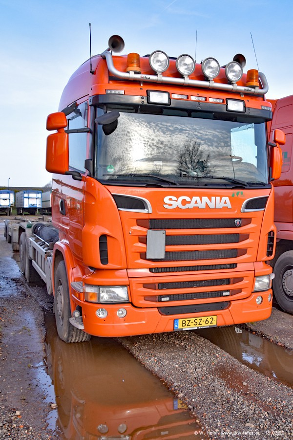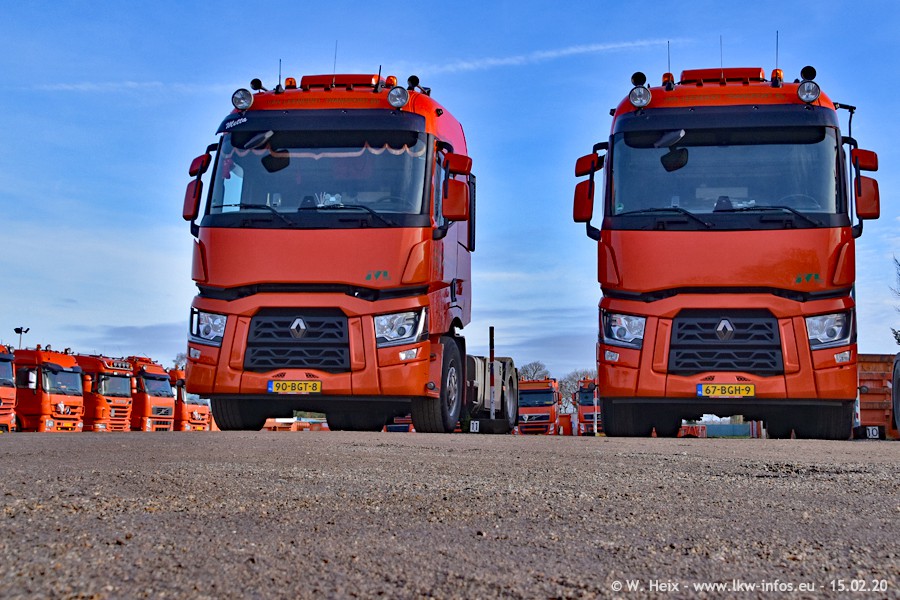 Die Nachricht kam 3 Tage vor meinem Besuch: van Leendert hat einen großen Teil des Fuhrparks an die Firma AB Texel verkauft - zum 01.03.2020. Das bedeutet, dass rund 30 Fahrzeuge verkauft sind. Der Bereich Umweltservice bleibt bestehen und wird mit 18 LKW fortgeführt. Es gibt also zum letzten Mal so gut wie alle LKW auf dem Hof zu sehen. Neu sind zwei Mercedes-Benz New Actros 4 2136, die auf den ersten Fotos zu sehen sind. Zwei weitere werden demnächst folgen. Welche LKW genau bleiben, weiß ich im Moment nicht. Auf jeden Fall der Mercedes-Benz New Actros 4 "Edition 1", den JVL sich zum 40-jährigen Firmenjubiläim im September 2019 gegönnt hat. Siehe Bildergalerie Teil 12!