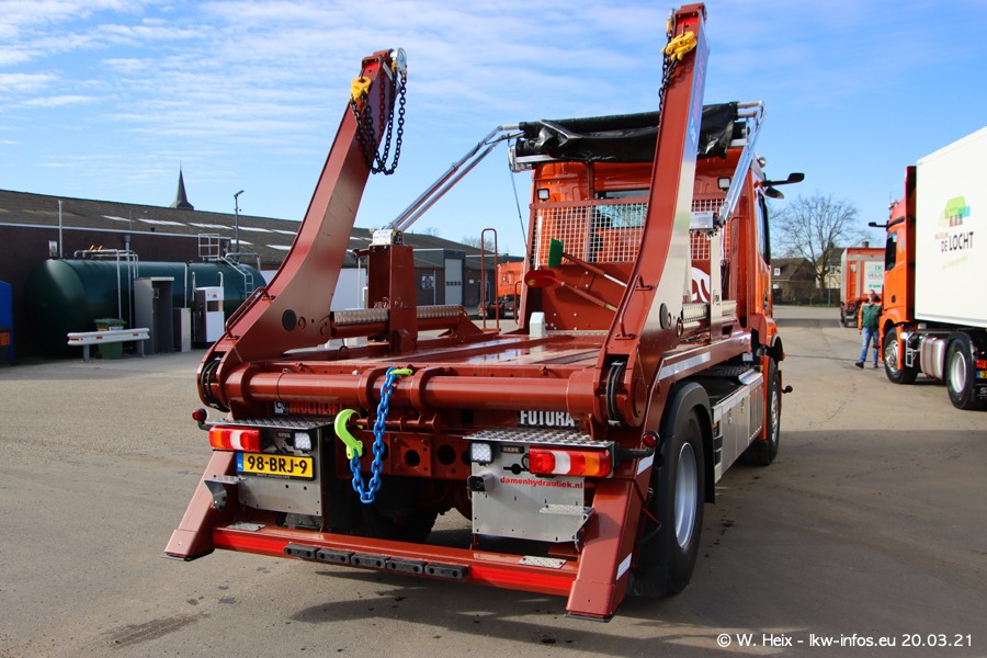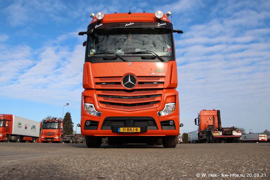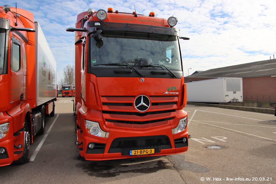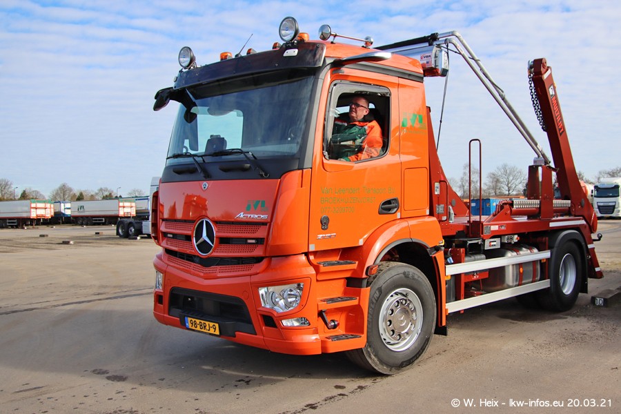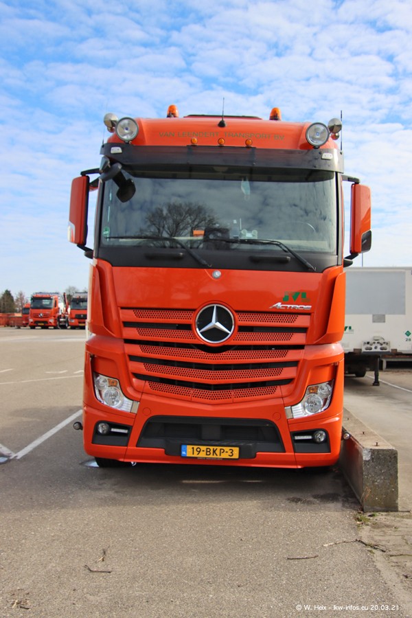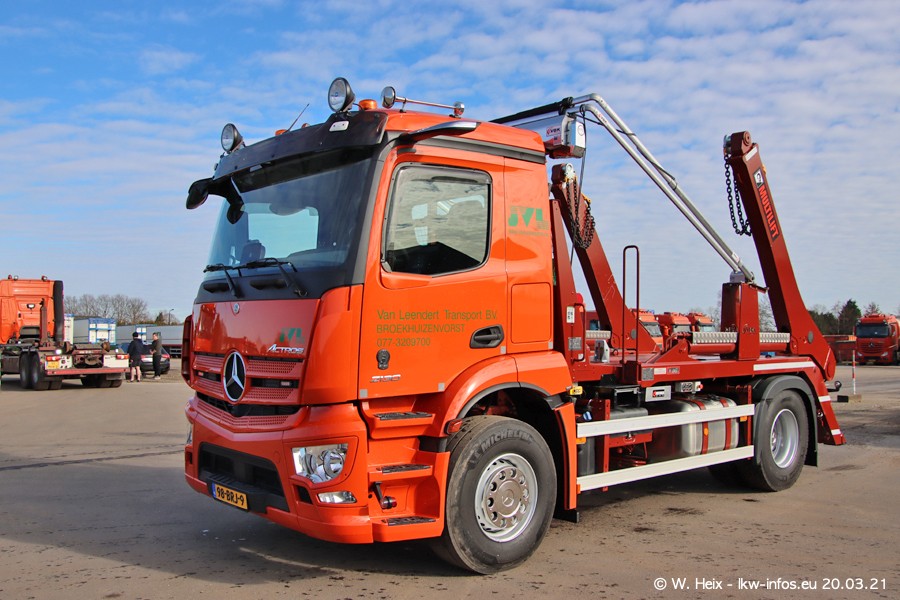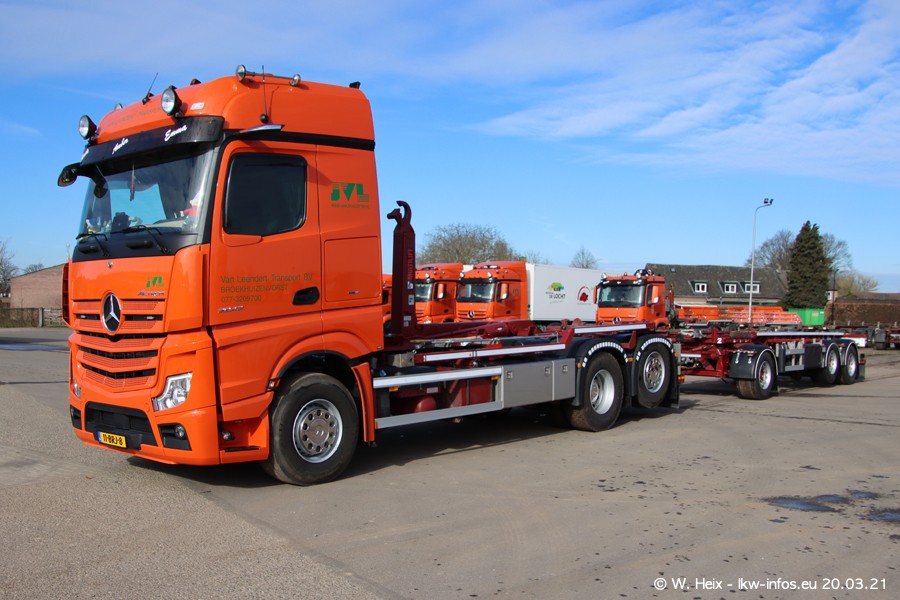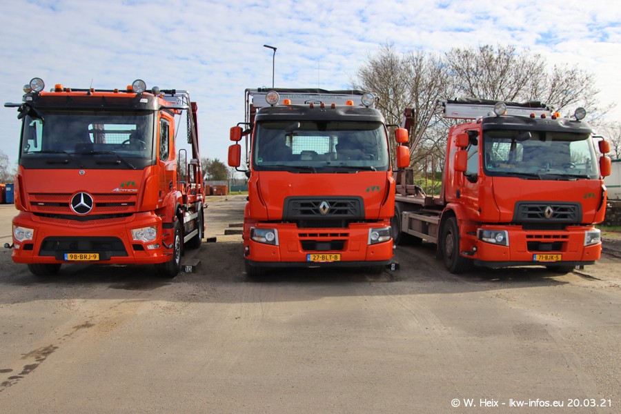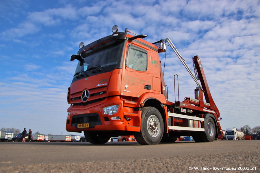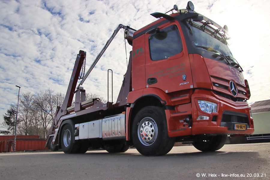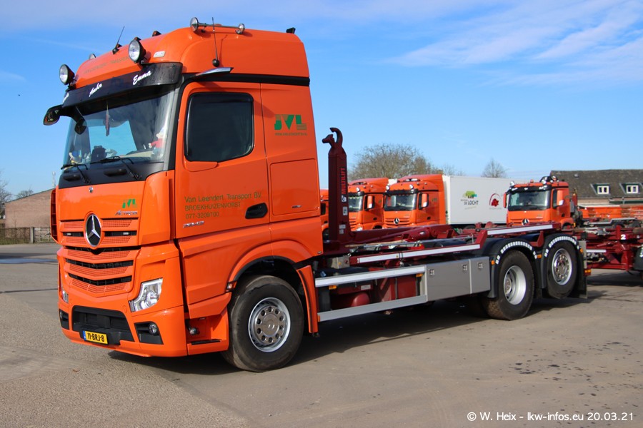 Letzte Woche hat van Leendert einen neuen Mercedes-Benz New Actros 4 (MP 5) bekommen inkl neuem Anhänger für den Transport von (Abroll-) Containern. Vor zwei Tagen, also am Donnerstag, ist ein weiterer kleiner Mercedes-Benz New Actros 4 (MP5) dazu gekommen und verstärkt die drei LKW von Renault beim Transport von kleinen Containern für Sperrmüll und andere Materialien. Ein alter LKW wurde verkauft. Der Rest ist bekannt, wobei nicht alle LKW zuhause waren, da bei van Leendert auch samstags gearbeitet wird.