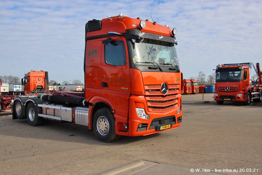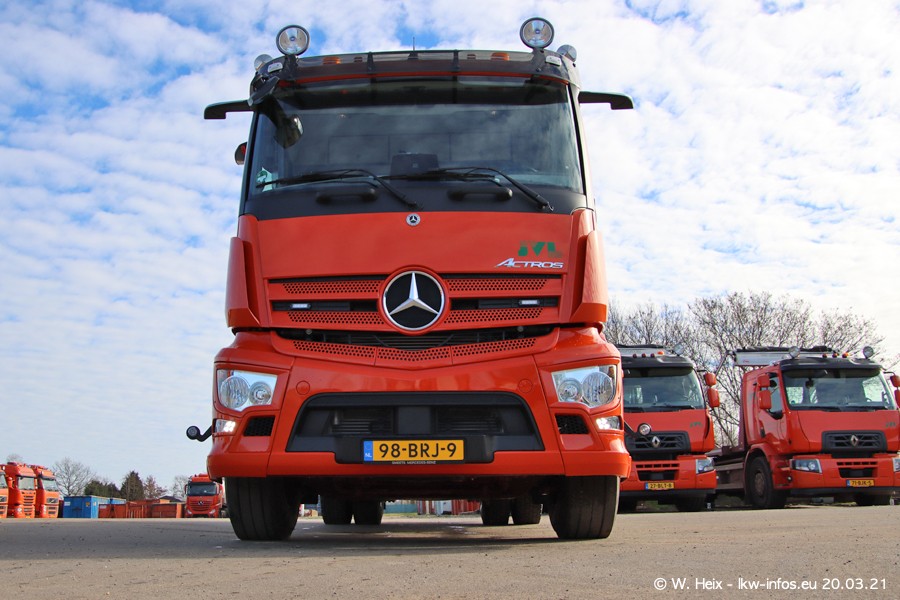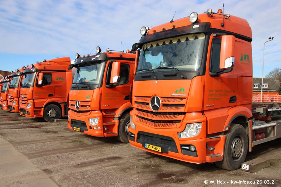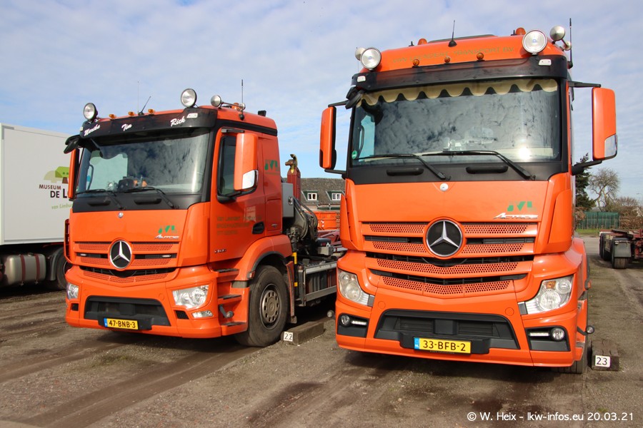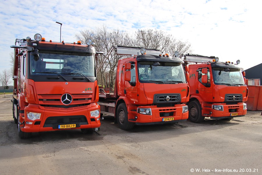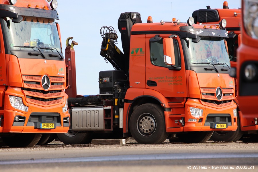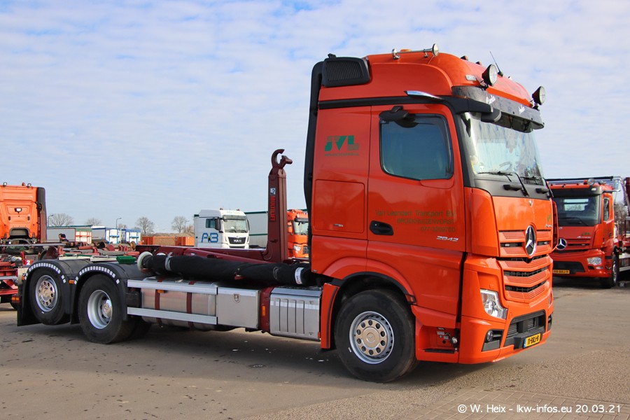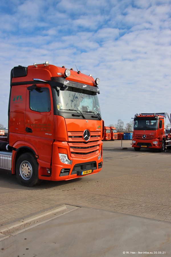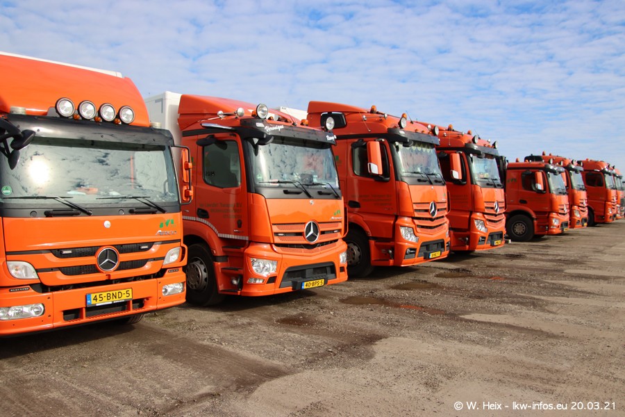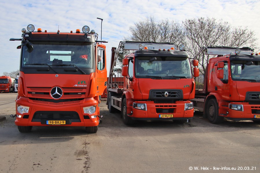 Letzte Woche hat van Leendert einen neuen Mercedes-Benz New Actros 4 (MP 5) bekommen inkl neuem Anhänger für den Transport von (Abroll-) Containern. Vor zwei Tagen, also am Donnerstag, ist ein weiterer kleiner Mercedes-Benz New Actros 4 (MP5) dazu gekommen und verstärkt die drei LKW von Renault beim Transport von kleinen Containern für Sperrmüll und andere Materialien. Ein alter LKW wurde verkauft. Der Rest ist bekannt, wobei nicht alle LKW zuhause waren, da bei van Leendert auch samstags gearbeitet wird.