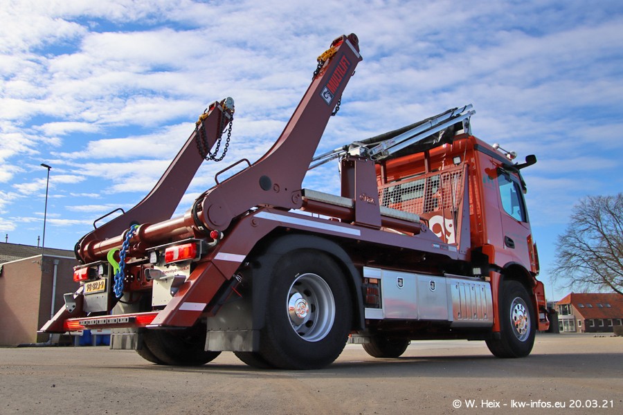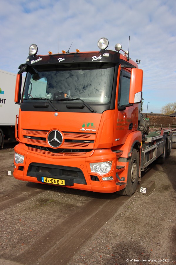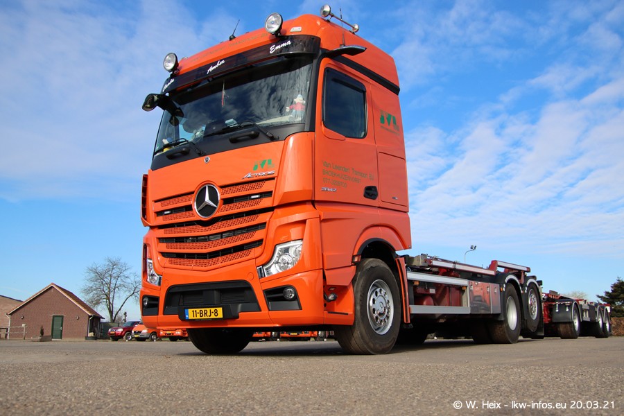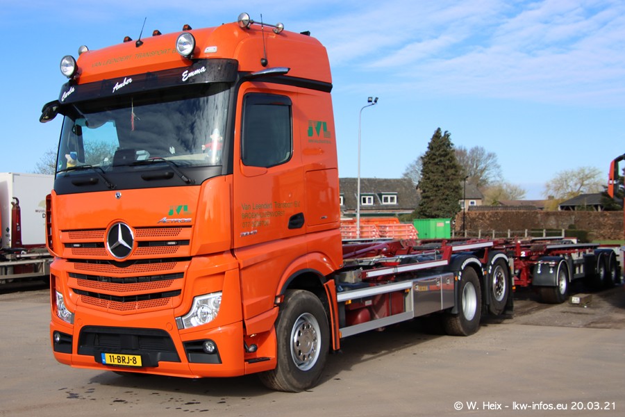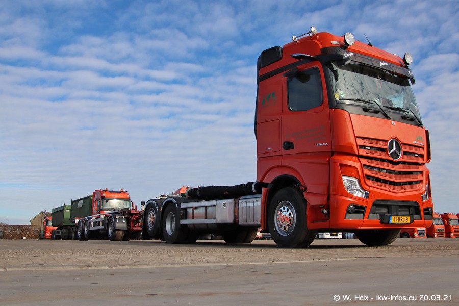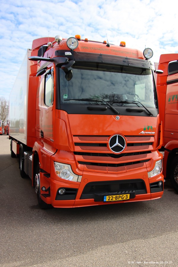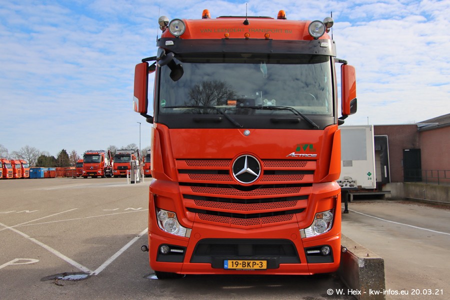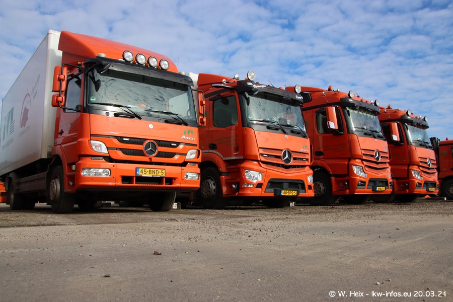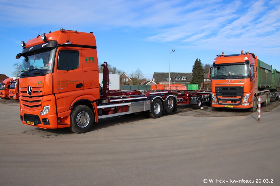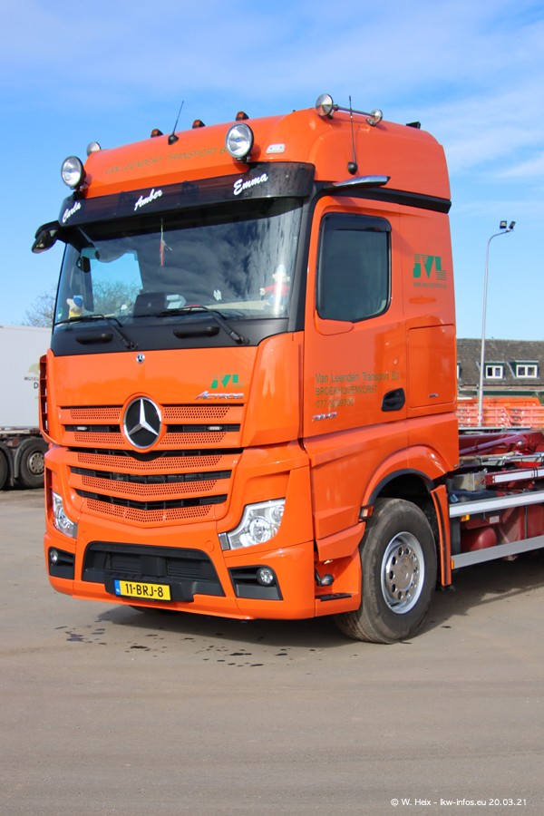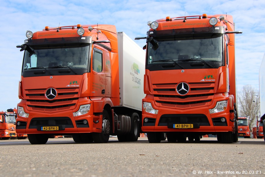 Letzte Woche hat van Leendert einen neuen Mercedes-Benz New Actros 4 (MP 5) bekommen inkl neuem Anhänger für den Transport von (Abroll-) Containern. Vor zwei Tagen, also am Donnerstag, ist ein weiterer kleiner Mercedes-Benz New Actros 4 (MP5) dazu gekommen und verstärkt die drei LKW von Renault beim Transport von kleinen Containern für Sperrmüll und andere Materialien. Ein alter LKW wurde verkauft. Der Rest ist bekannt, wobei nicht alle LKW zuhause waren, da bei van Leendert auch samstags gearbeitet wird.