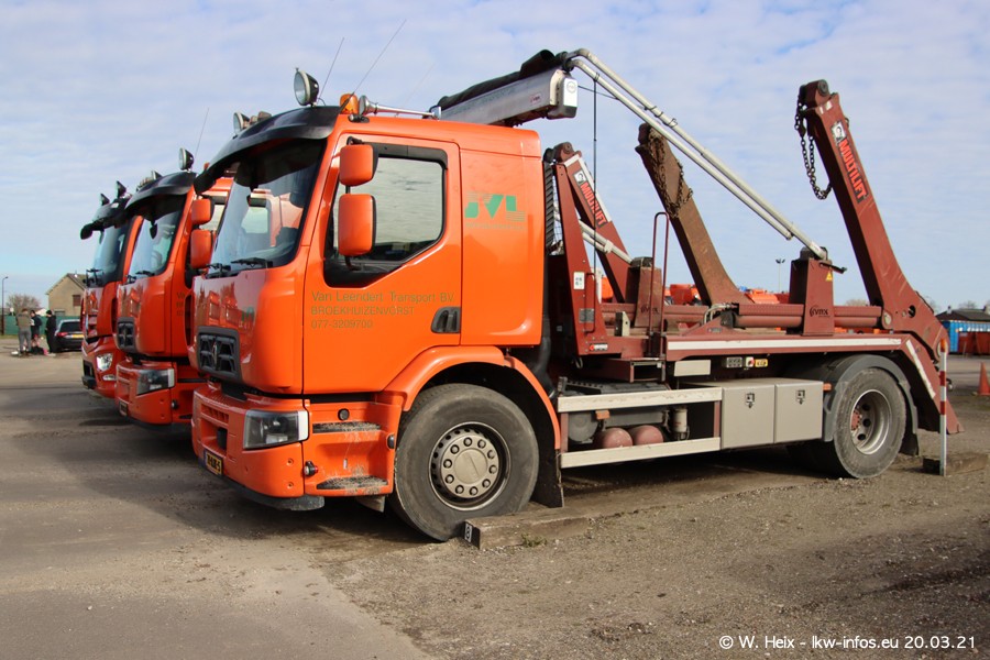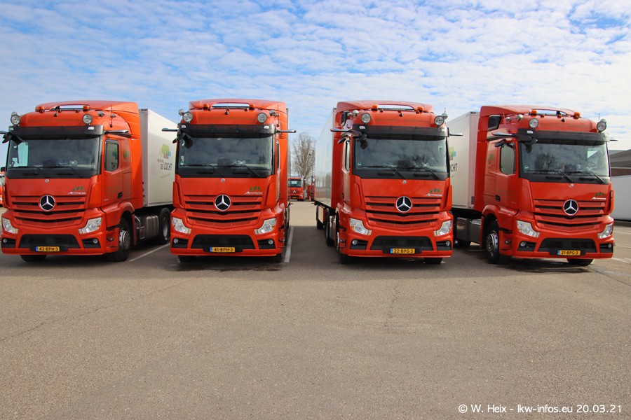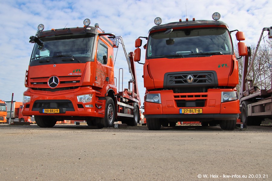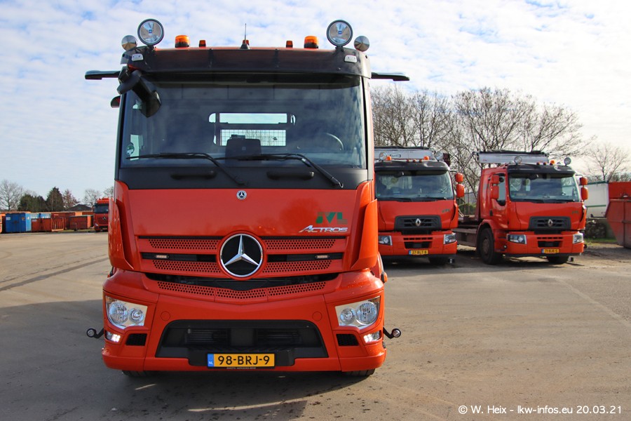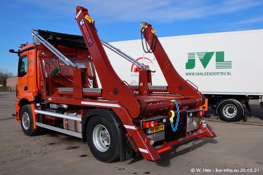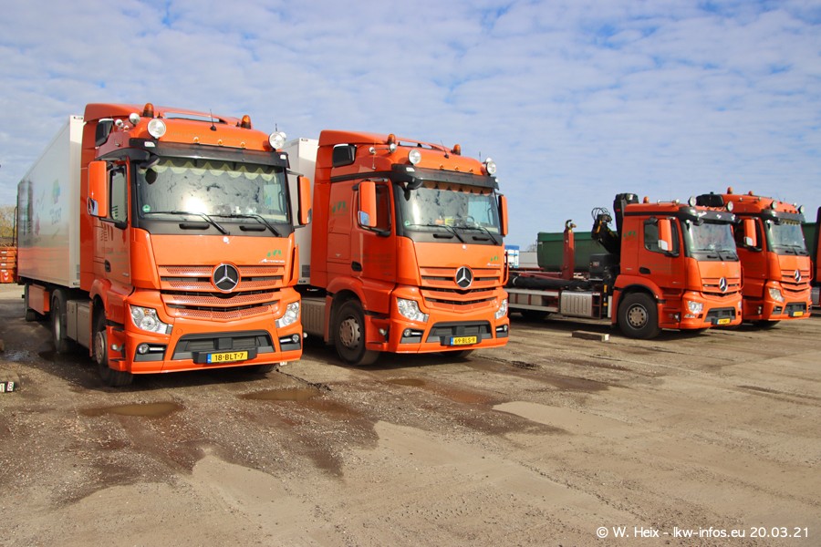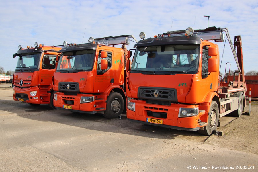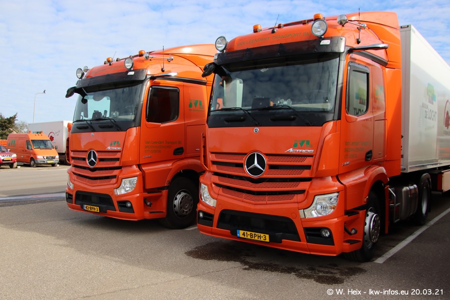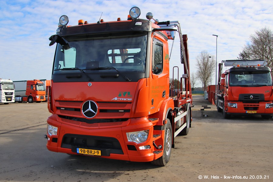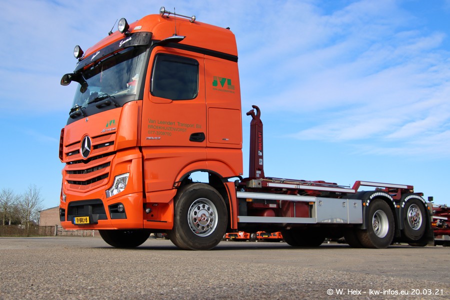 Letzte Woche hat van Leendert einen neuen Mercedes-Benz New Actros 4 (MP 5) bekommen inkl neuem Anhänger für den Transport von (Abroll-) Containern. Vor zwei Tagen, also am Donnerstag, ist ein weiterer kleiner Mercedes-Benz New Actros 4 (MP5) dazu gekommen und verstärkt die drei LKW von Renault beim Transport von kleinen Containern für Sperrmüll und andere Materialien. Ein alter LKW wurde verkauft. Der Rest ist bekannt, wobei nicht alle LKW zuhause waren, da bei van Leendert auch samstags gearbeitet wird.