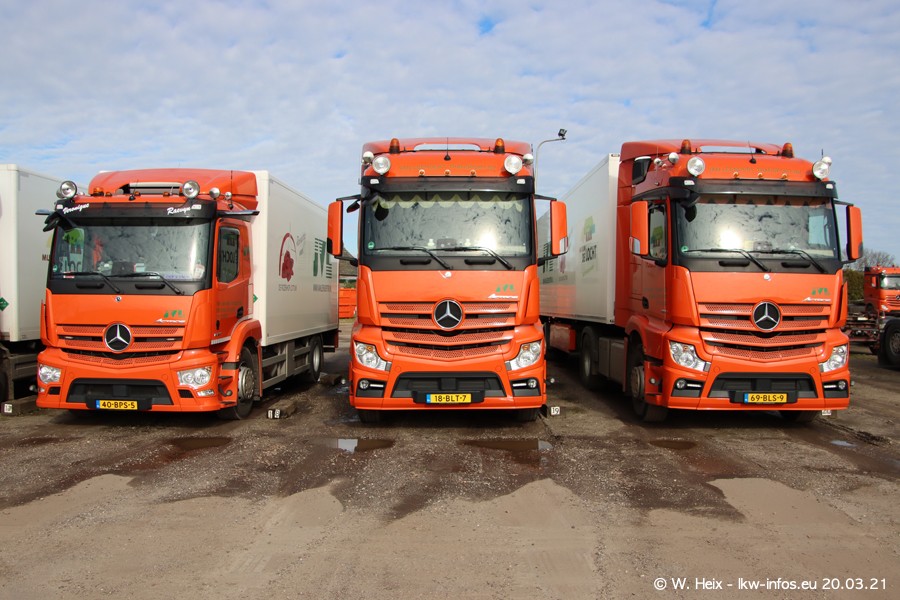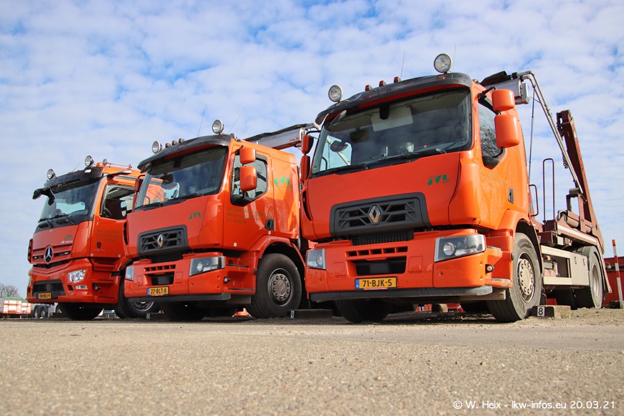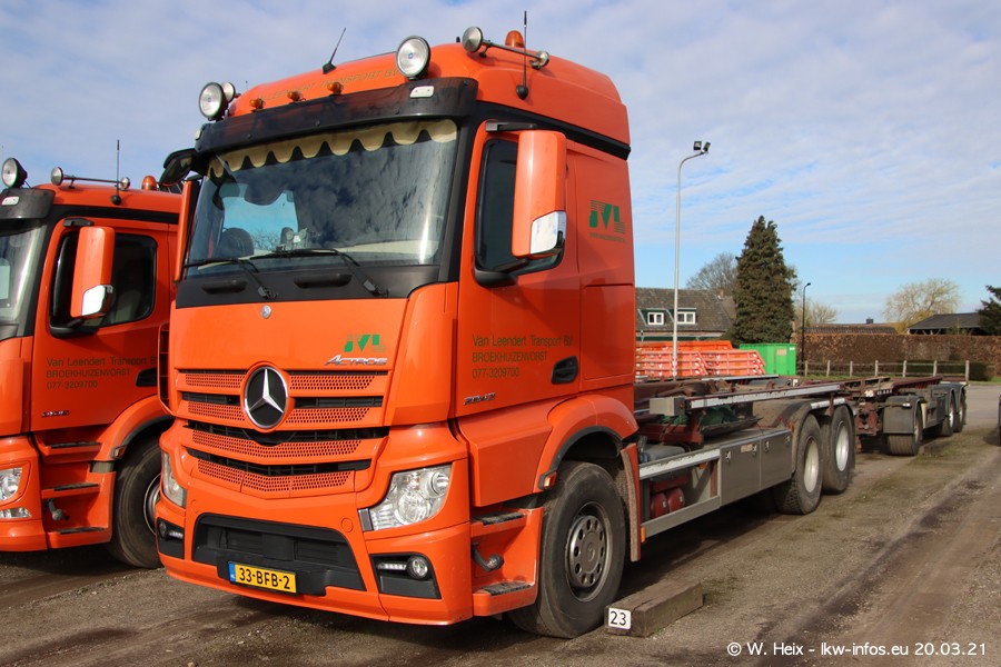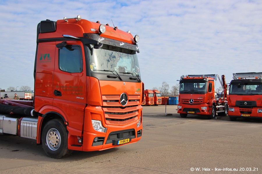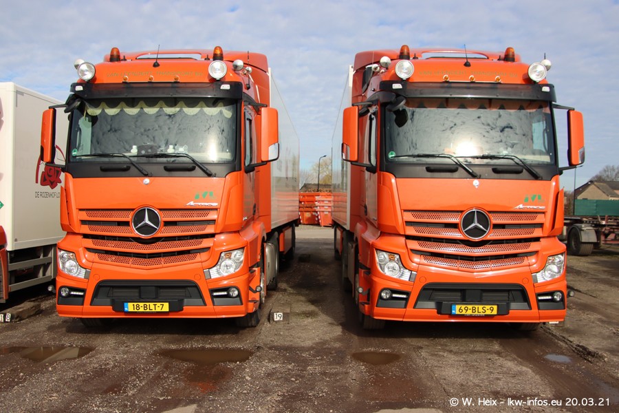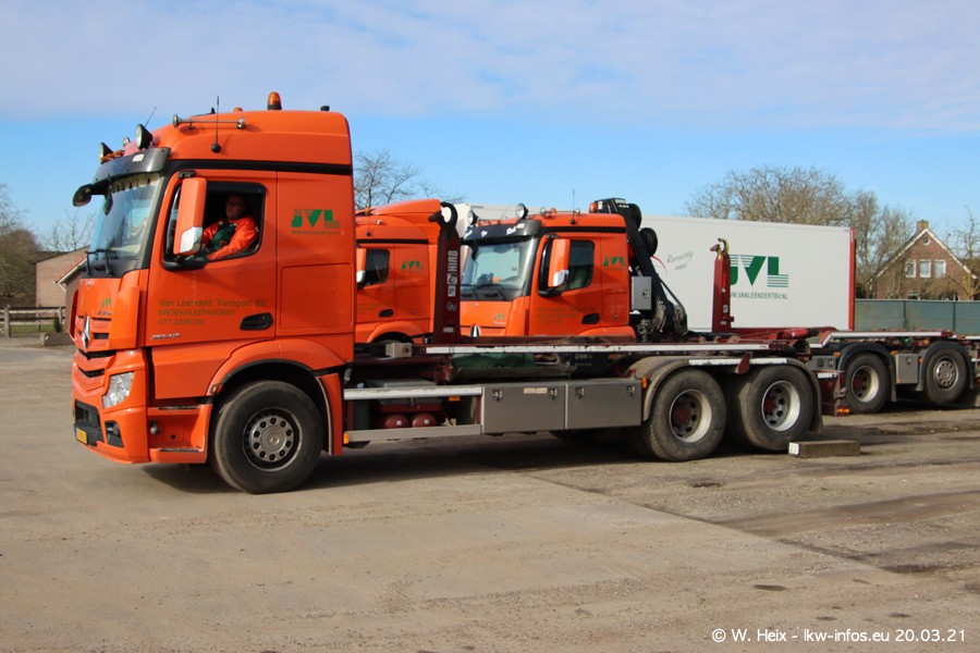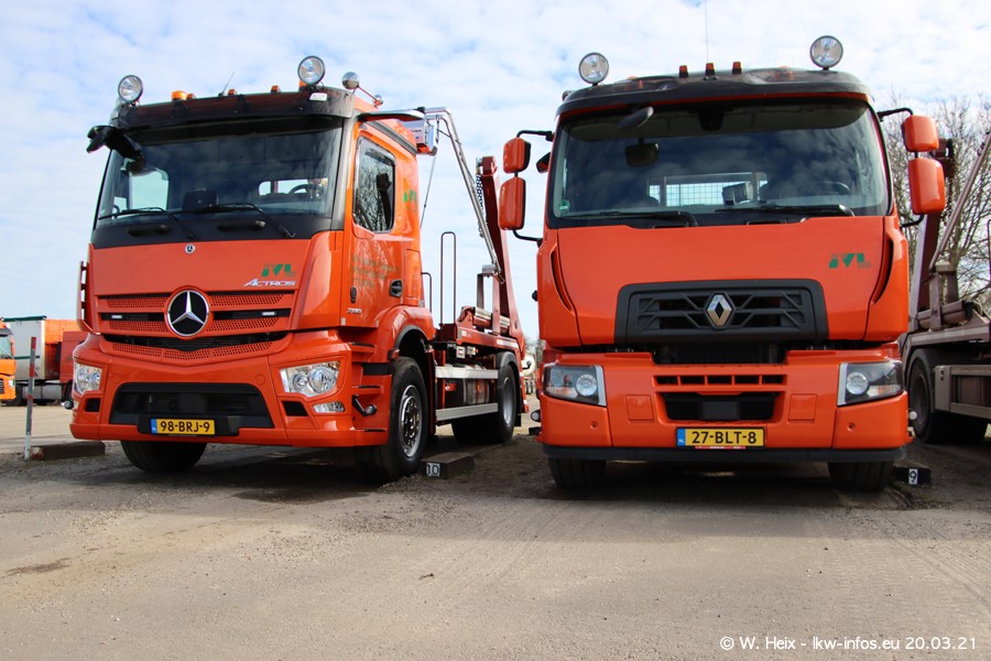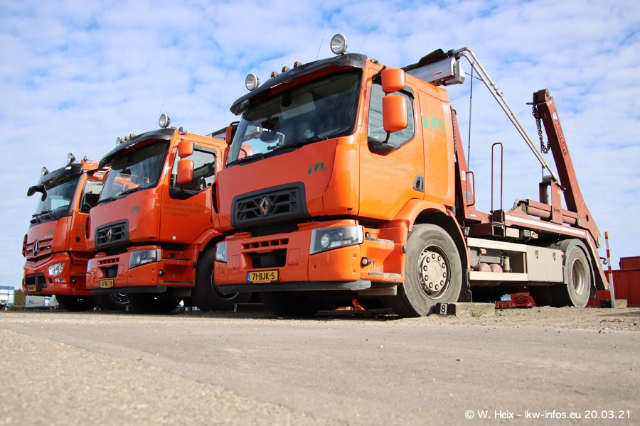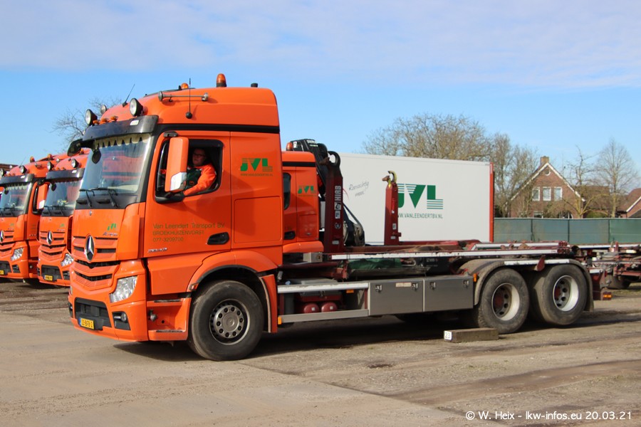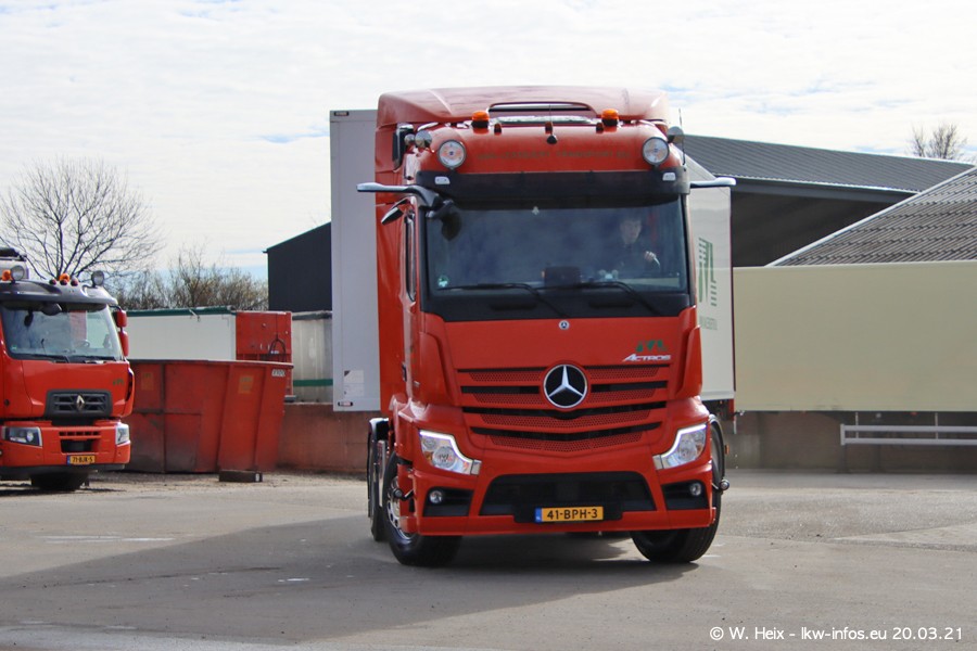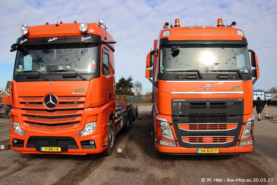 Letzte Woche hat van Leendert einen neuen Mercedes-Benz New Actros 4 (MP 5) bekommen inkl neuem Anhänger für den Transport von (Abroll-) Containern. Vor zwei Tagen, also am Donnerstag, ist ein weiterer kleiner Mercedes-Benz New Actros 4 (MP5) dazu gekommen und verstärkt die drei LKW von Renault beim Transport von kleinen Containern für Sperrmüll und andere Materialien. Ein alter LKW wurde verkauft. Der Rest ist bekannt, wobei nicht alle LKW zuhause waren, da bei van Leendert auch samstags gearbeitet wird.