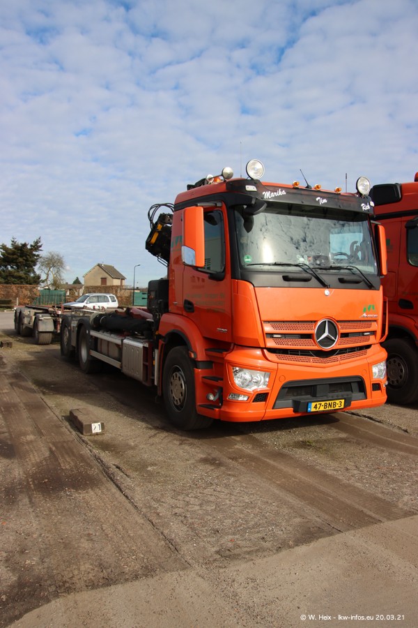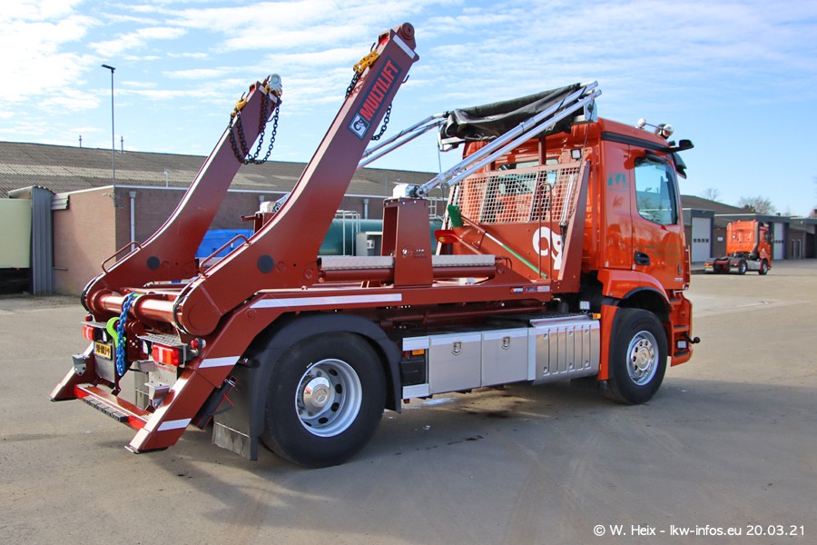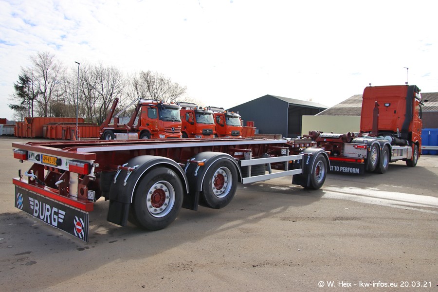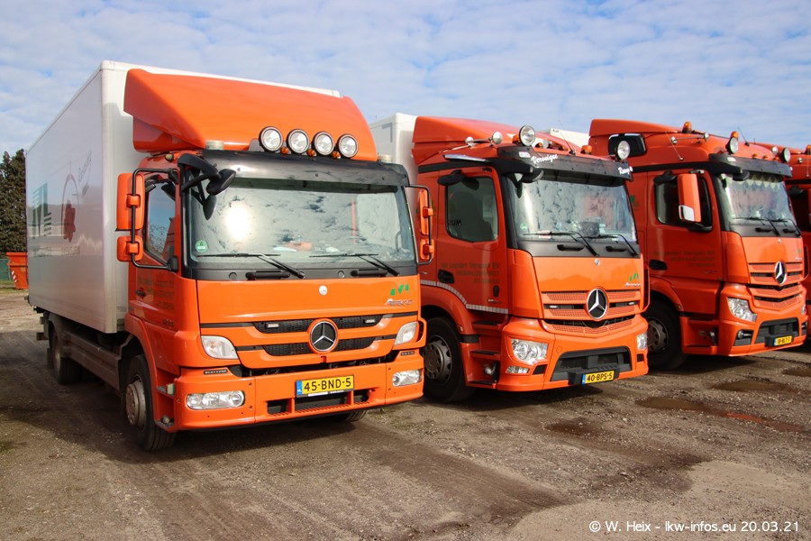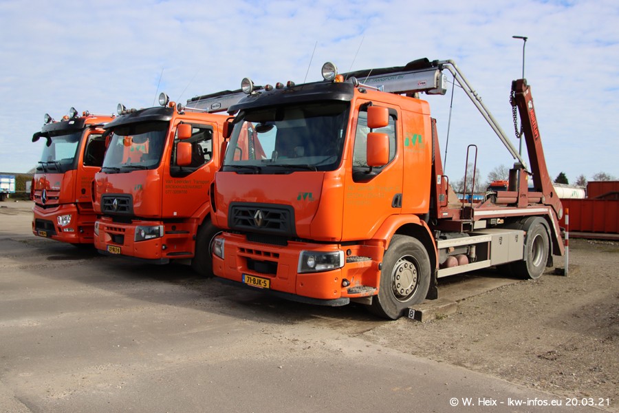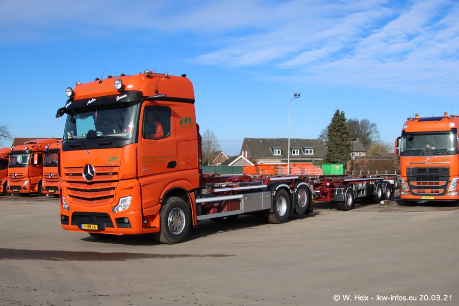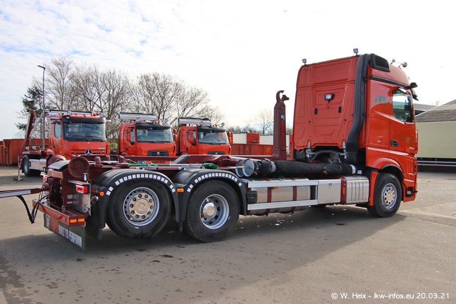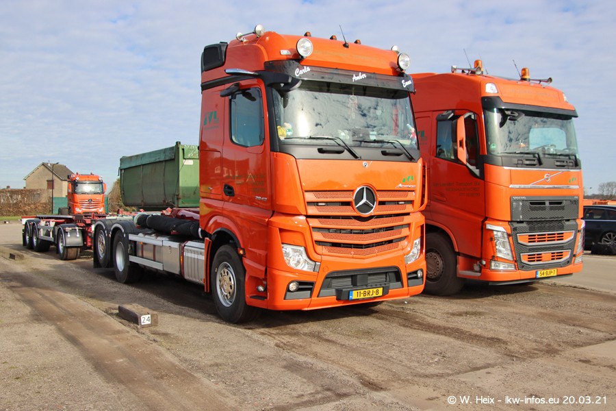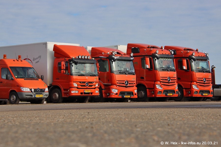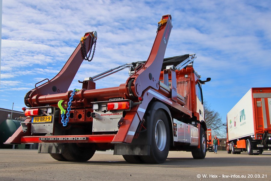 Letzte Woche hat van Leendert einen neuen Mercedes-Benz New Actros 4 (MP 5) bekommen inkl neuem Anhänger für den Transport von (Abroll-) Containern. Vor zwei Tagen, also am Donnerstag, ist ein weiterer kleiner Mercedes-Benz New Actros 4 (MP5) dazu gekommen und verstärkt die drei LKW von Renault beim Transport von kleinen Containern für Sperrmüll und andere Materialien. Ein alter LKW wurde verkauft. Der Rest ist bekannt, wobei nicht alle LKW zuhause waren, da bei van Leendert auch samstags gearbeitet wird.