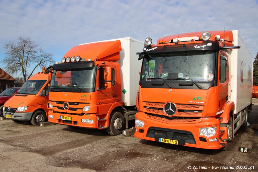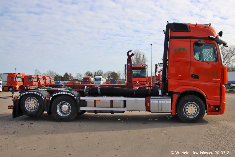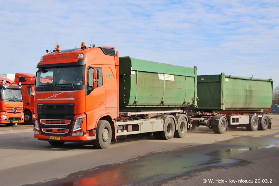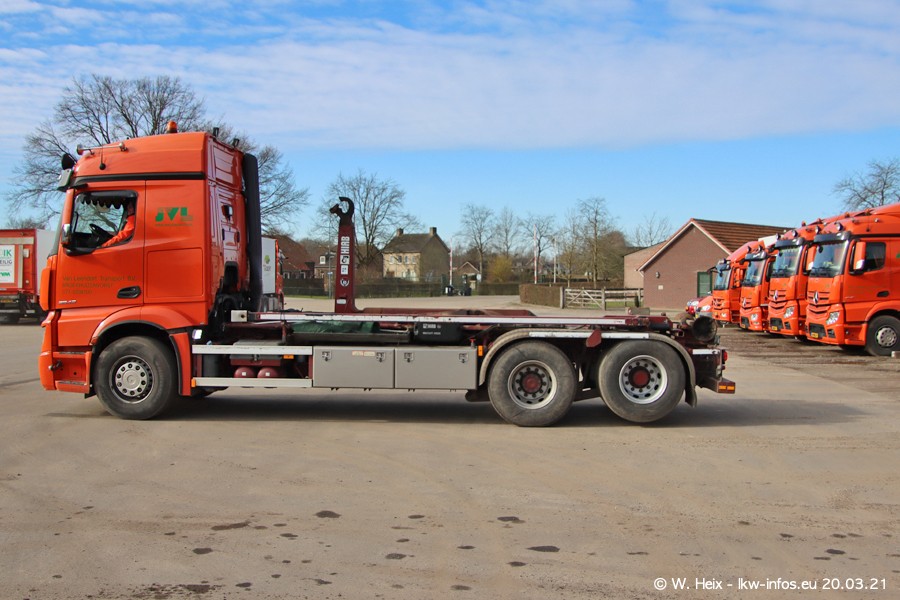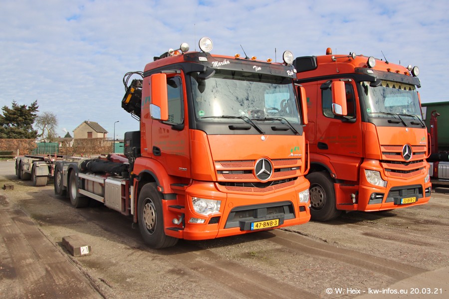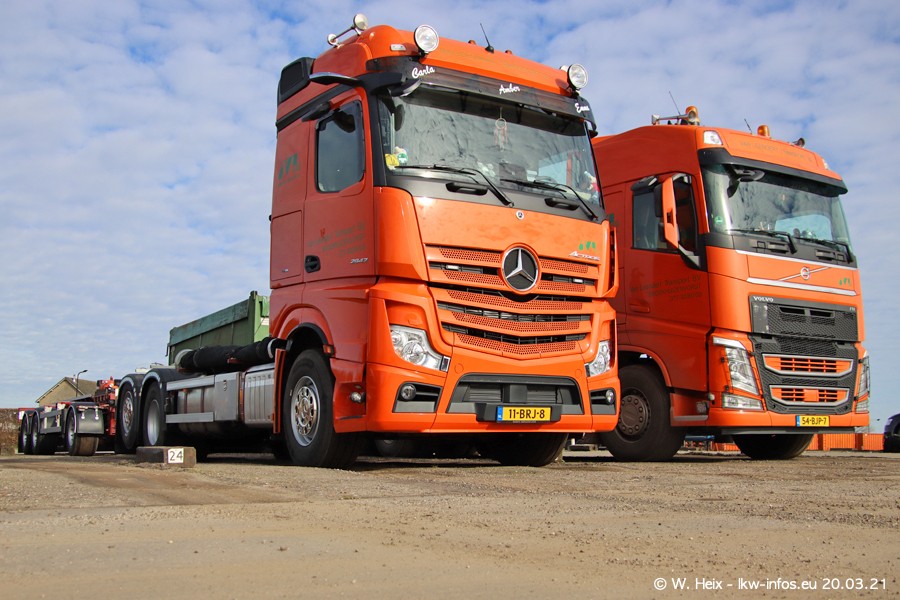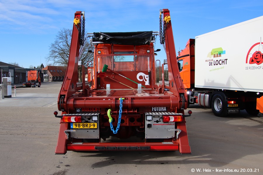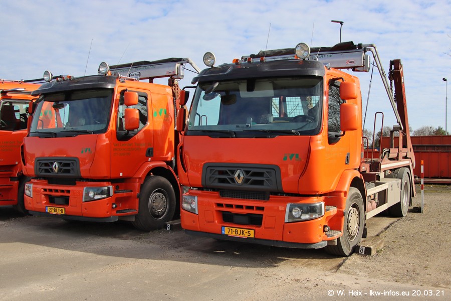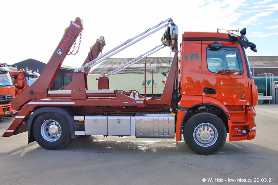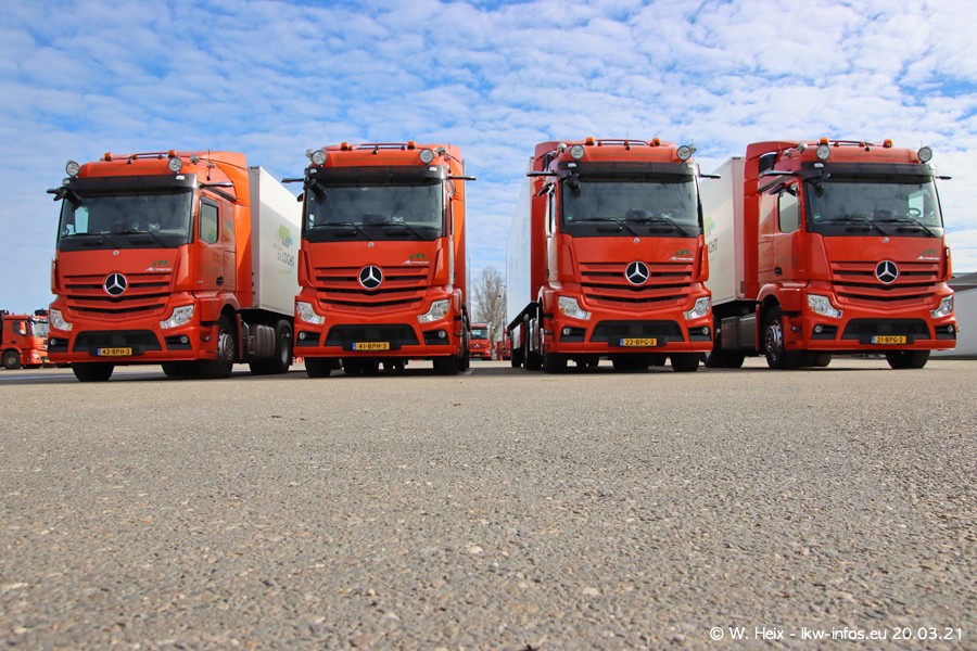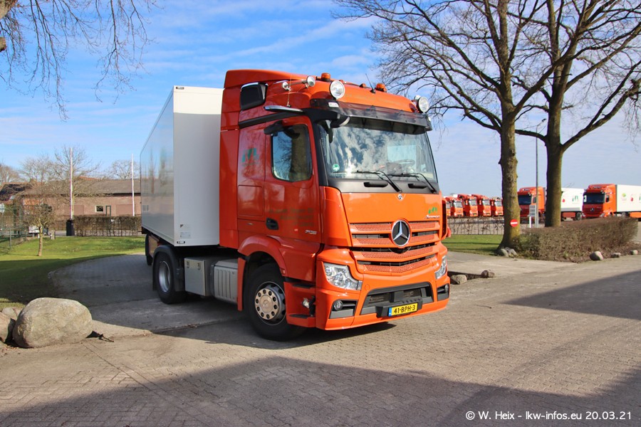 Letzte Woche hat van Leendert einen neuen Mercedes-Benz New Actros 4 (MP 5) bekommen inkl neuem Anhänger für den Transport von (Abroll-) Containern. Vor zwei Tagen, also am Donnerstag, ist ein weiterer kleiner Mercedes-Benz New Actros 4 (MP5) dazu gekommen und verstärkt die drei LKW von Renault beim Transport von kleinen Containern für Sperrmüll und andere Materialien. Ein alter LKW wurde verkauft. Der Rest ist bekannt, wobei nicht alle LKW zuhause waren, da bei van Leendert auch samstags gearbeitet wird.