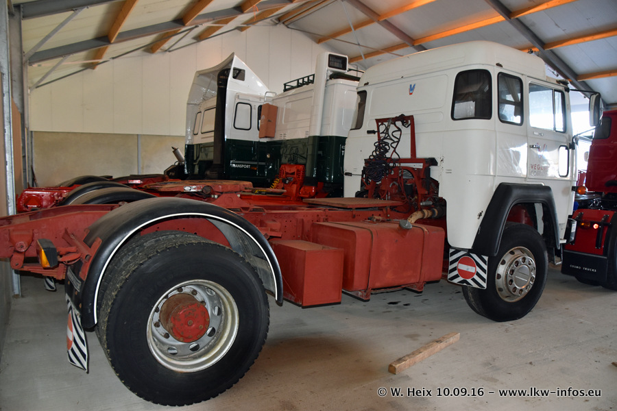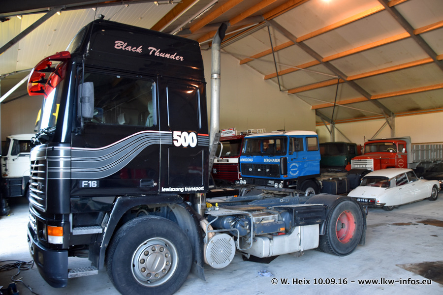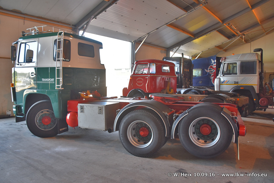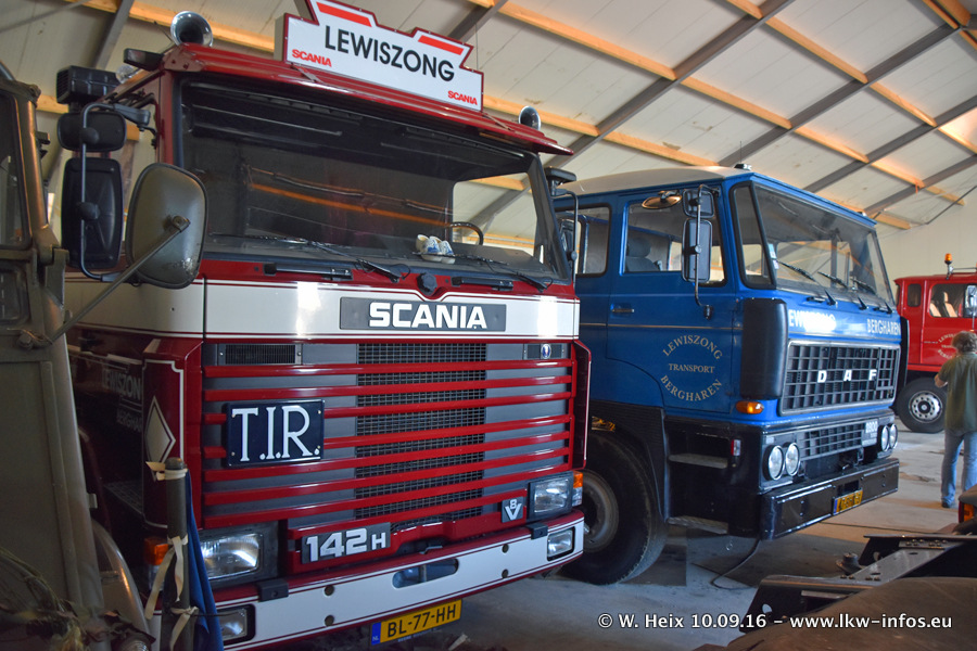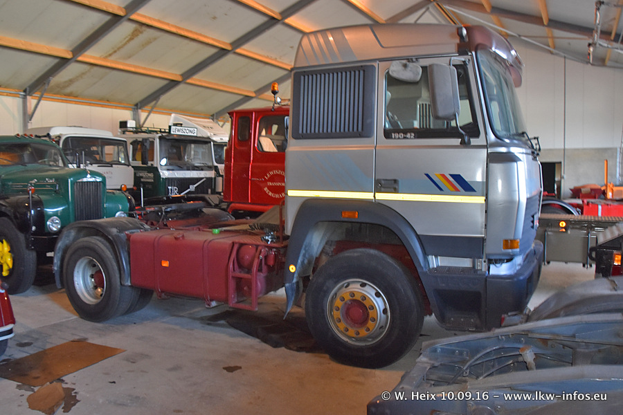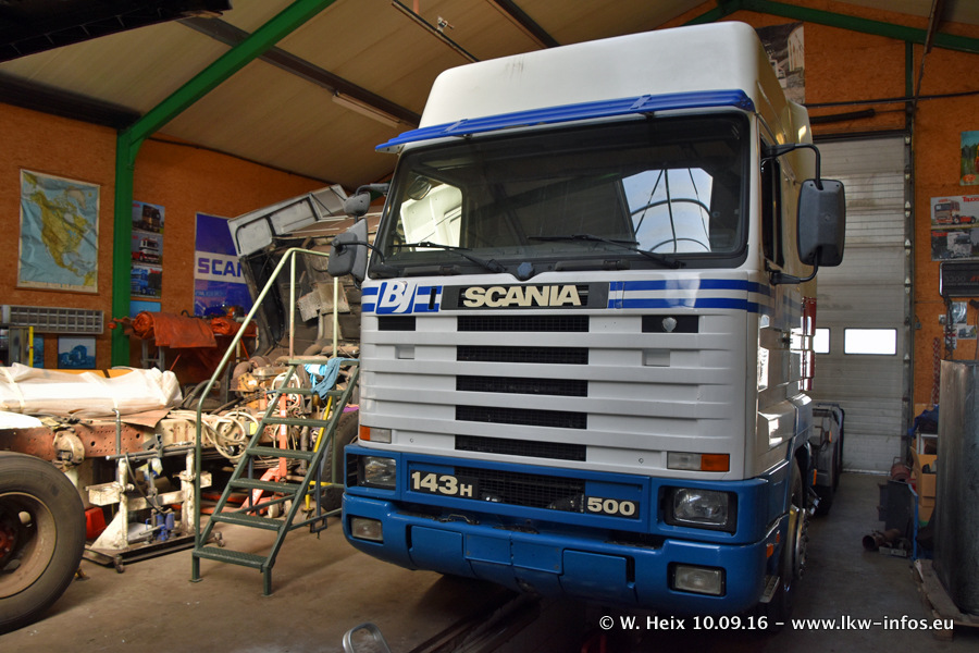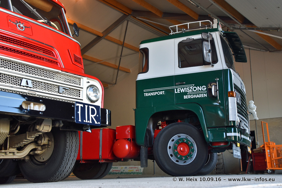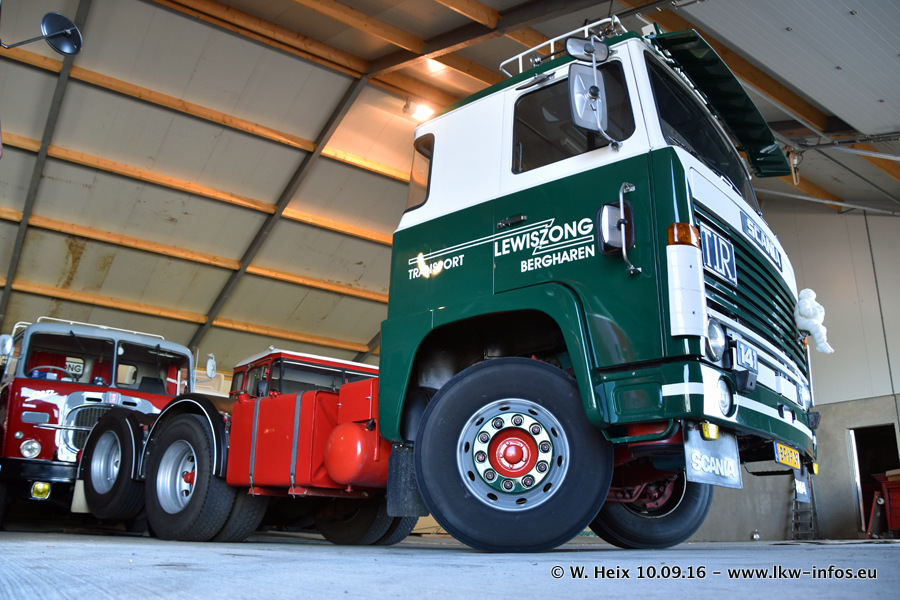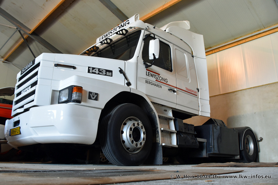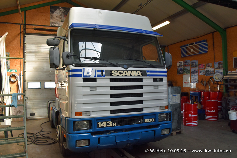 Jan Lewiszong hat mir heute einen großen Teil seiner Oldtimersammlung gezeigt, die er zusammen mit seinem Sohn besitzt. Viele dieser Oldtimer sind in den Niederlanden immer wieder bei Oldtimershows und Oldtimer-Rundfahrten zu sehen. Ein Teil der Fahrzeuge wird auch immer mal wieder verkauft und durch neue ersetzt. Es gibt aber einige LKW, die niemals verkauft werden. Ein großer Teil der Oldtimer ist restauriert. Einzelne Fahrzeuge befinden sich sogar im unrestaurierten Originalzustand und einige weitere warten noch darauf, restauriert zu werden. In Arbeit ist unter anderem aktuell der Scania 143 H 500 Streamline (18 Jahre alt), den ich in der Werkstatt fotografiert habe.