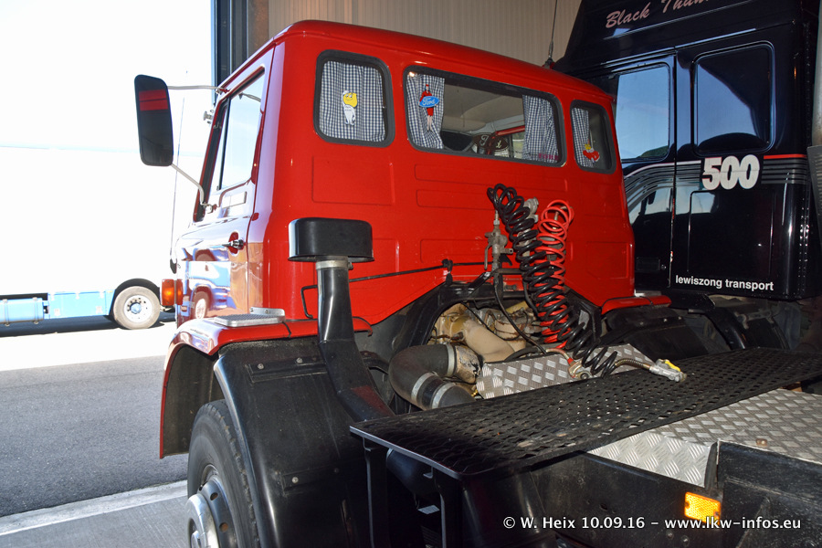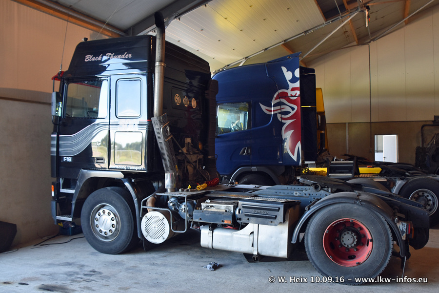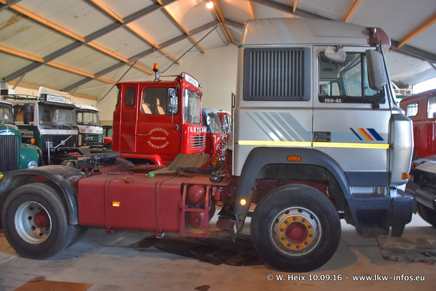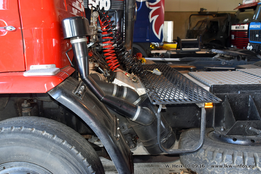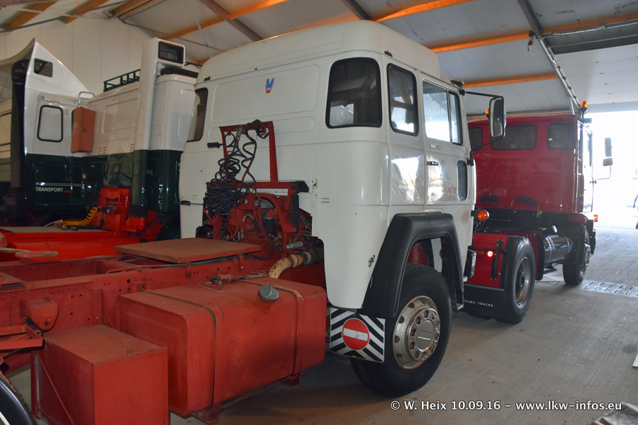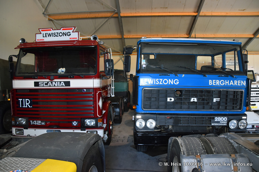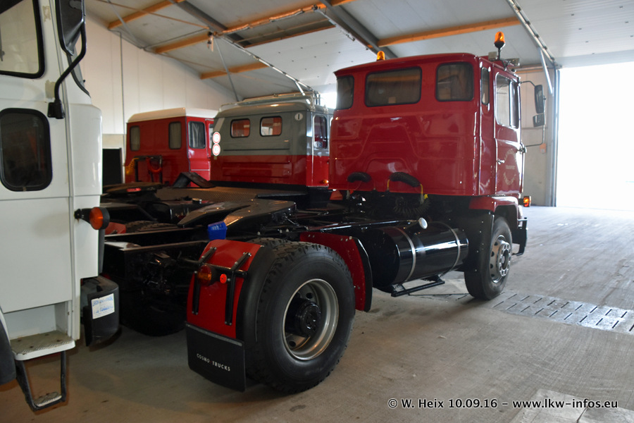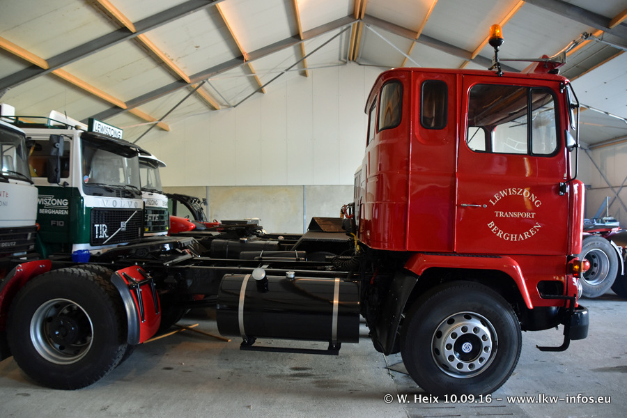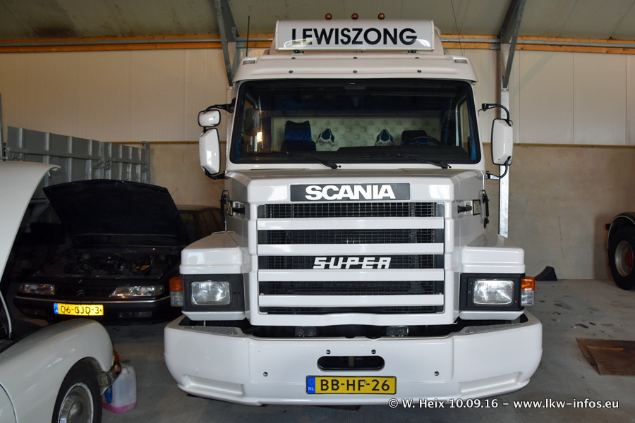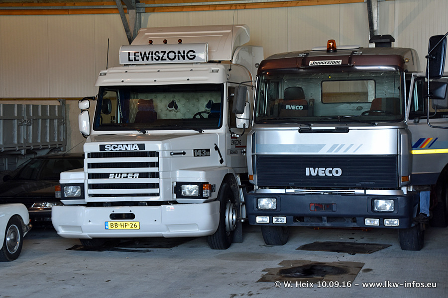 Jan Lewiszong hat mir heute einen großen Teil seiner Oldtimersammlung gezeigt, die er zusammen mit seinem Sohn besitzt. Viele dieser Oldtimer sind in den Niederlanden immer wieder bei Oldtimershows und Oldtimer-Rundfahrten zu sehen. Ein Teil der Fahrzeuge wird auch immer mal wieder verkauft und durch neue ersetzt. Es gibt aber einige LKW, die niemals verkauft werden. Ein großer Teil der Oldtimer ist restauriert. Einzelne Fahrzeuge befinden sich sogar im unrestaurierten Originalzustand und einige weitere warten noch darauf, restauriert zu werden. In Arbeit ist unter anderem aktuell der Scania 143 H 500 Streamline (18 Jahre alt), den ich in der Werkstatt fotografiert habe.