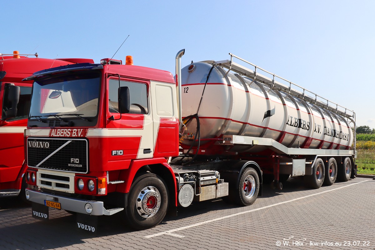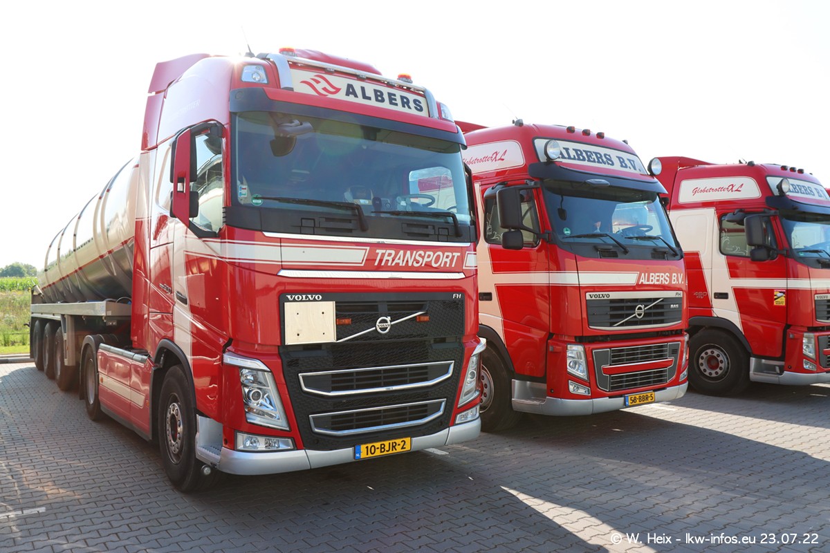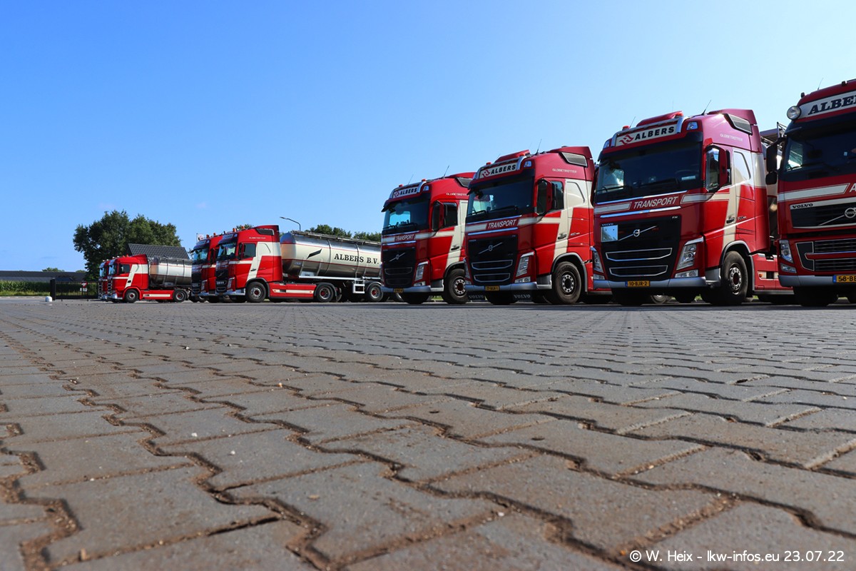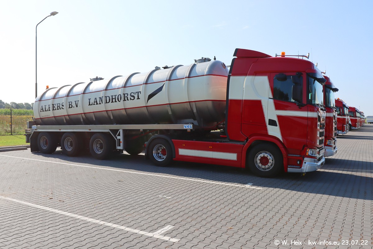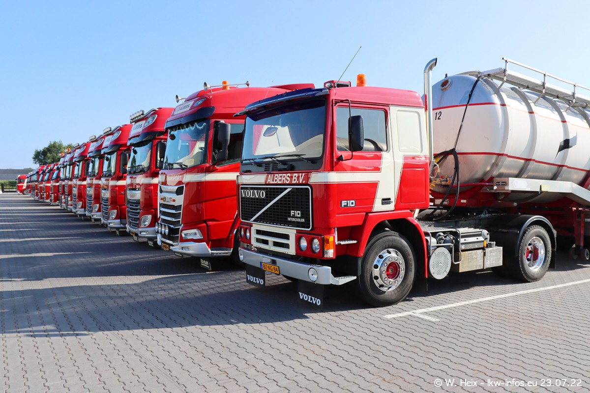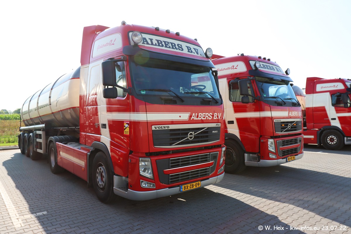 Ende 2021 ist der Fuhrpark von landhorst umgezogen nach Zeeland. Hier gibt es deutlich mehr Platz für die Fahrzeuge. Am Wochenende stehen alle LKW in einer Reihe, sortiert nach Hersteller und Alter. Ein großer Teil der LKW war zuhause. Schön, dass auch der alte VOLVO F10 samt passendem Auflieger mit auf dem Hof stand. Da die Fahrzeuge früh morgens wegen der Sonne genau falsch herum auf dem Gelände standen, war es etwas schwierig mit dem Fotografieren. Aber die Bilder sind trotzdem gut geworden.